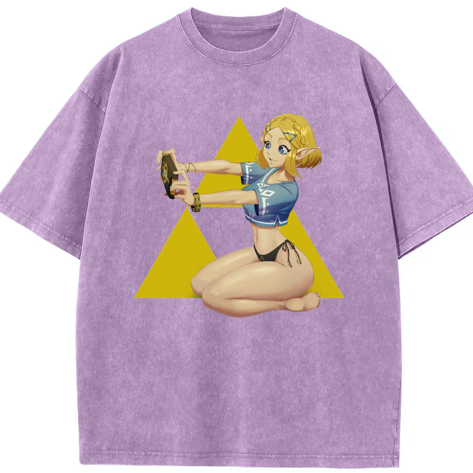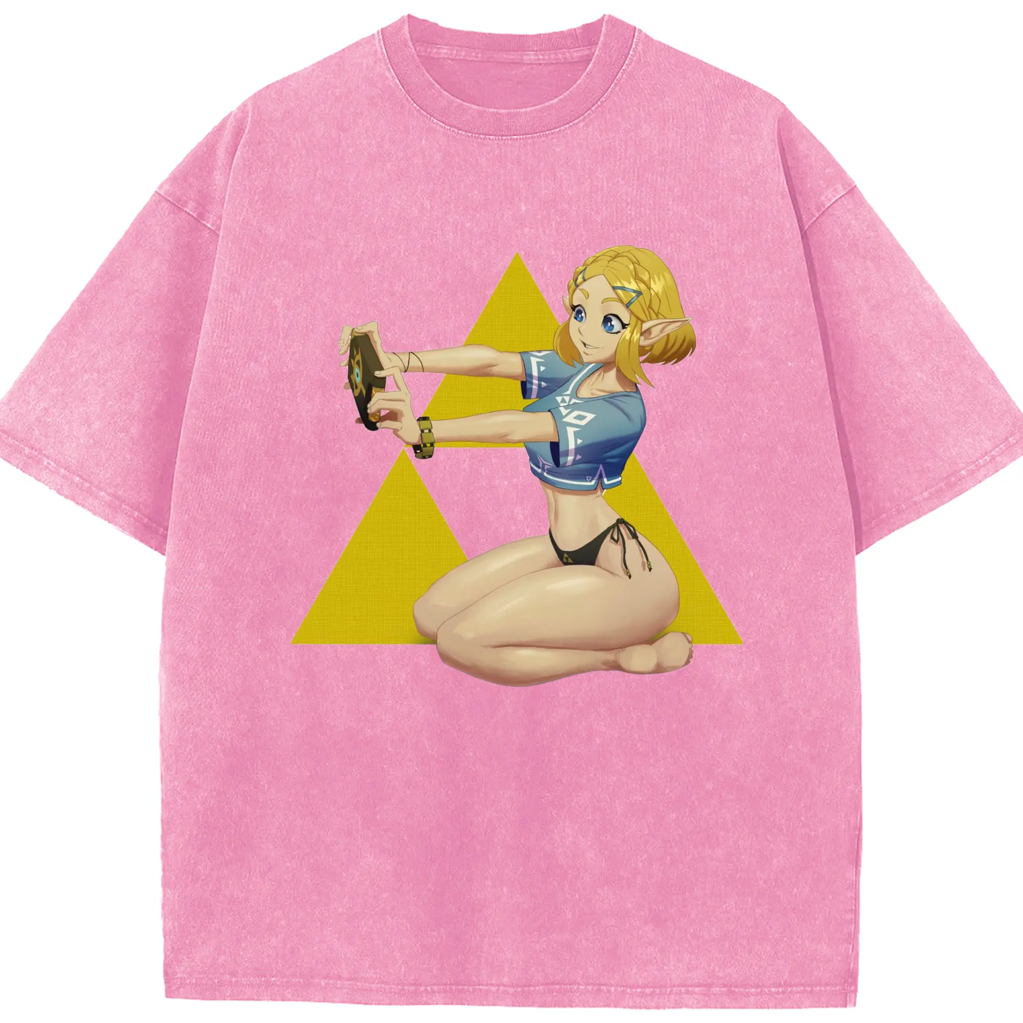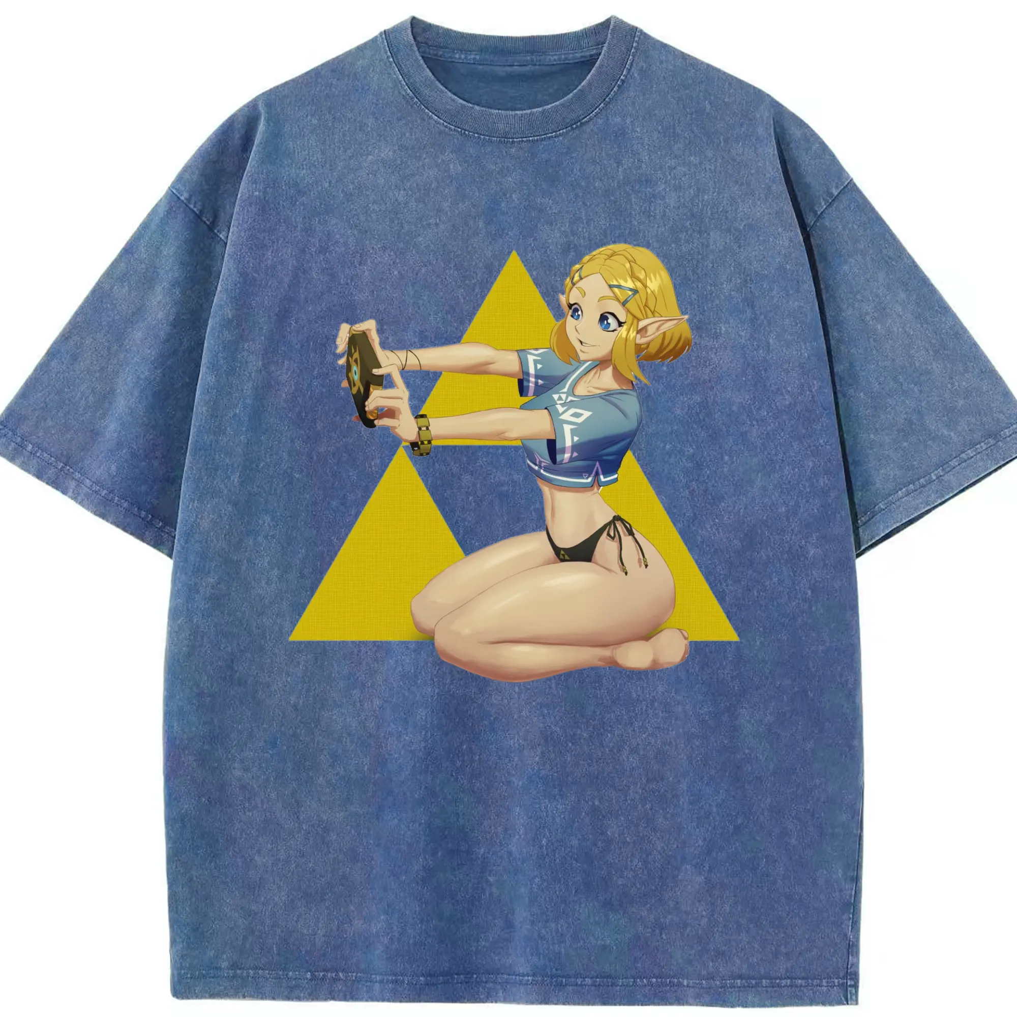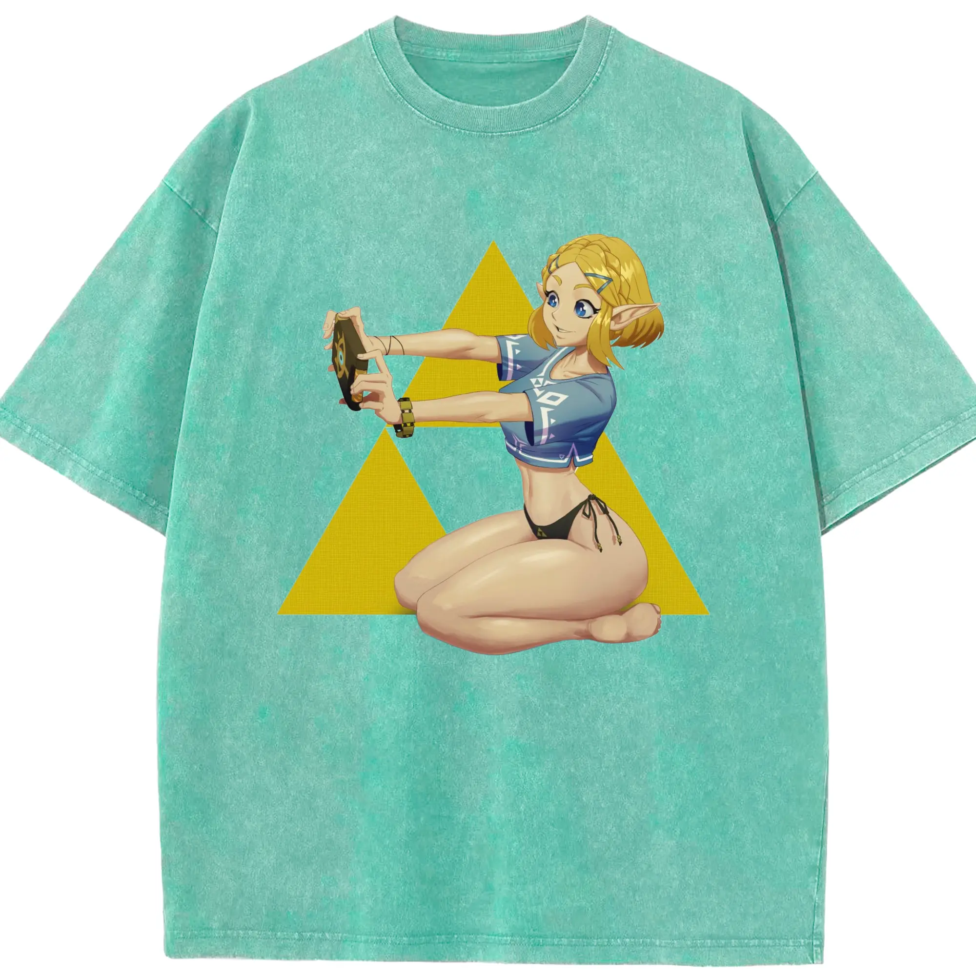 Men's the legend of zelda Princess Zelda tee - Washed Vintage Look 230g Cotton Oversized T-Shirt With Front Heat Transfer Print – Soft, Lightweight, Stylish Fit – Comfortable Casual Wear For Sports & Everyday Use