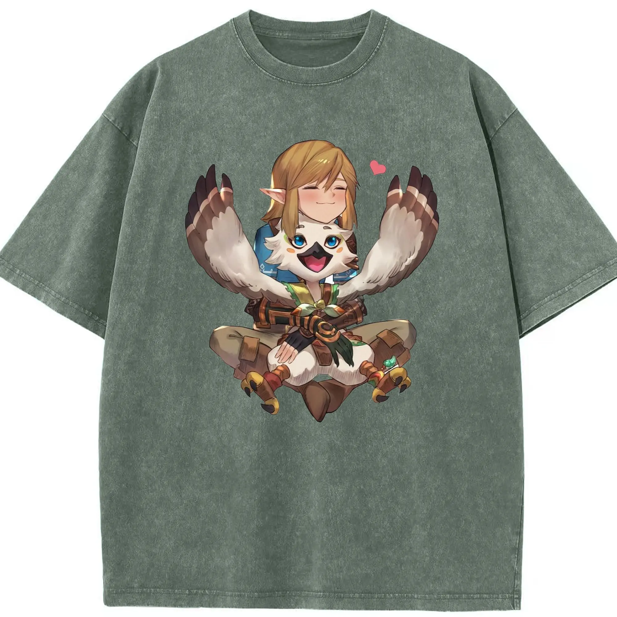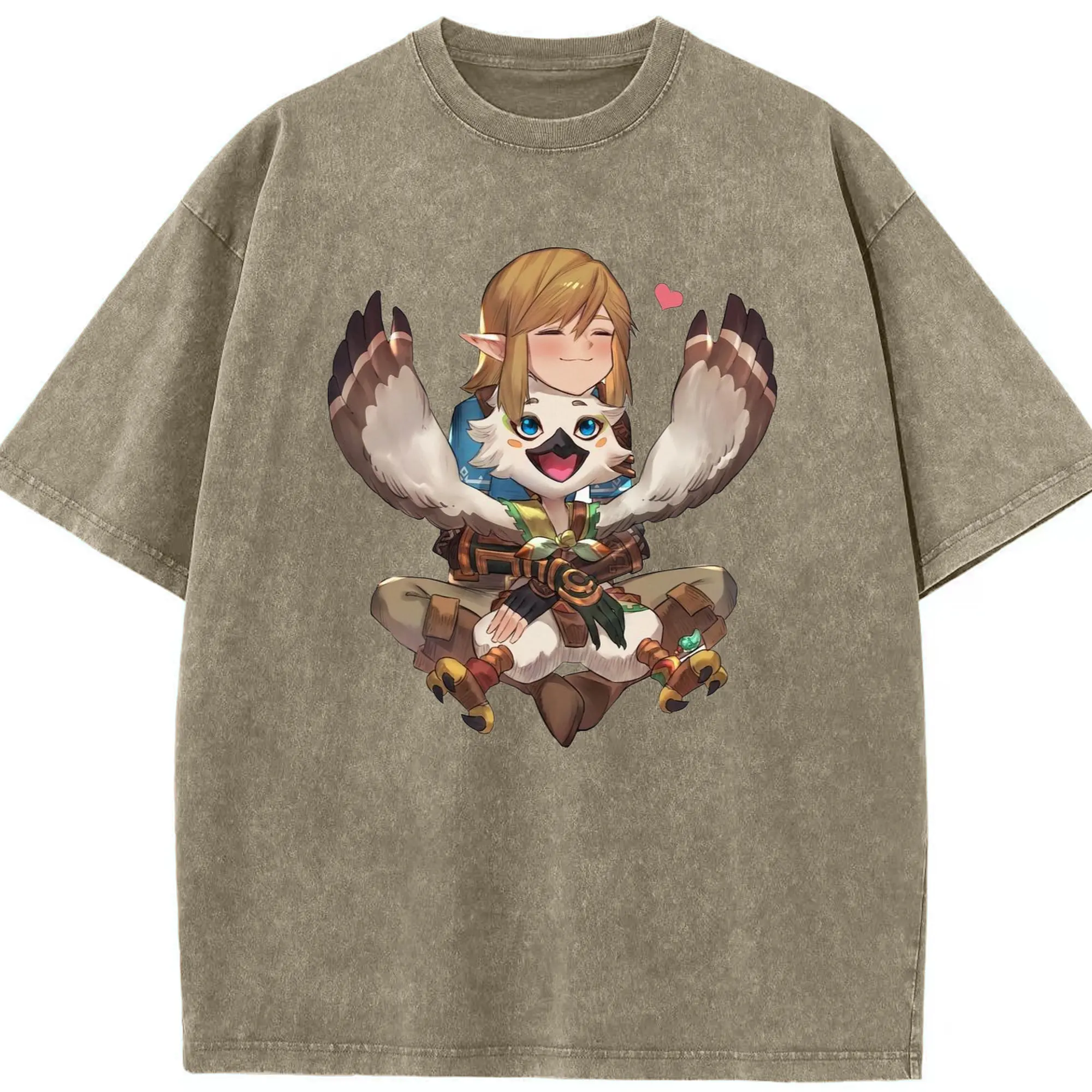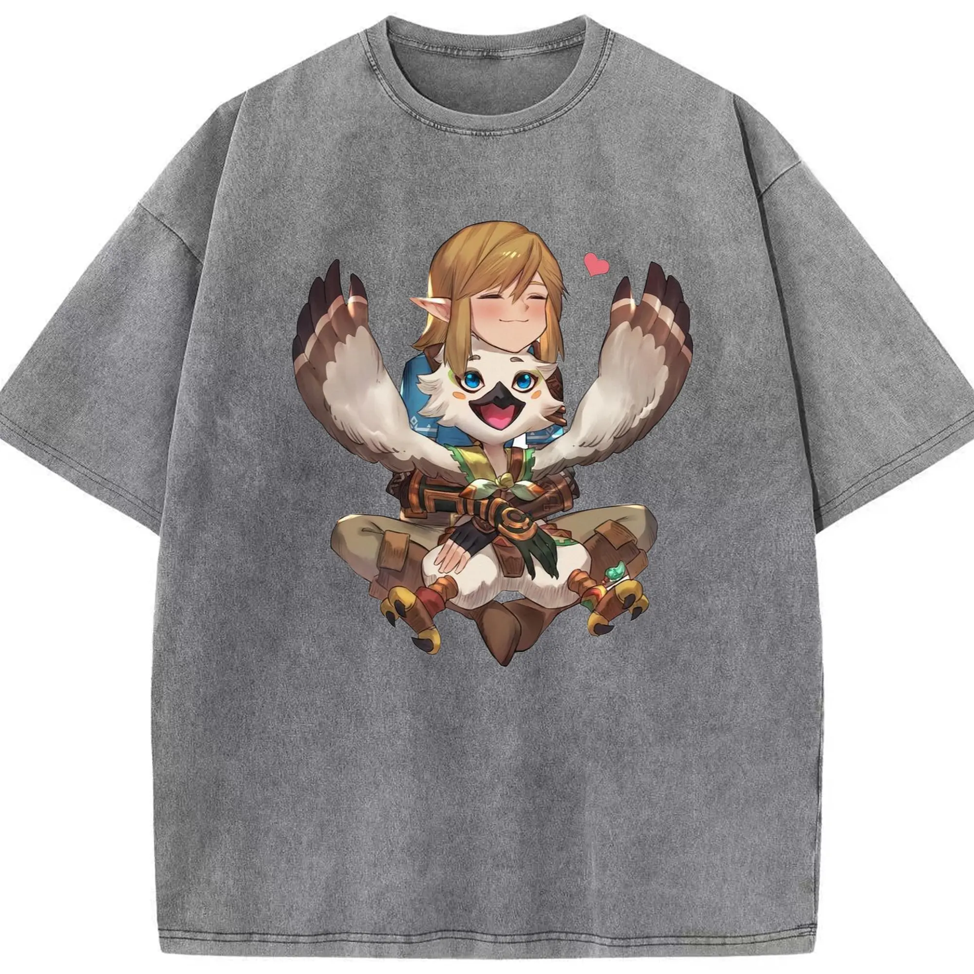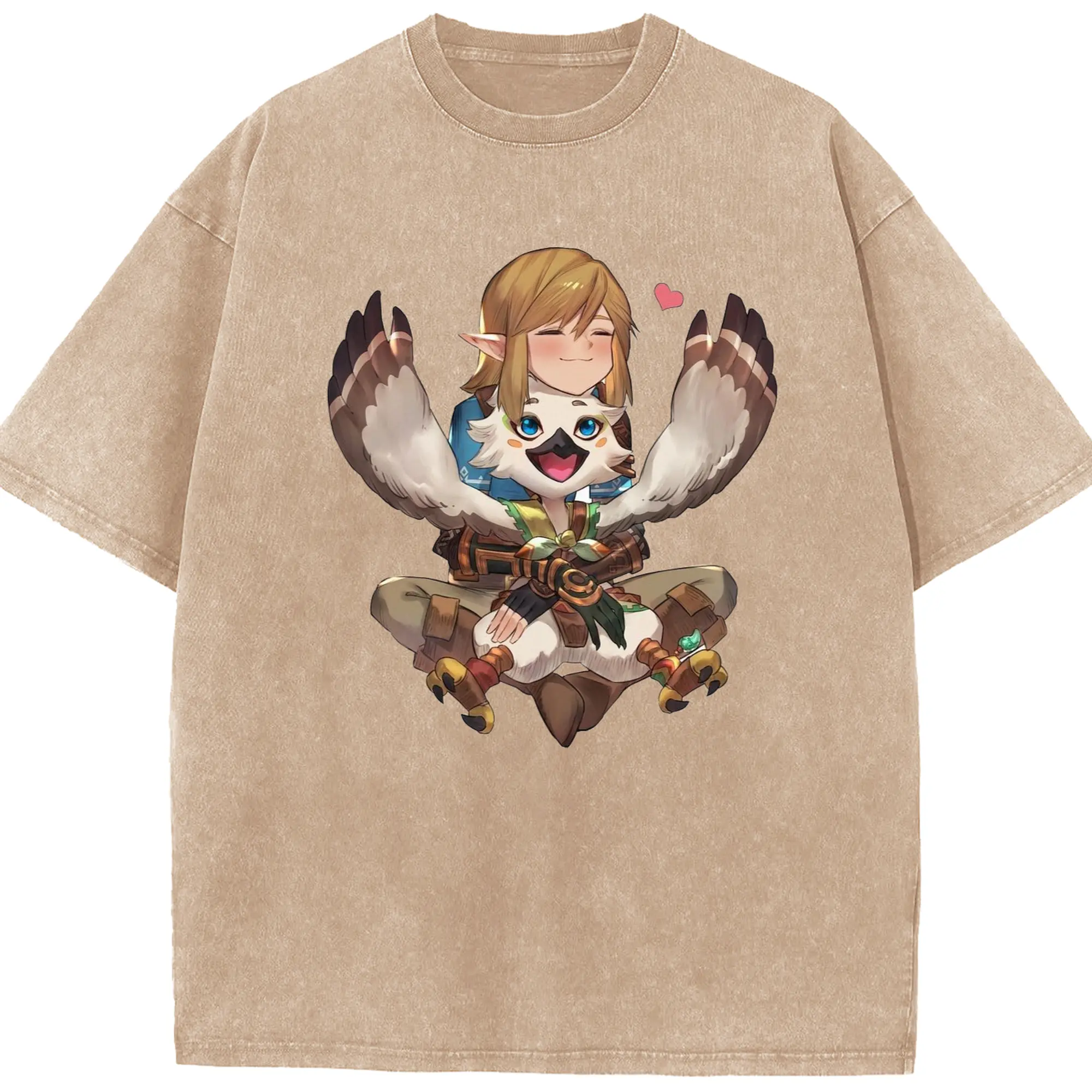 Men's the legend of zelda Tulin graphic tee - Washed Vintage Look 230g Cotton Oversized T-Shirt With Front Heat Transfer Print – Soft, Lightweight, Stylish Fit – Comfortable Casual Wear For Sports & Everyday Use