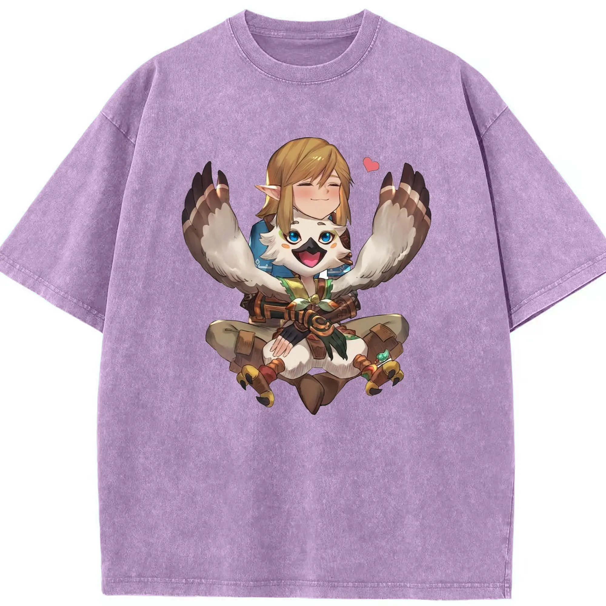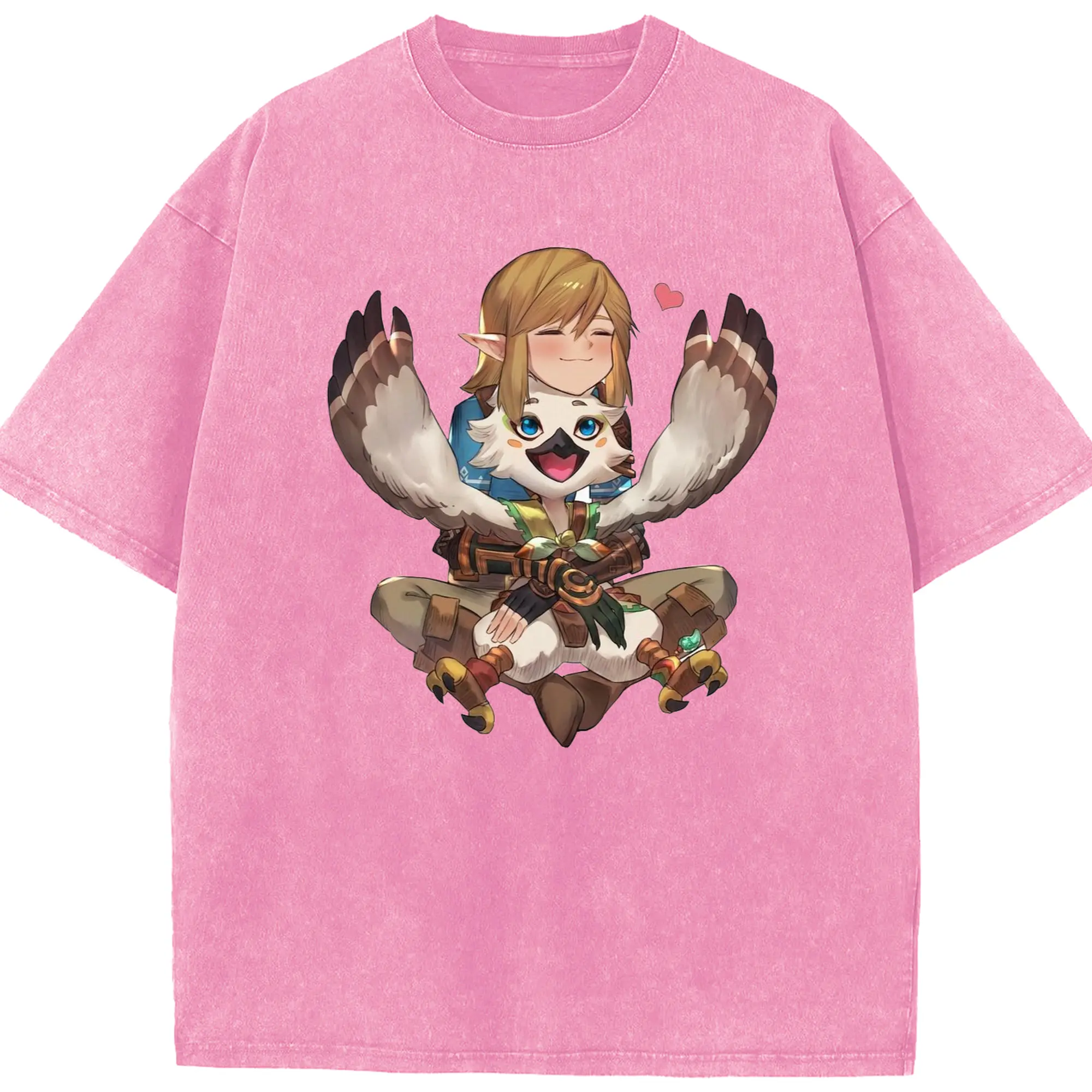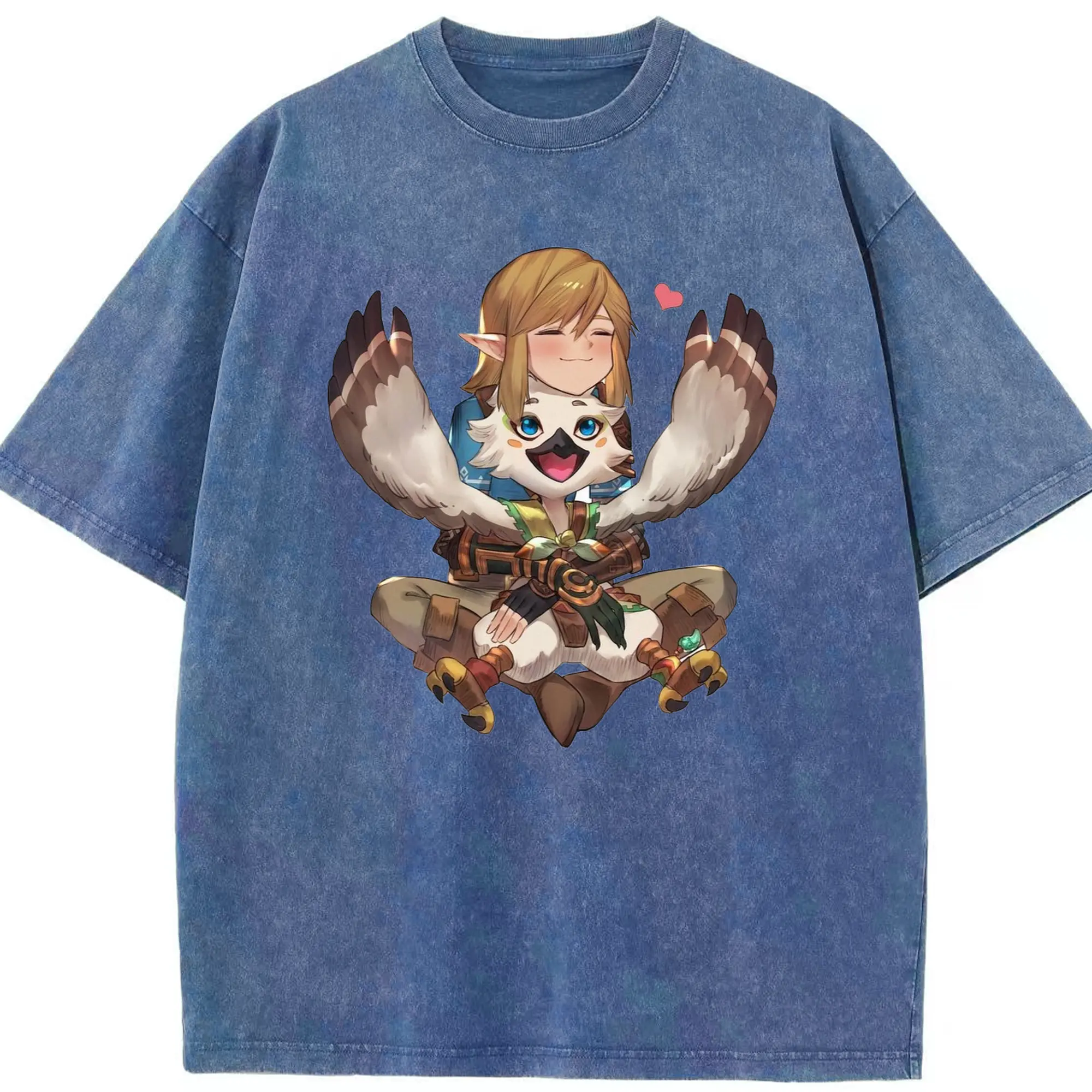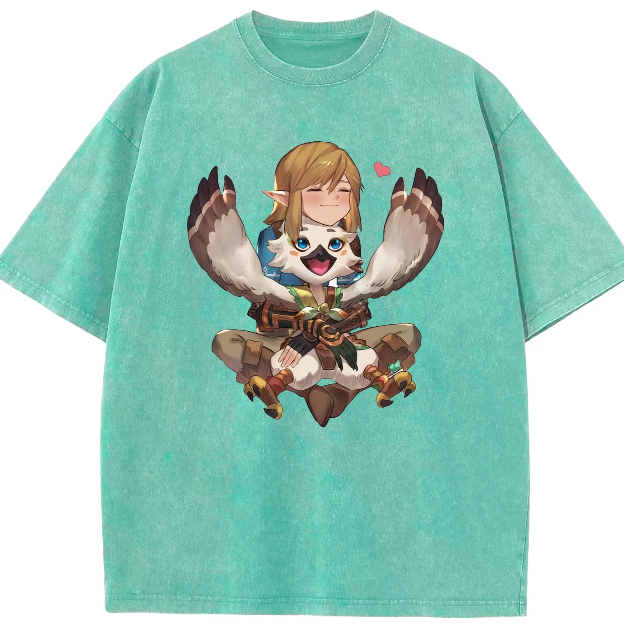 Men's the legend of zelda Tulin graphic tee - Washed Vintage Look 230g Cotton Oversized T-Shirt With Front Heat Transfer Print – Soft, Lightweight, Stylish Fit – Comfortable Casual Wear For Sports & Everyday Use