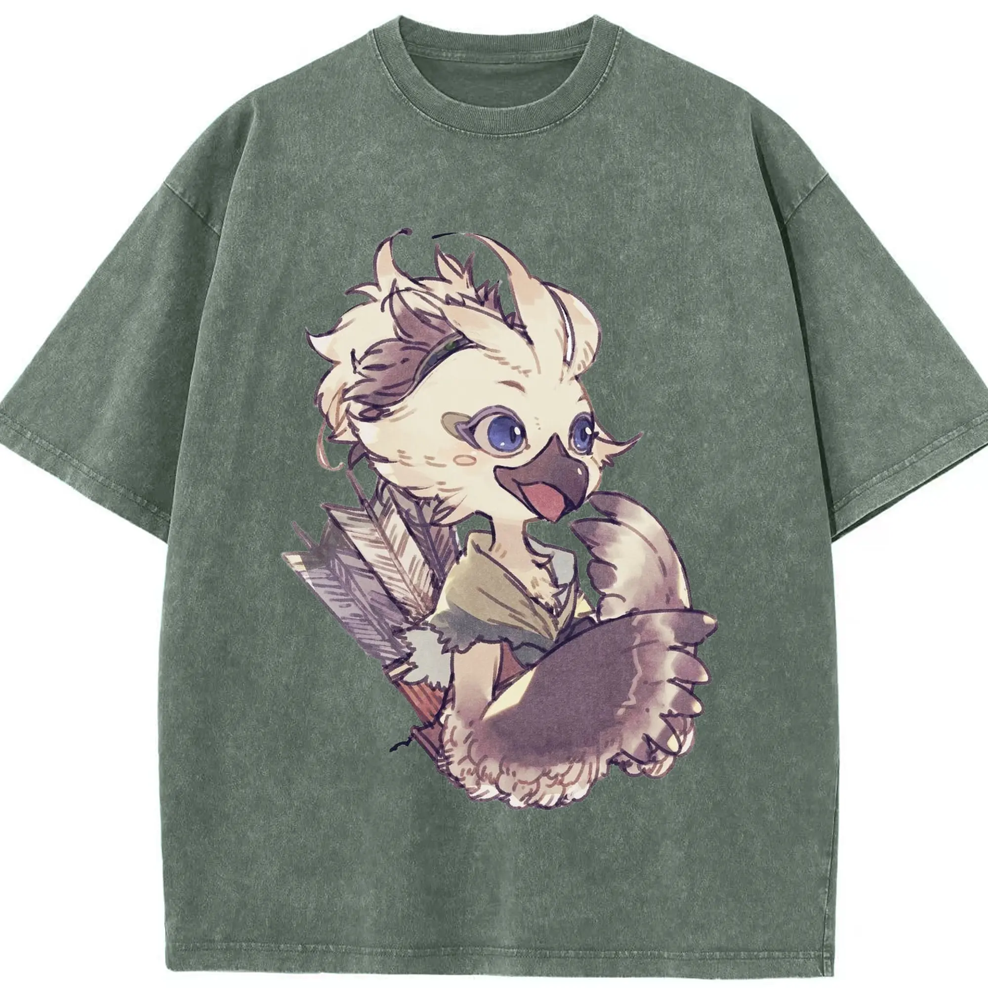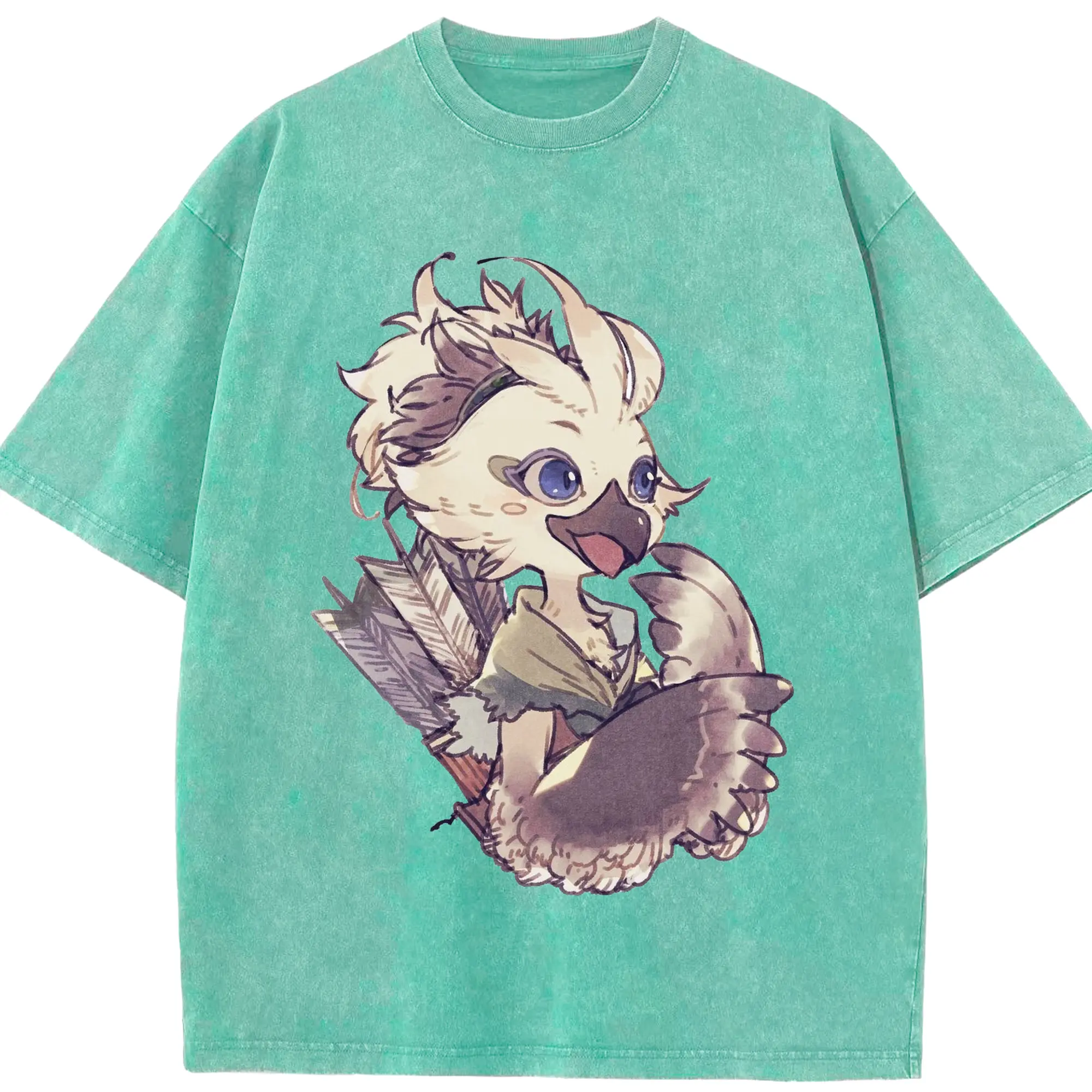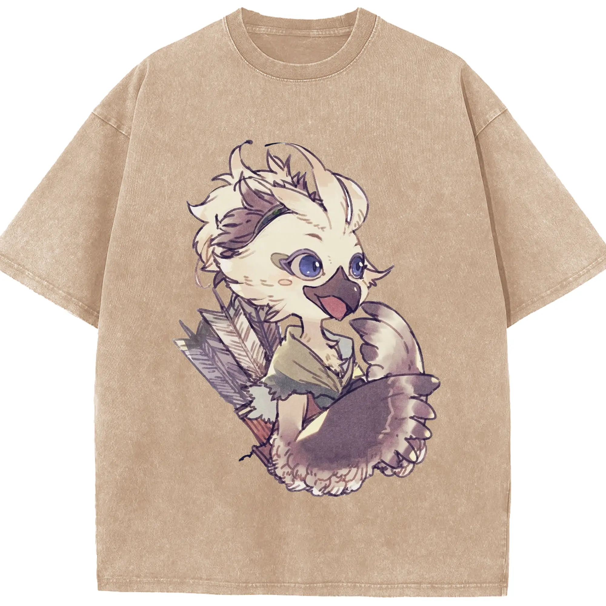 Men's the legend of zelda Tulin graphic t-shirt - Washed Vintage Look 230g Cotton Oversized T-Shirt With Front Heat Transfer Print – Soft, Lightweight, Stylish Fit – Comfortable Casual Wear For Sports & Everyday Use