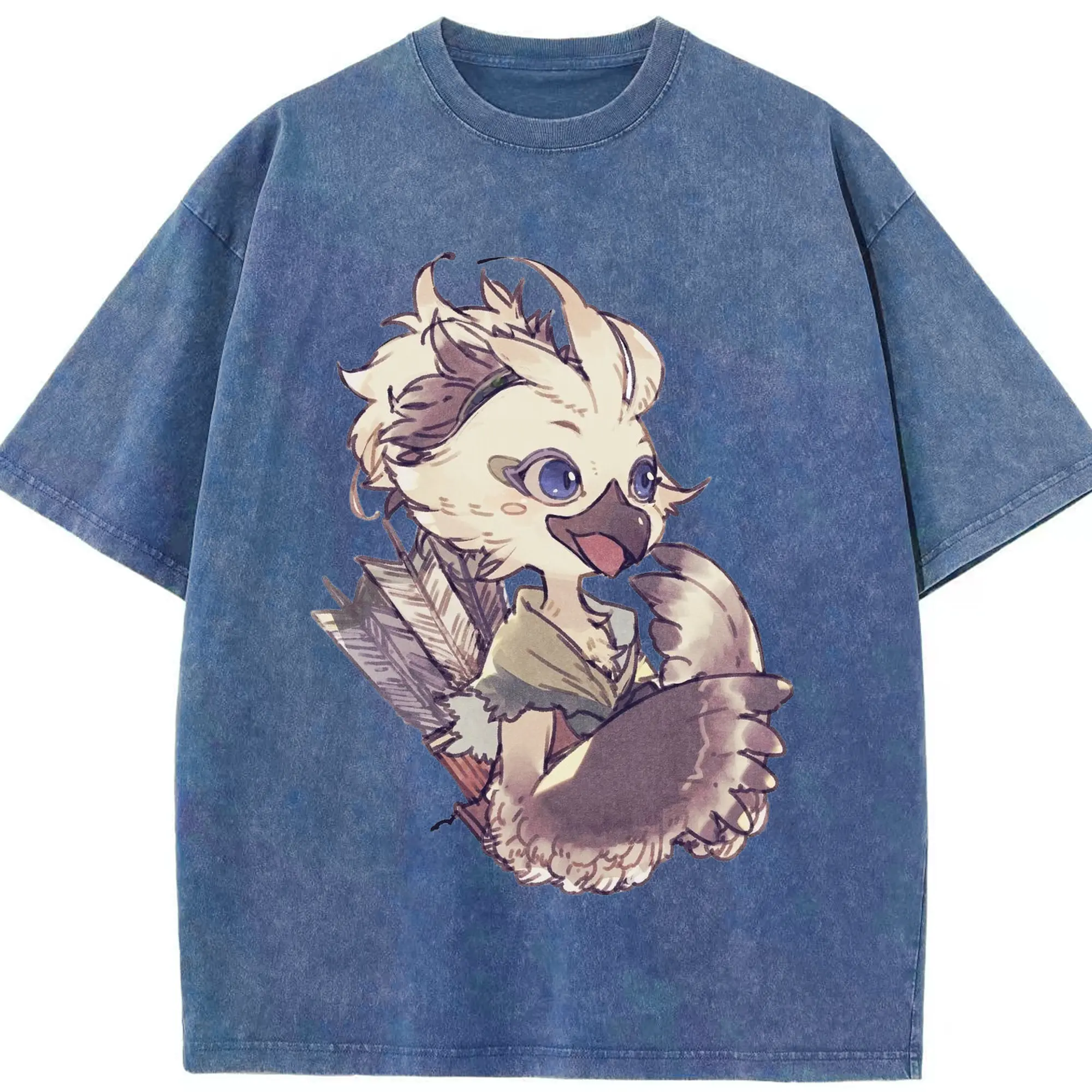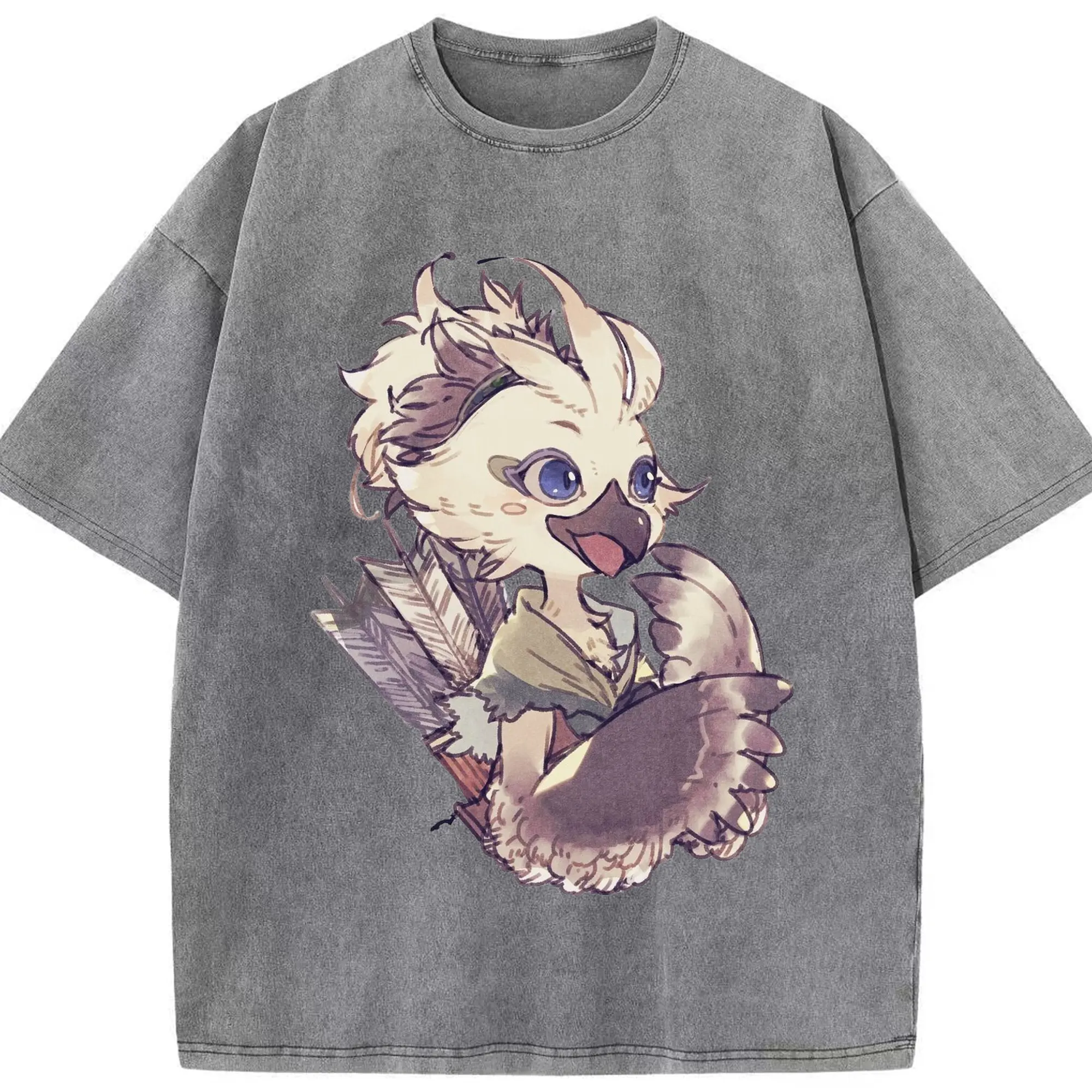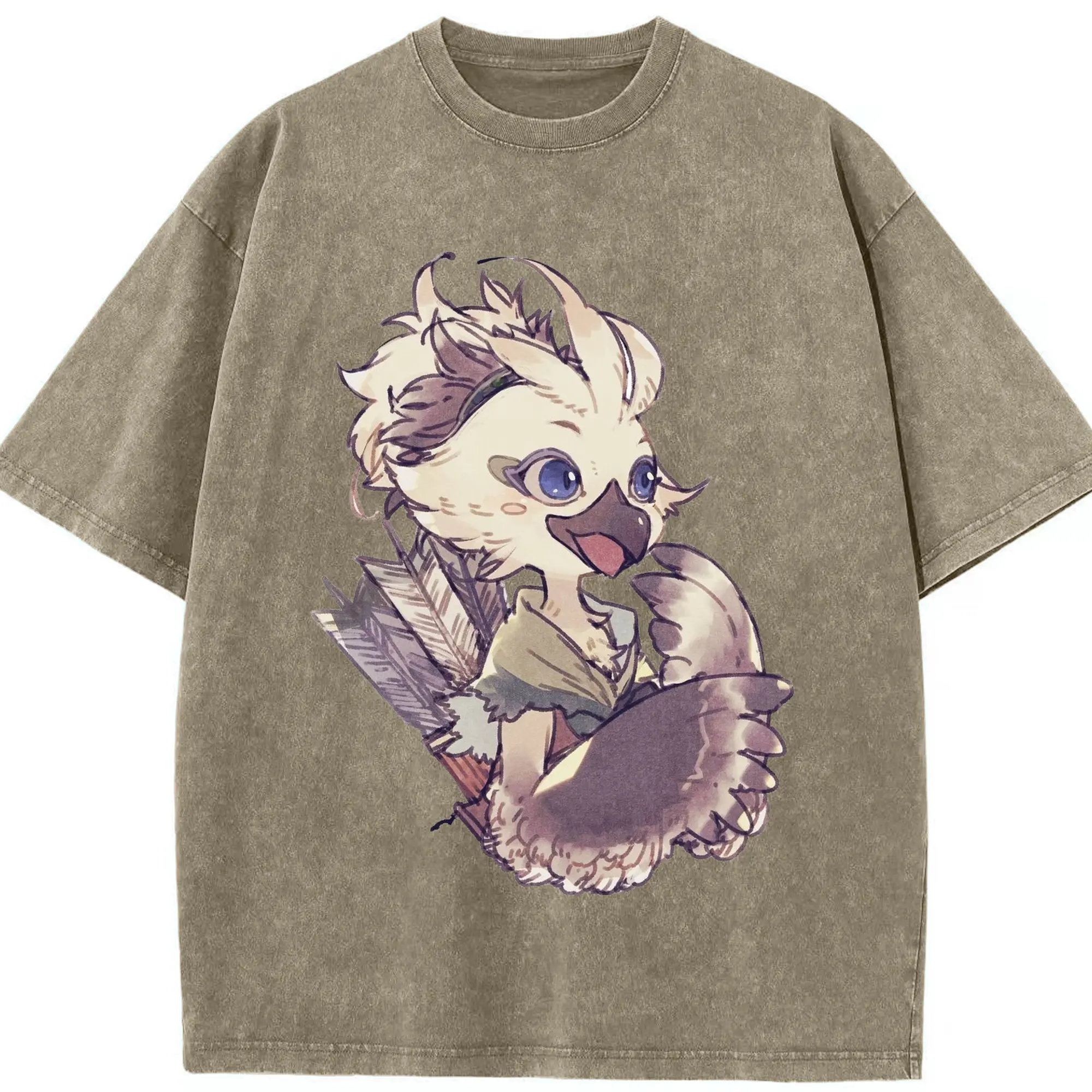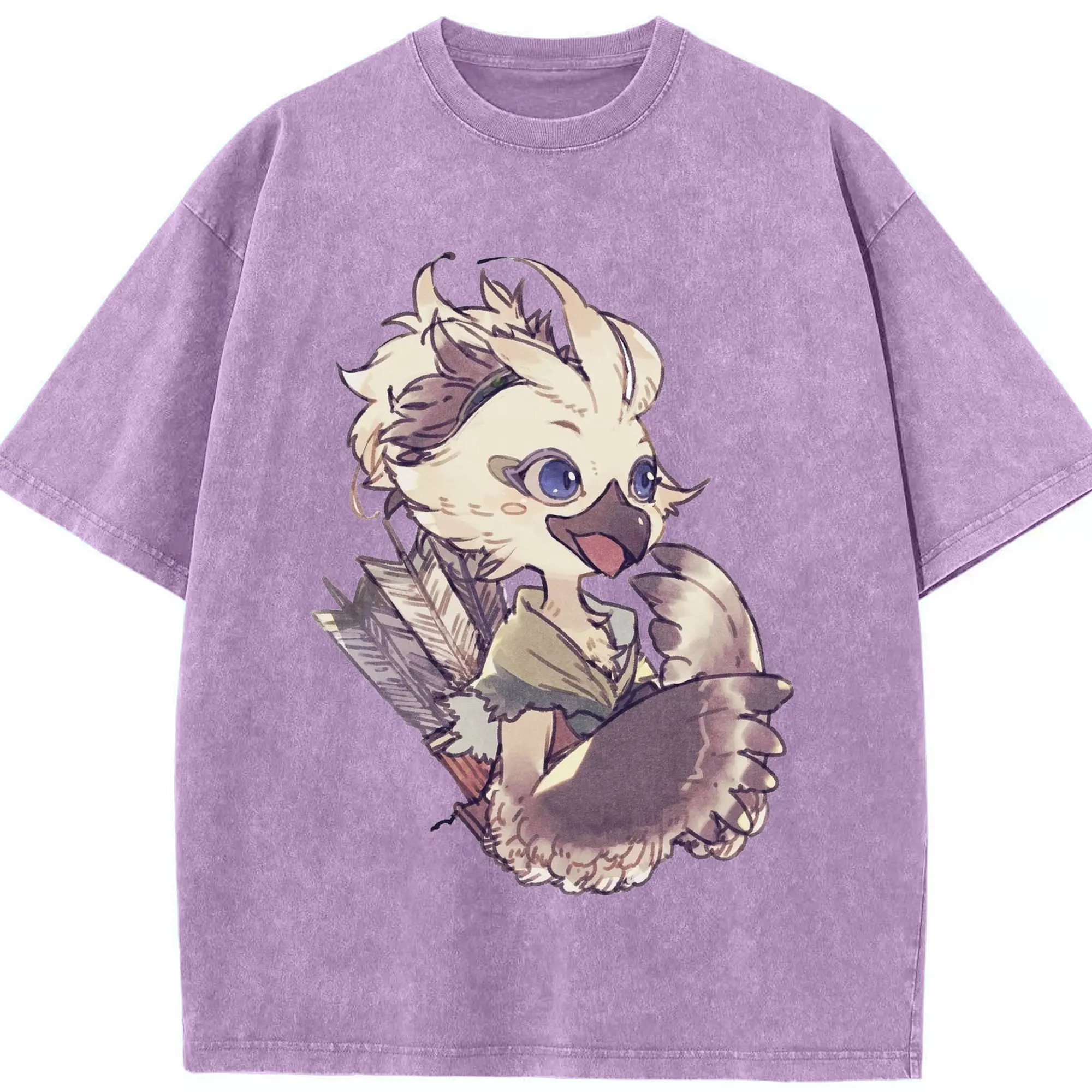 Men's the legend of zelda Tulin graphic t-shirt - Washed Vintage Look 230g Cotton Oversized T-Shirt With Front Heat Transfer Print – Soft, Lightweight, Stylish Fit – Comfortable Casual Wear For Sports & Everyday Use