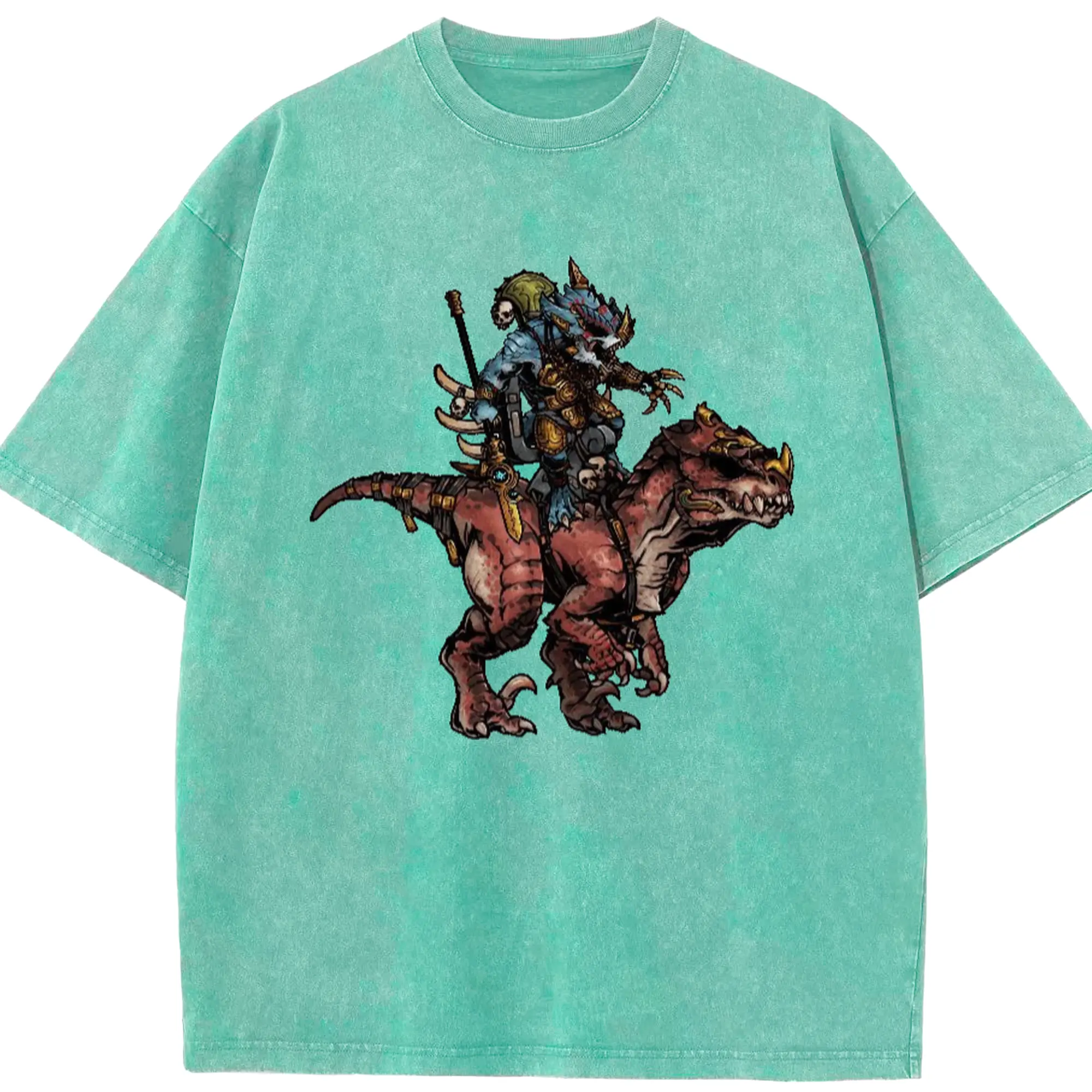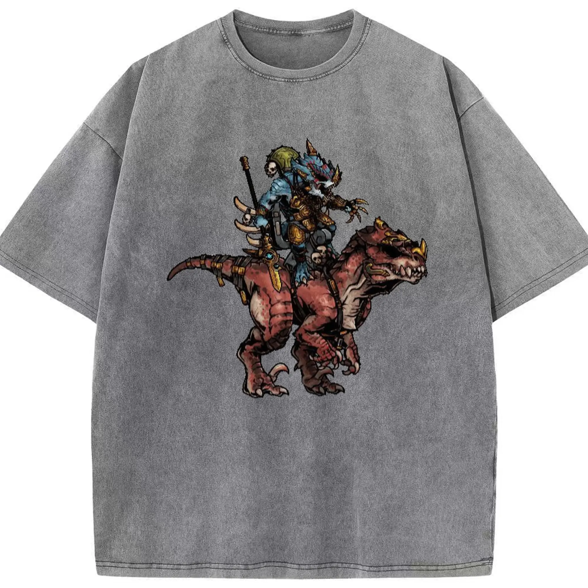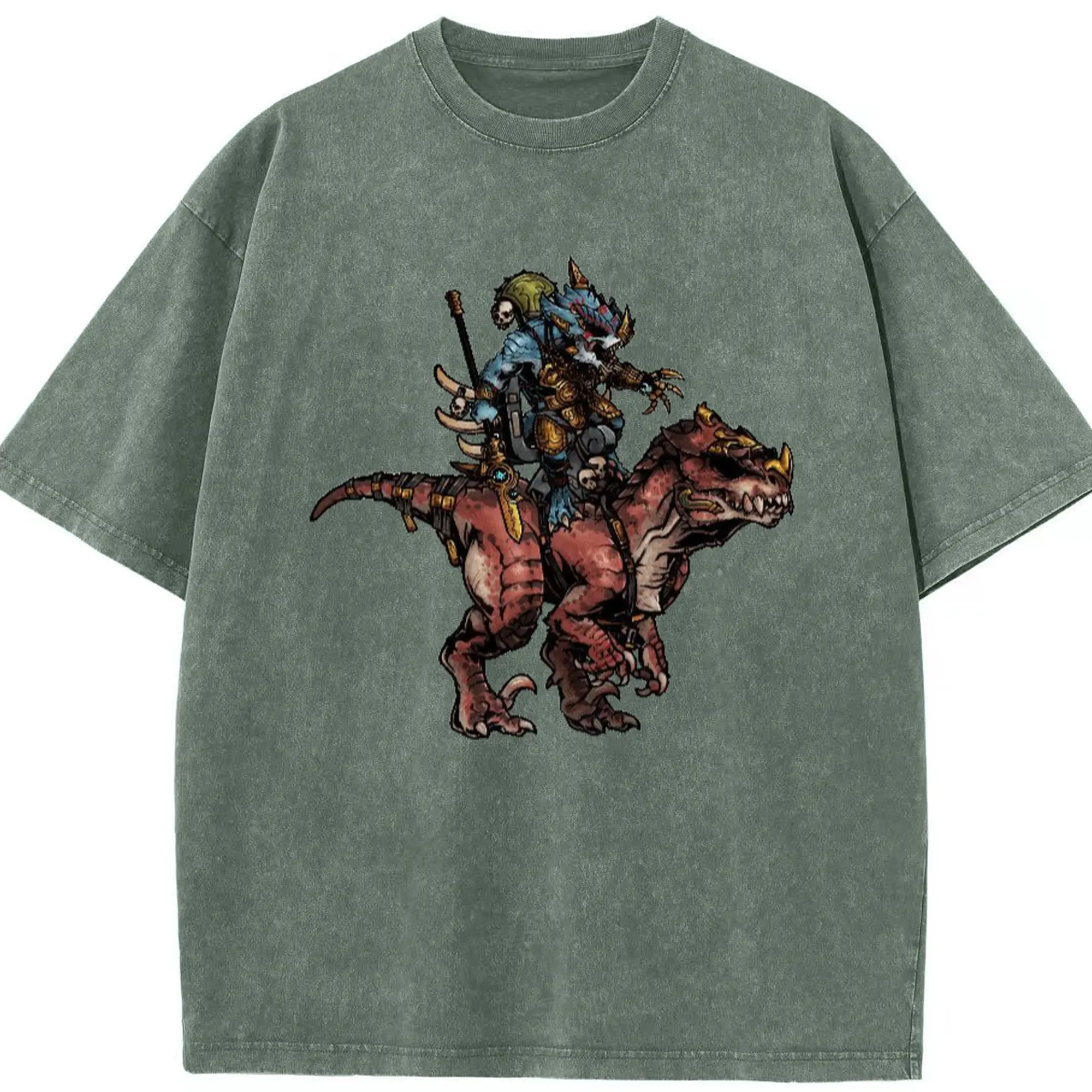 Men's total war warhammer Lizardmen t shirt​ - Washed Vintage Look 230g Cotton Oversized T-Shirt With Front Heat Transfer Print – Soft, Lightweight, Stylish Fit – Comfortable Casual Wear For Sports & Everyday Use