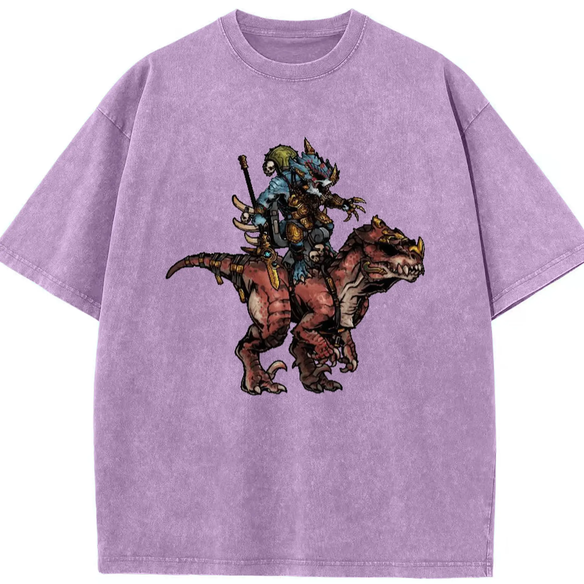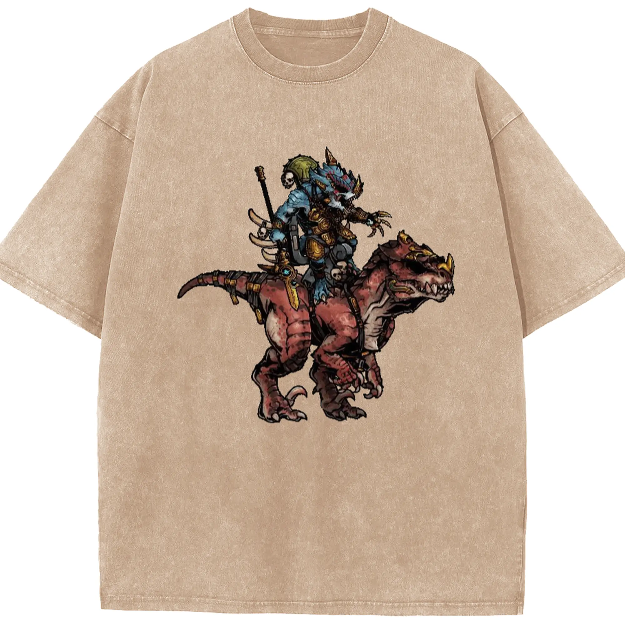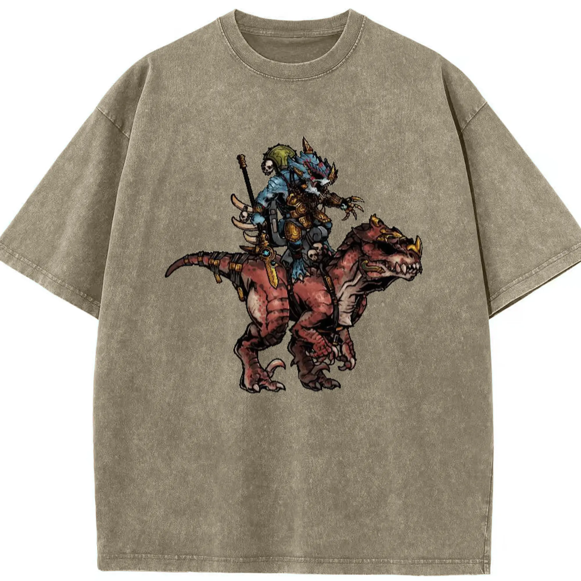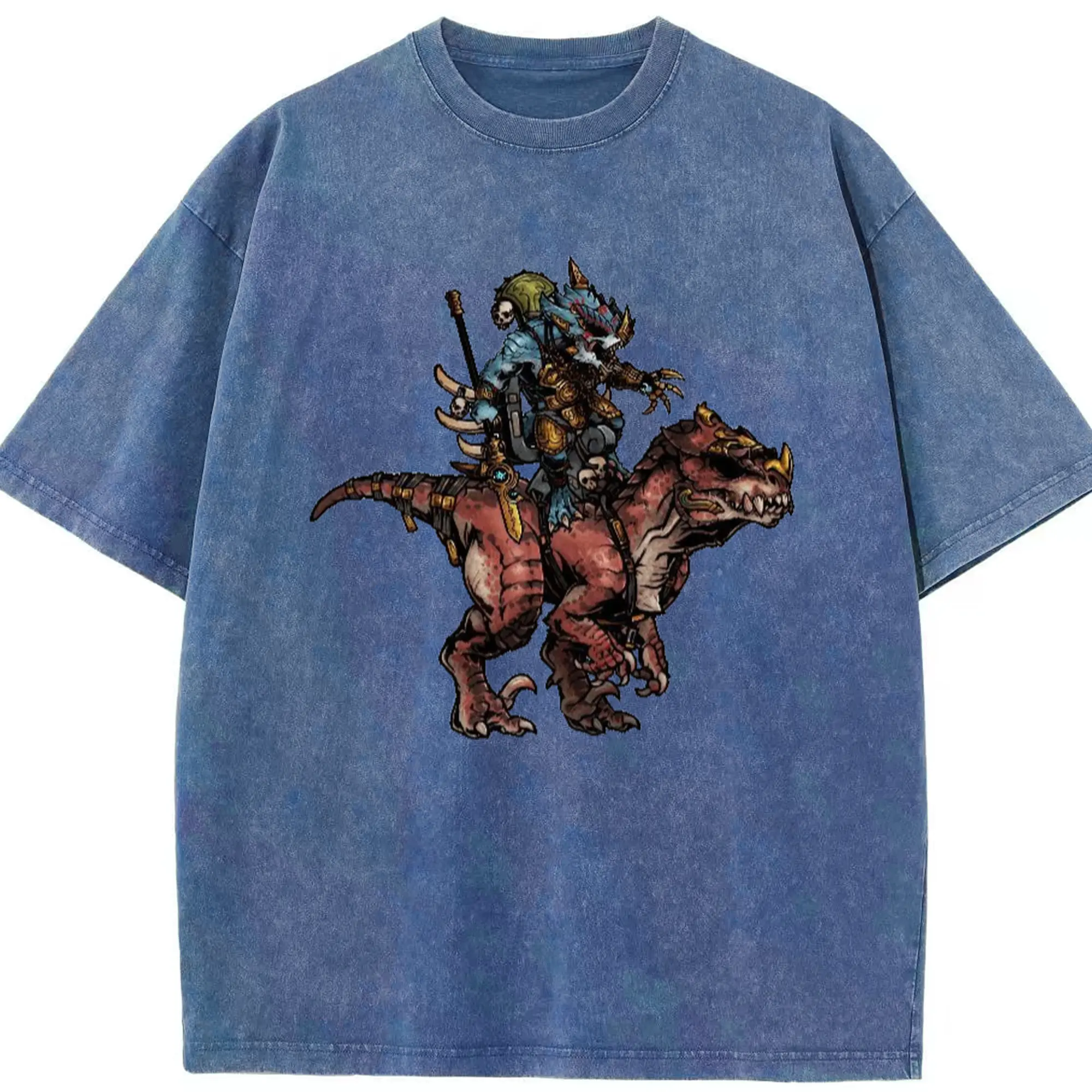 Men's total war warhammer Lizardmen t shirt​ - Washed Vintage Look 230g Cotton Oversized T-Shirt With Front Heat Transfer Print – Soft, Lightweight, Stylish Fit – Comfortable Casual Wear For Sports & Everyday Use
