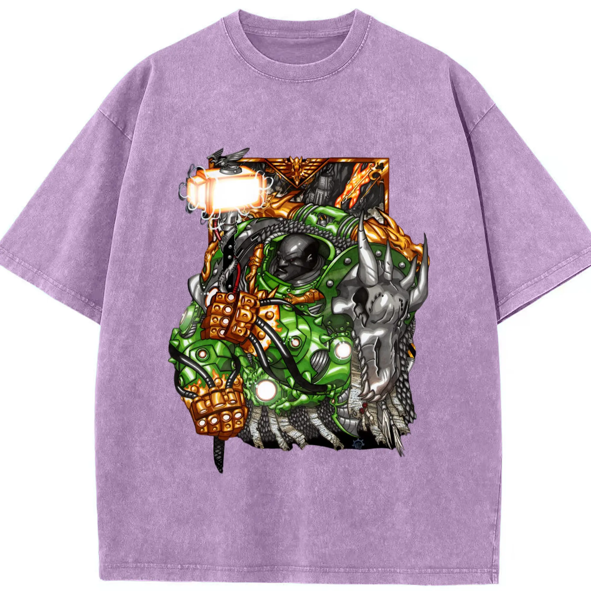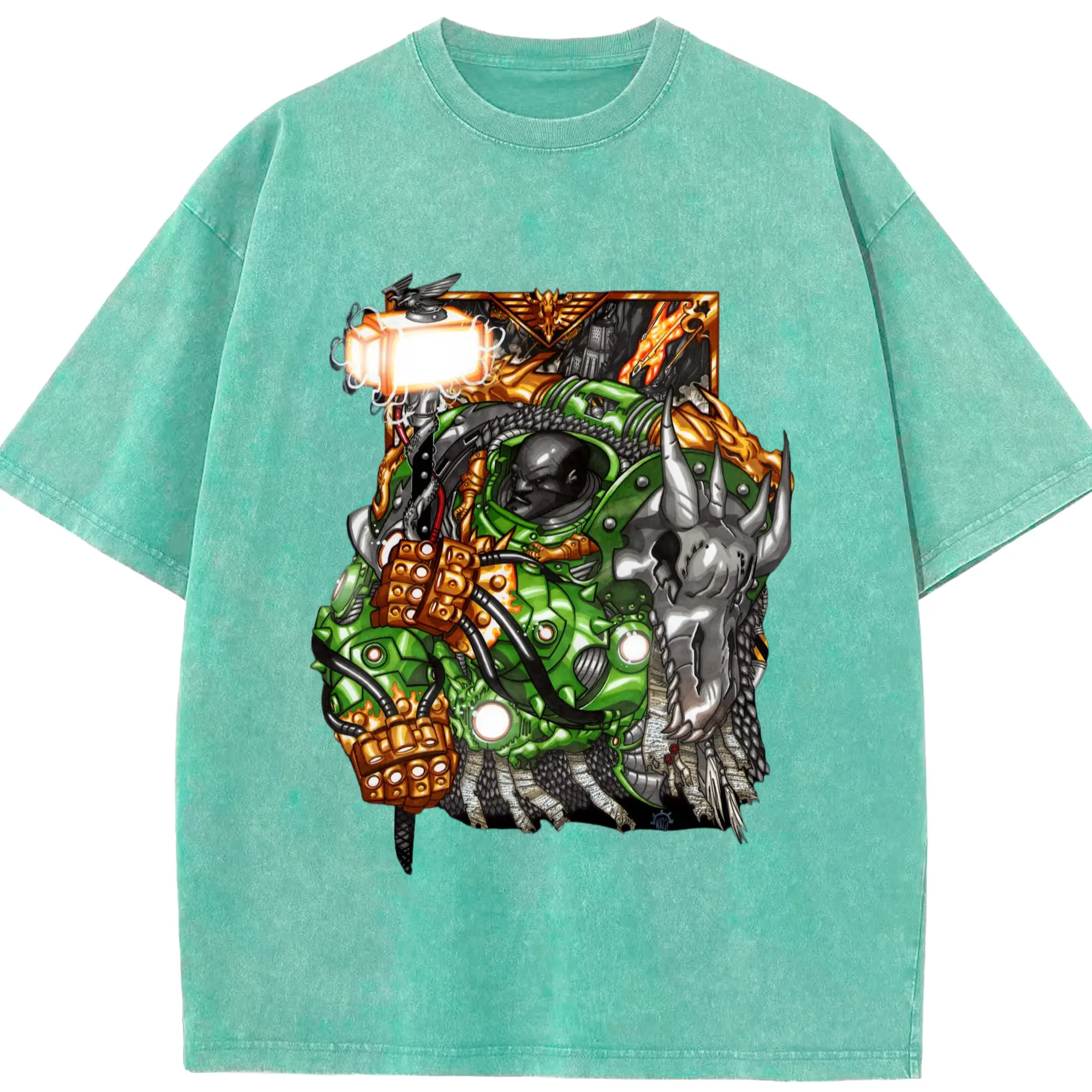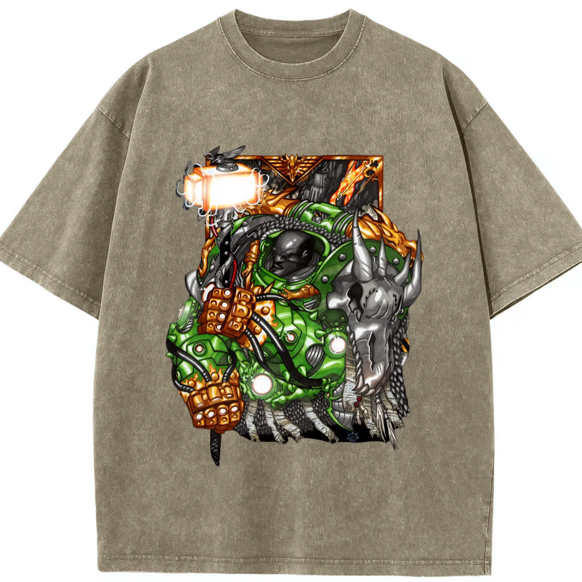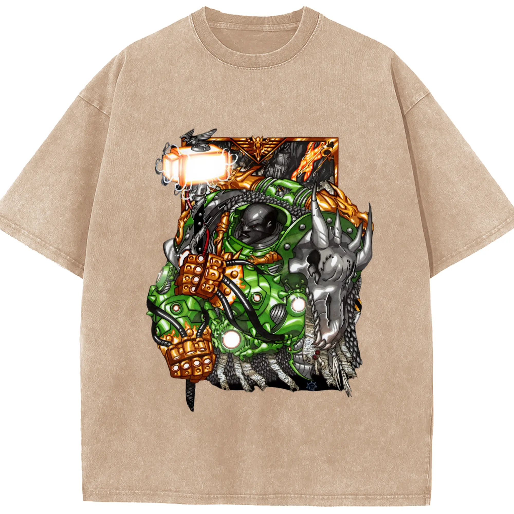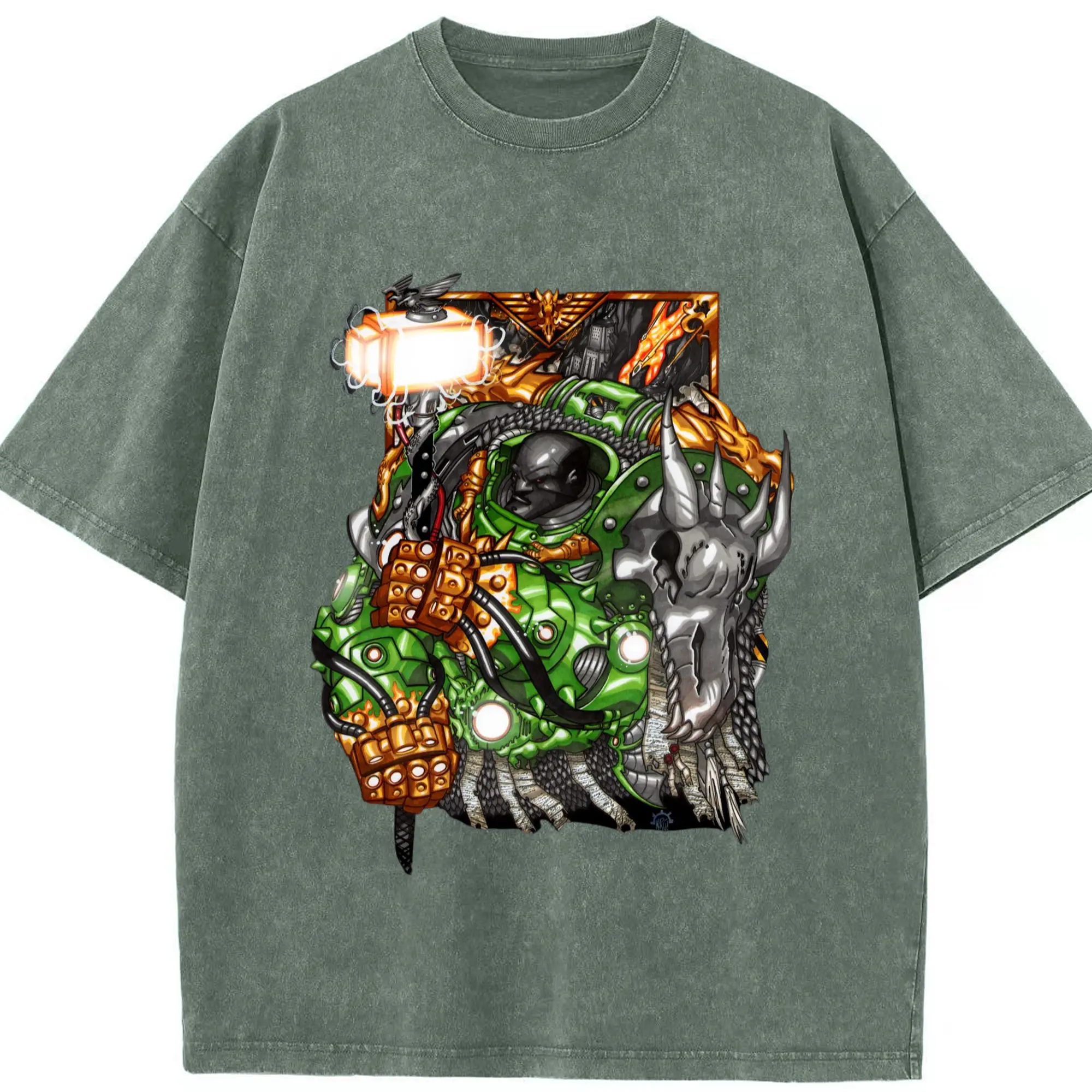 Men's warhammer 40k icon hands t-shirt - Washed Vintage Look 230g Cotton Oversized T-Shirt With Front Heat Transfer Print – Soft, Lightweight, Stylish Fit – Comfortable Casual Wear For Sports & Everyday Use