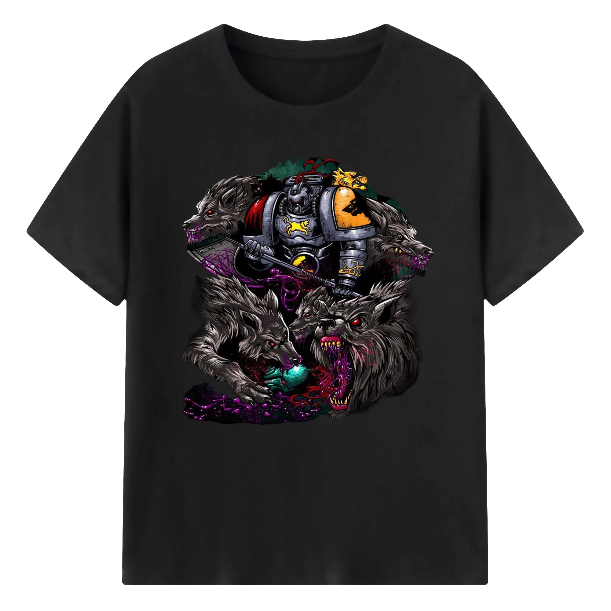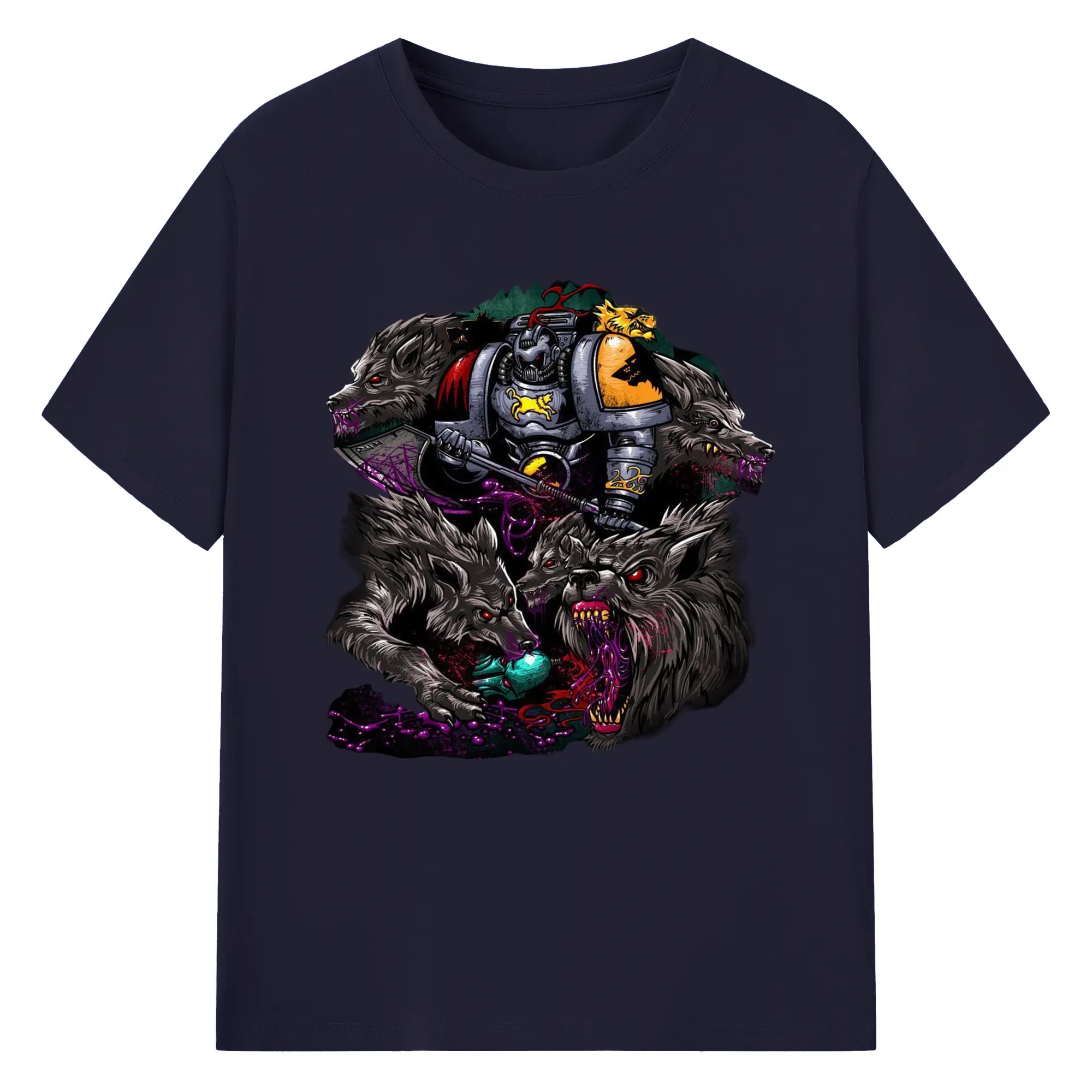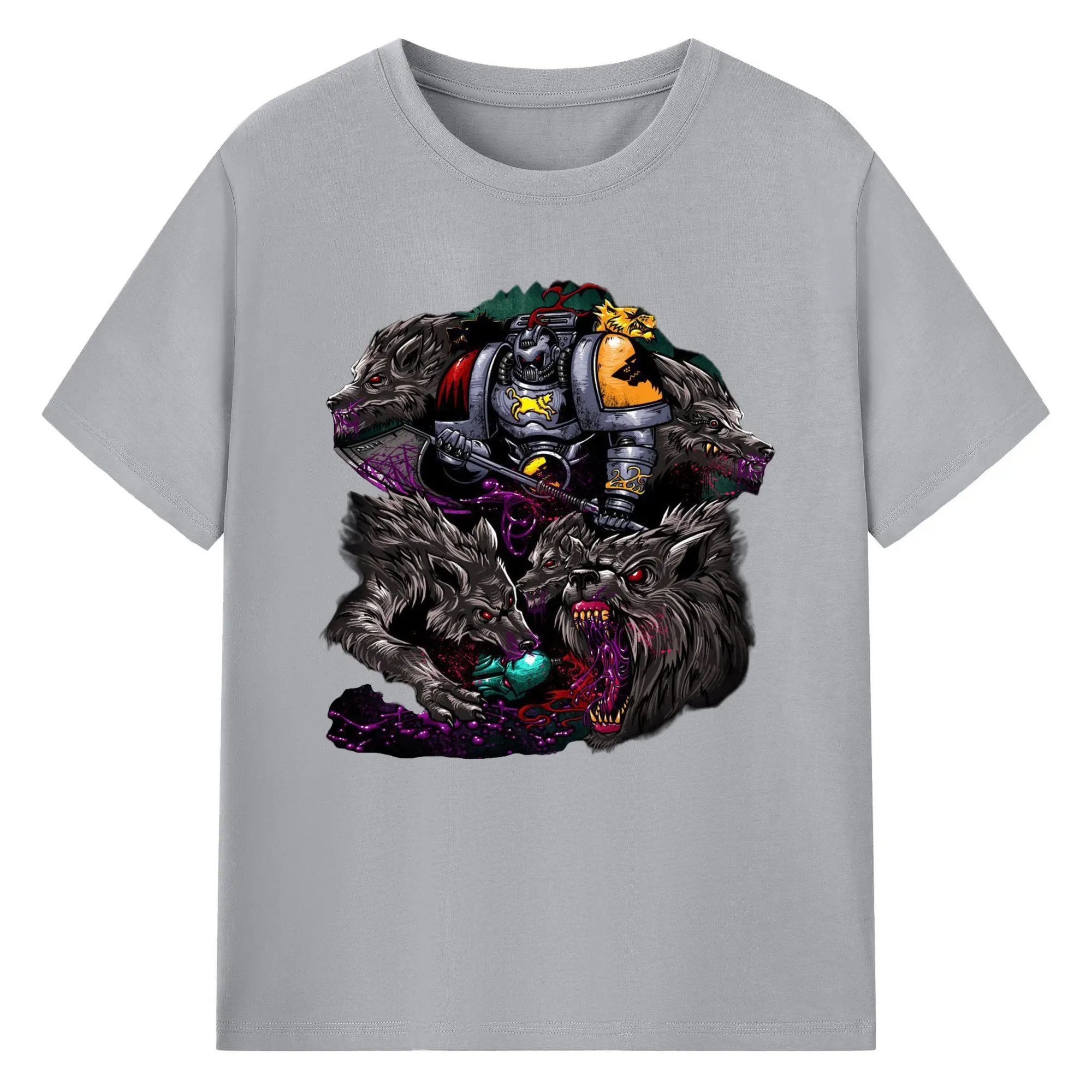 Men's warhammer 40k Space Wolves t-shirt - 180g Cotton T-Shirt With Front Heat Transfer Print – Soft, Lightweight, Fitted Design – Comfortable Casual Wear For Sports & Everyday Use