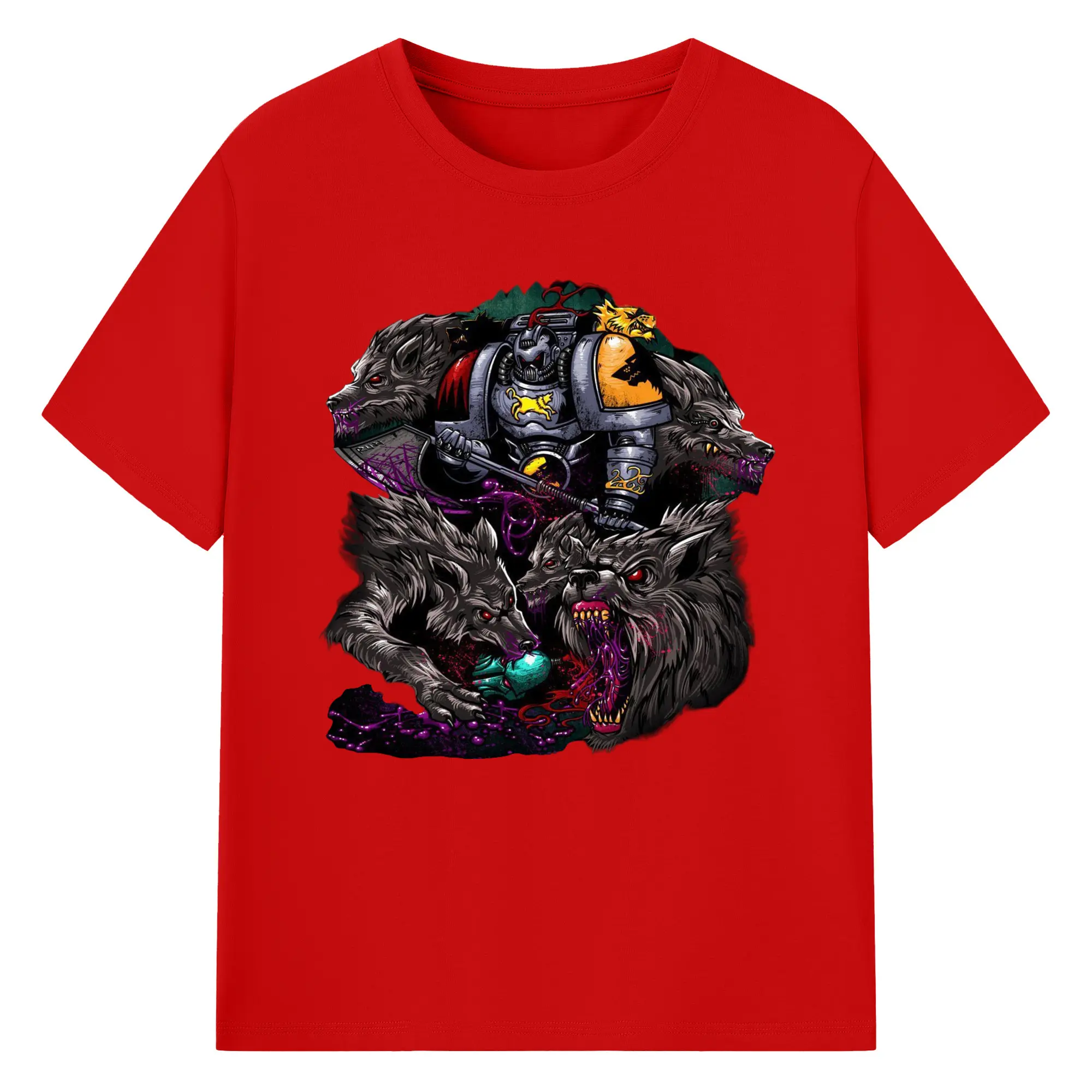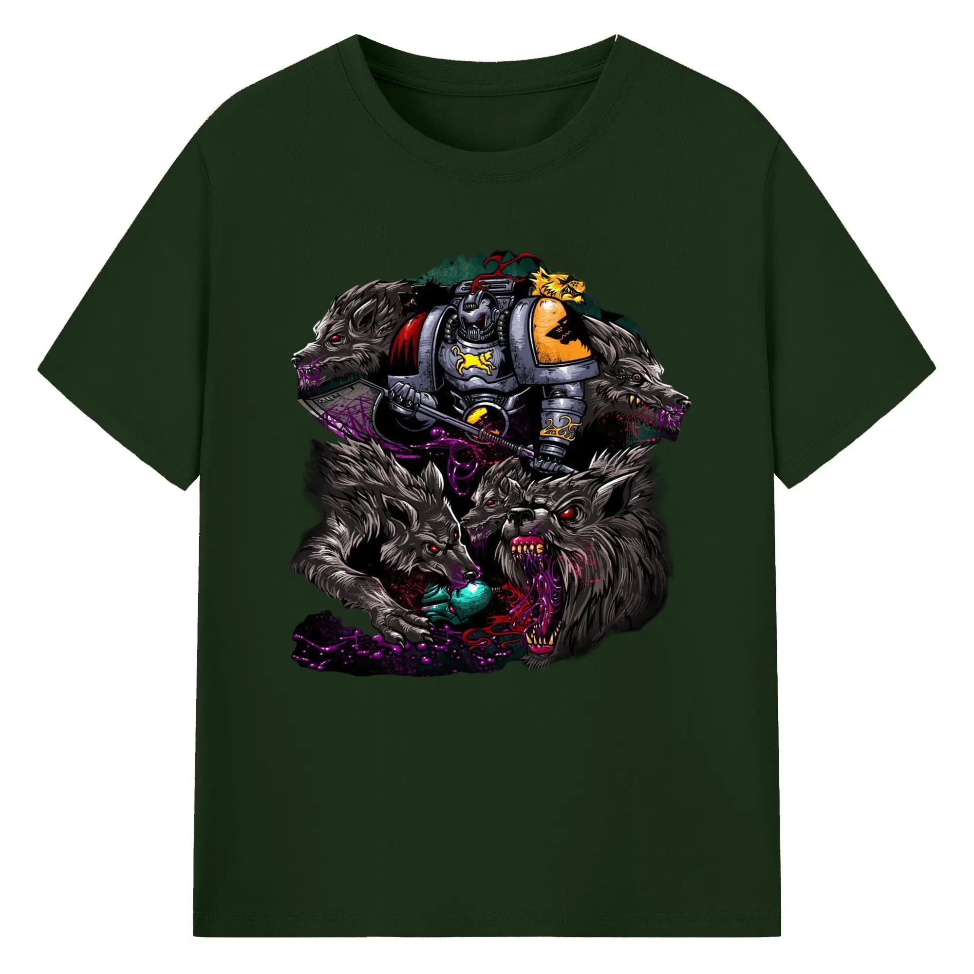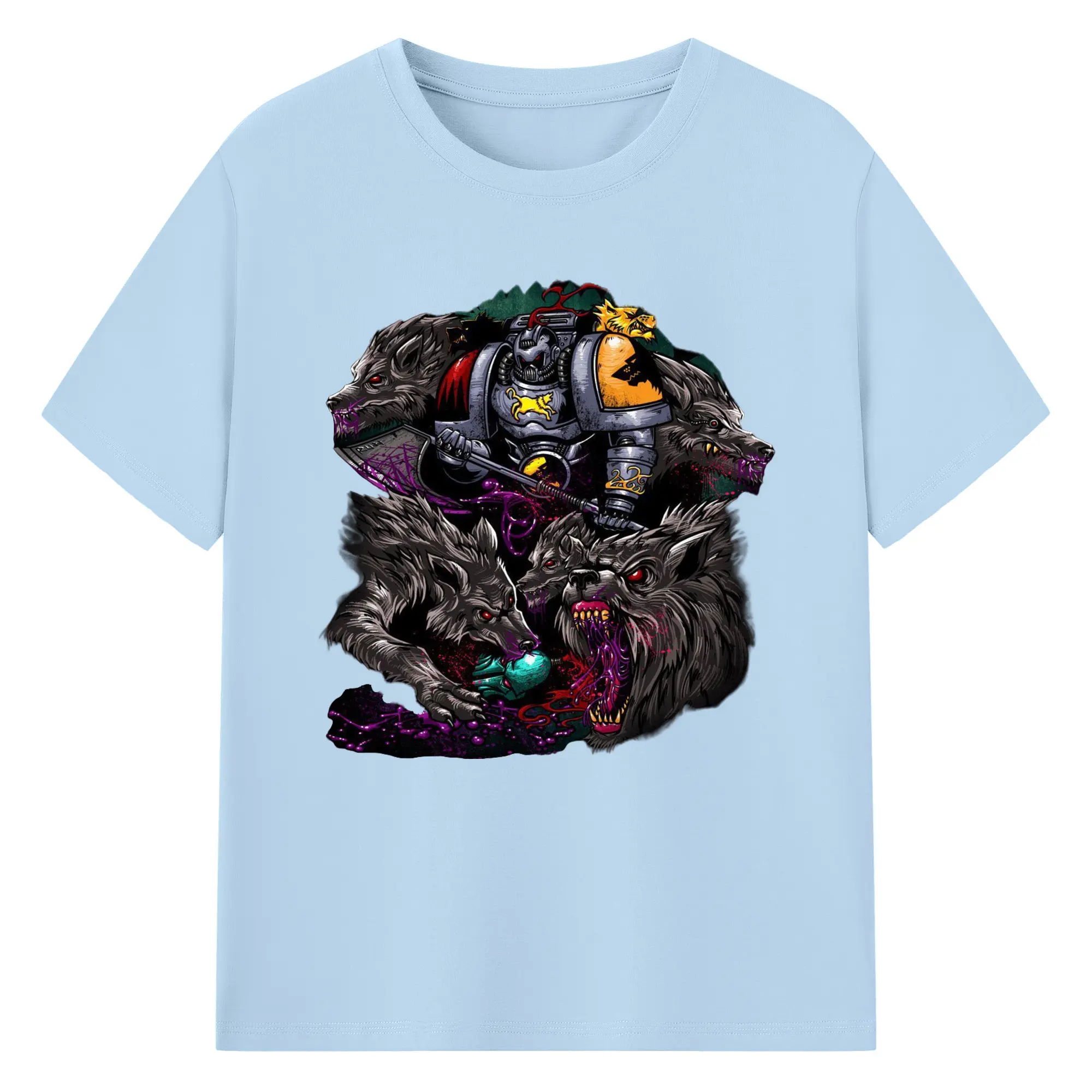 Men's warhammer 40k Space Wolves t-shirt - 180g Cotton T-Shirt With Front Heat Transfer Print – Soft, Lightweight, Fitted Design – Comfortable Casual Wear For Sports & Everyday Use