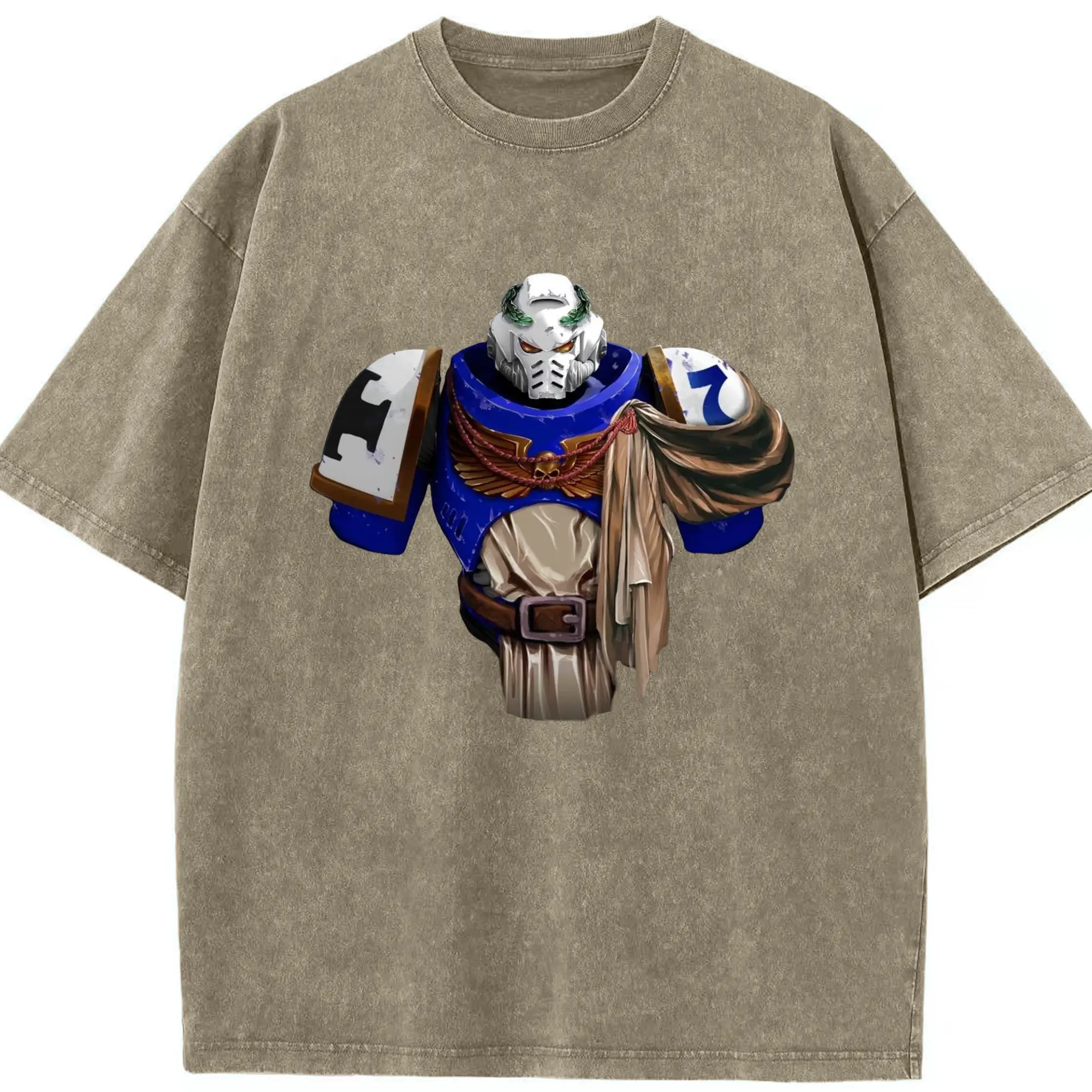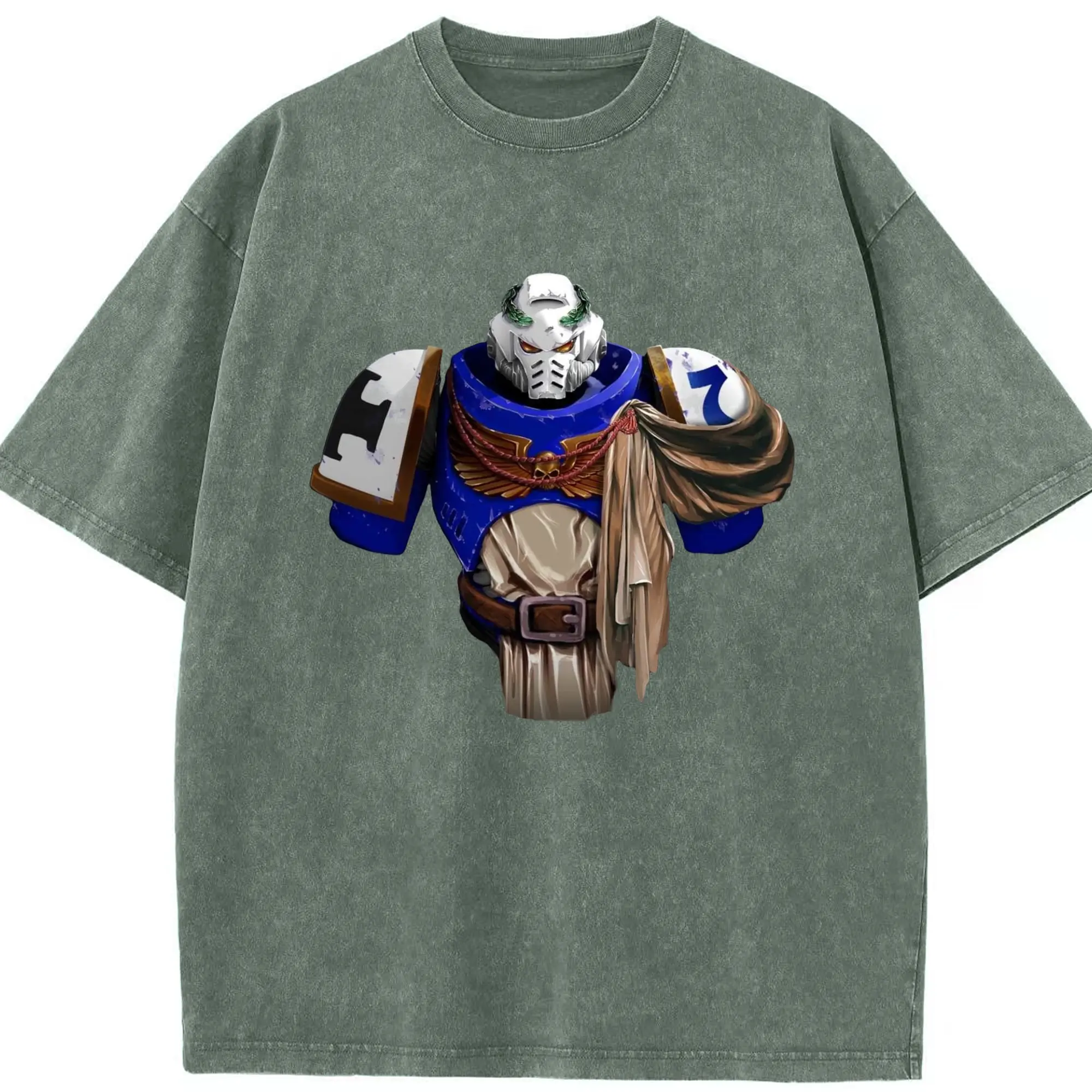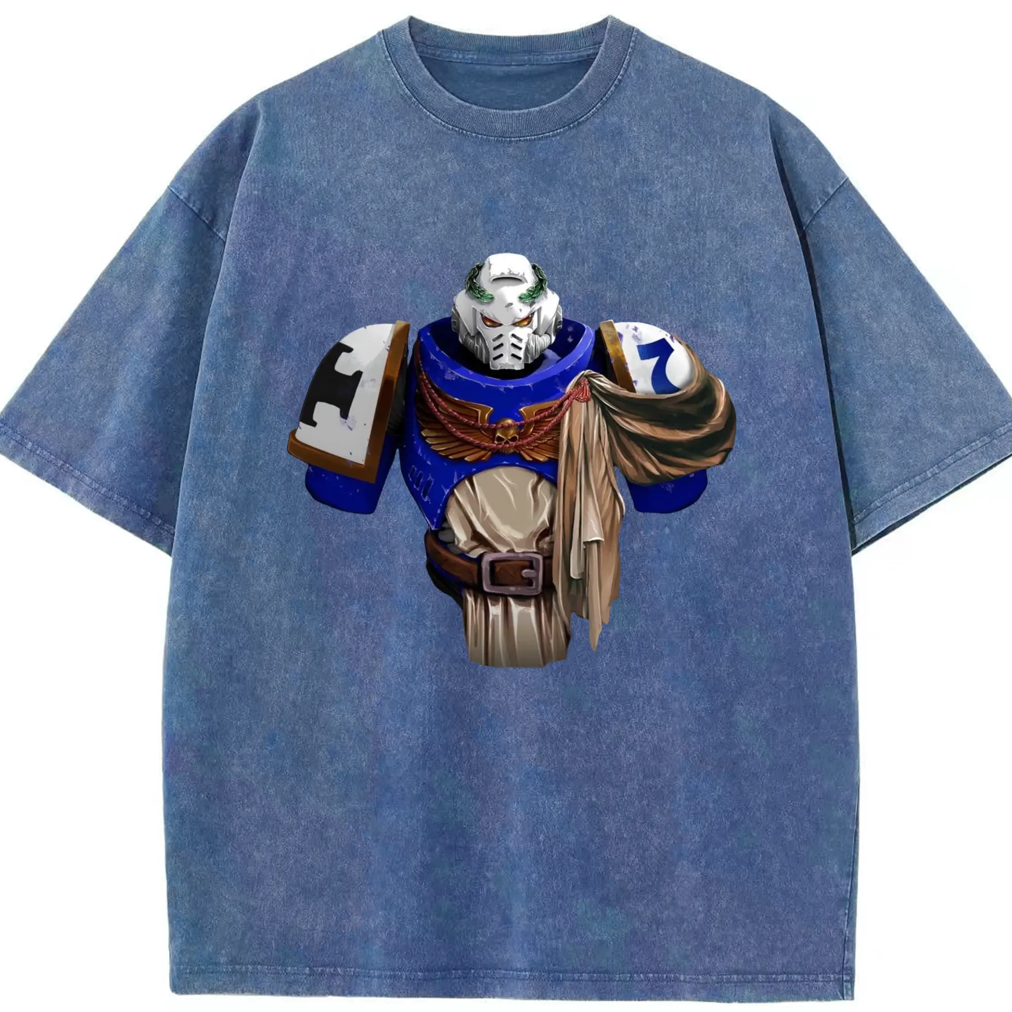 Men's warhammer 40k ultramarines t-shirt - Washed Vintage Look 230g Cotton Oversized T-Shirt With Front Heat Transfer Print – Soft, Lightweight, Stylish Fit – Comfortable Casual Wear For Sports & Everyday Use