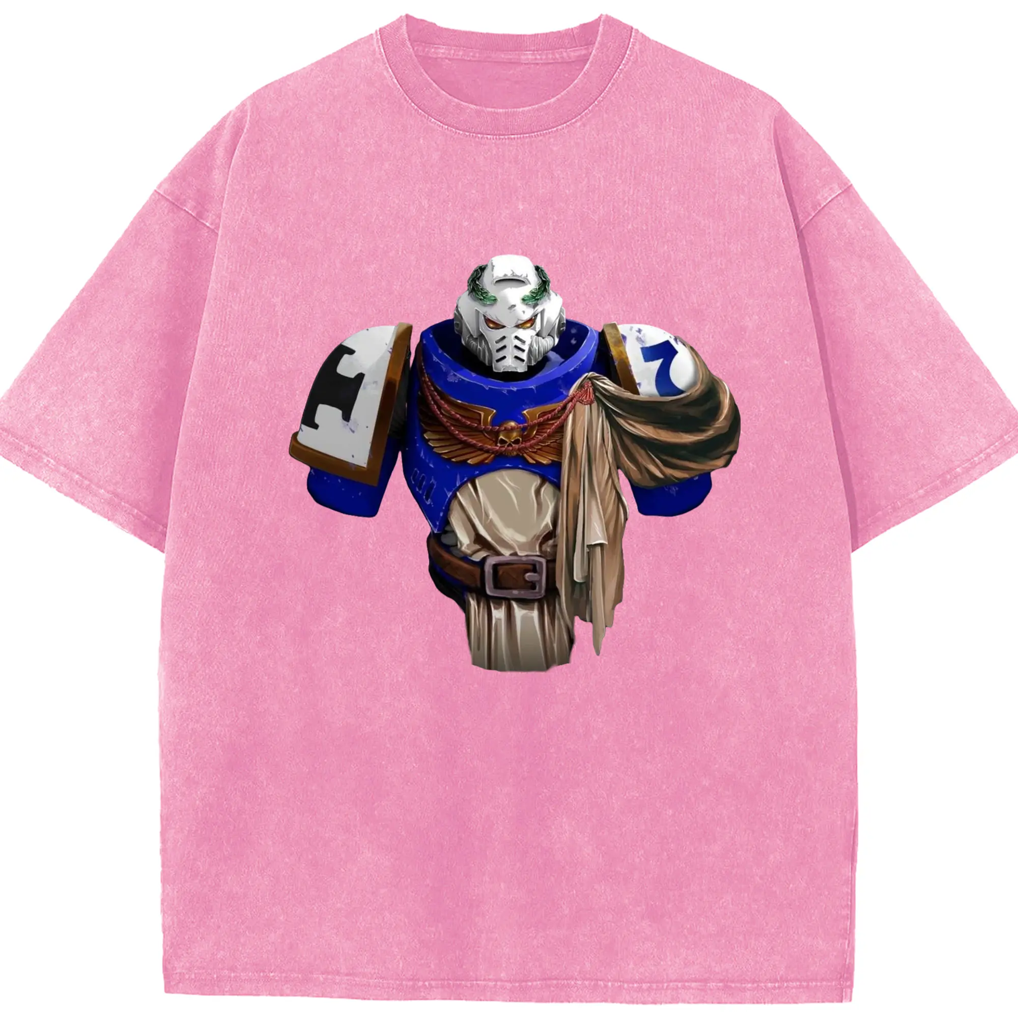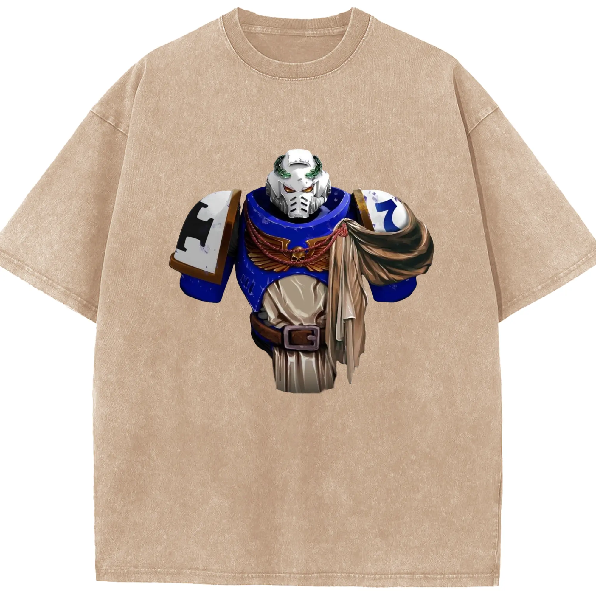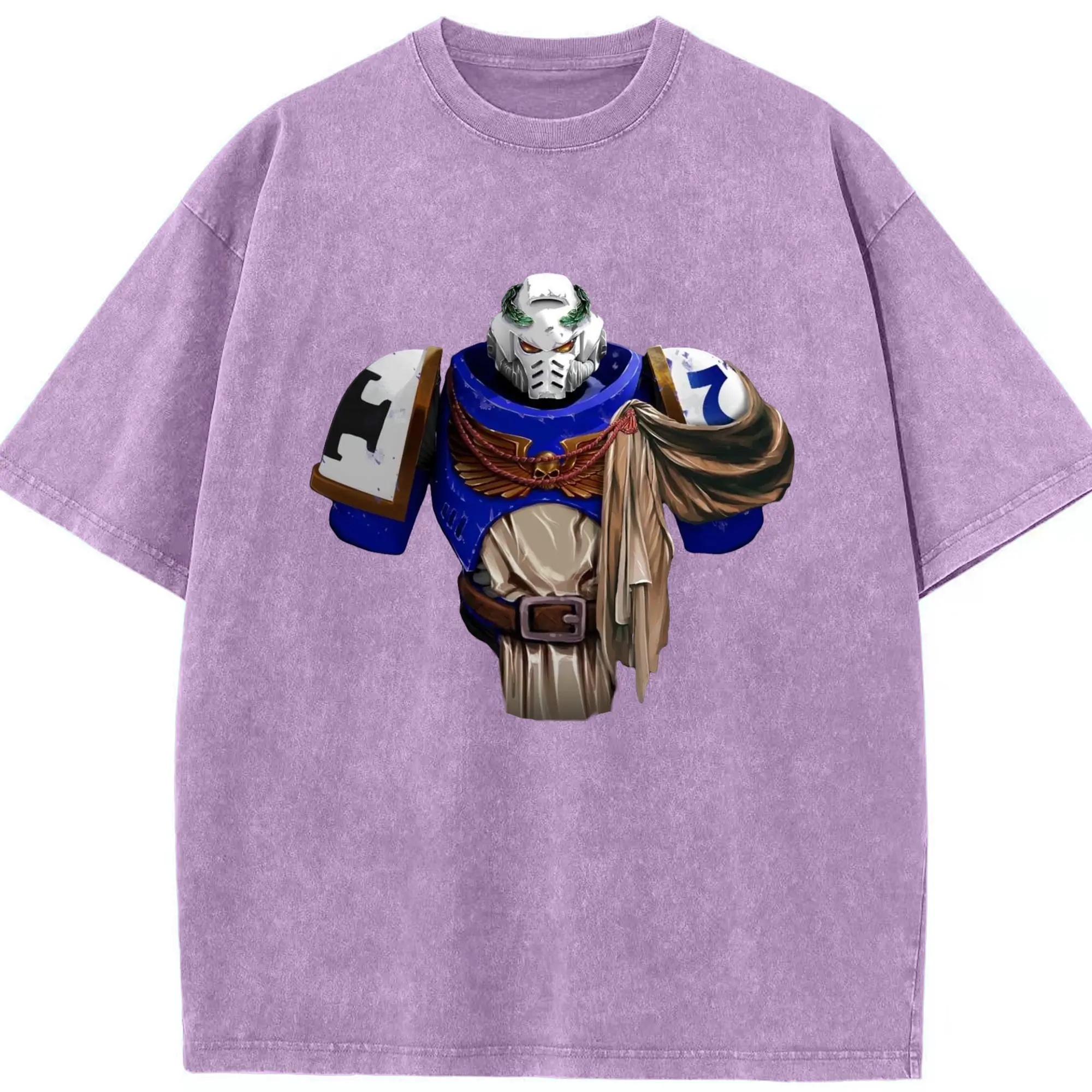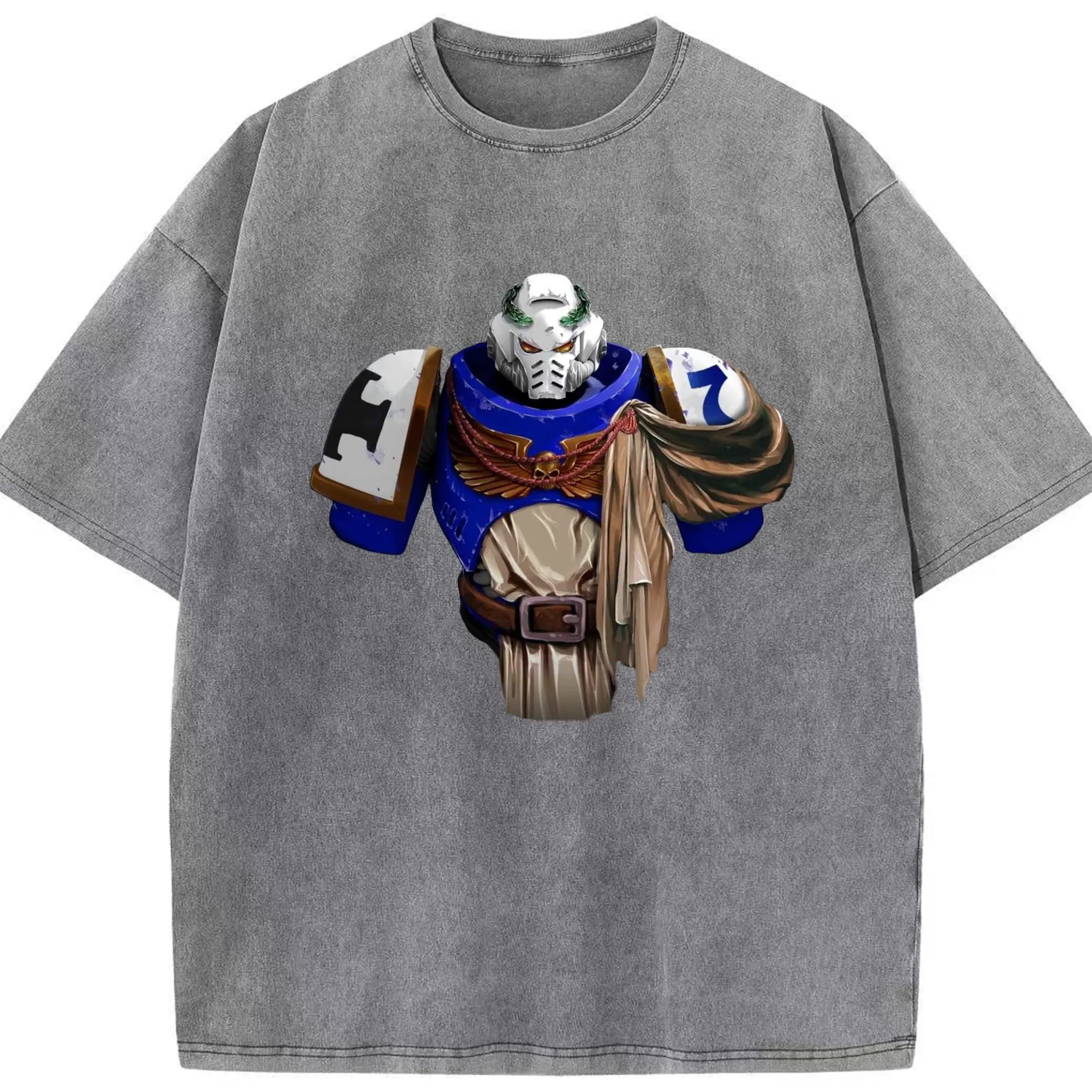 Men's warhammer 40k ultramarines t-shirt - Washed Vintage Look 230g Cotton Oversized T-Shirt With Front Heat Transfer Print – Soft, Lightweight, Stylish Fit – Comfortable Casual Wear For Sports & Everyday Use