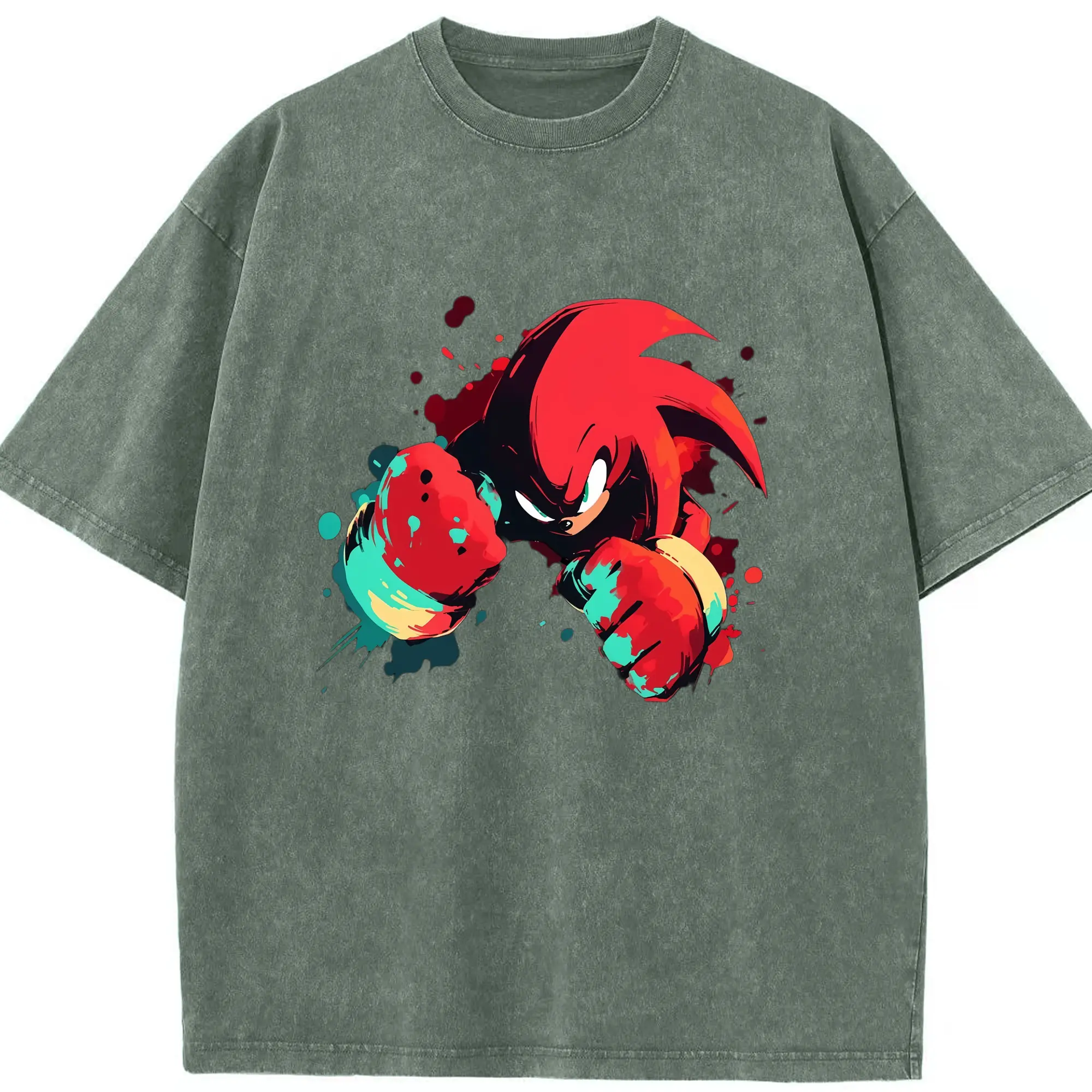 Men's Knuckles printrd shirt - Washed Vintage Look 230g Cotton Oversized T-Shirt With Front Heat Transfer Print – Soft, Lightweight, Stylish Fit – Comfortable Casual Wear For Sports & Everyday Use