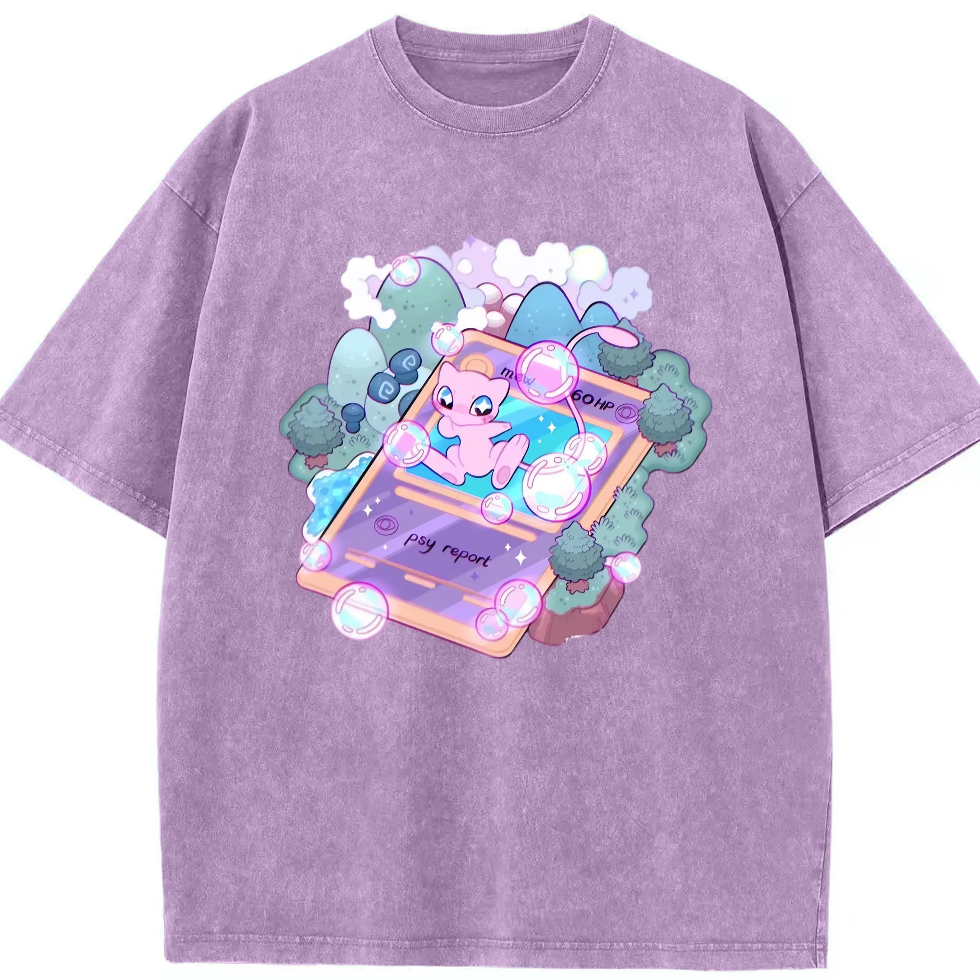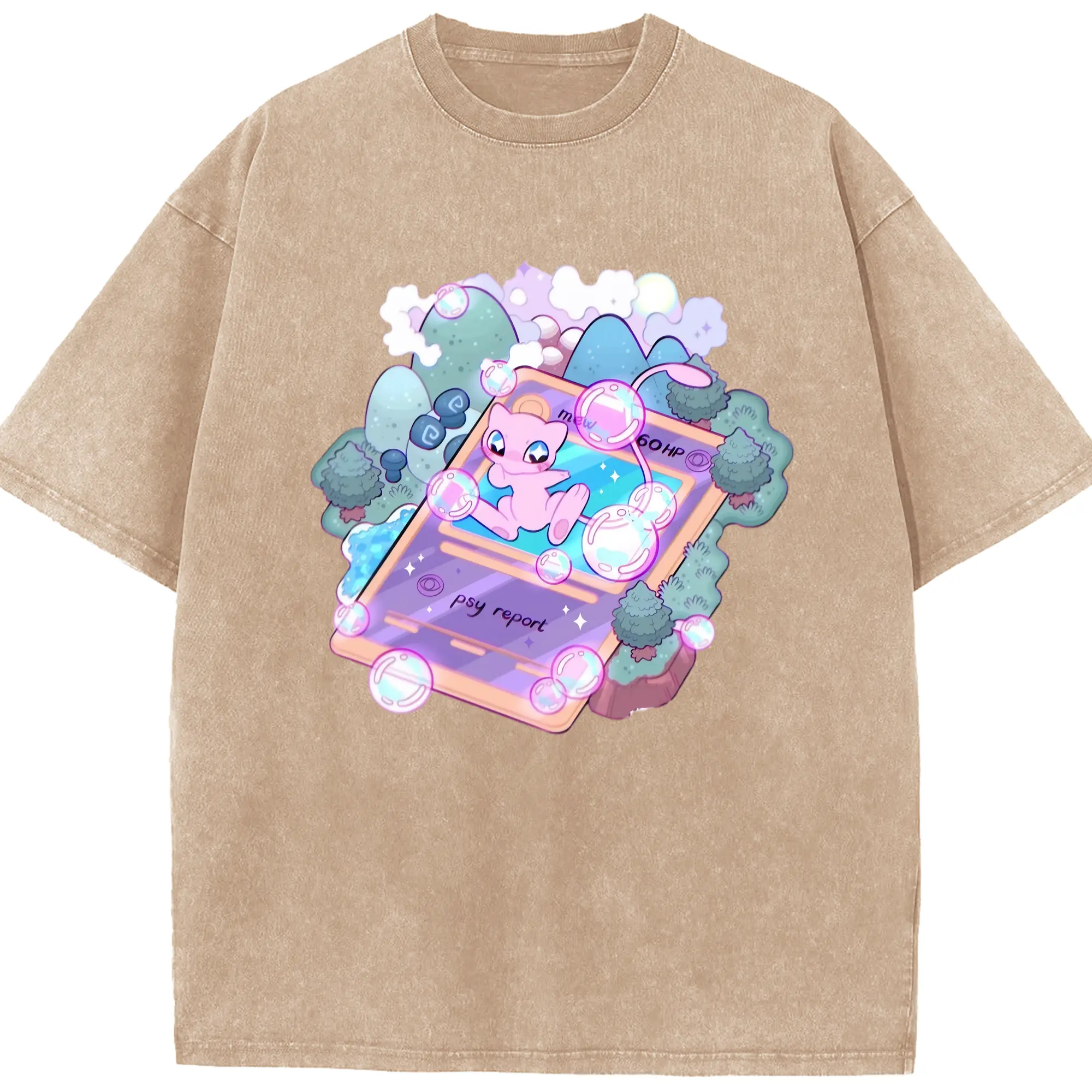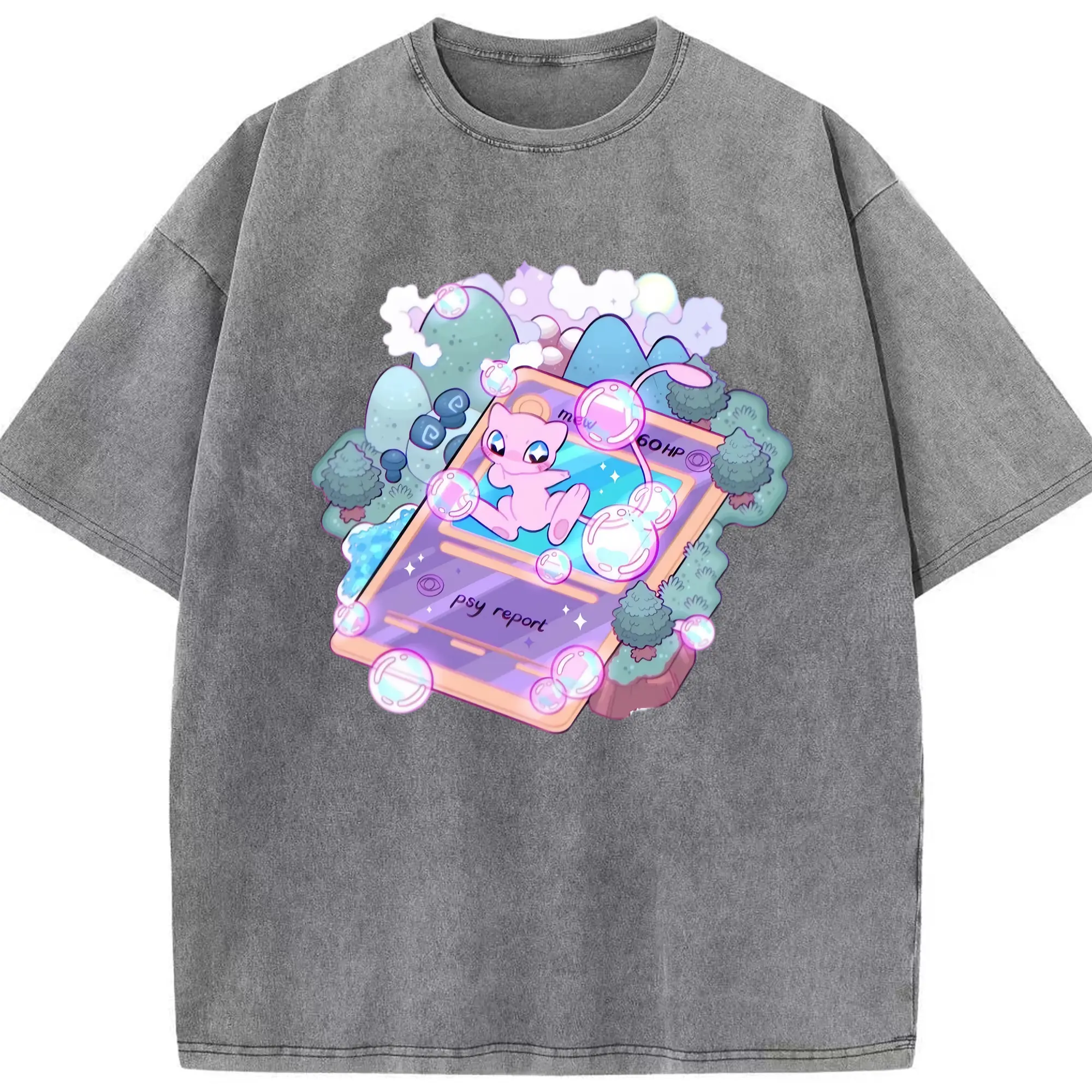 Men's mew Graphic Tee - Washed Vintage Look 230g Cotton Oversized T-Shirt With Front Heat Transfer Print – Soft, Lightweight, Stylish Fit – Comfortable Casual Wear For Sports & Everyday Use