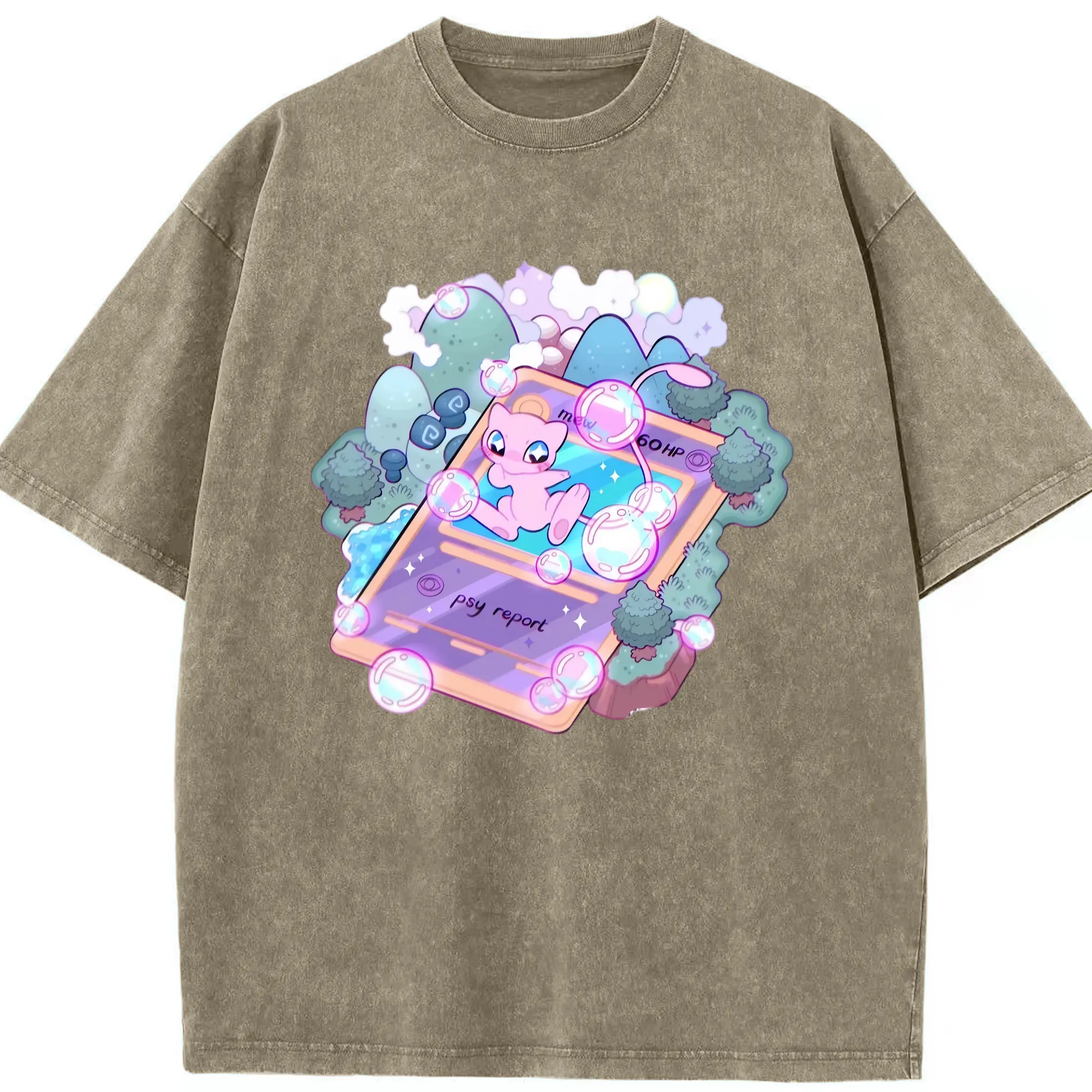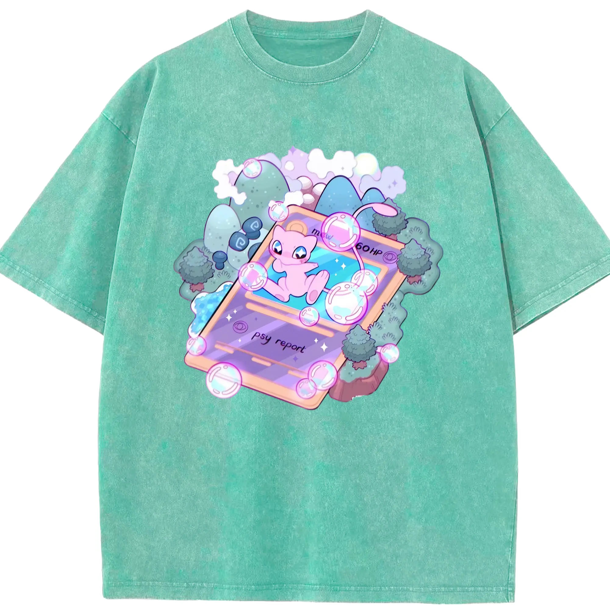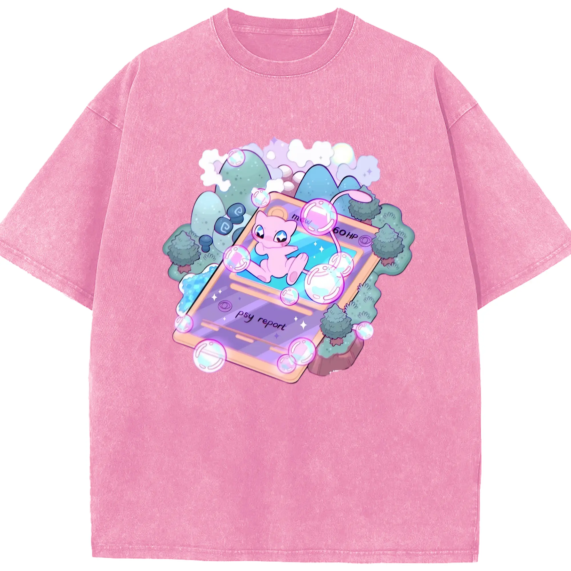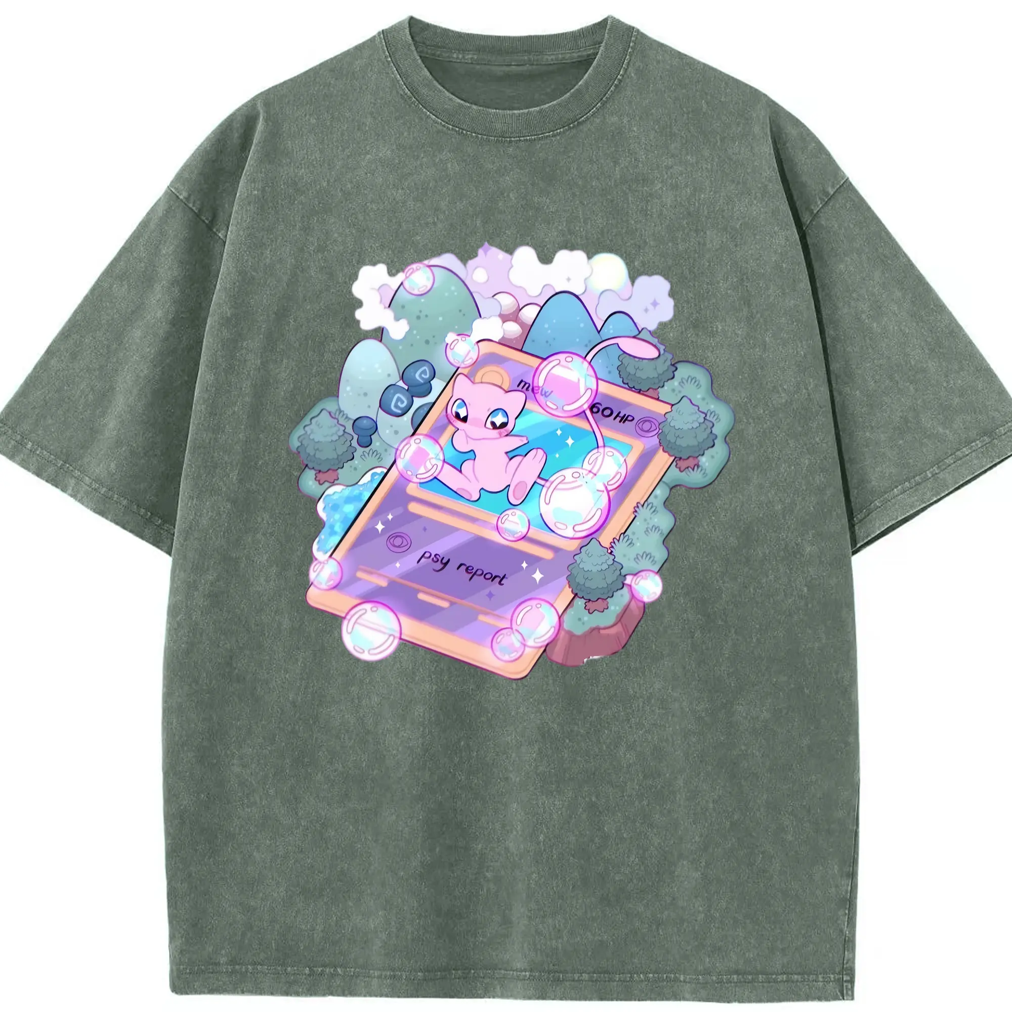 Men's mew Graphic Tee - Washed Vintage Look 230g Cotton Oversized T-Shirt With Front Heat Transfer Print – Soft, Lightweight, Stylish Fit – Comfortable Casual Wear For Sports & Everyday Use