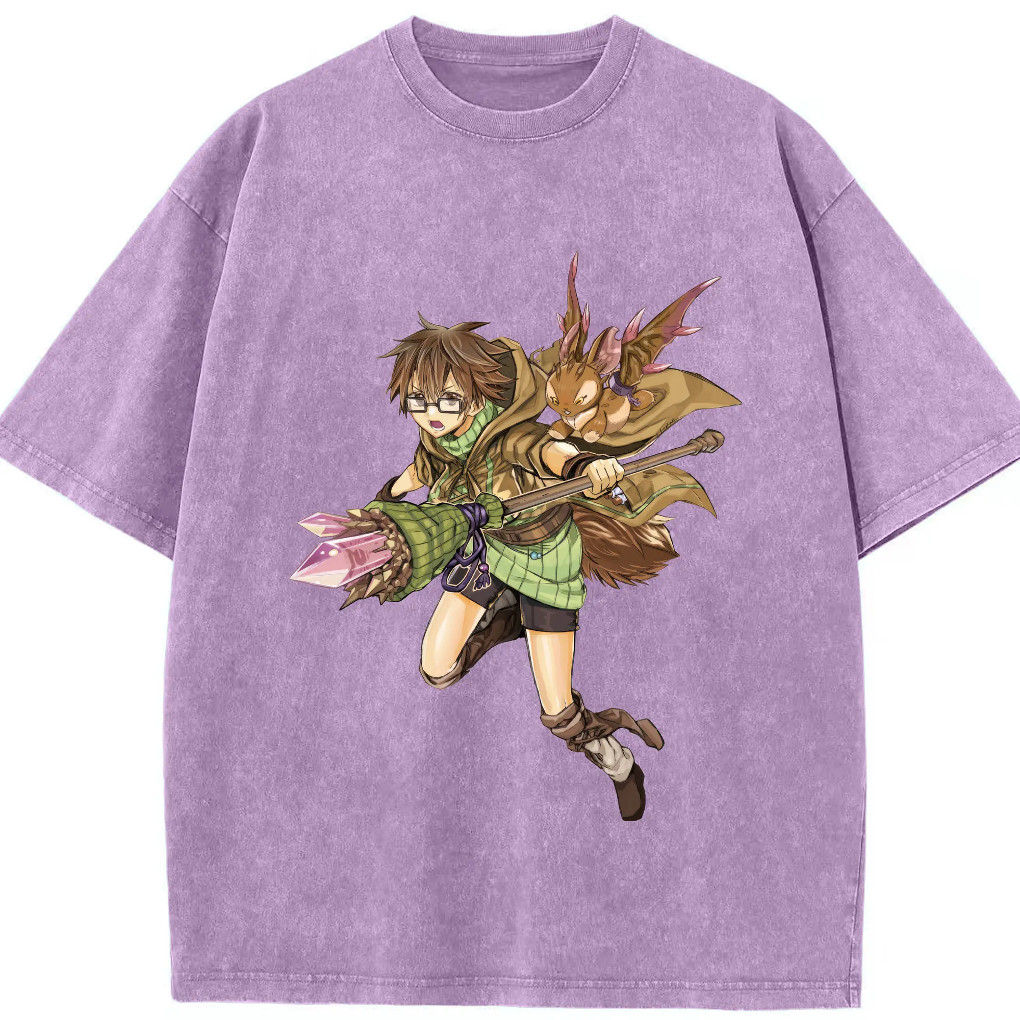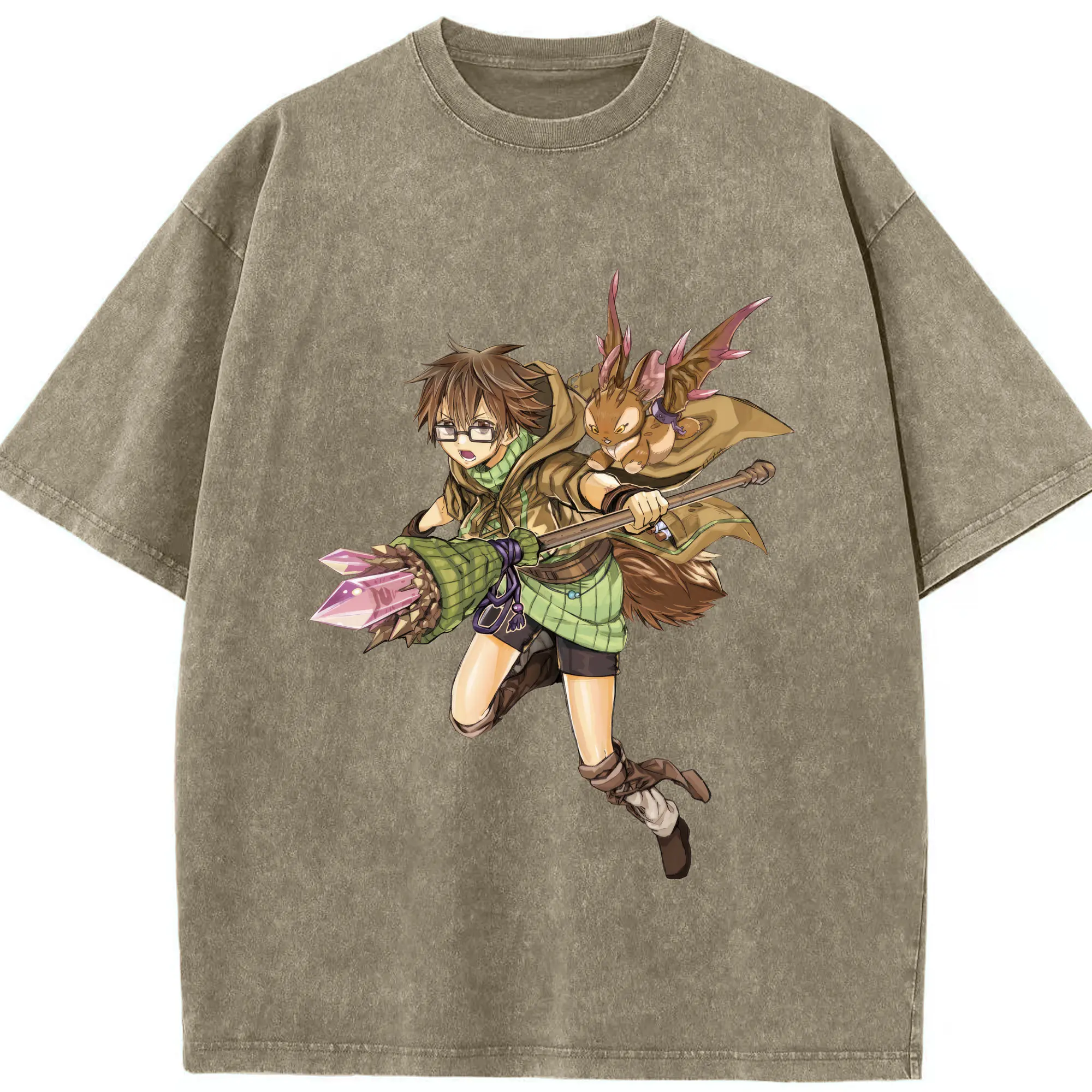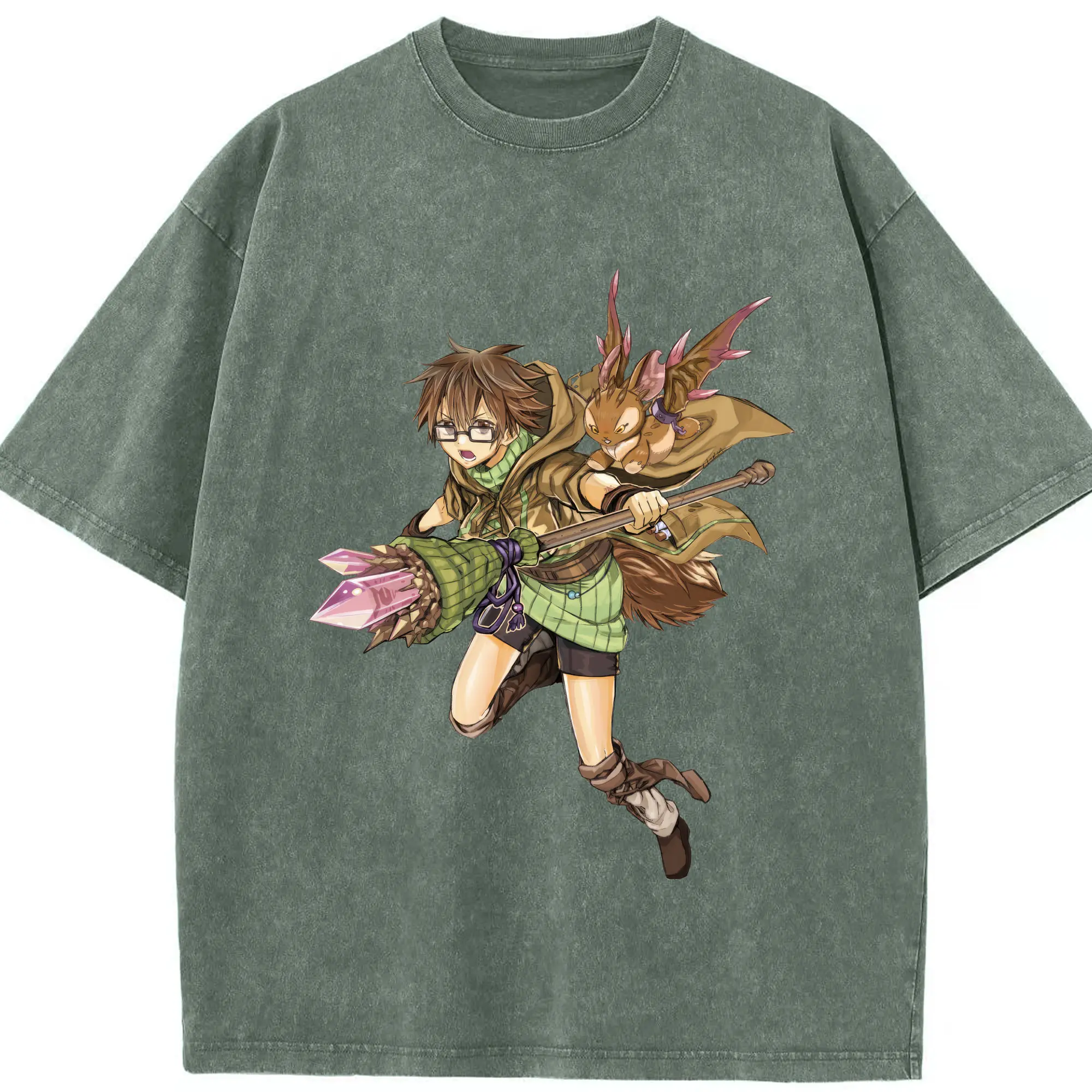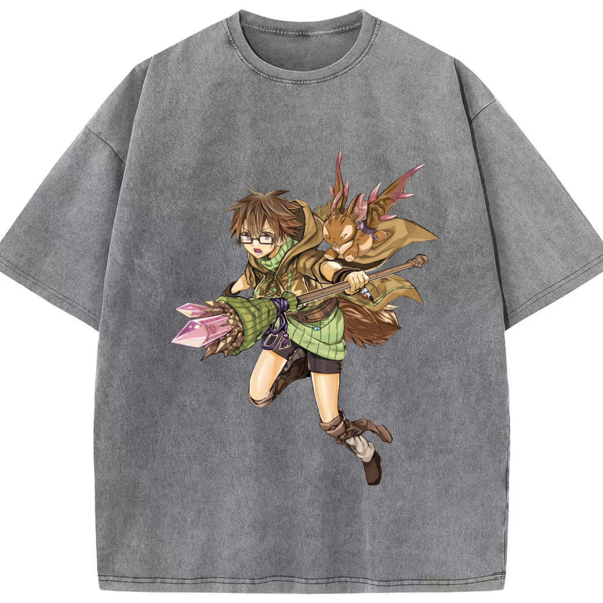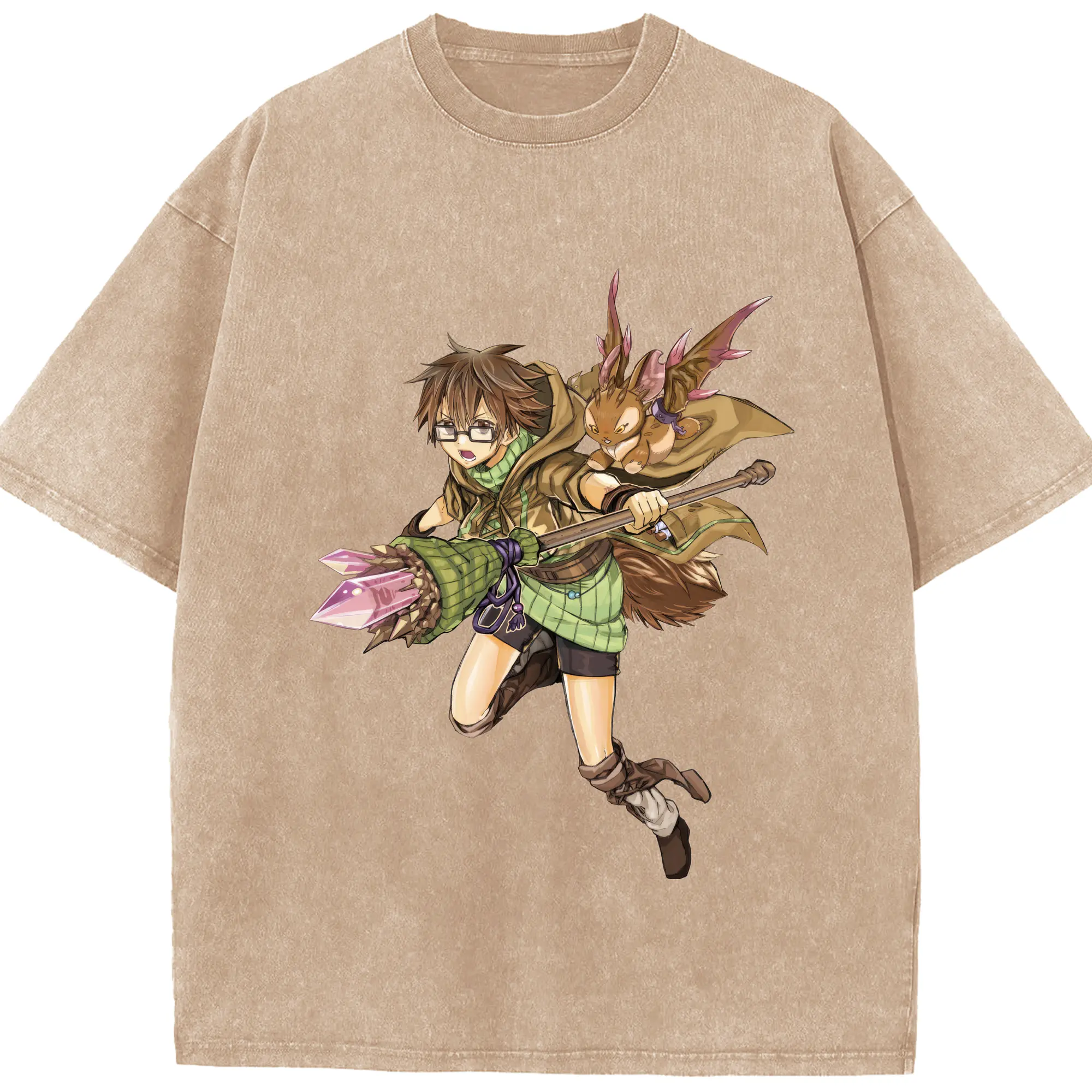 Men's yu-gi-oh graphic shirt​ - Washed Vintage Look 230g Cotton Oversized T-Shirt With Front Heat Transfer Print – Soft, Lightweight, Stylish Fit – Comfortable Casual Wear For Sports & Everyday Use