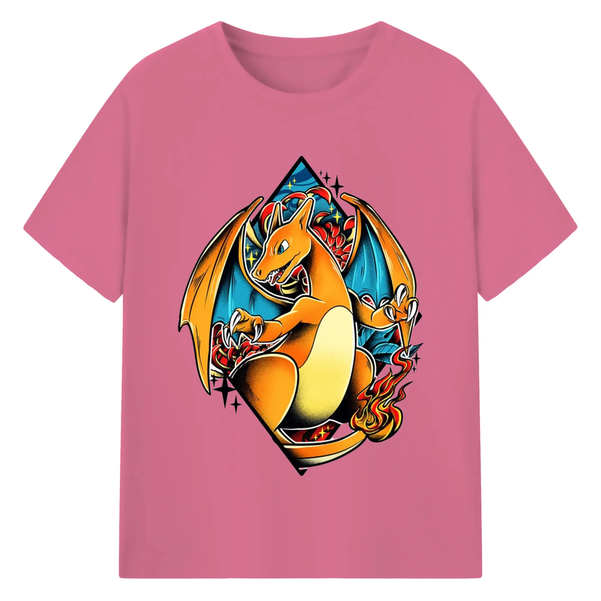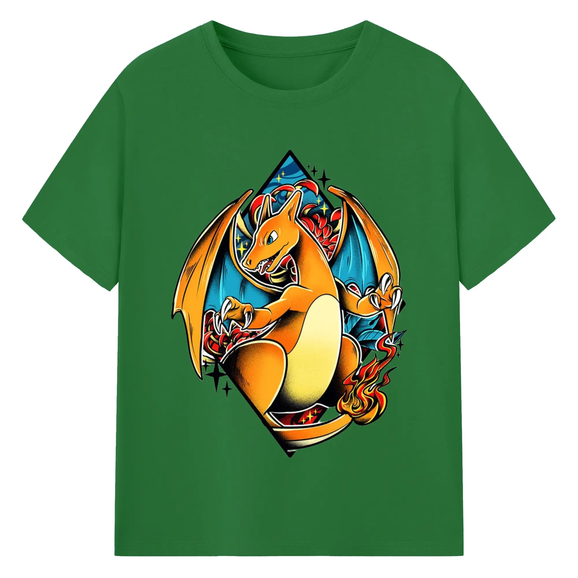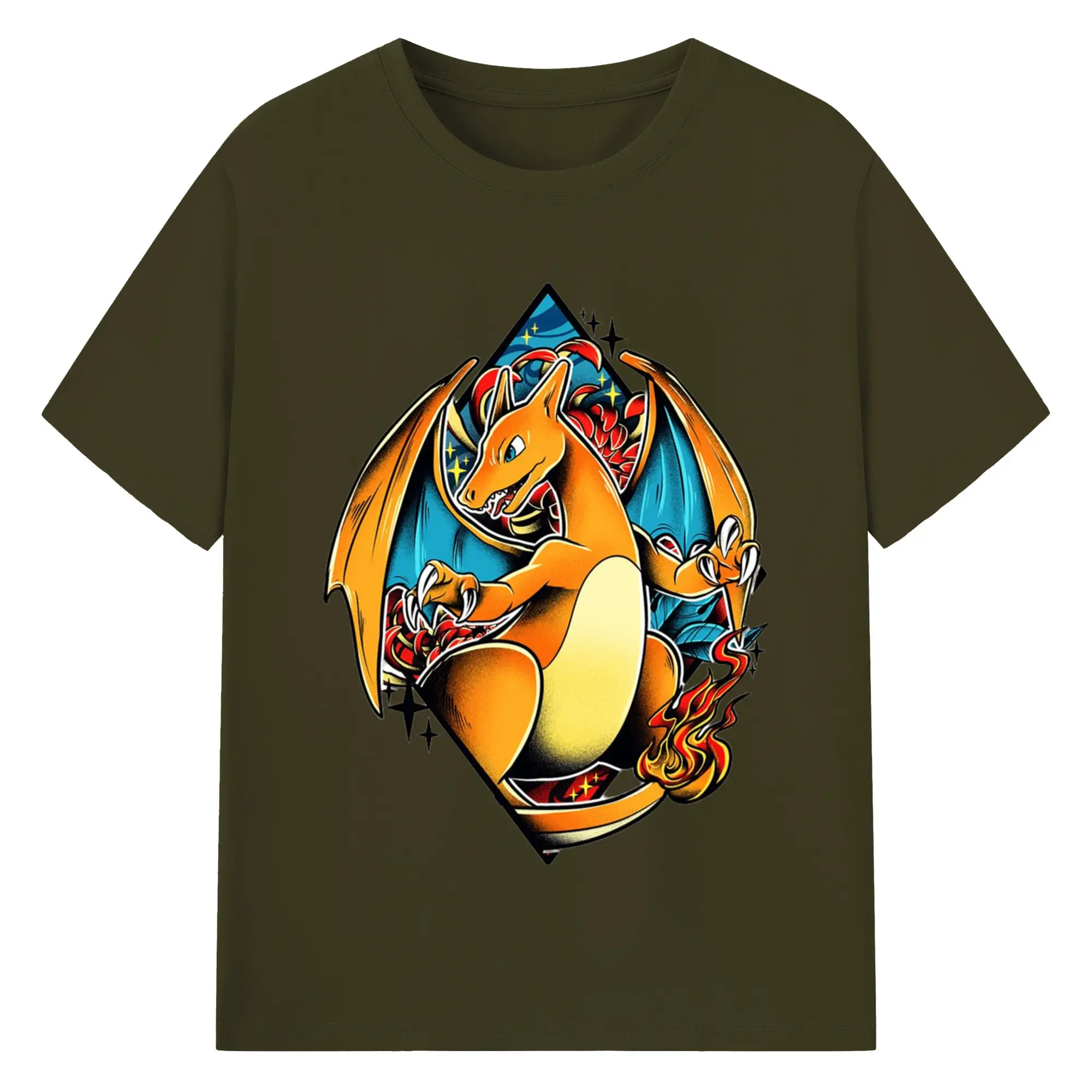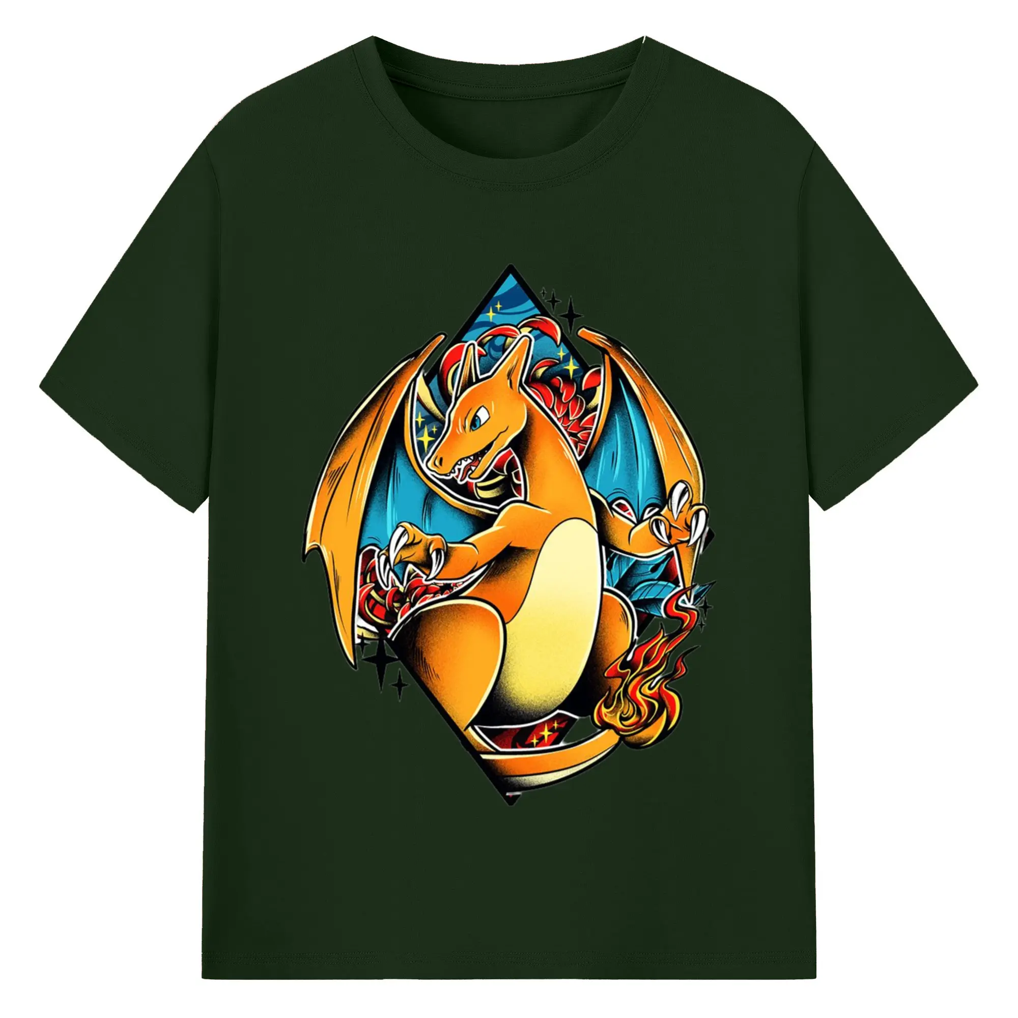 Mens charizard graphic t shirt - 180g Cotton T-Shirt With Front Heat Transfer Print – Soft, Lightweight, Fitted Design – Comfortable Casual Wear For Sports & Everyday Use