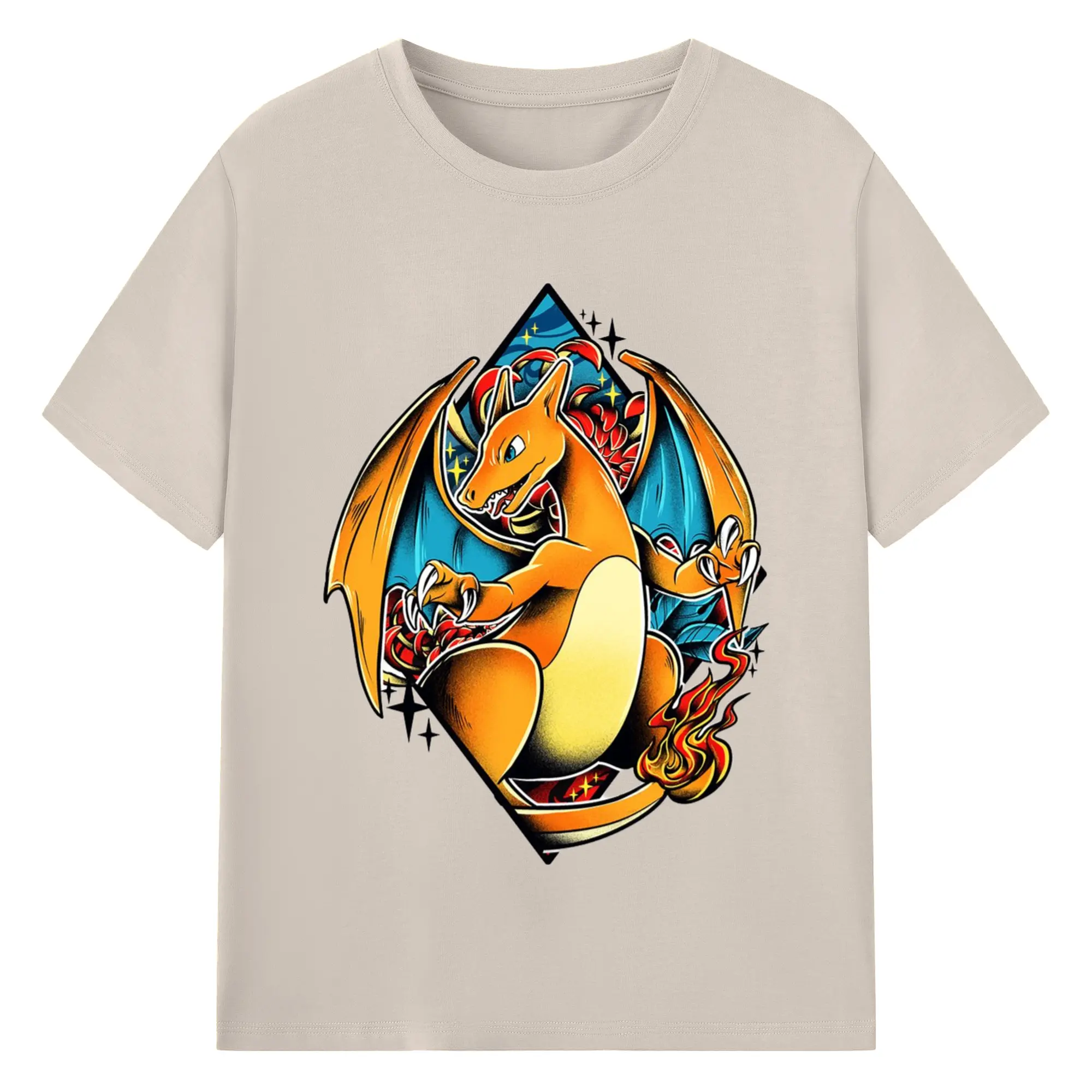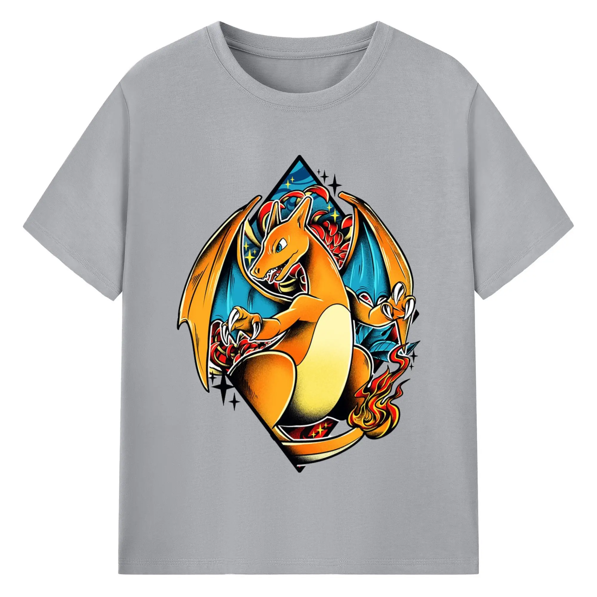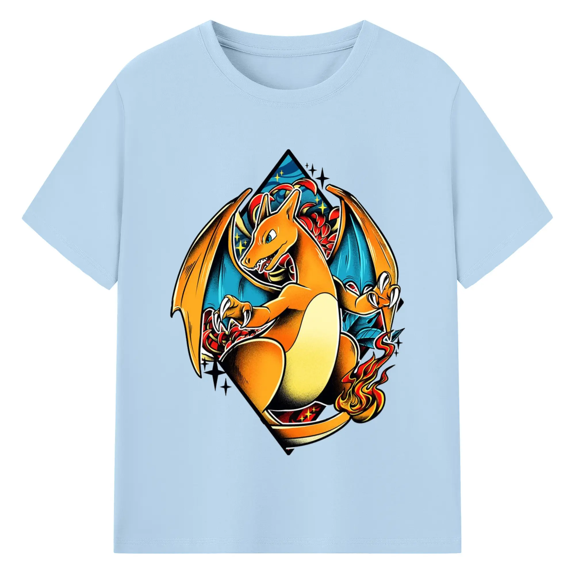 Mens charizard graphic t shirt - 180g Cotton T-Shirt With Front Heat Transfer Print – Soft, Lightweight, Fitted Design – Comfortable Casual Wear For Sports & Everyday Use