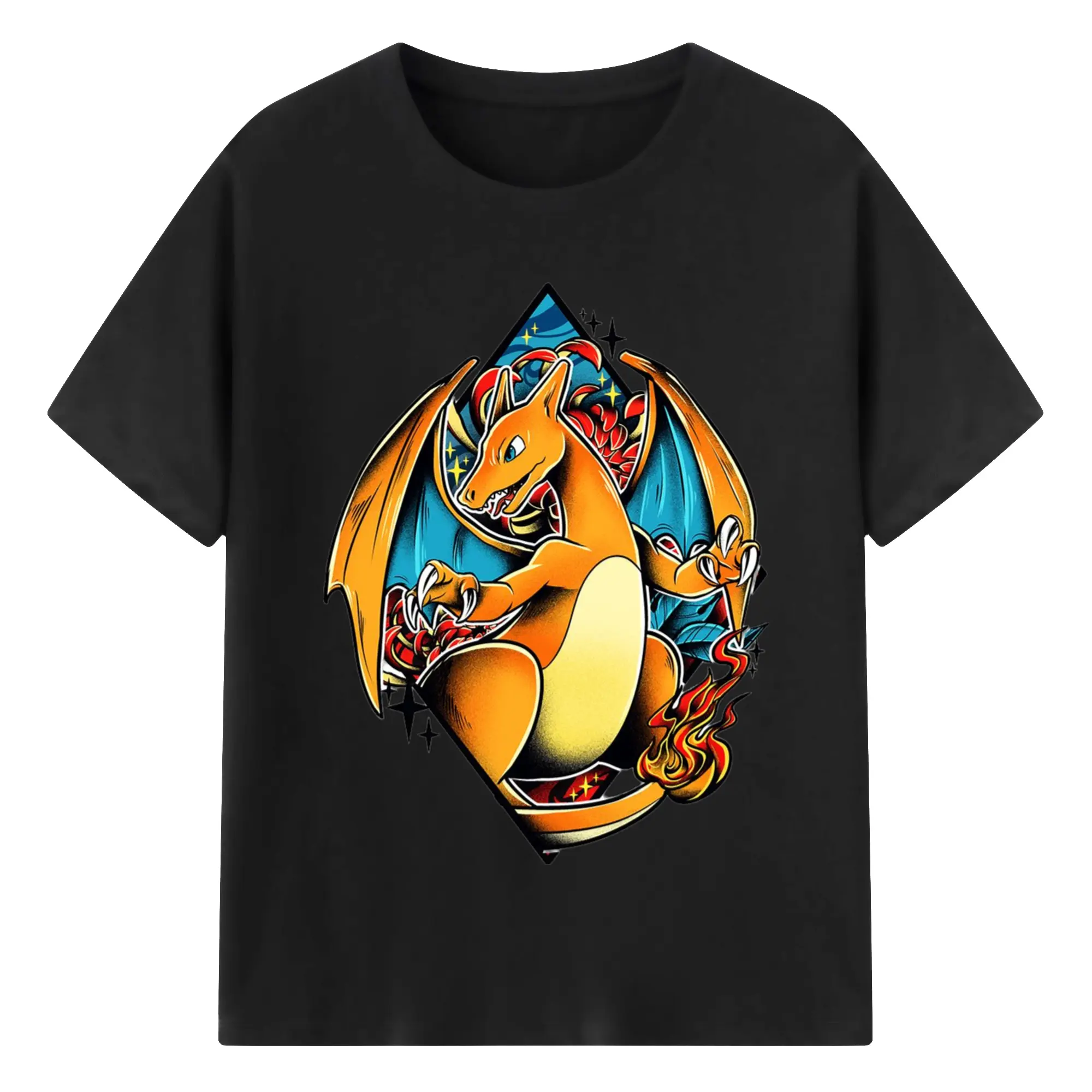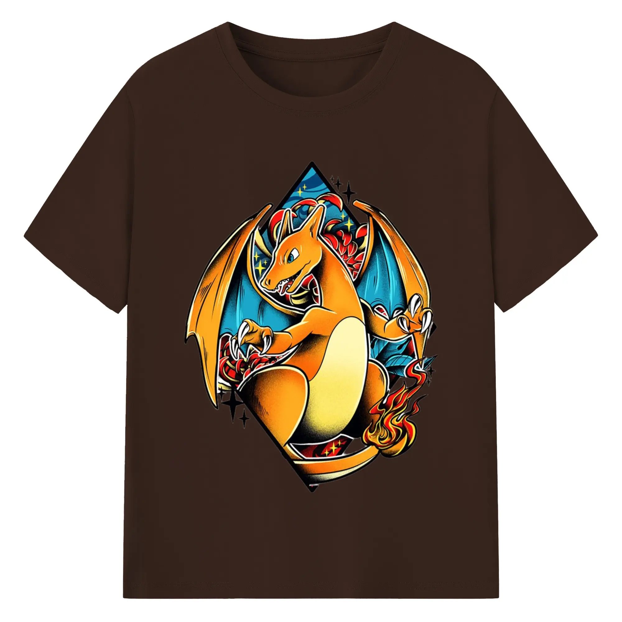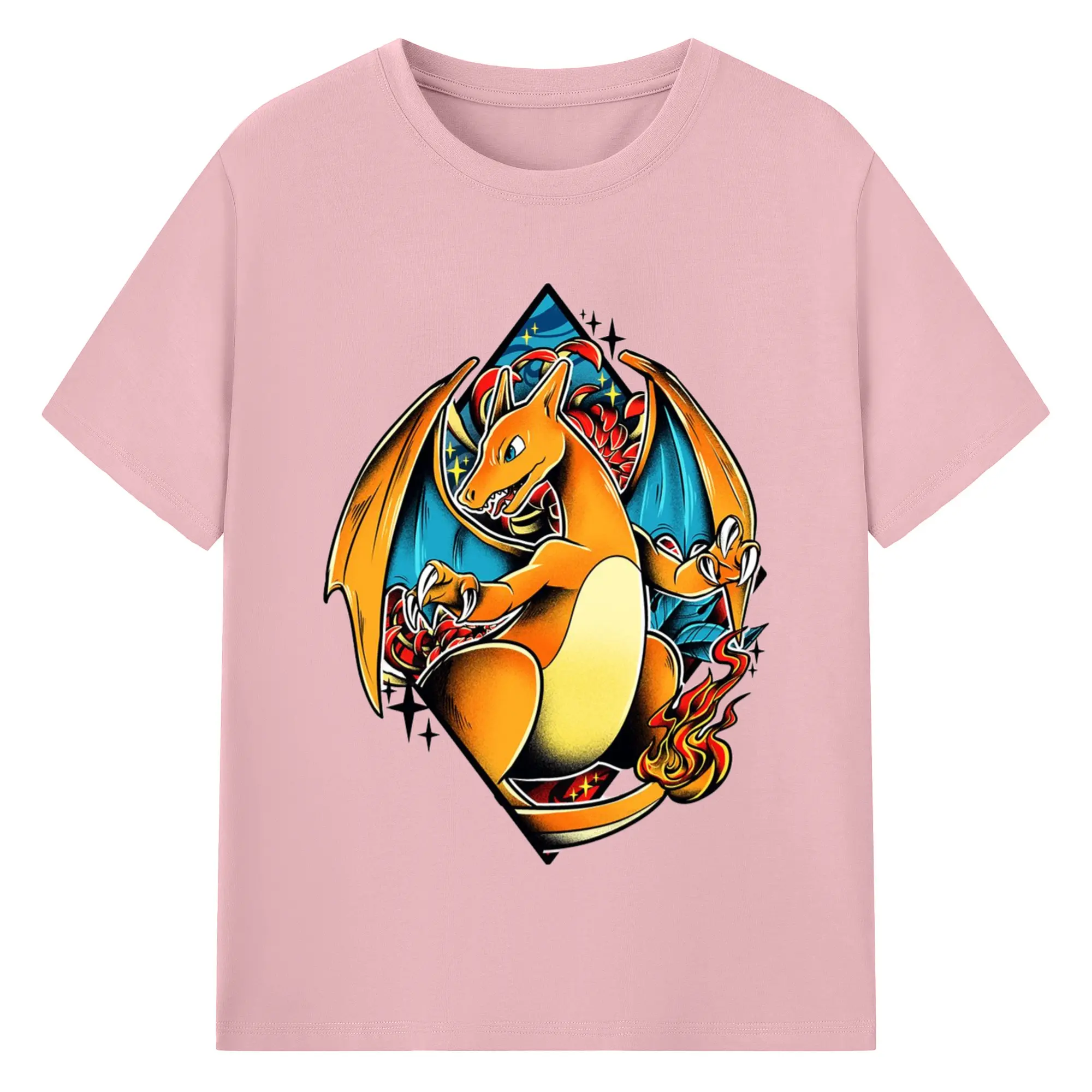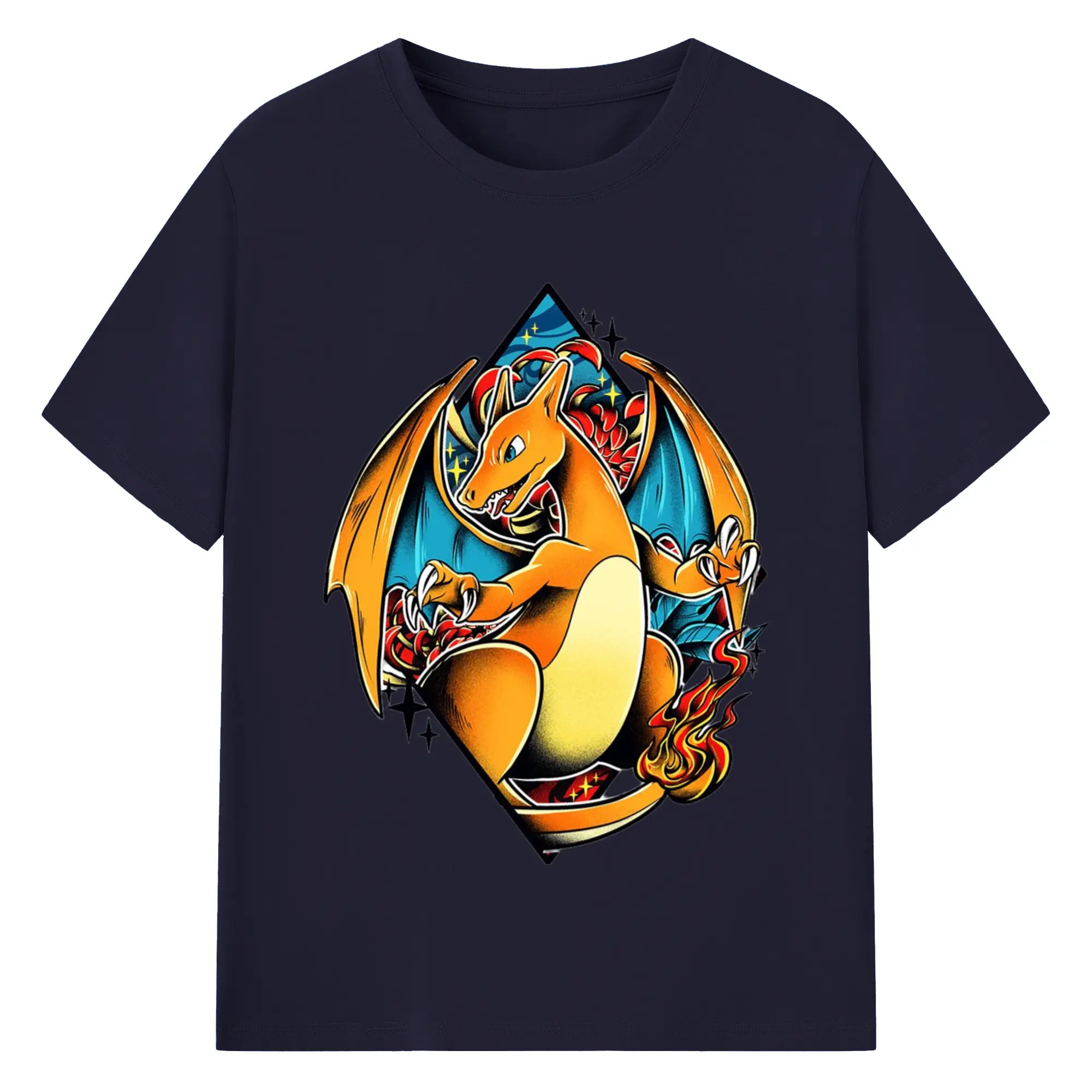 Mens charizard graphic t shirt - 180g Cotton T-Shirt With Front Heat Transfer Print – Soft, Lightweight, Fitted Design – Comfortable Casual Wear For Sports & Everyday Use