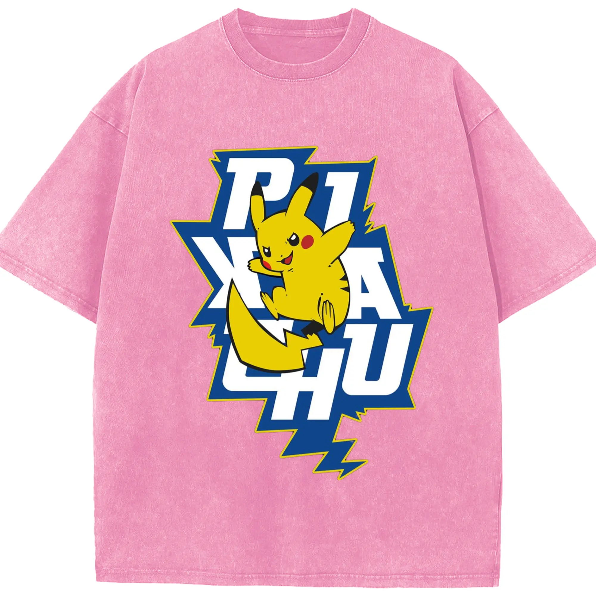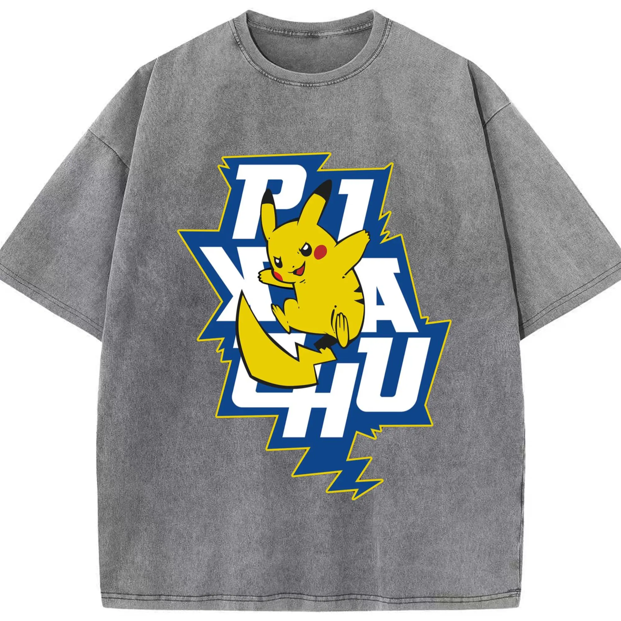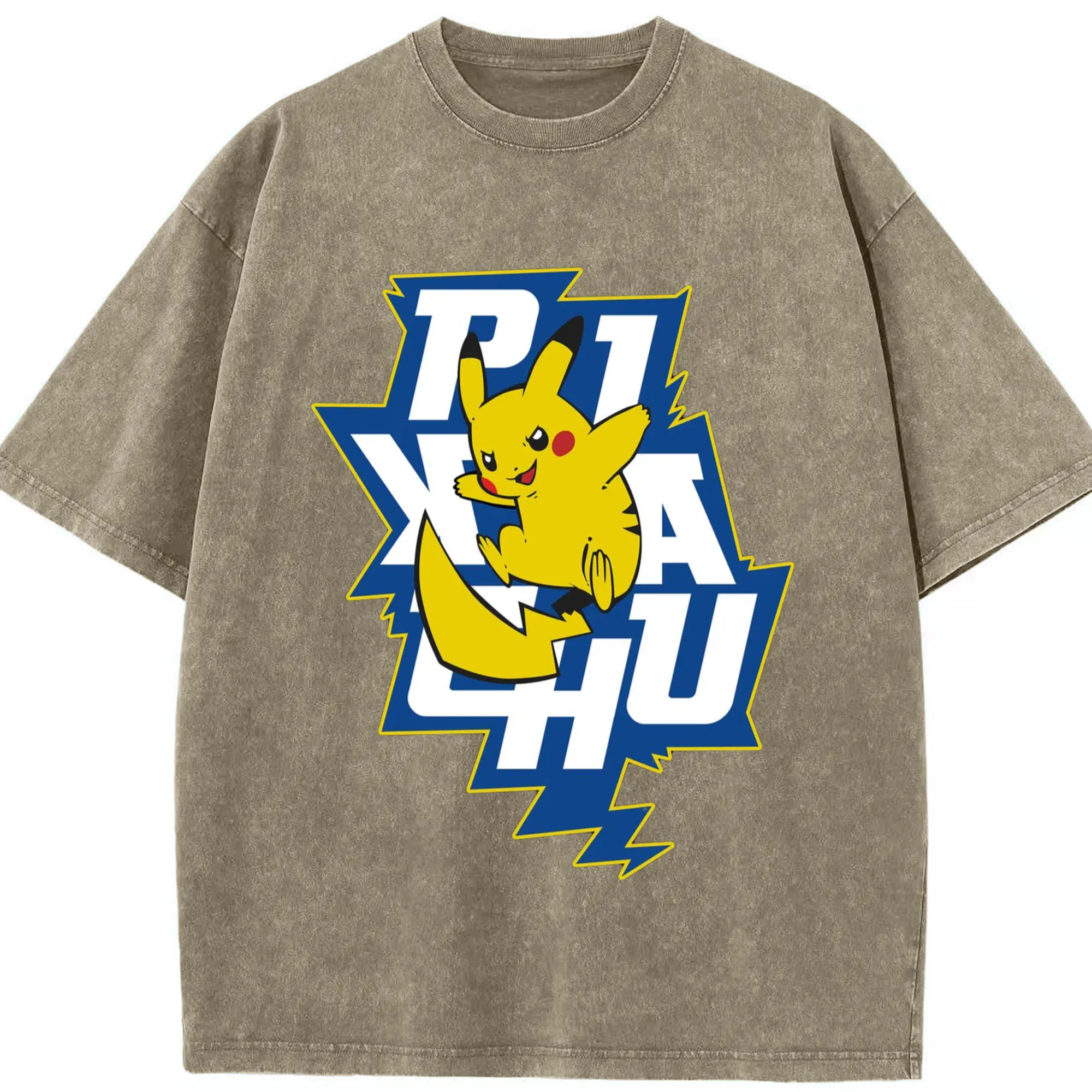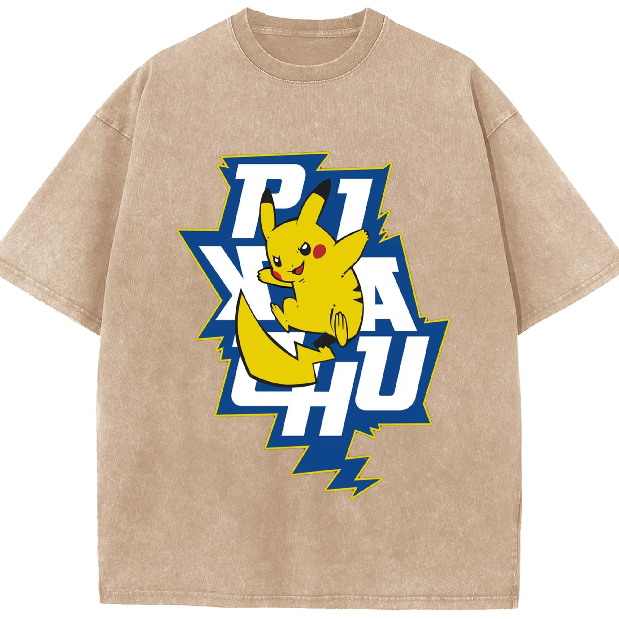 Mens pikachu icon shirt - Washed Vintage Look 230g Cotton Oversized T-Shirt With Front Heat Transfer Print – Soft, Lightweight, Stylish Fit – Comfortable Casual Wear For Sports & Everyday Use