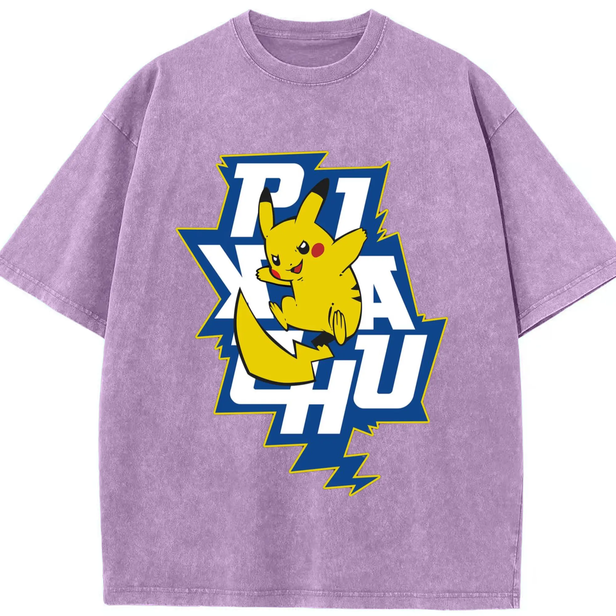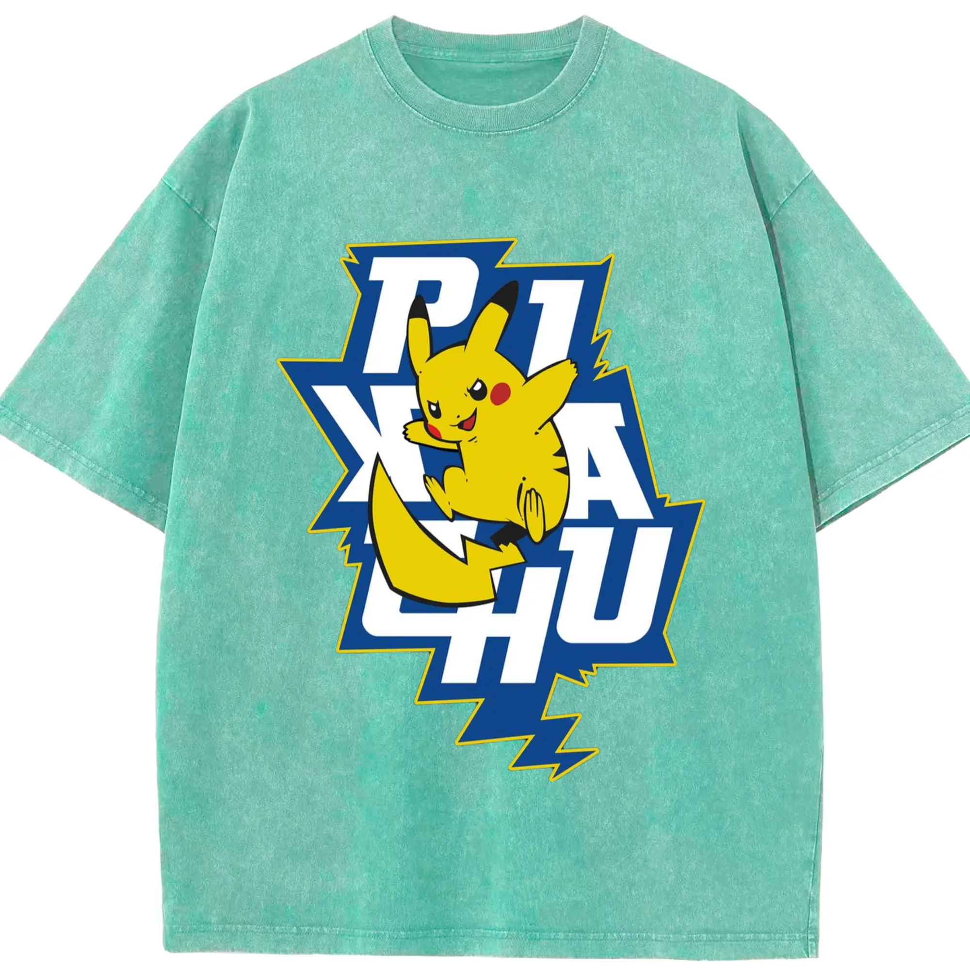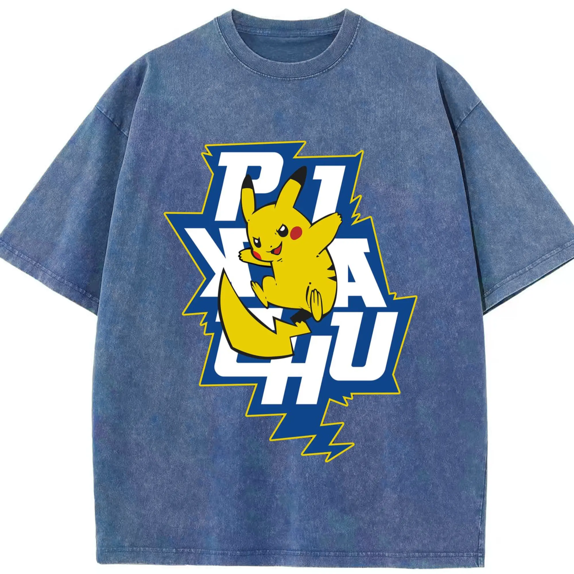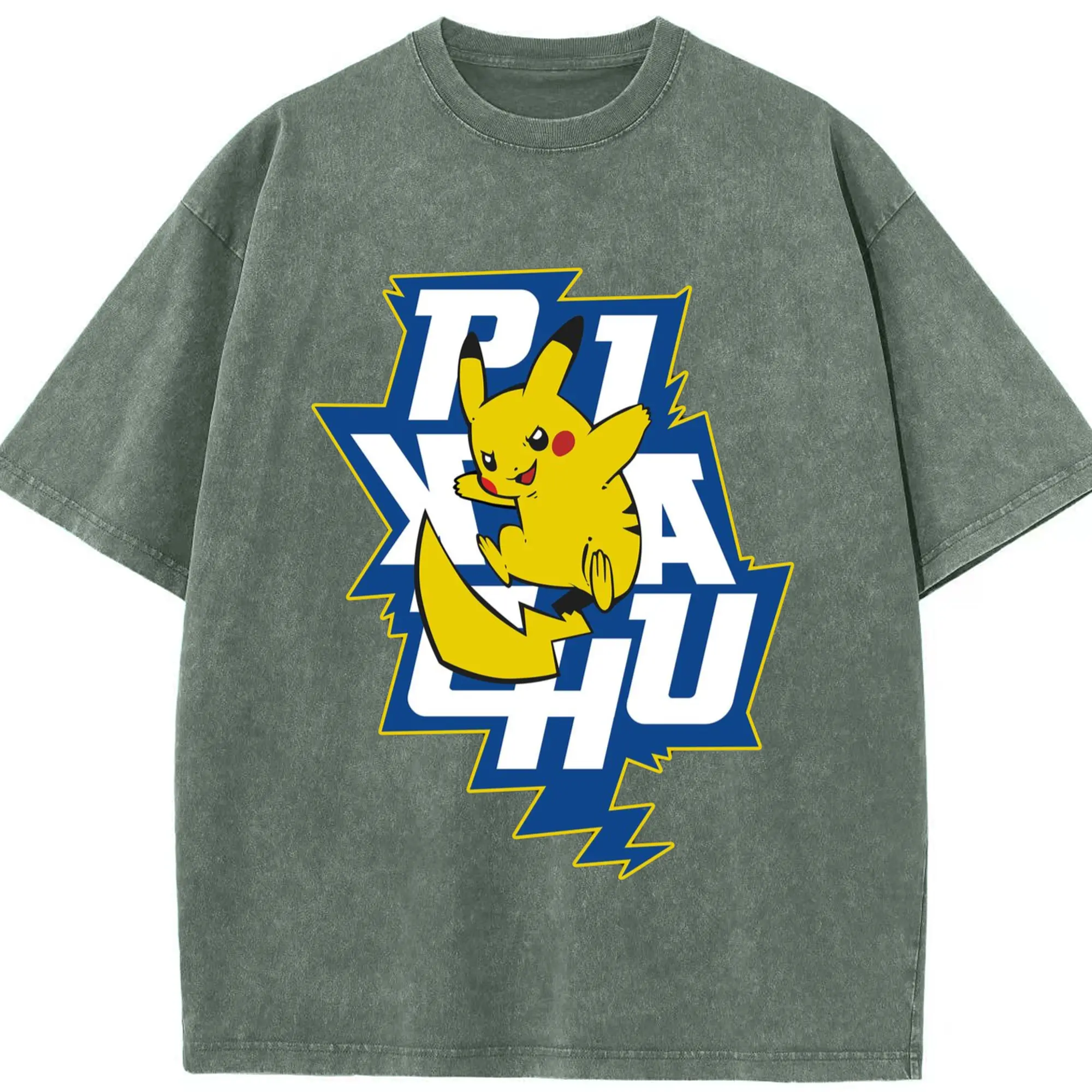 Mens pikachu icon shirt - Washed Vintage Look 230g Cotton Oversized T-Shirt With Front Heat Transfer Print – Soft, Lightweight, Stylish Fit – Comfortable Casual Wear For Sports & Everyday Use