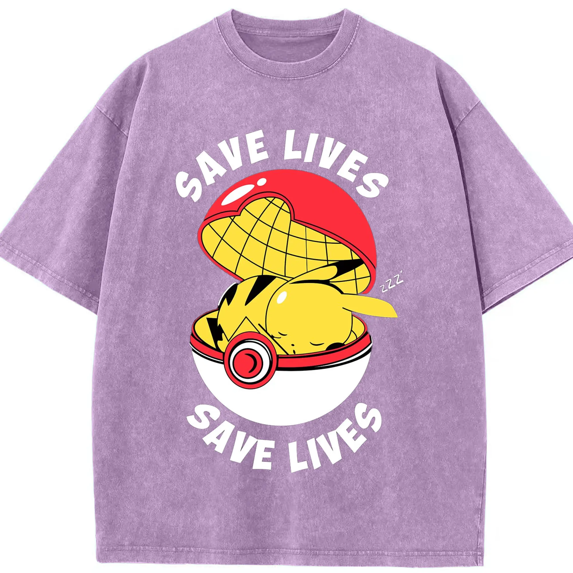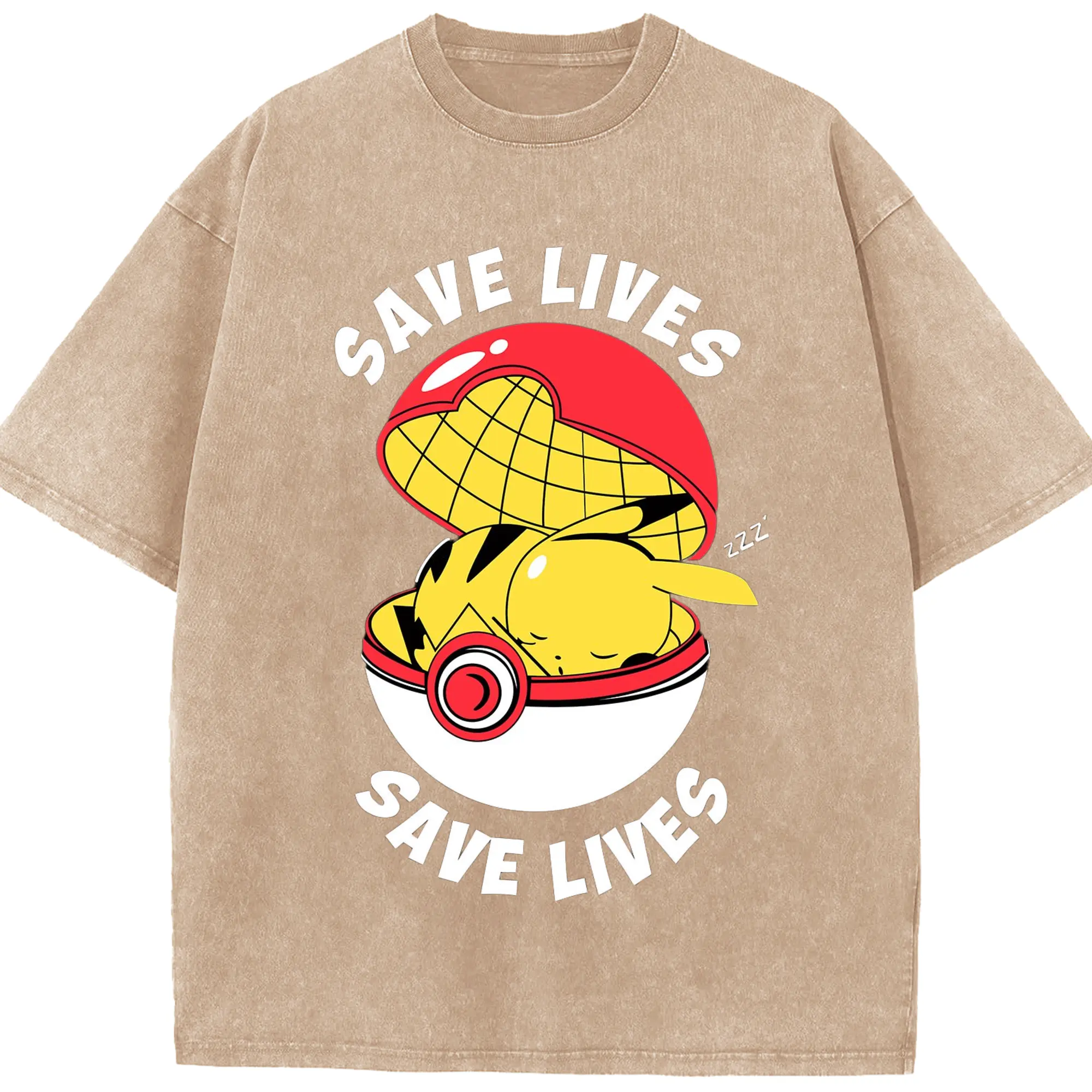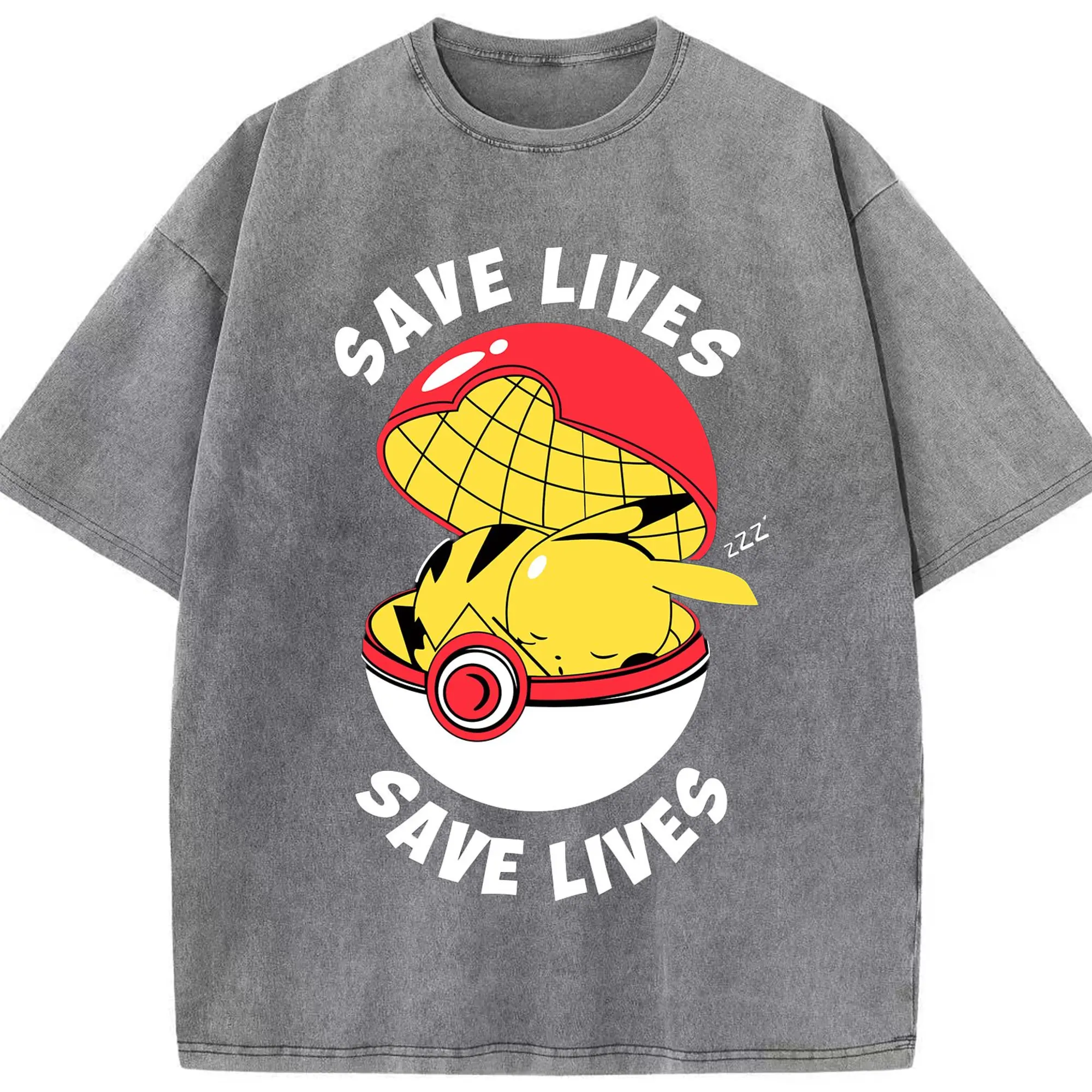 Mens pikachu shir - Washed Vintage Look 230g Cotton Oversized T-Shirt With Front Heat Transfer Print – Soft, Lightweight, Stylish Fit – Comfortable Casual Wear For Sports & Everyday Use