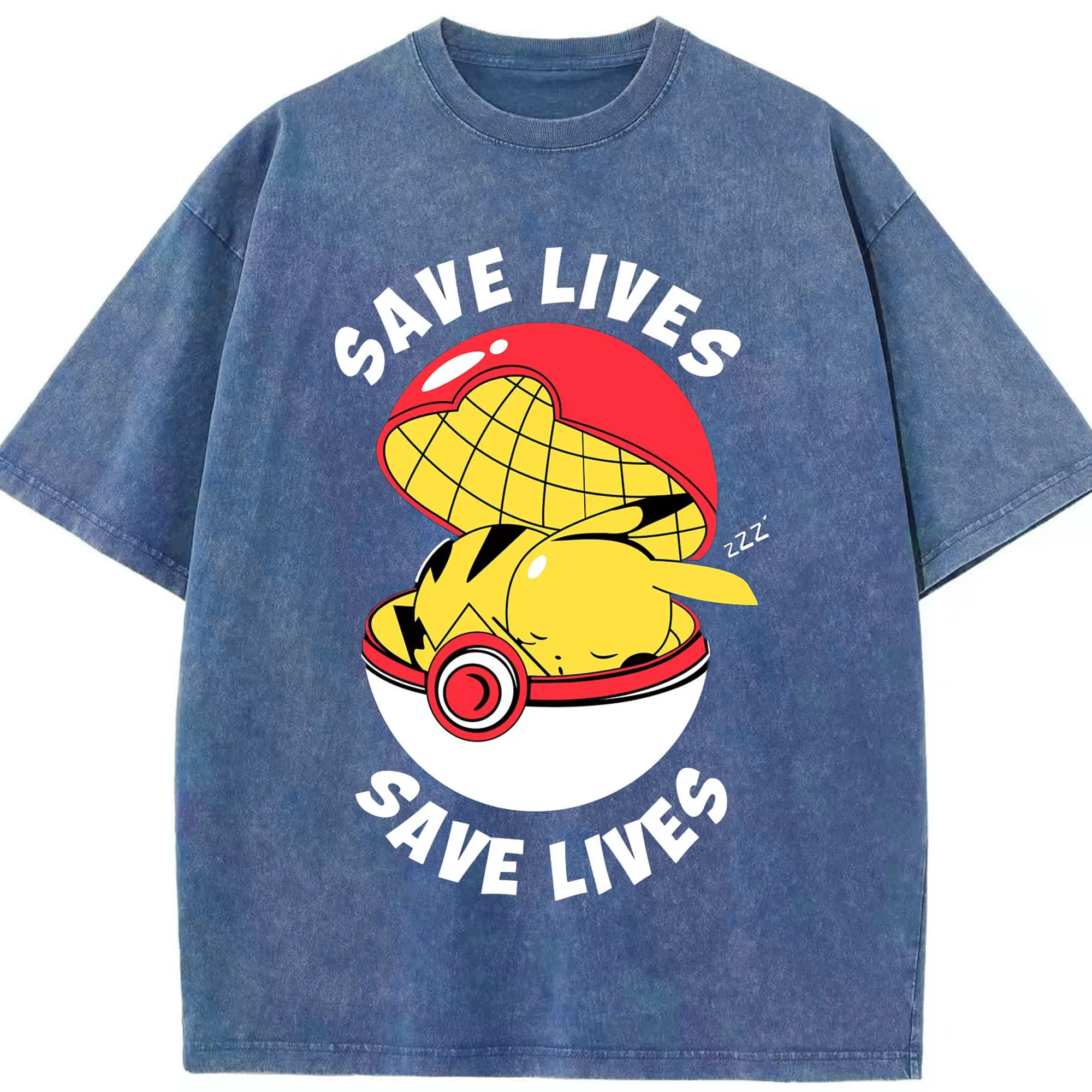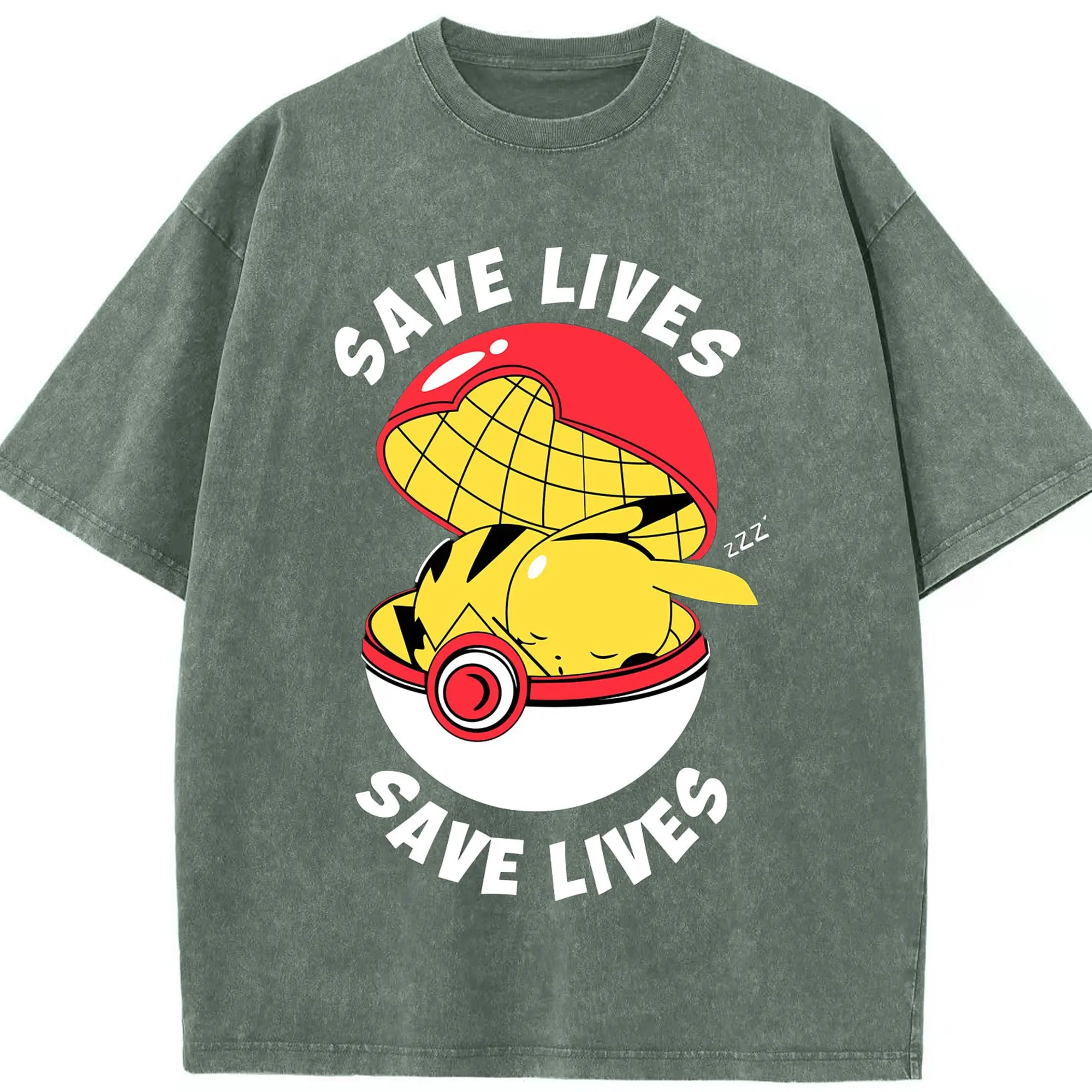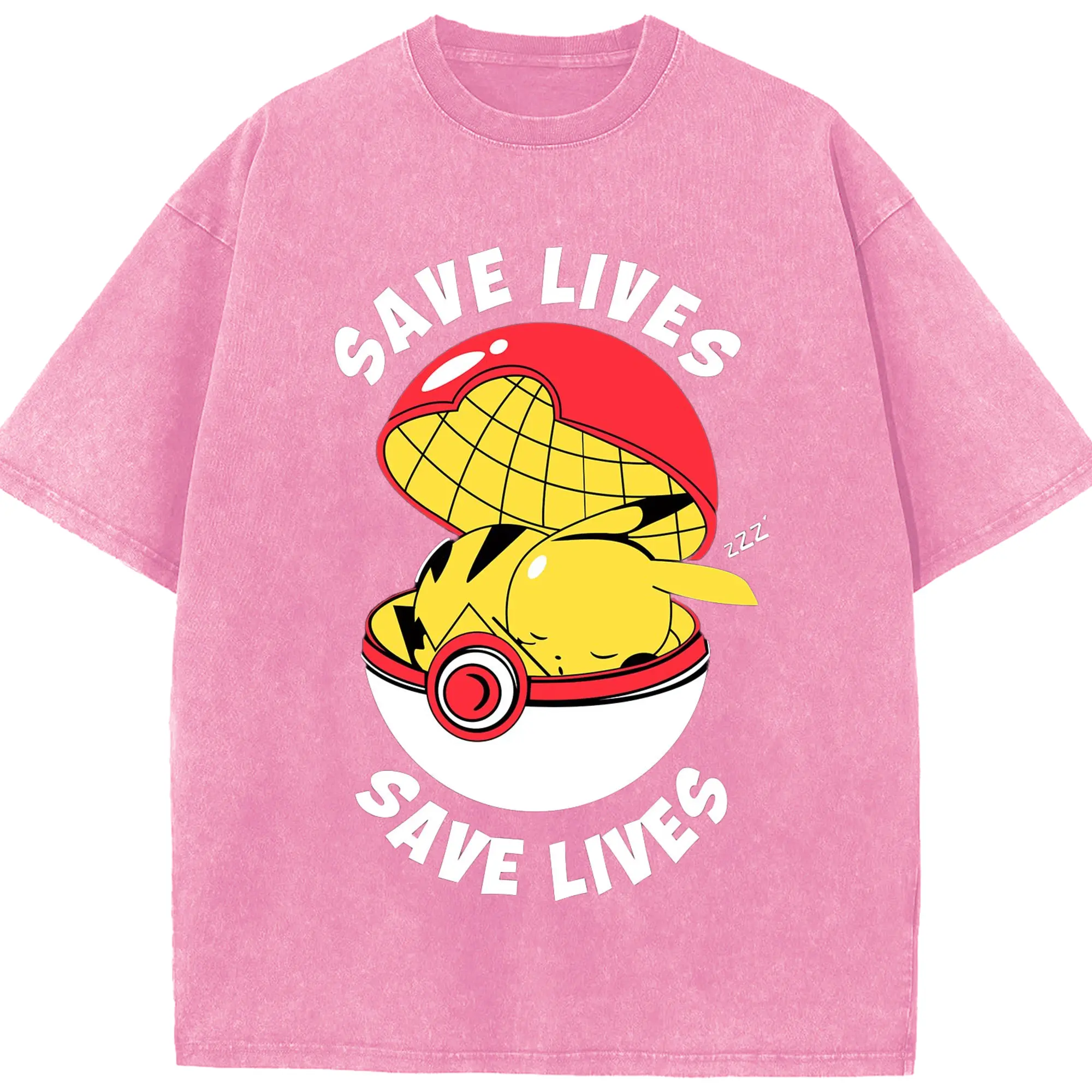 Mens pikachu shir - Washed Vintage Look 230g Cotton Oversized T-Shirt With Front Heat Transfer Print – Soft, Lightweight, Stylish Fit – Comfortable Casual Wear For Sports & Everyday Use