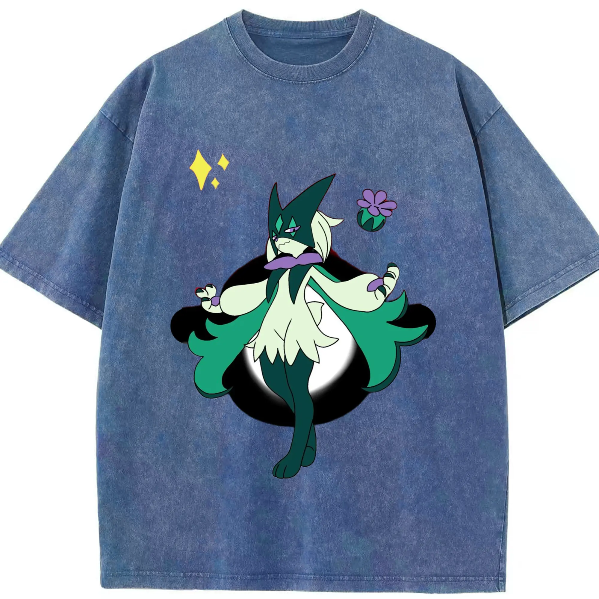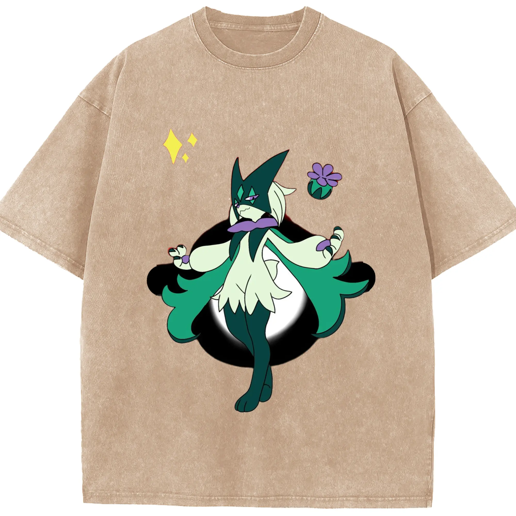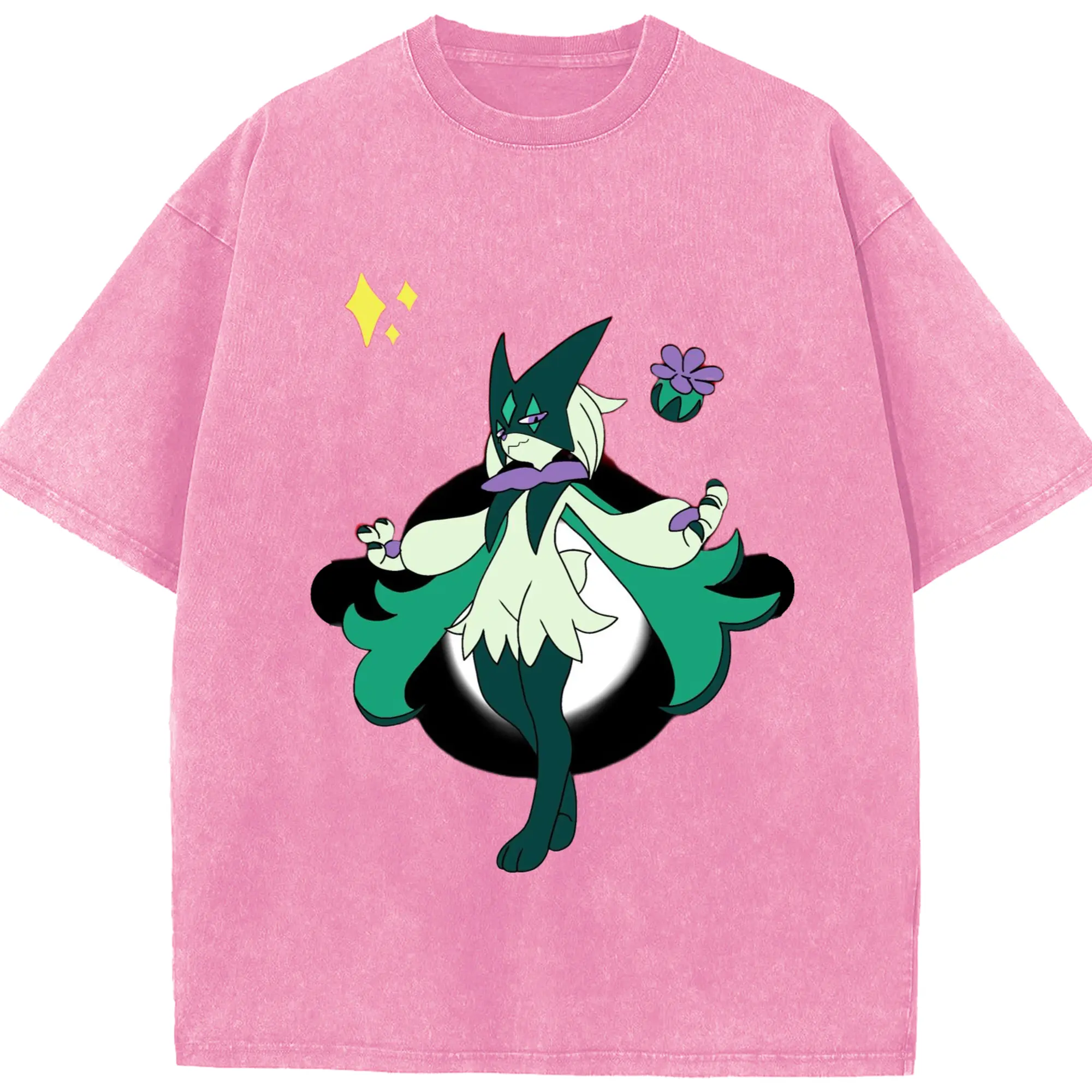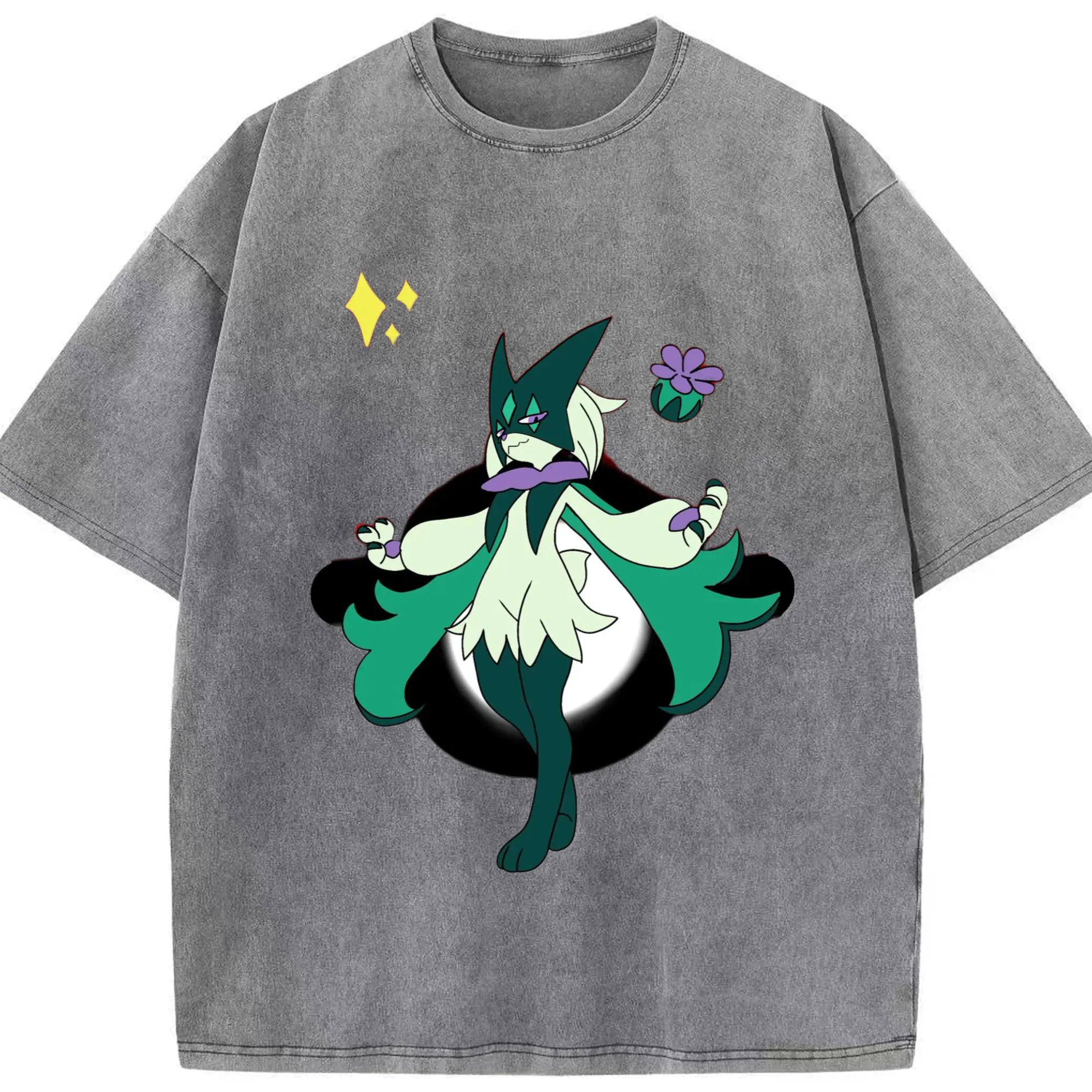 Meowscarada graphic t-shirt - Washed Vintage Look 230g Cotton Oversized T-Shirt With Front Heat Transfer Print – Soft, Lightweight, Stylish Fit – Comfortable Casual Wear For Sports & Everyday Use