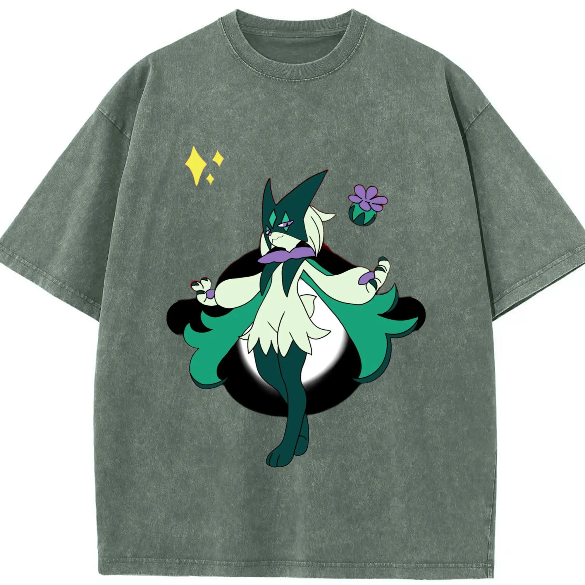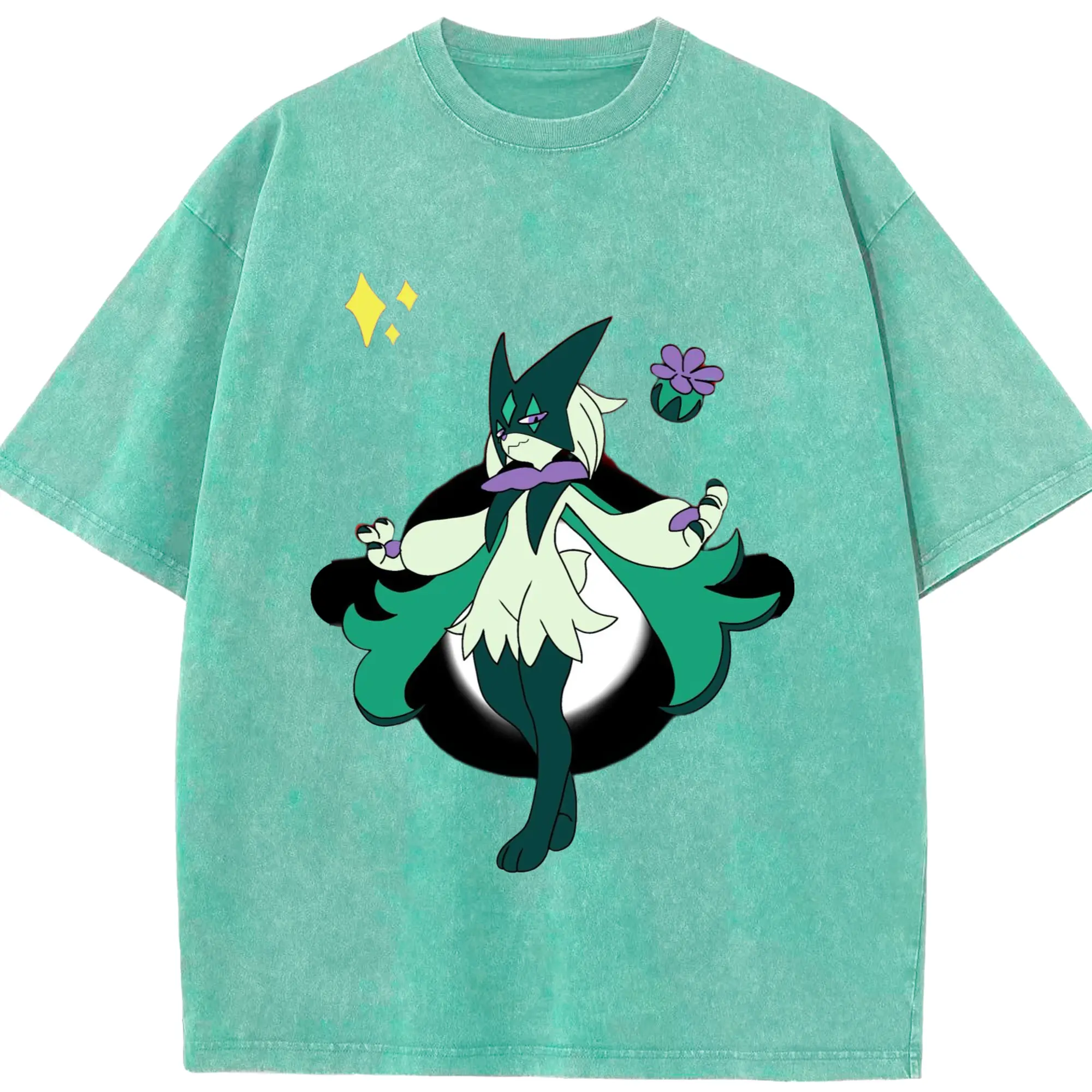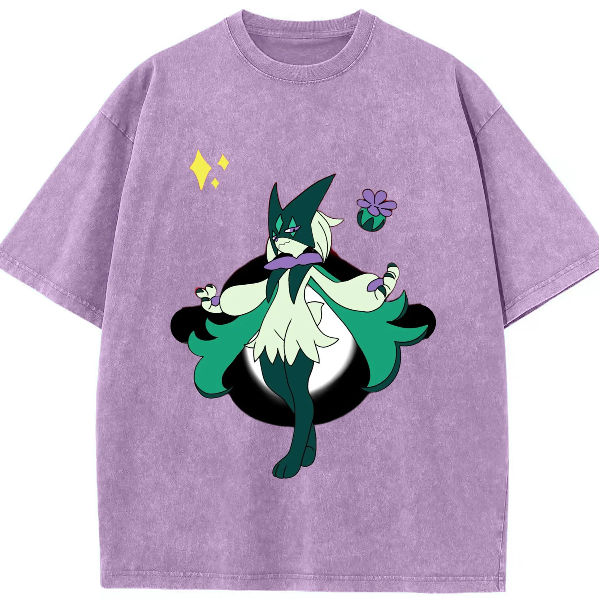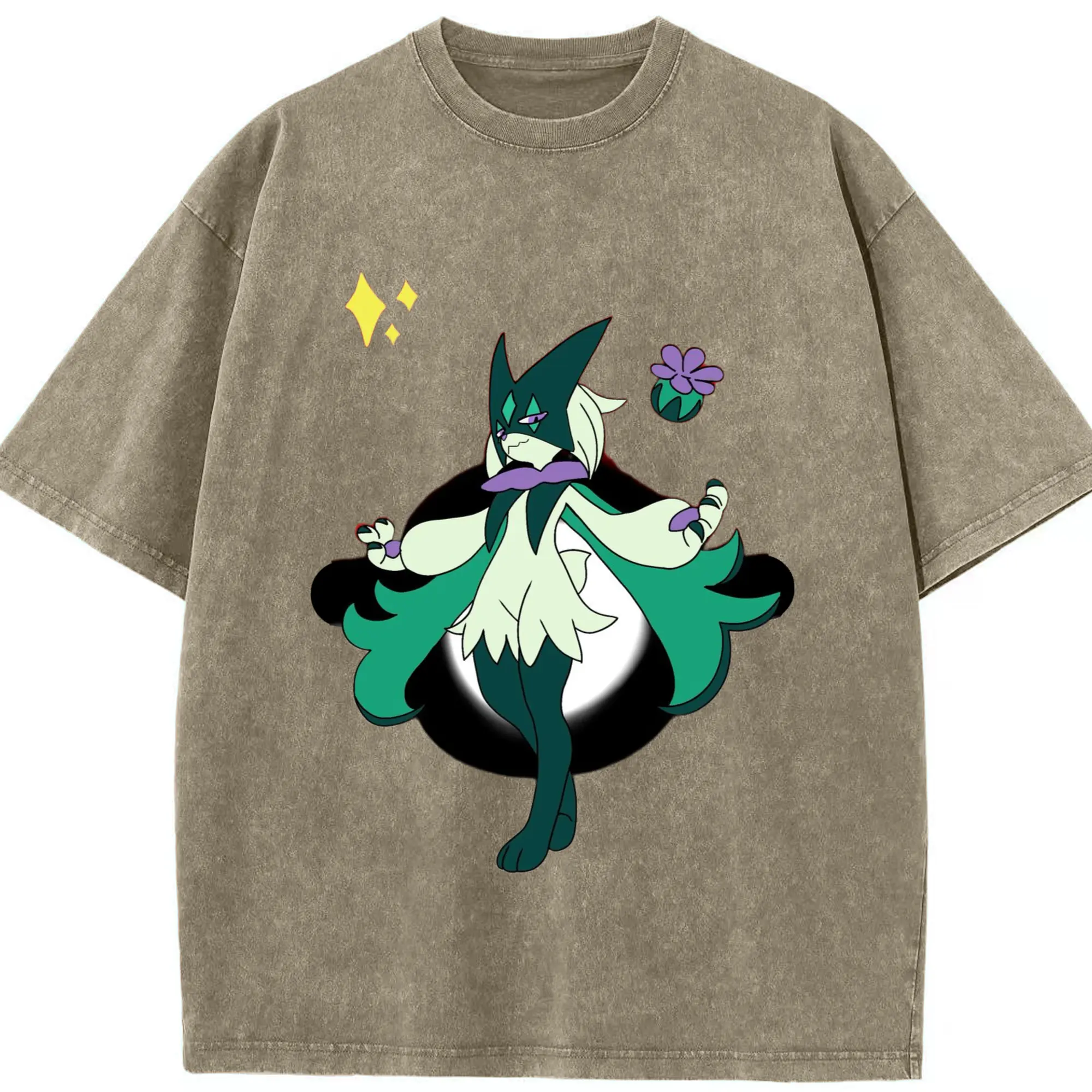 Meowscarada graphic t-shirt - Washed Vintage Look 230g Cotton Oversized T-Shirt With Front Heat Transfer Print – Soft, Lightweight, Stylish Fit – Comfortable Casual Wear For Sports & Everyday Use