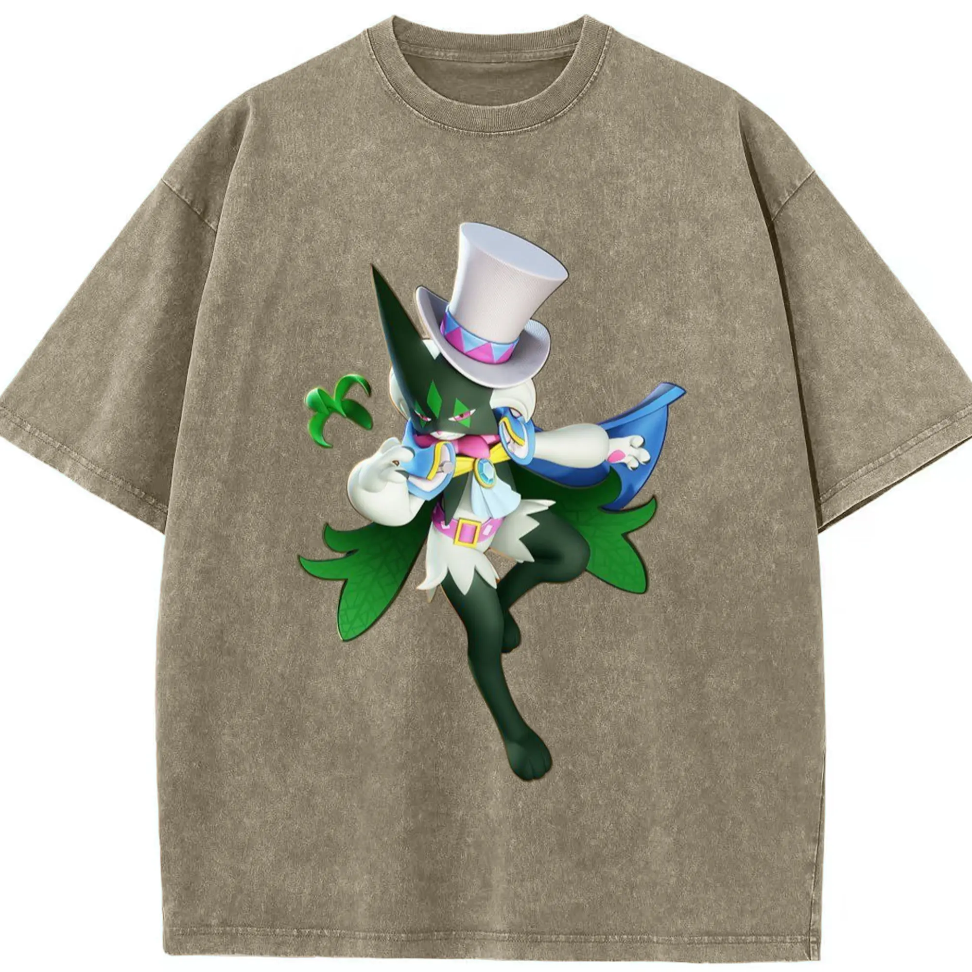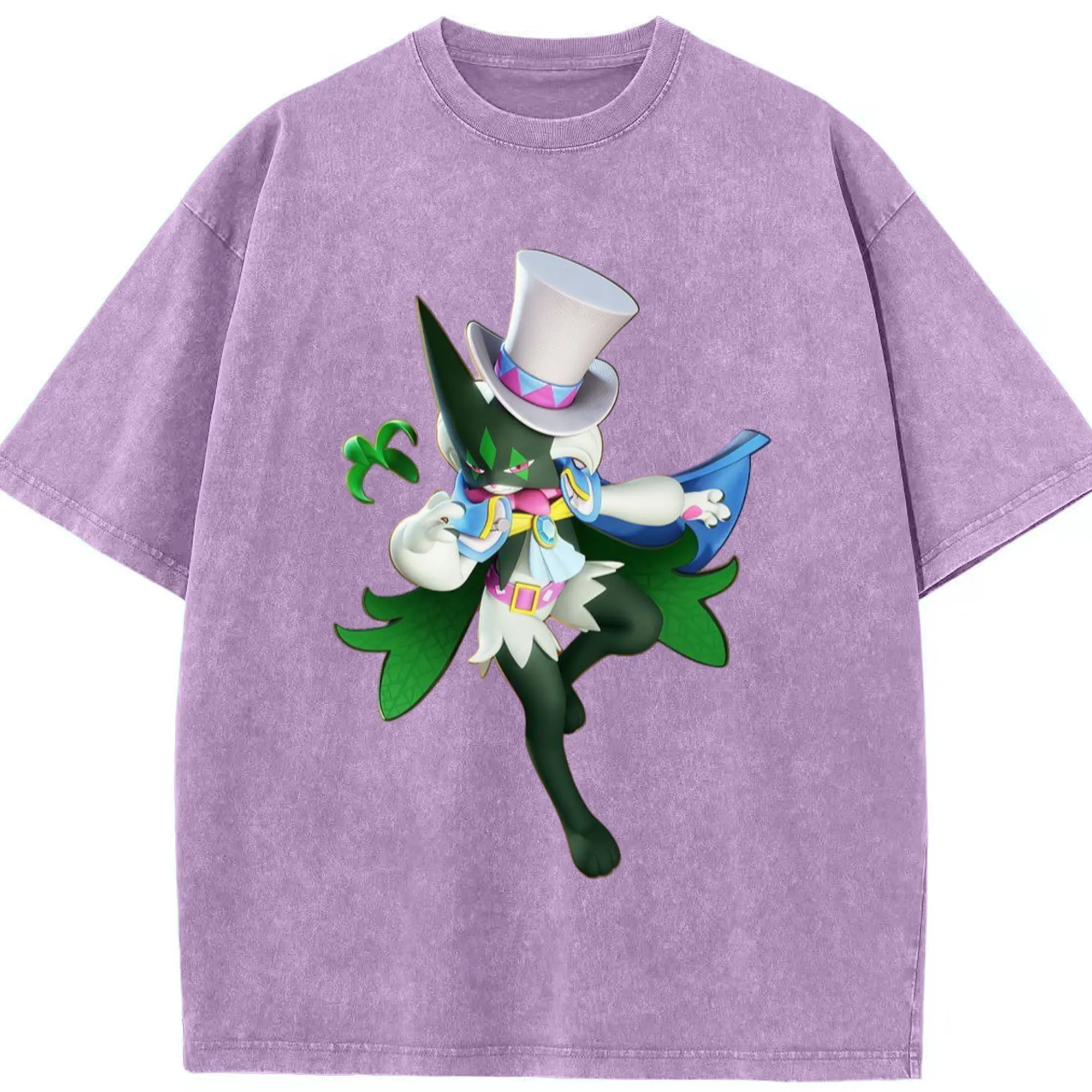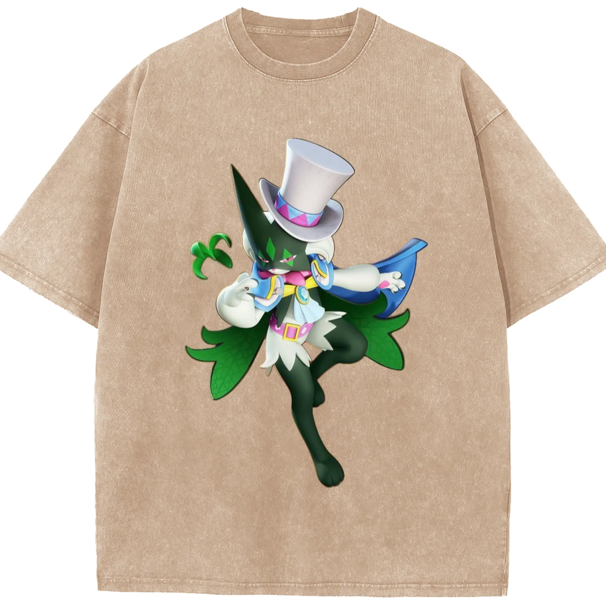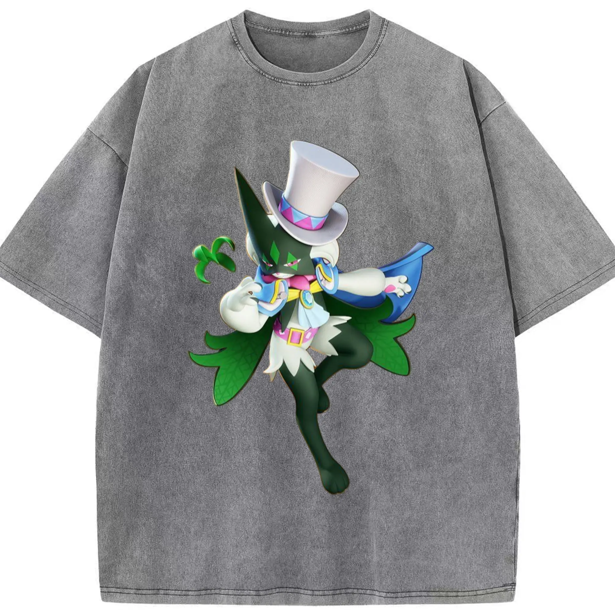 Meowscarada t-shirt - Washed Vintage Look 230g Cotton Oversized T-Shirt With Front Heat Transfer Print – Soft, Lightweight, Stylish Fit – Comfortable Casual Wear For Sports & Everyday Use