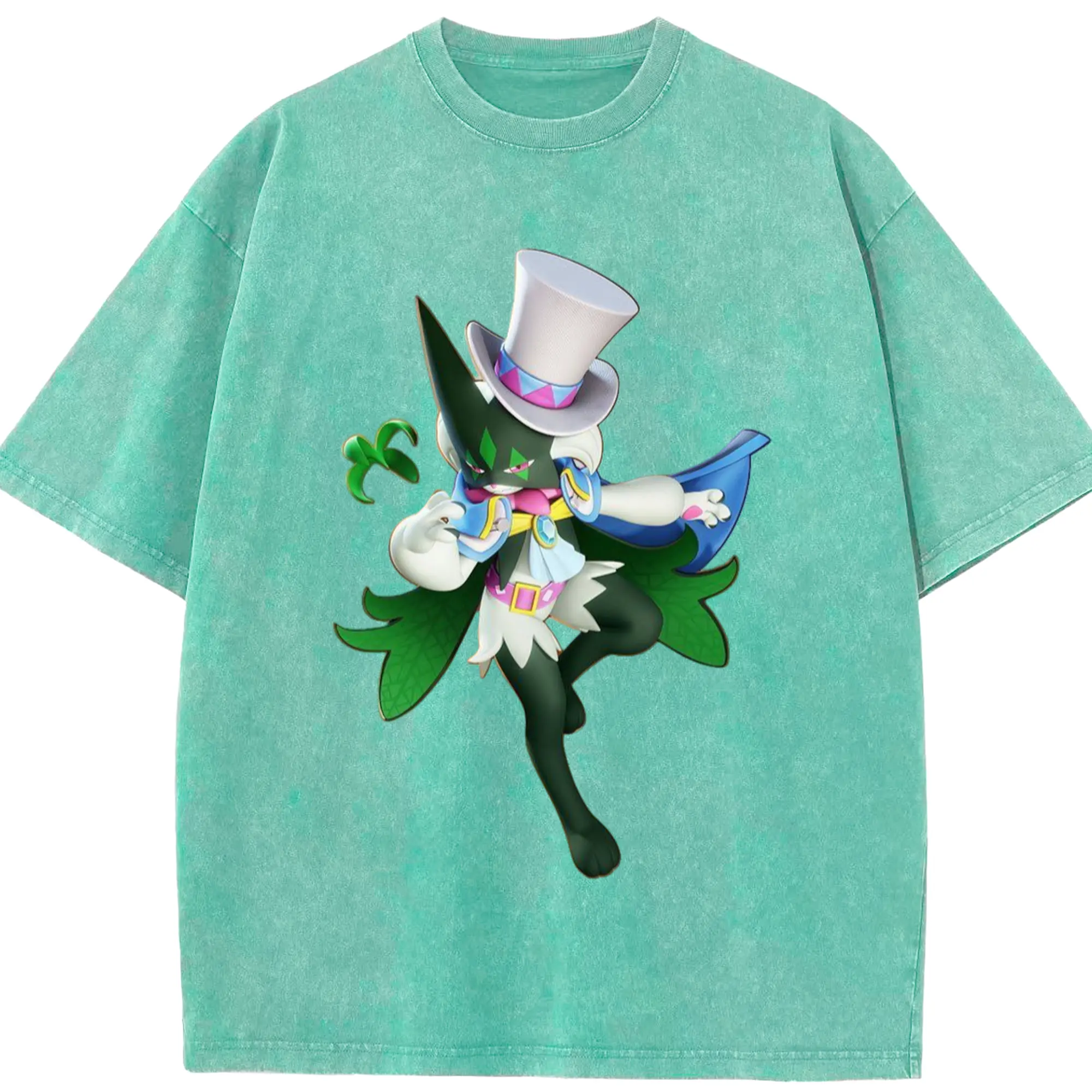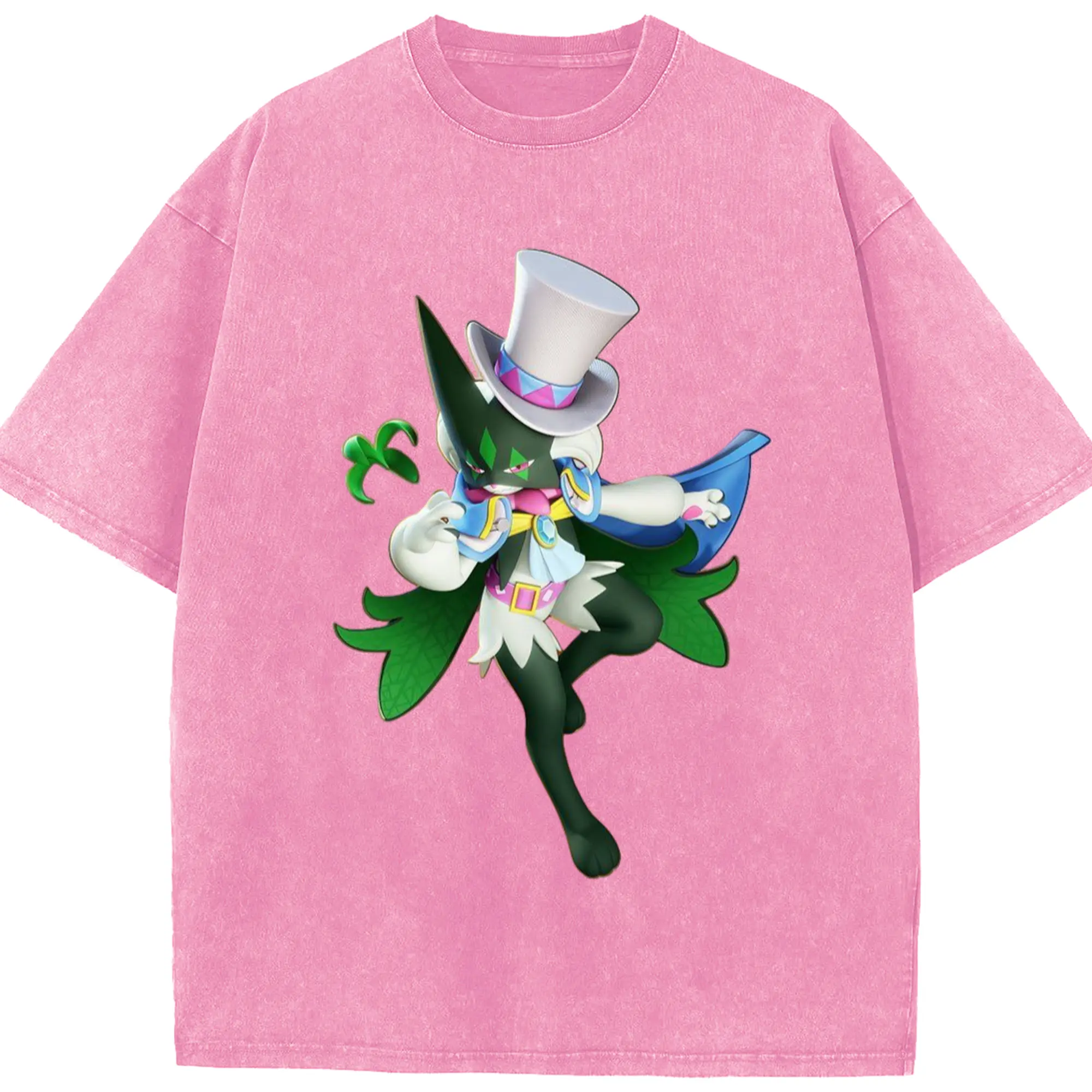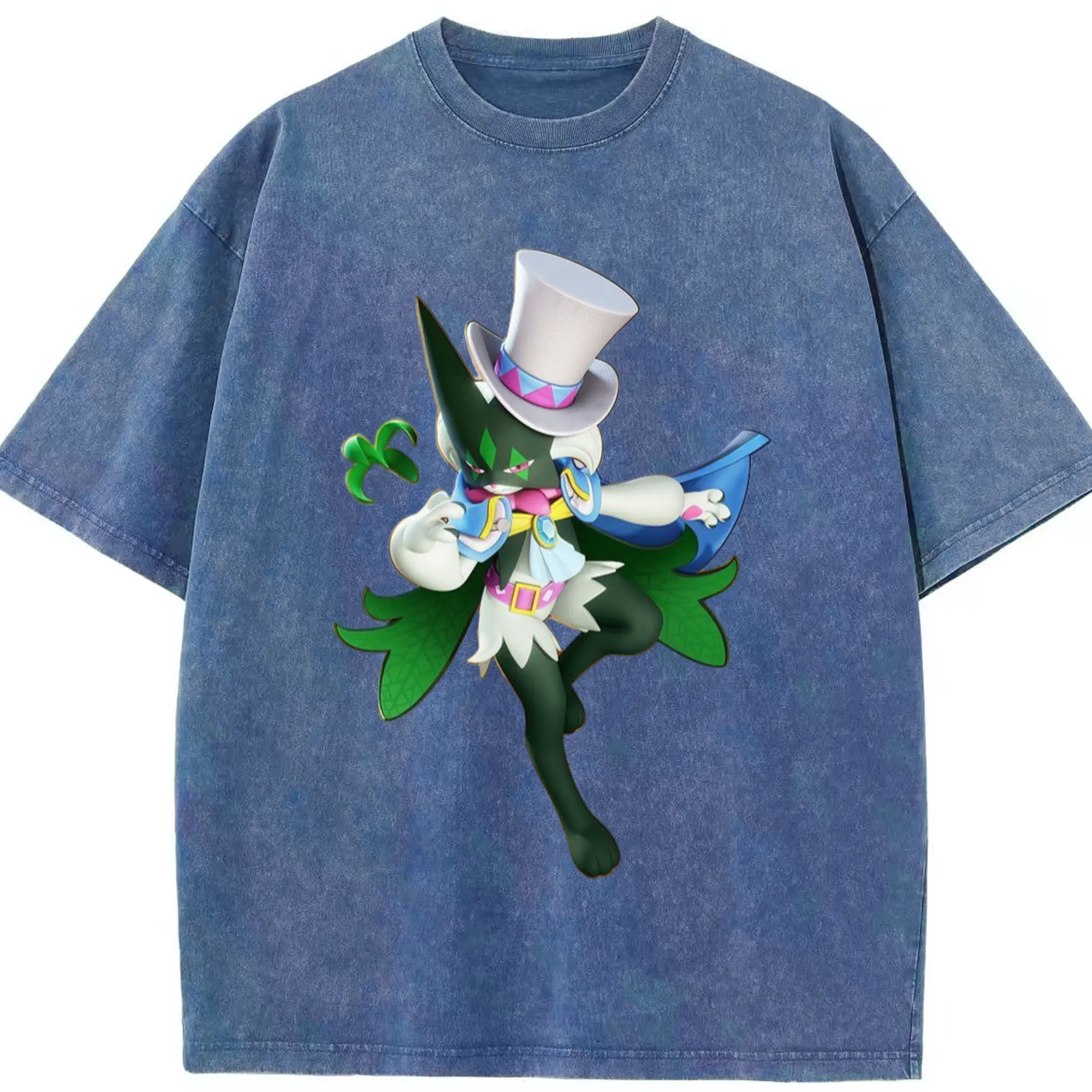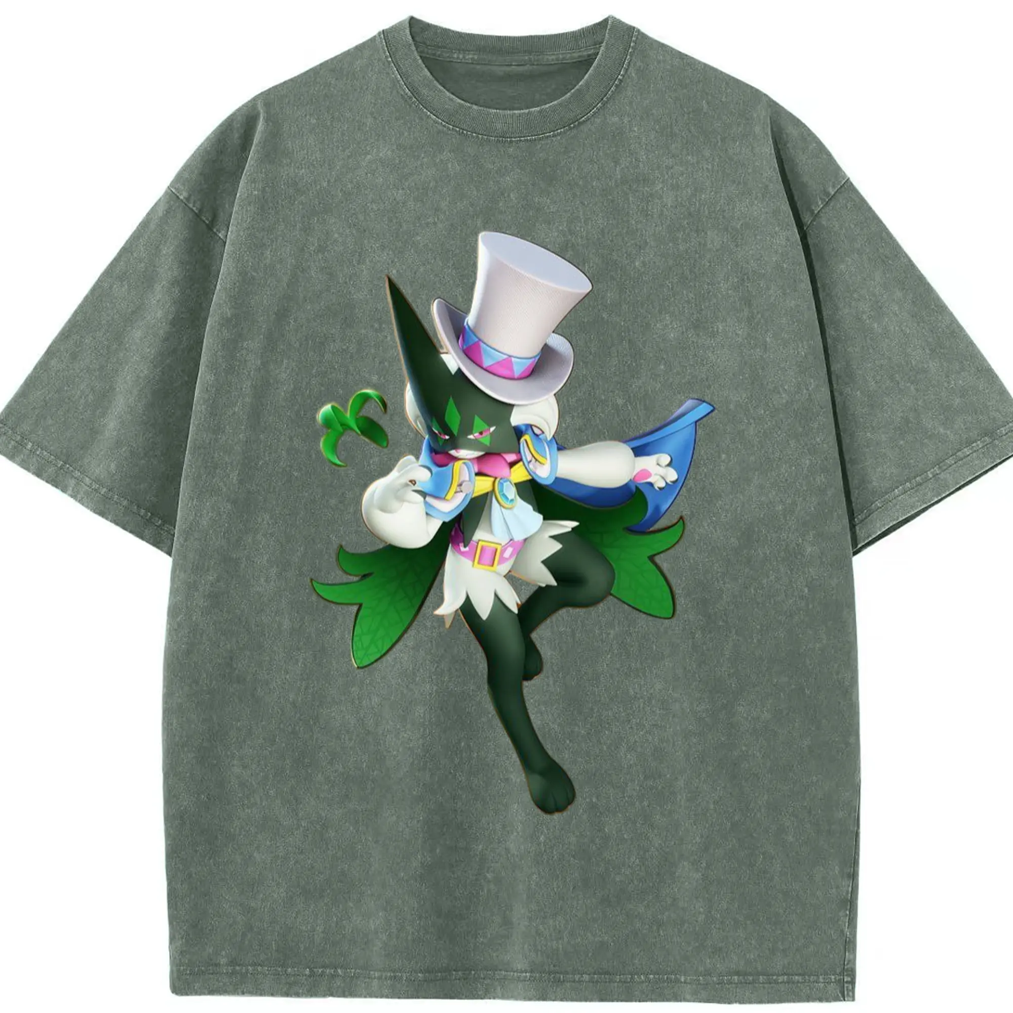 Meowscarada t-shirt - Washed Vintage Look 230g Cotton Oversized T-Shirt With Front Heat Transfer Print – Soft, Lightweight, Stylish Fit – Comfortable Casual Wear For Sports & Everyday Use