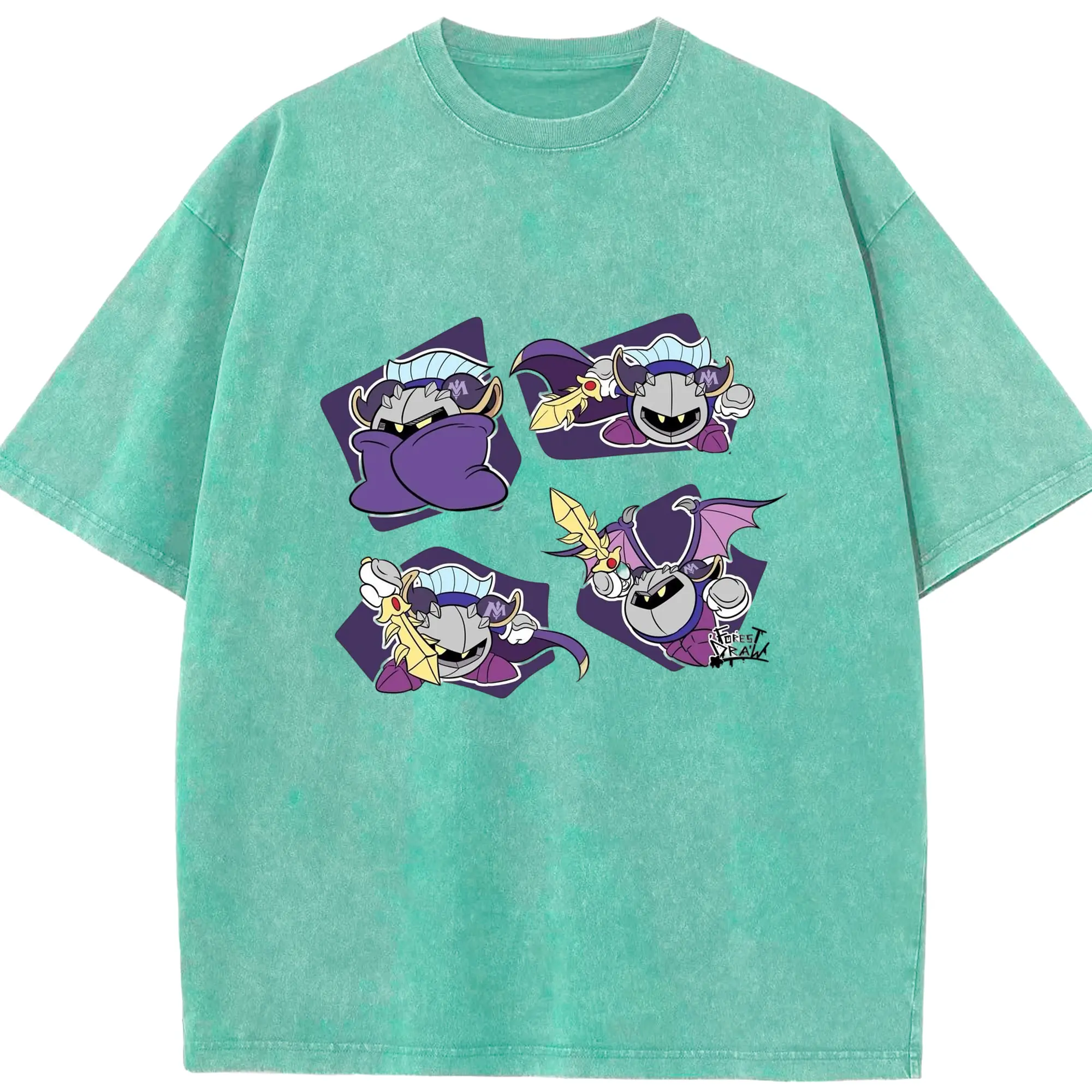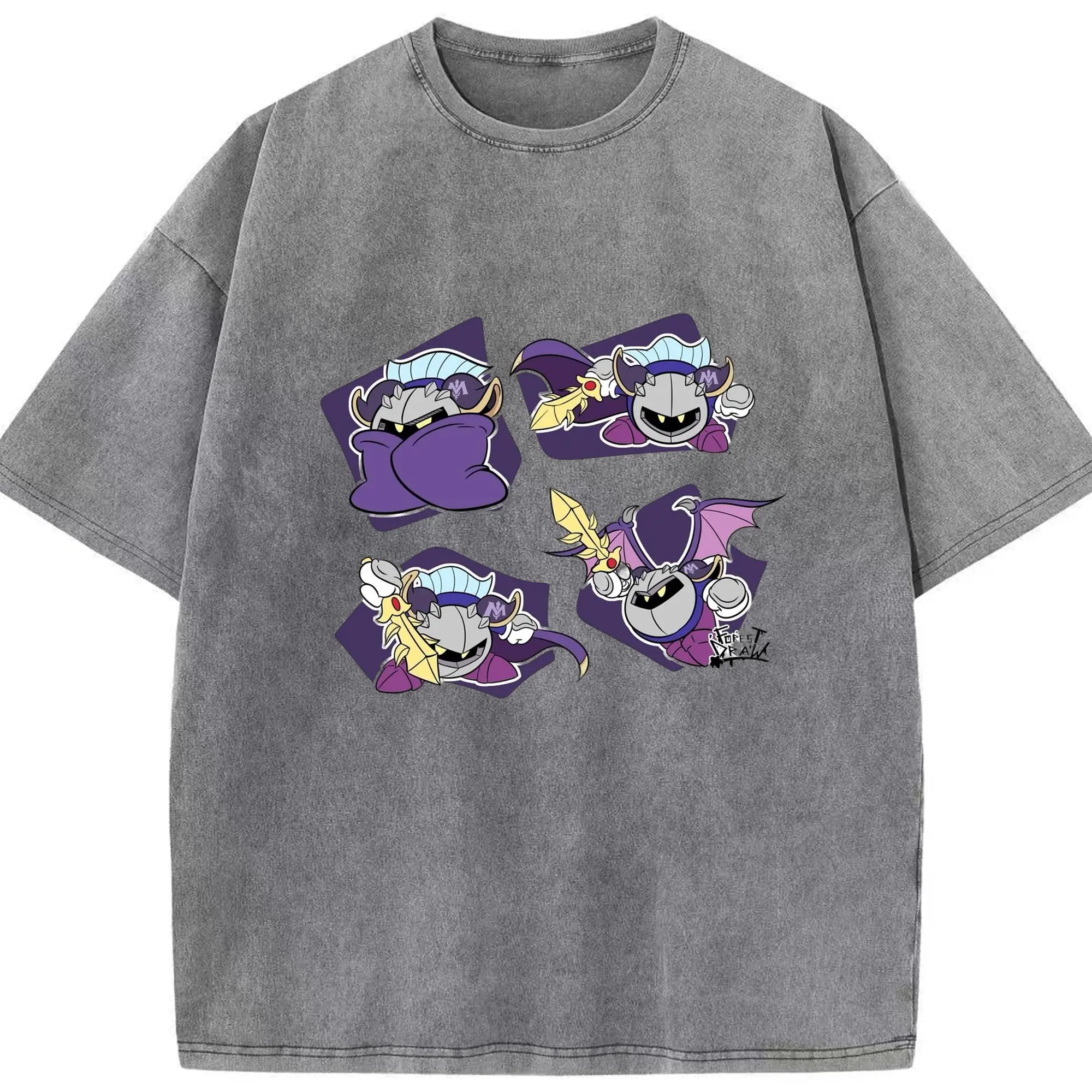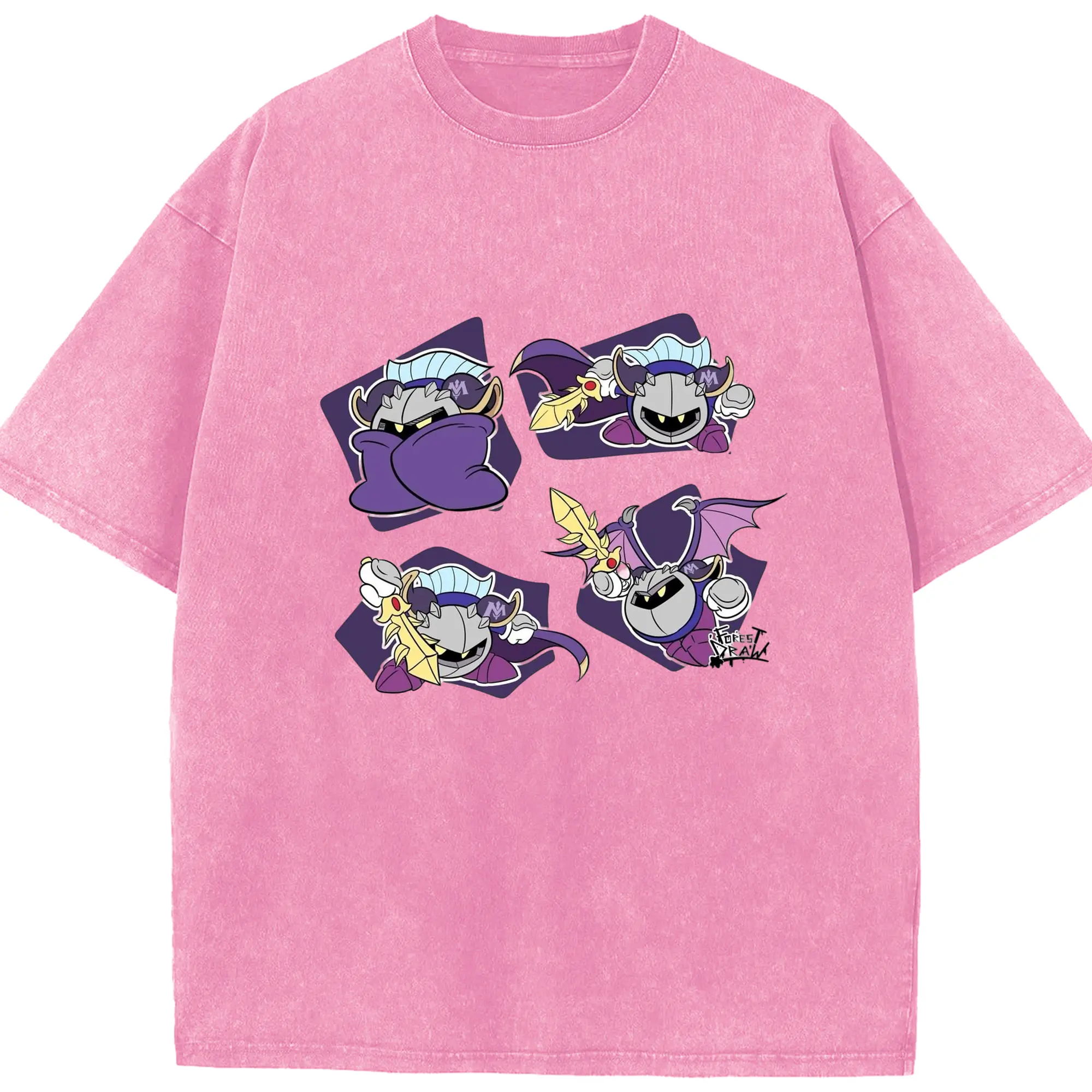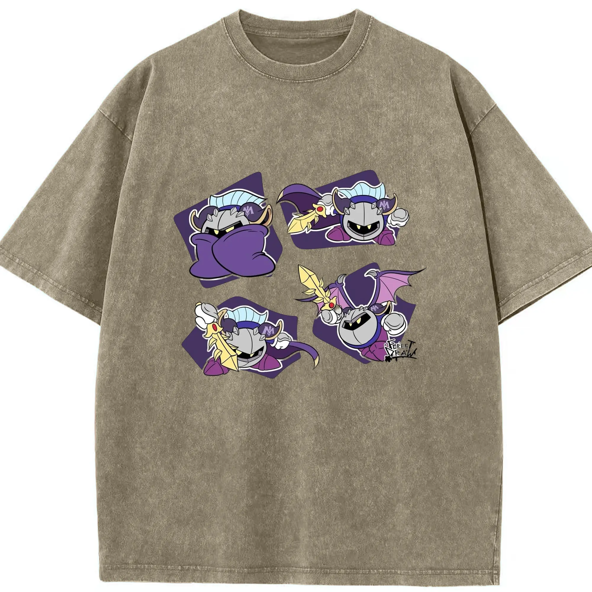 Meta Knight collage shirt - Washed Vintage Look 230g Cotton Oversized T-Shirt With Front Heat Transfer Print – Soft, Lightweight, Stylish Fit – Comfortable Casual Wear For Sports & Everyday Use