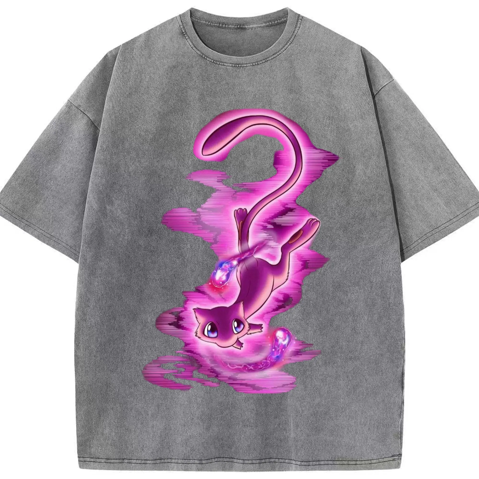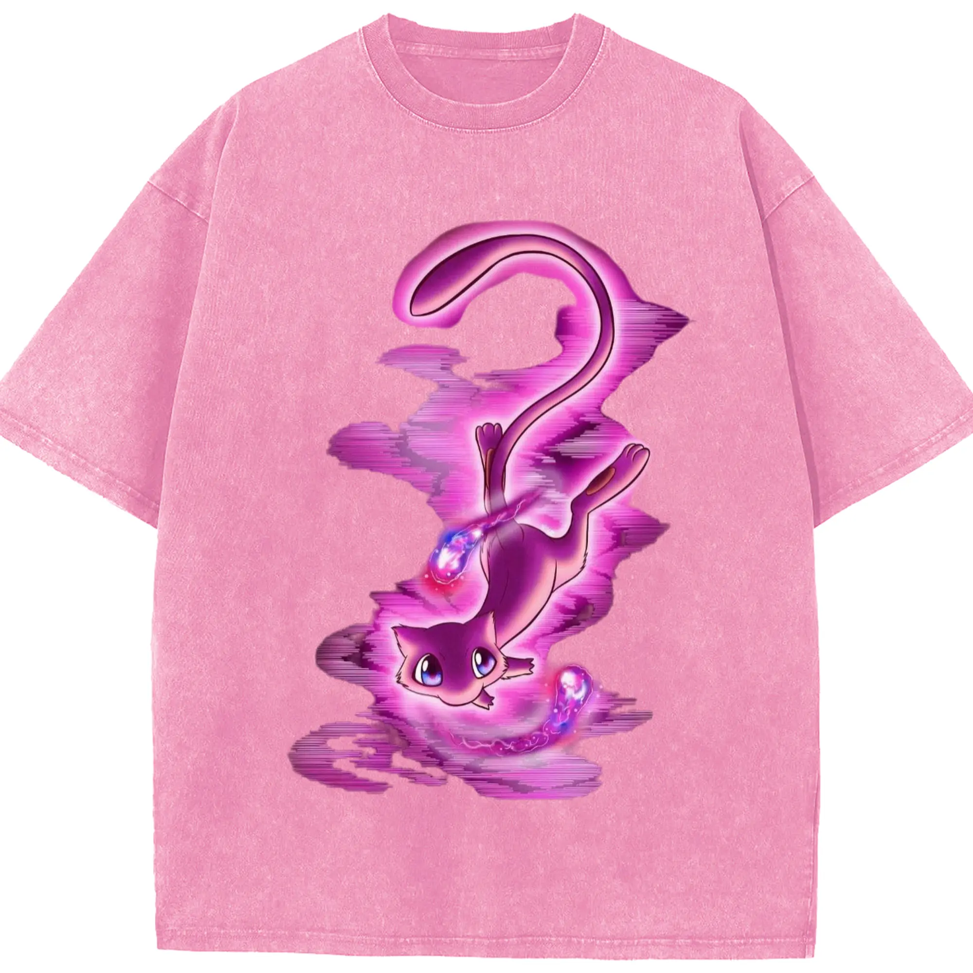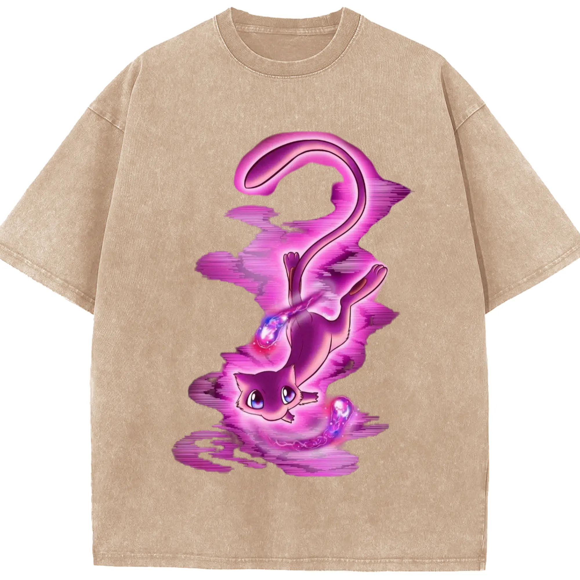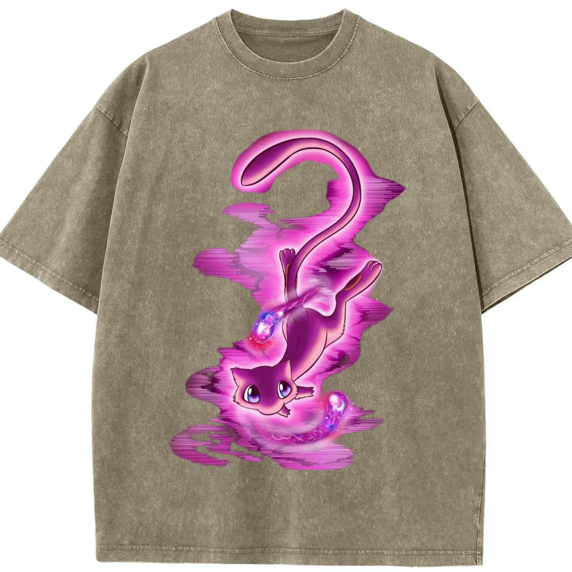 Mew Vintage Tee - Washed Vintage Look 230g Cotton Oversized T-Shirt With Front Heat Transfer Print – Soft, Lightweight, Stylish Fit – Comfortable Casual Wear For Sports & Everyday Use