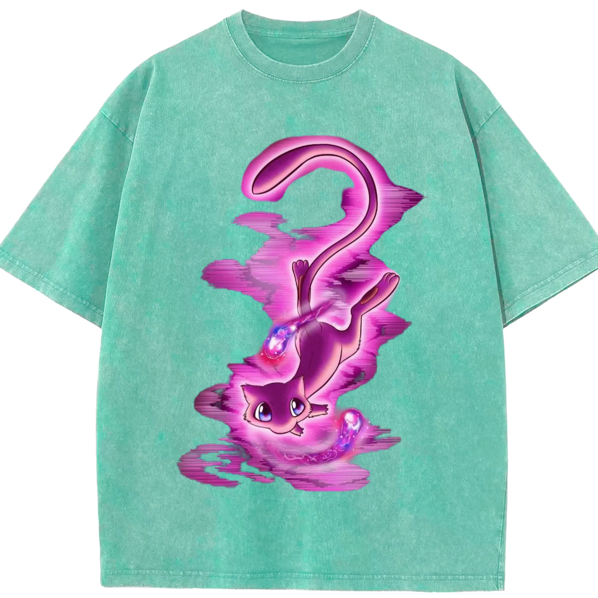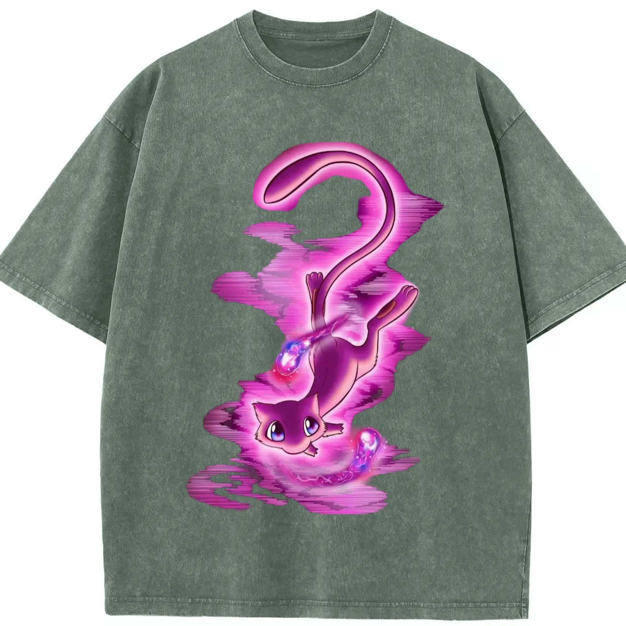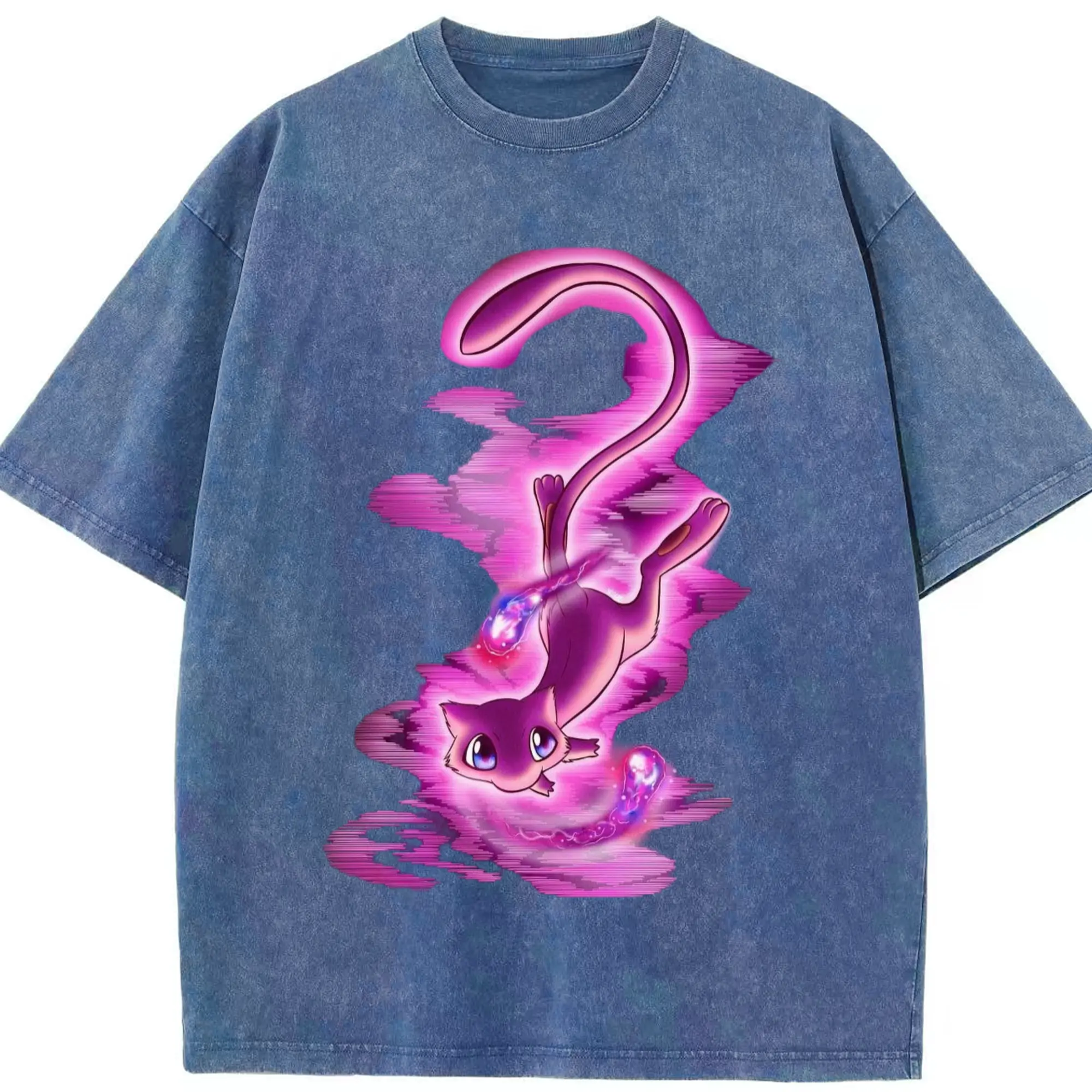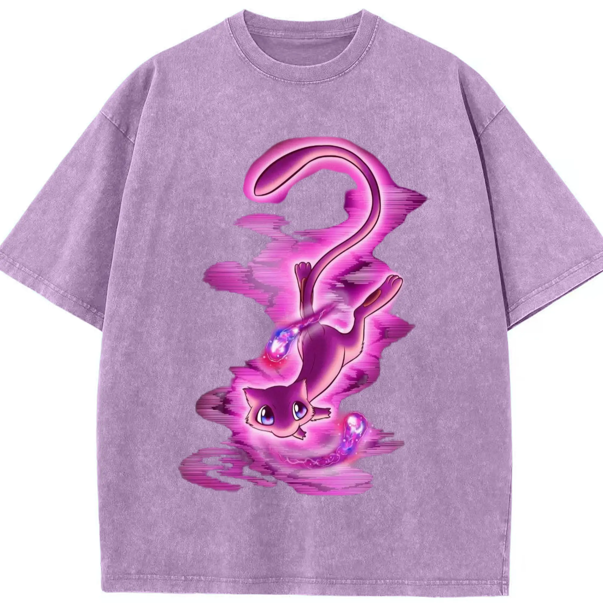Mew Vintage Tee - Washed Vintage Look 230g Cotton Oversized T-Shirt With Front Heat Transfer Print – Soft, Lightweight, Stylish Fit – Comfortable Casual Wear For Sports & Everyday Use