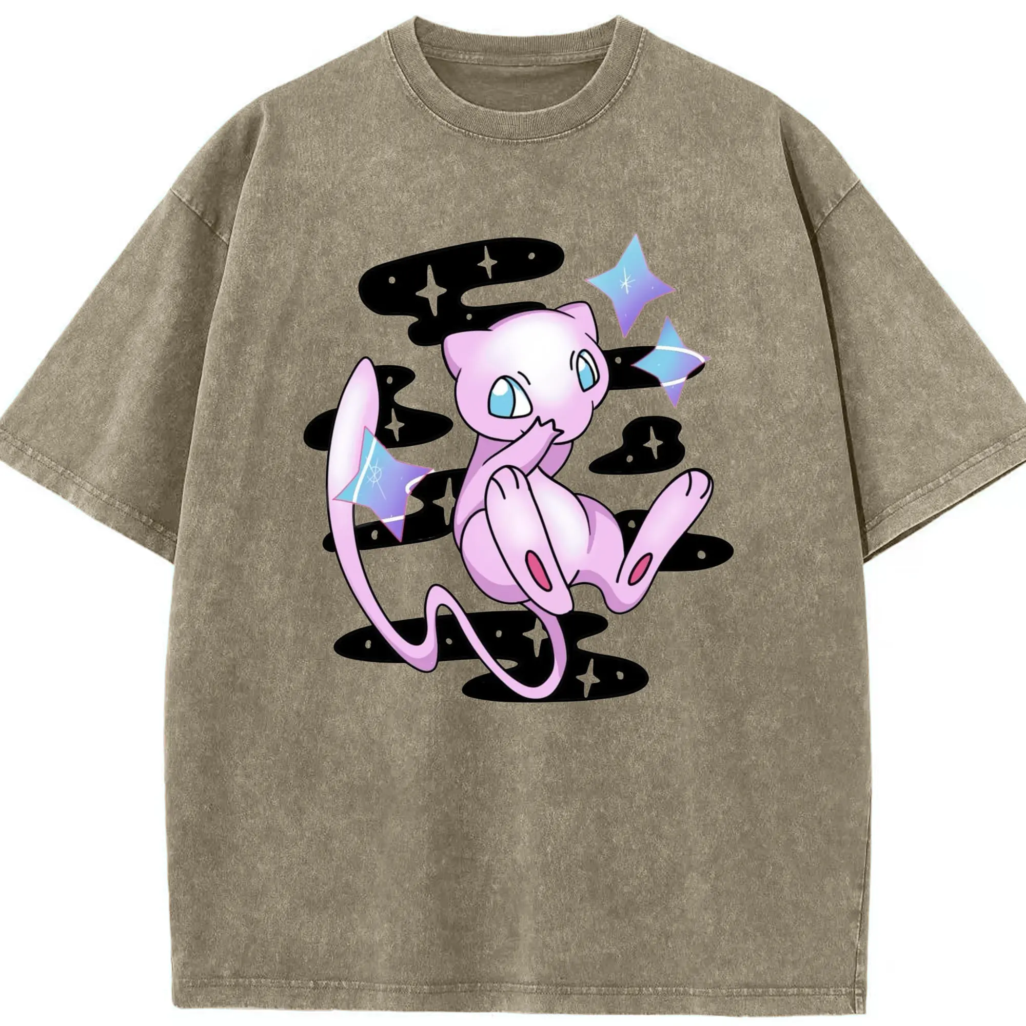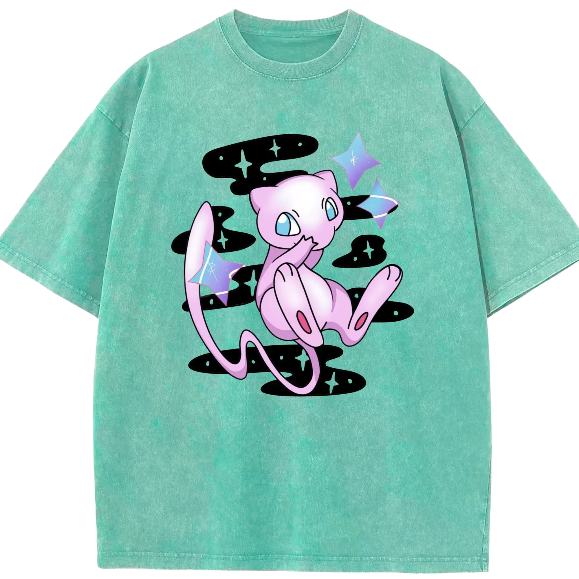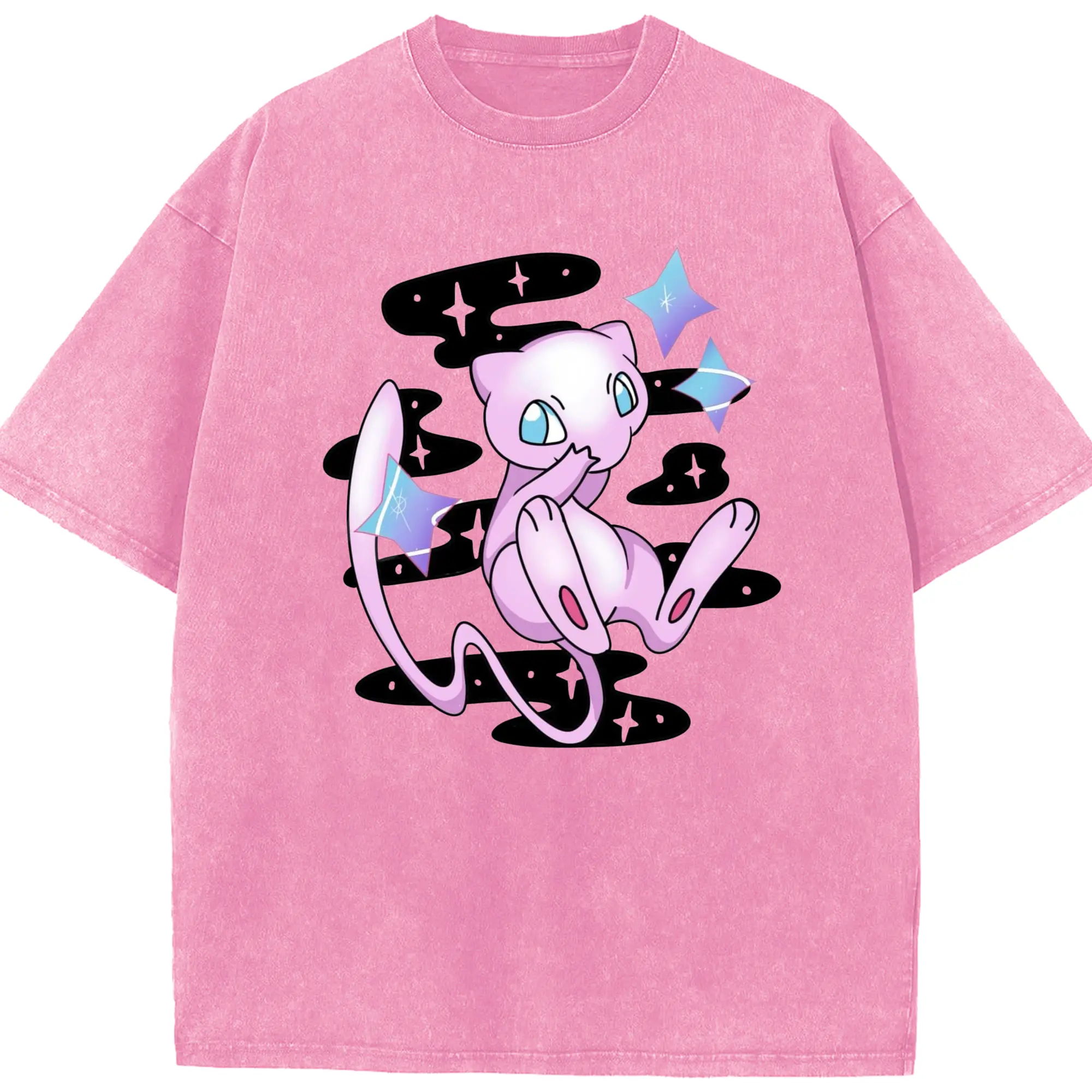 Mew womens t-shirt​ - Washed Vintage Look 230g Cotton Oversized T-Shirt With Front Heat Transfer Print – Soft, Lightweight, Stylish Fit – Comfortable Casual Wear For Sports & Everyday Use