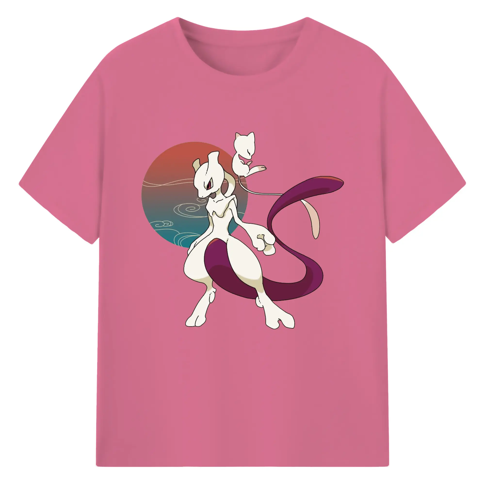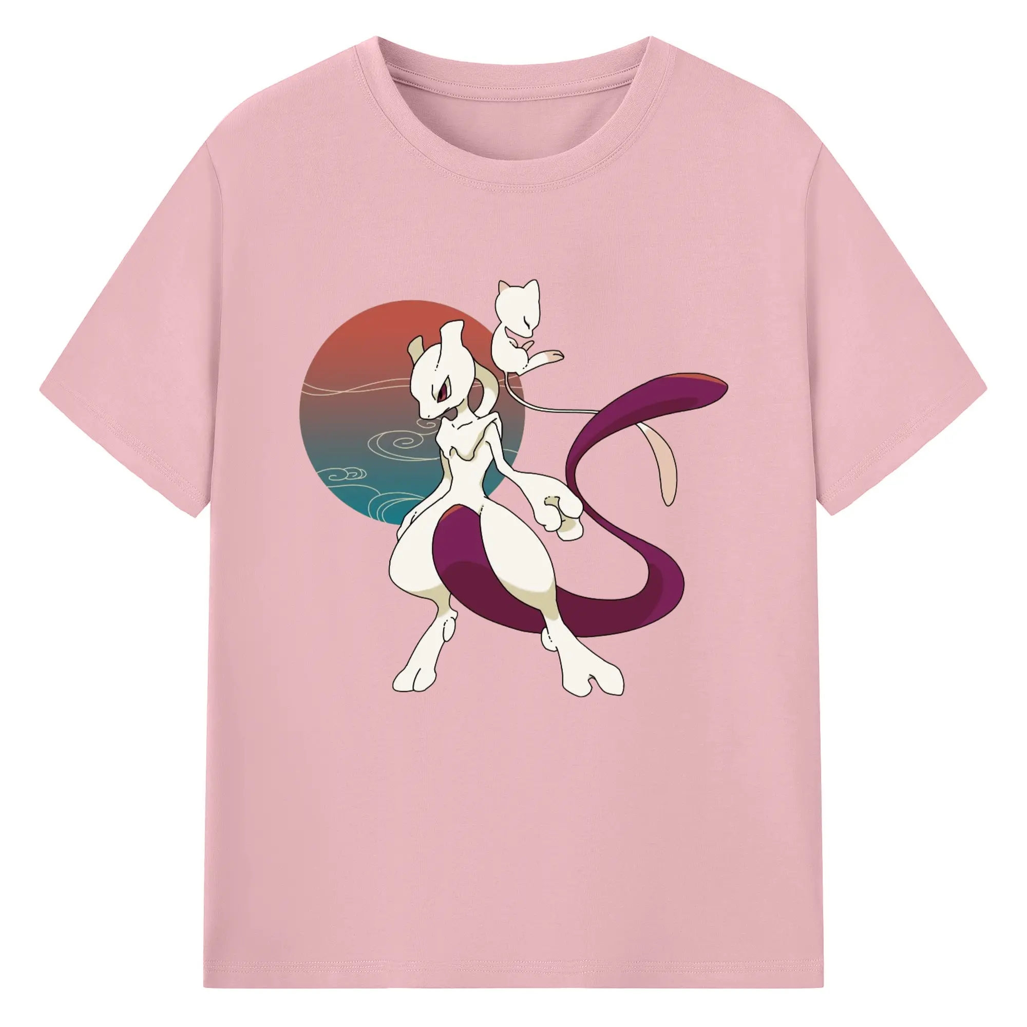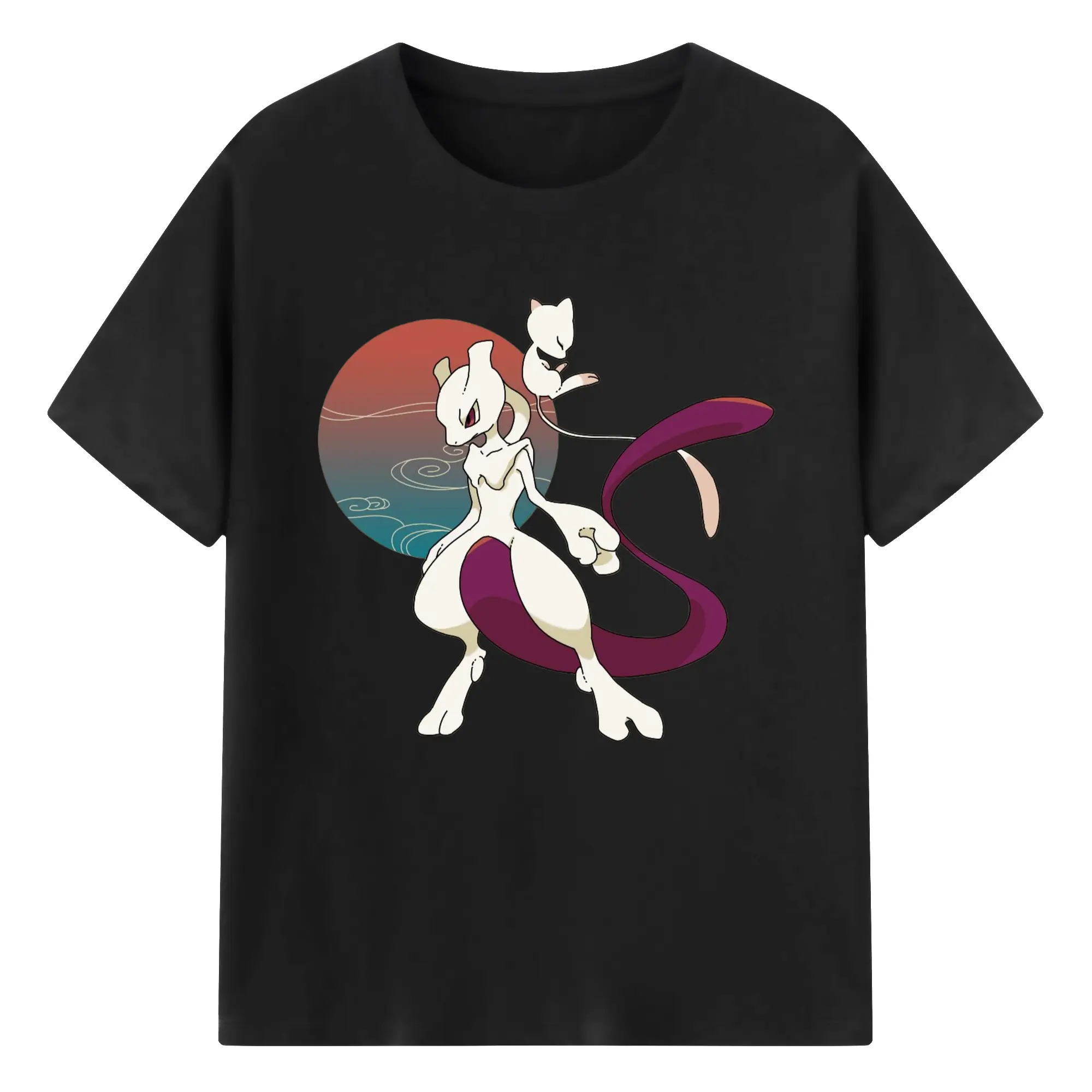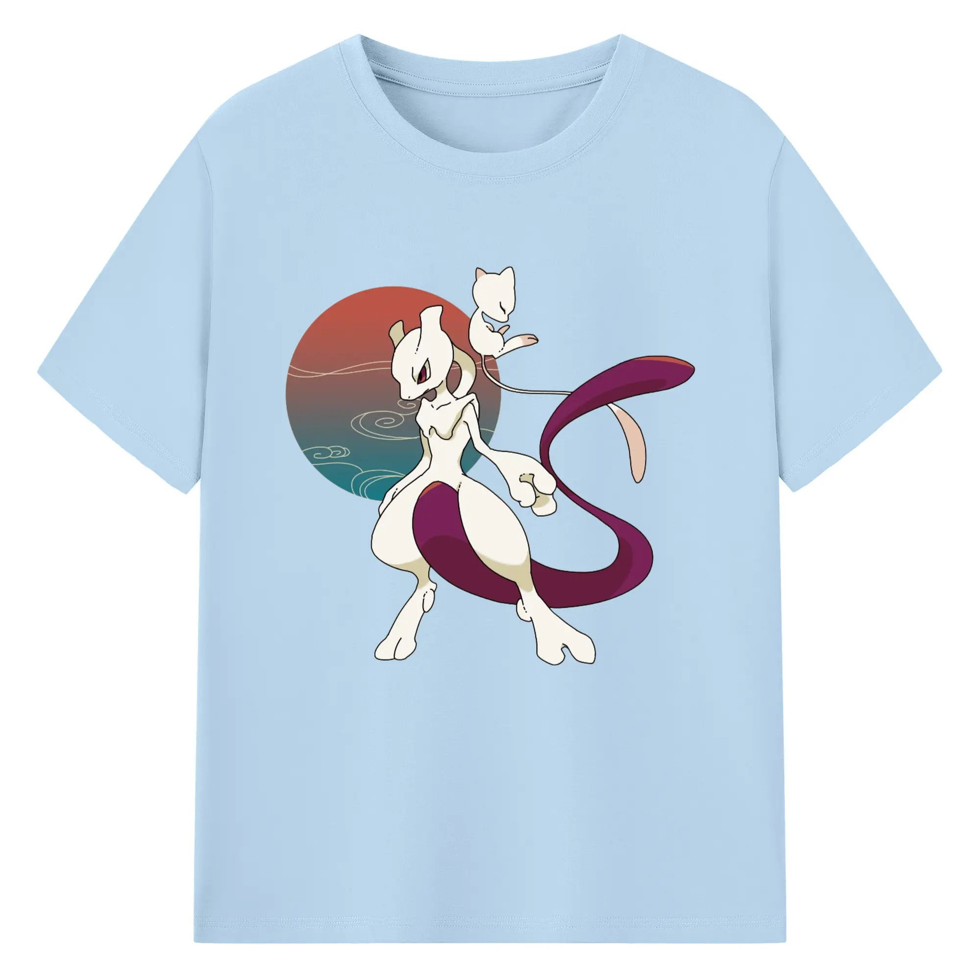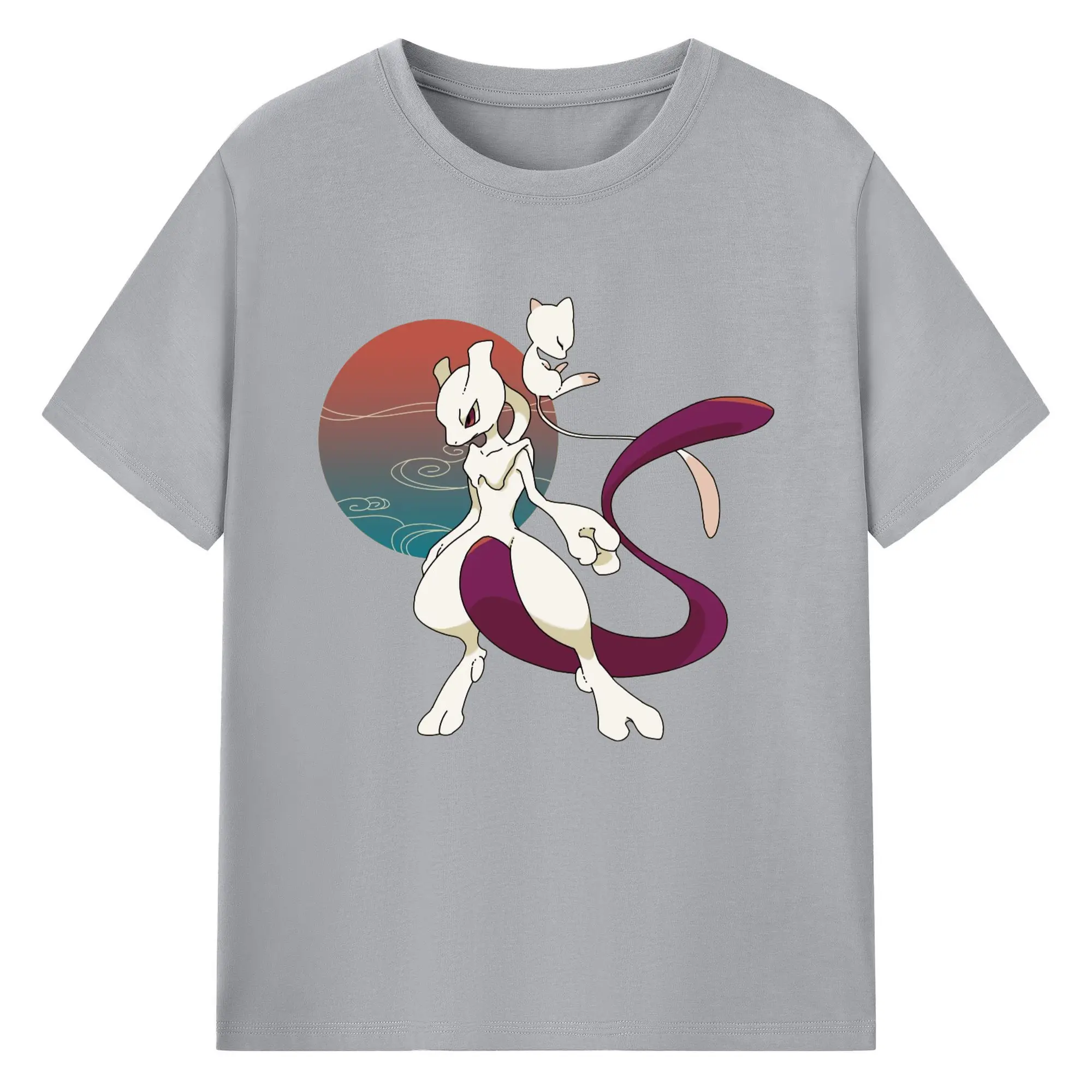 Mewtwo and mew graphic t shirt​ - 180g Cotton T-Shirt With Front Heat Transfer Print – Soft, Lightweight, Fitted Design – Comfortable Casual Wear For Sports & Everyday Use