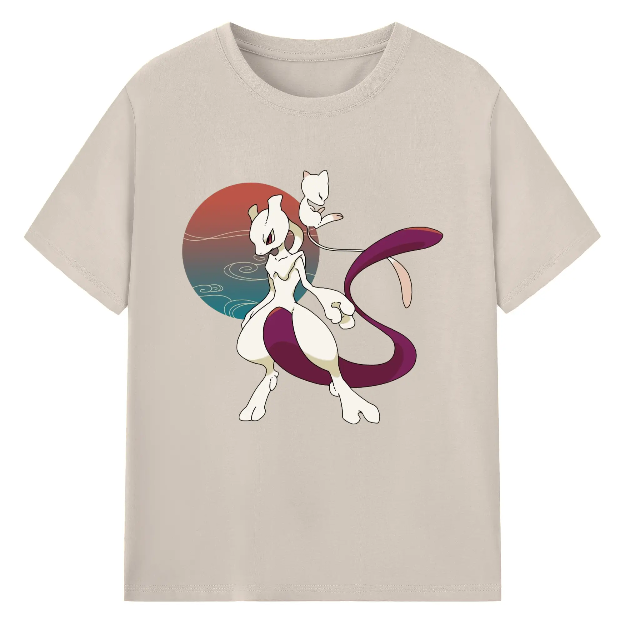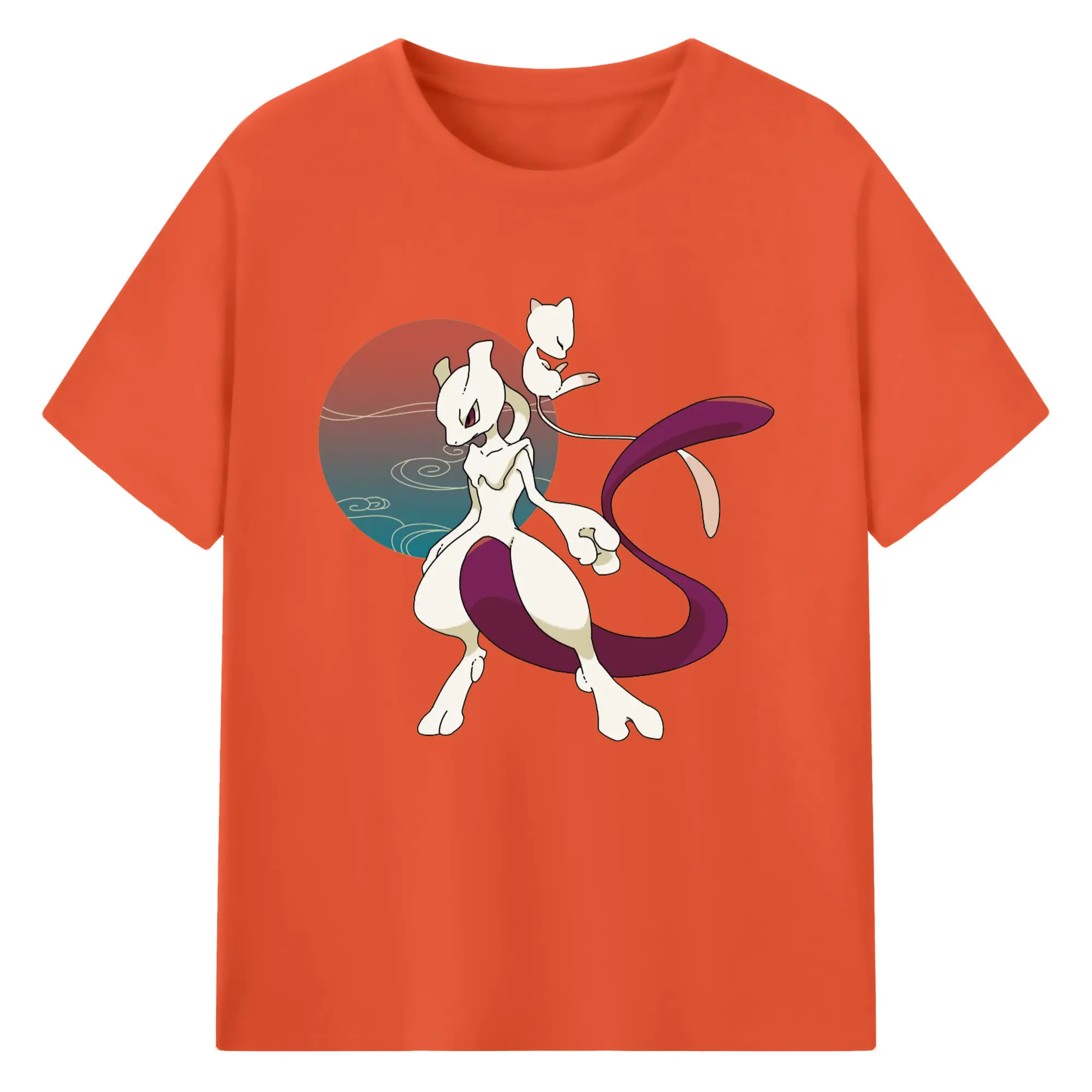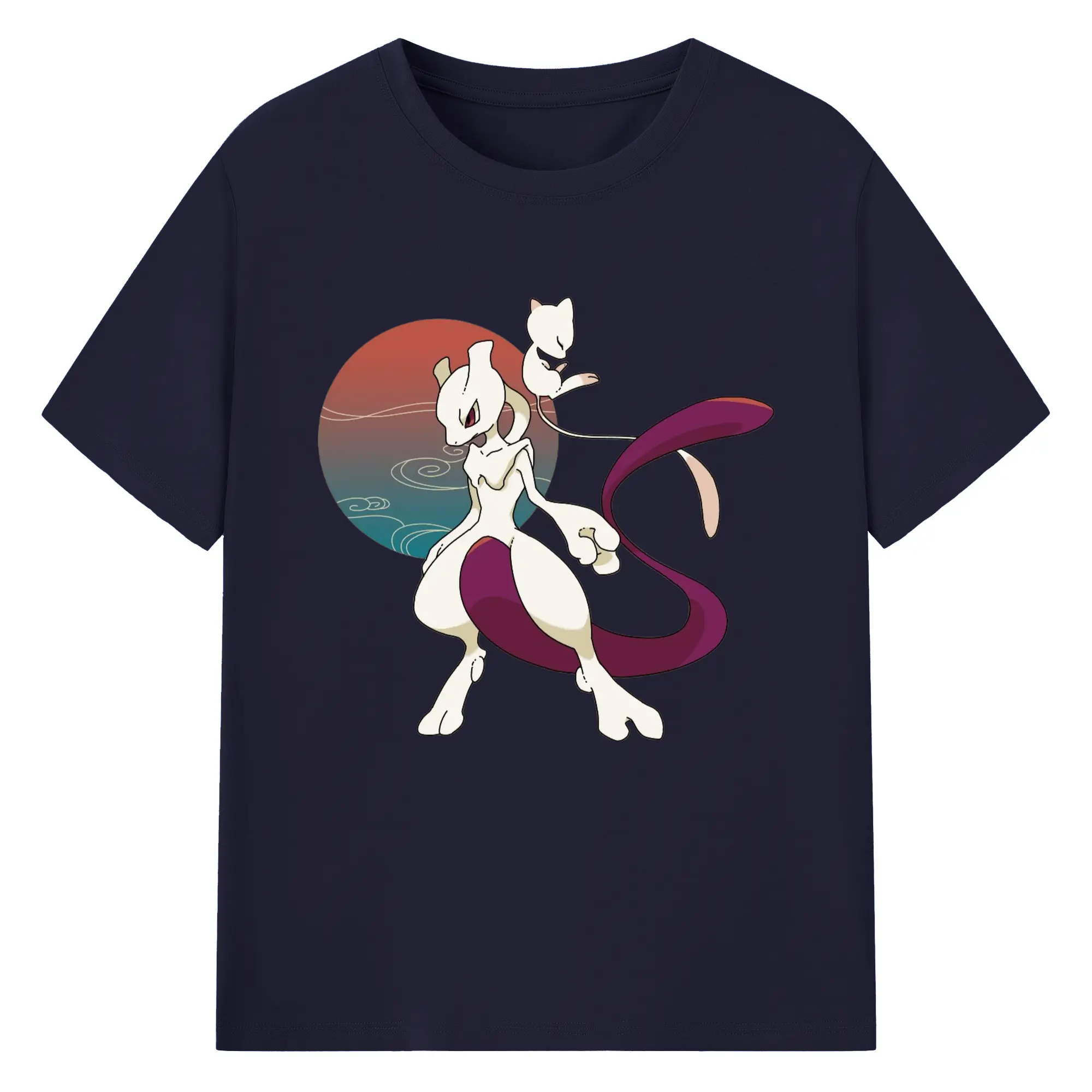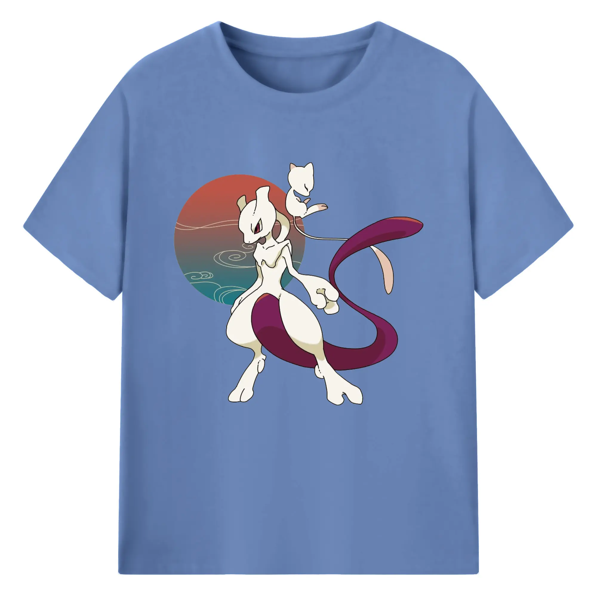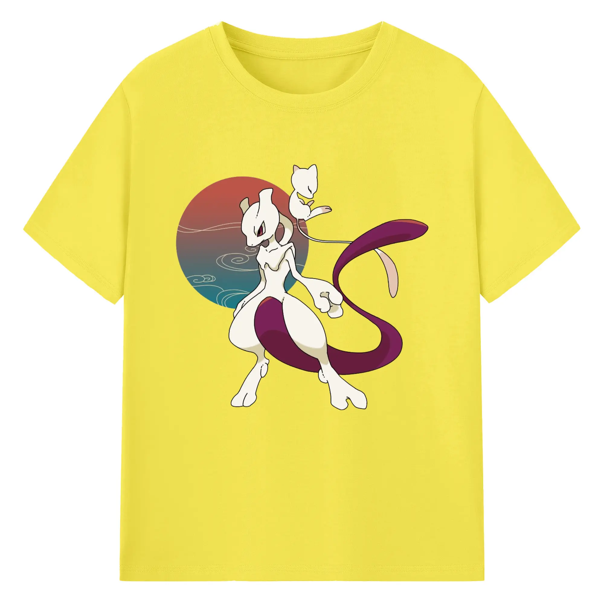 Mewtwo and mew graphic t shirt​ - 180g Cotton T-Shirt With Front Heat Transfer Print – Soft, Lightweight, Fitted Design – Comfortable Casual Wear For Sports & Everyday Use