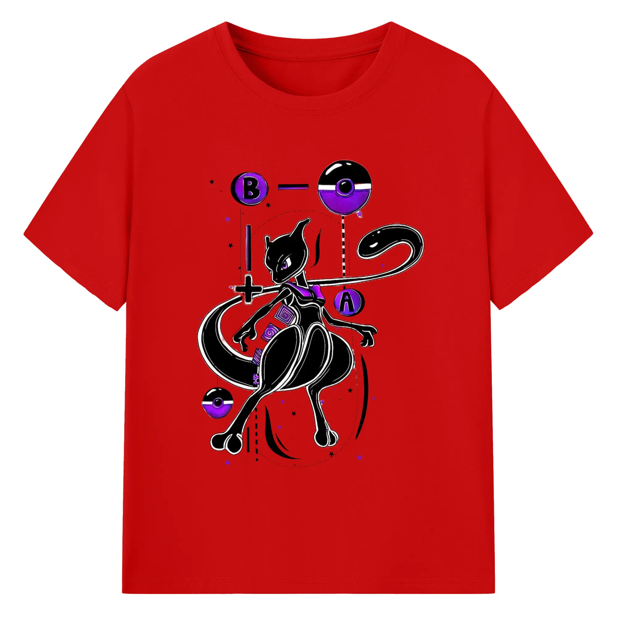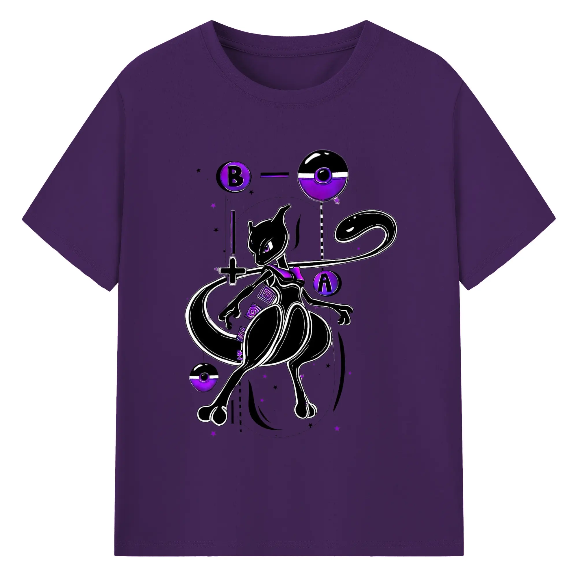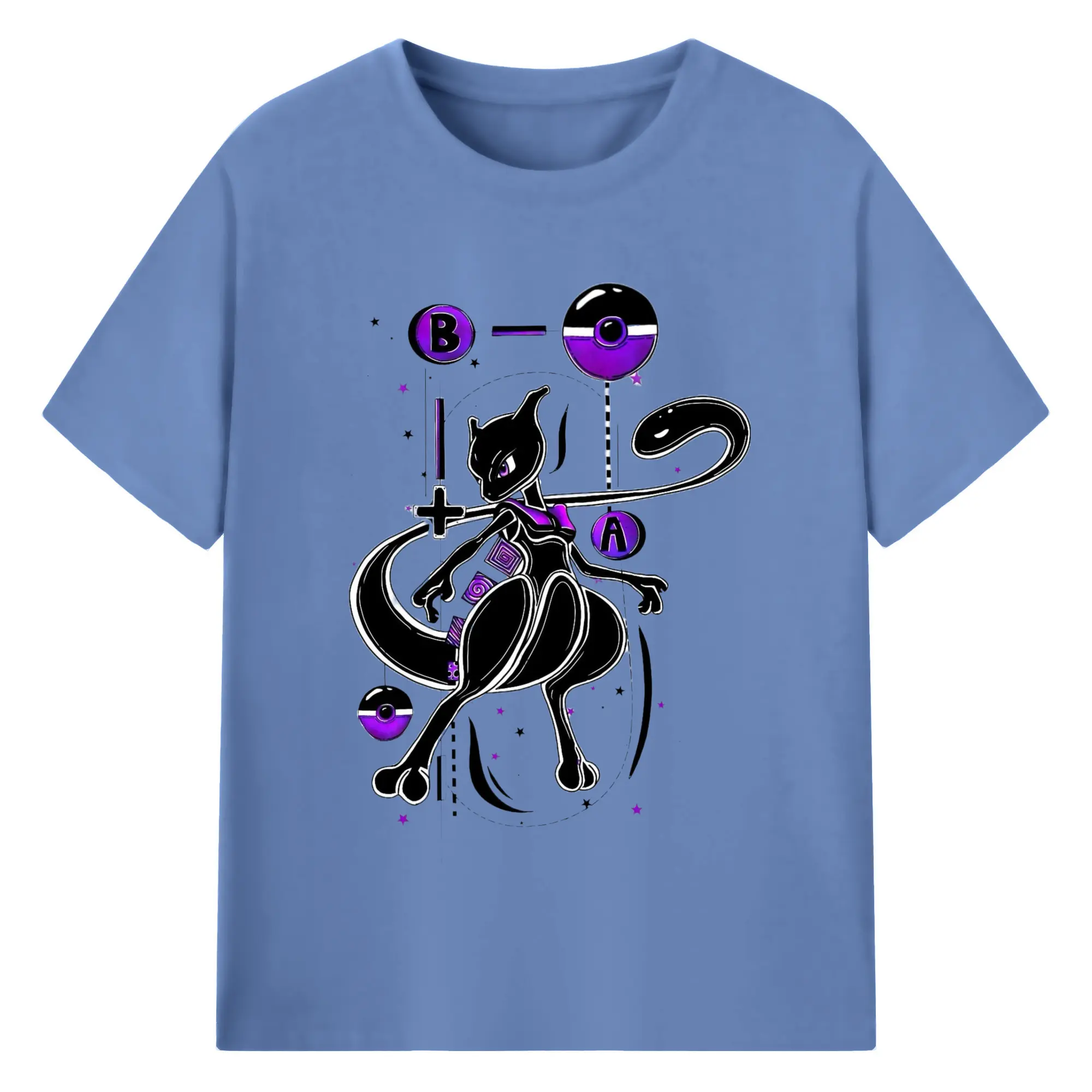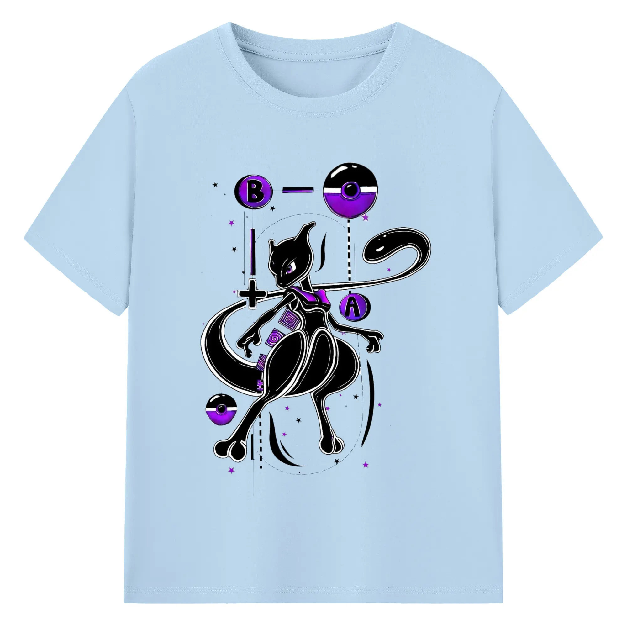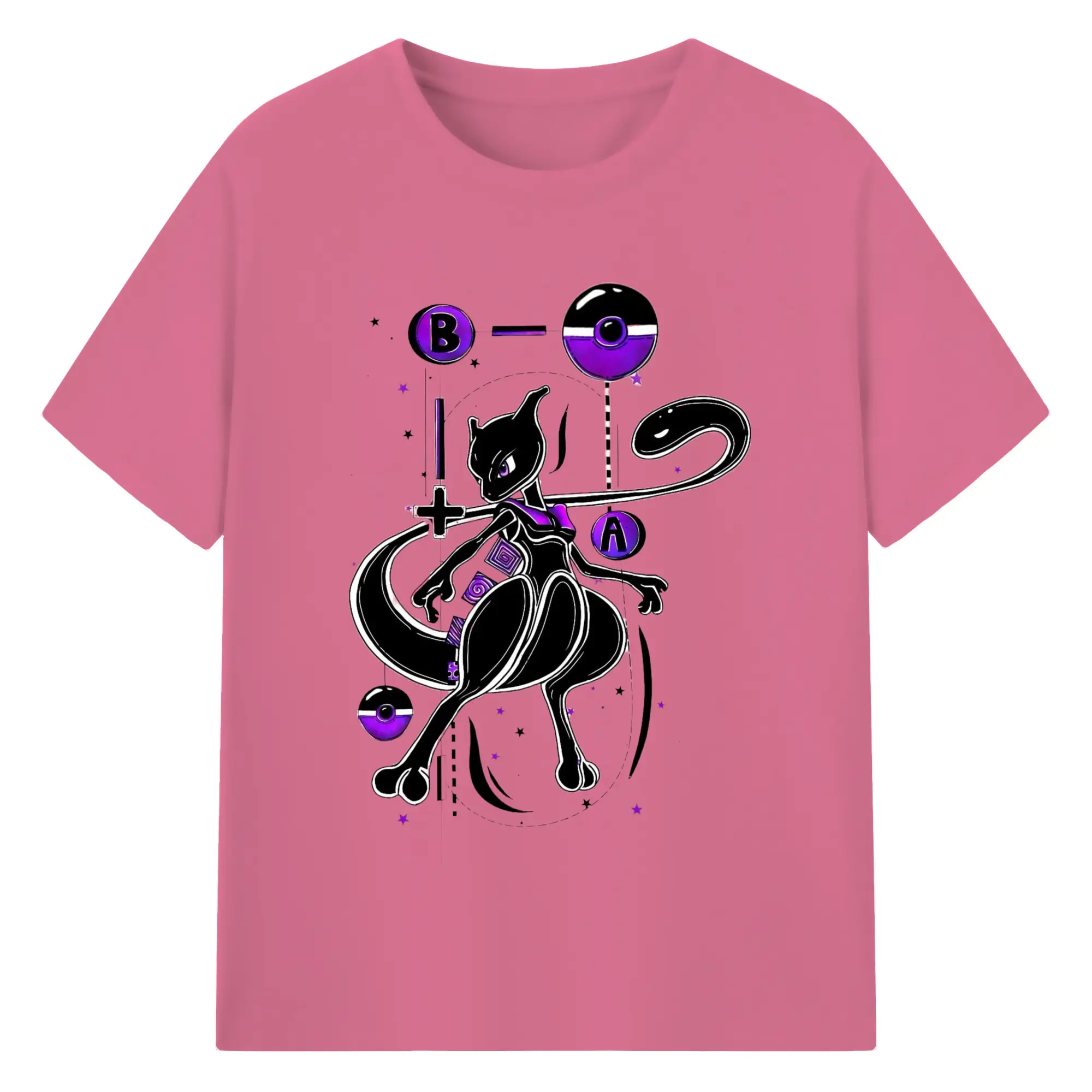 Mewtwo art graphic t shirt - 180g Cotton T-Shirt With Front Heat Transfer Print – Soft, Lightweight, Fitted Design – Comfortable Casual Wear For Sports & Everyday Use