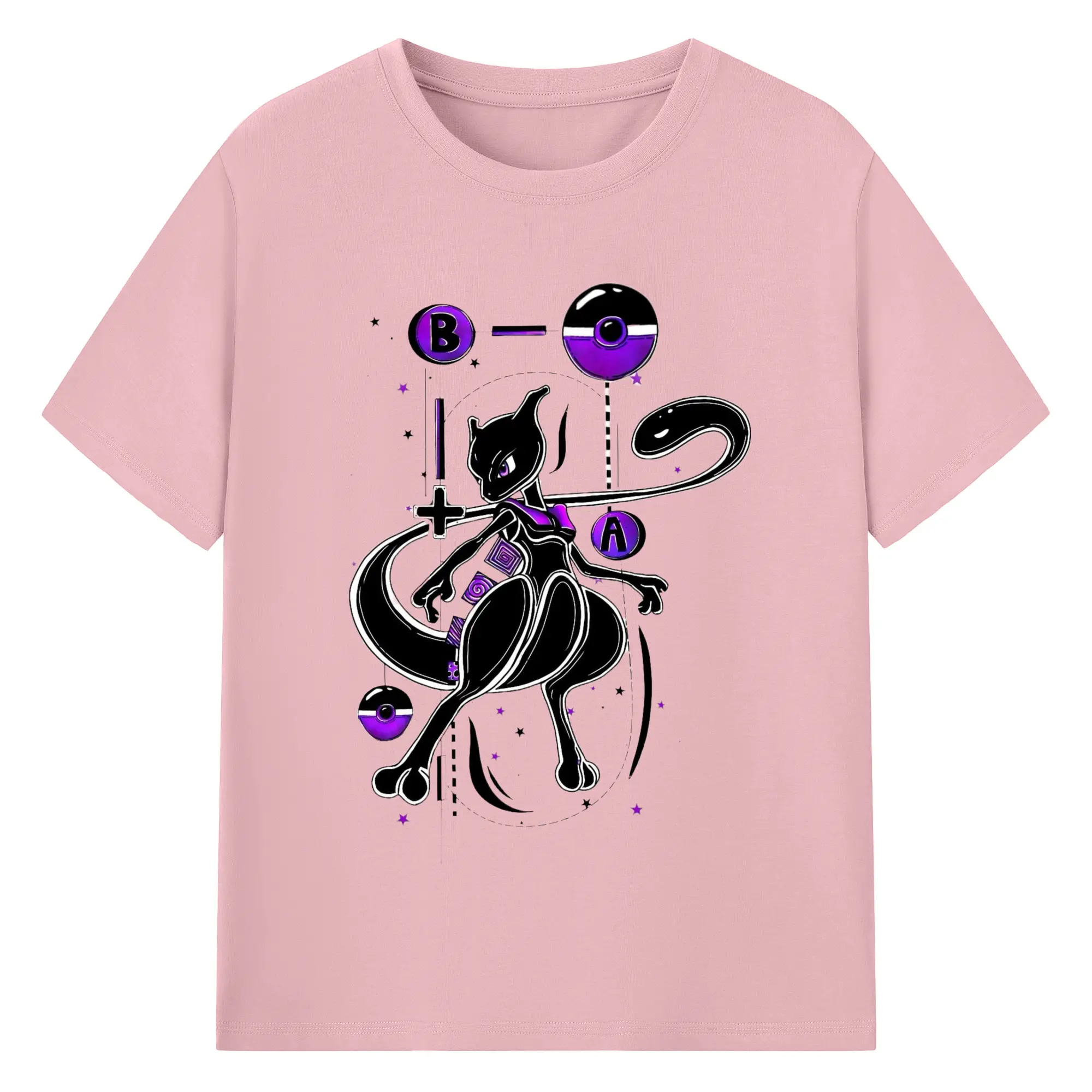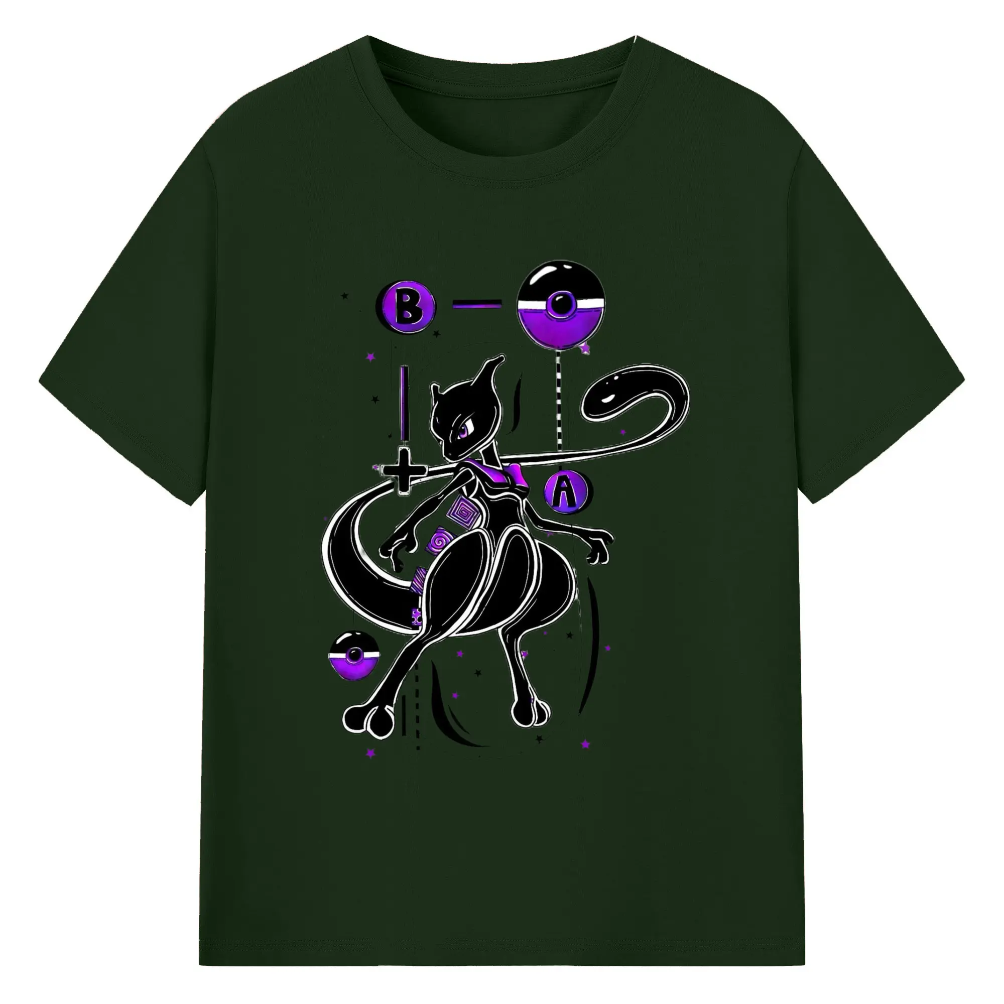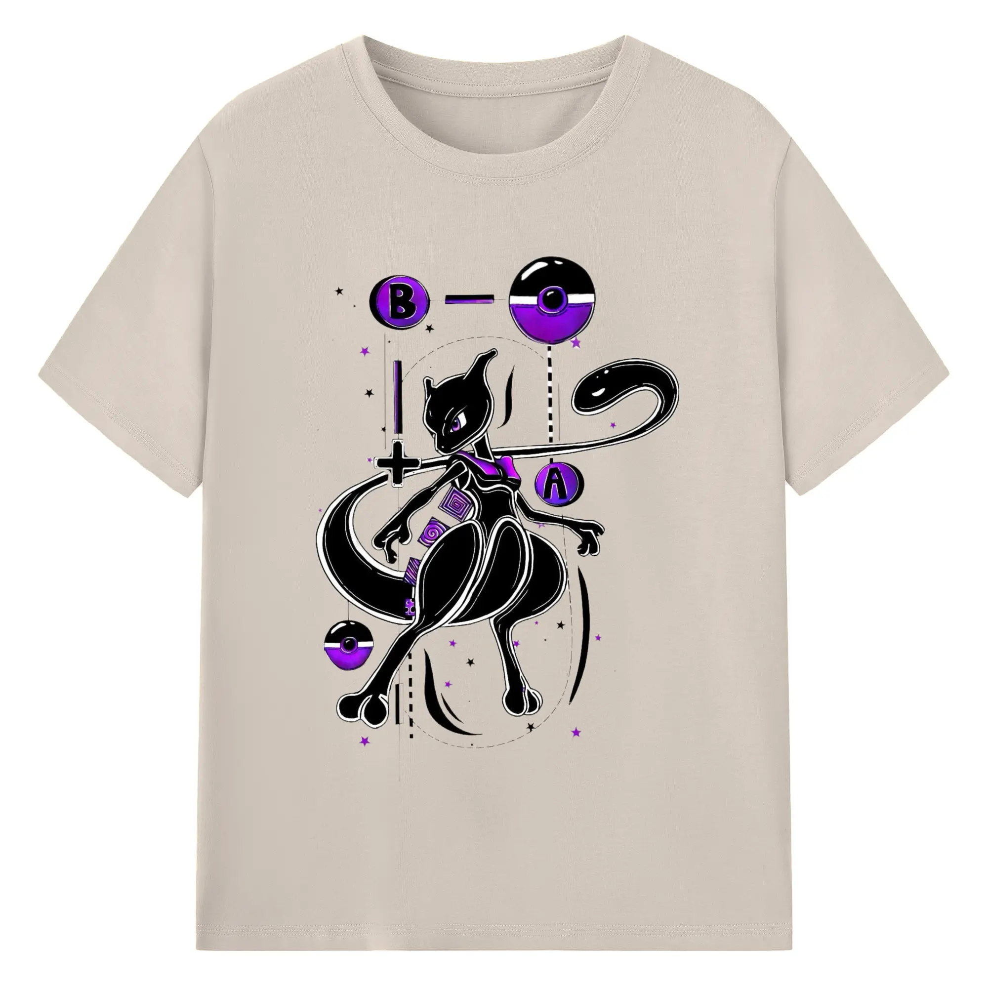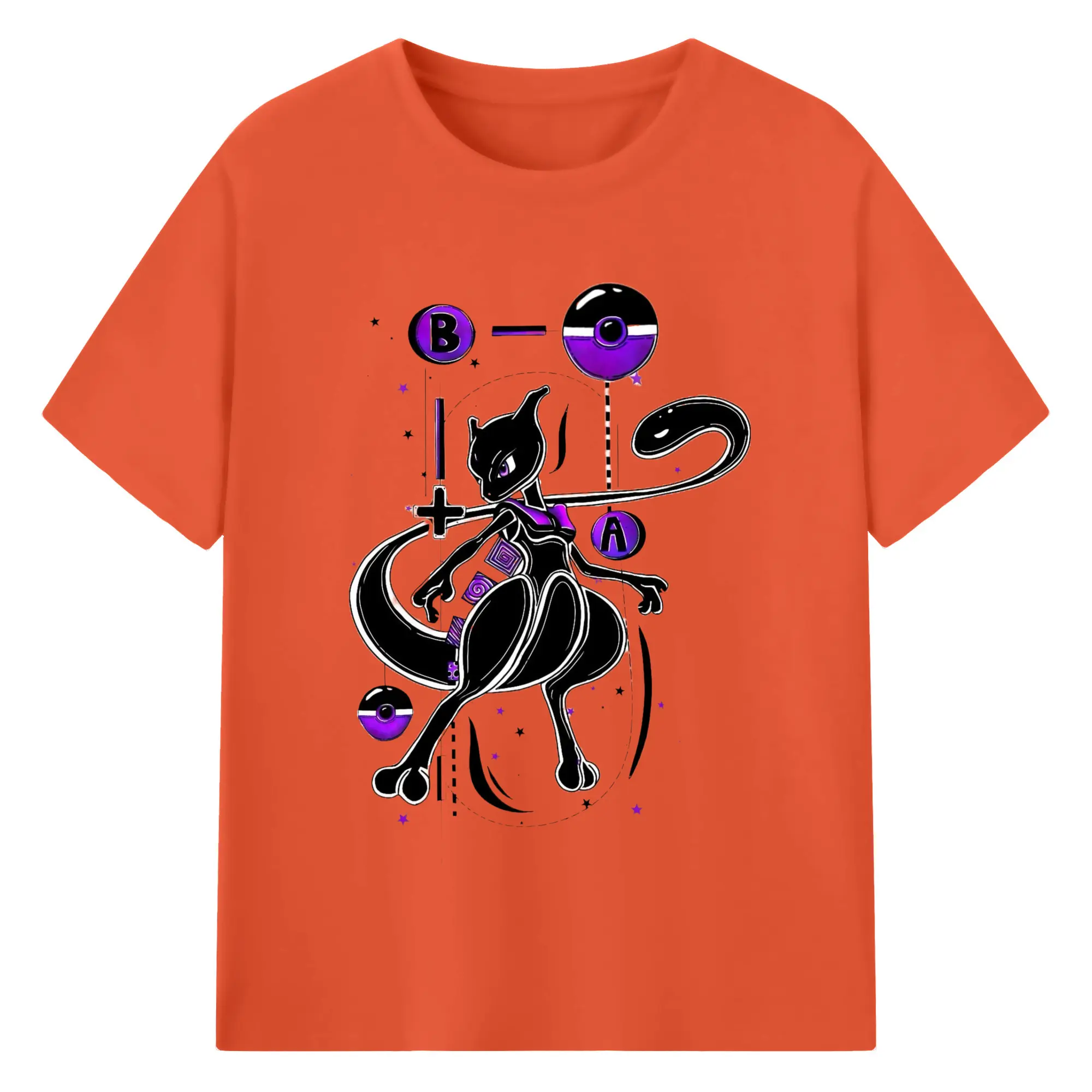 Mewtwo art graphic t shirt - 180g Cotton T-Shirt With Front Heat Transfer Print – Soft, Lightweight, Fitted Design – Comfortable Casual Wear For Sports & Everyday Use