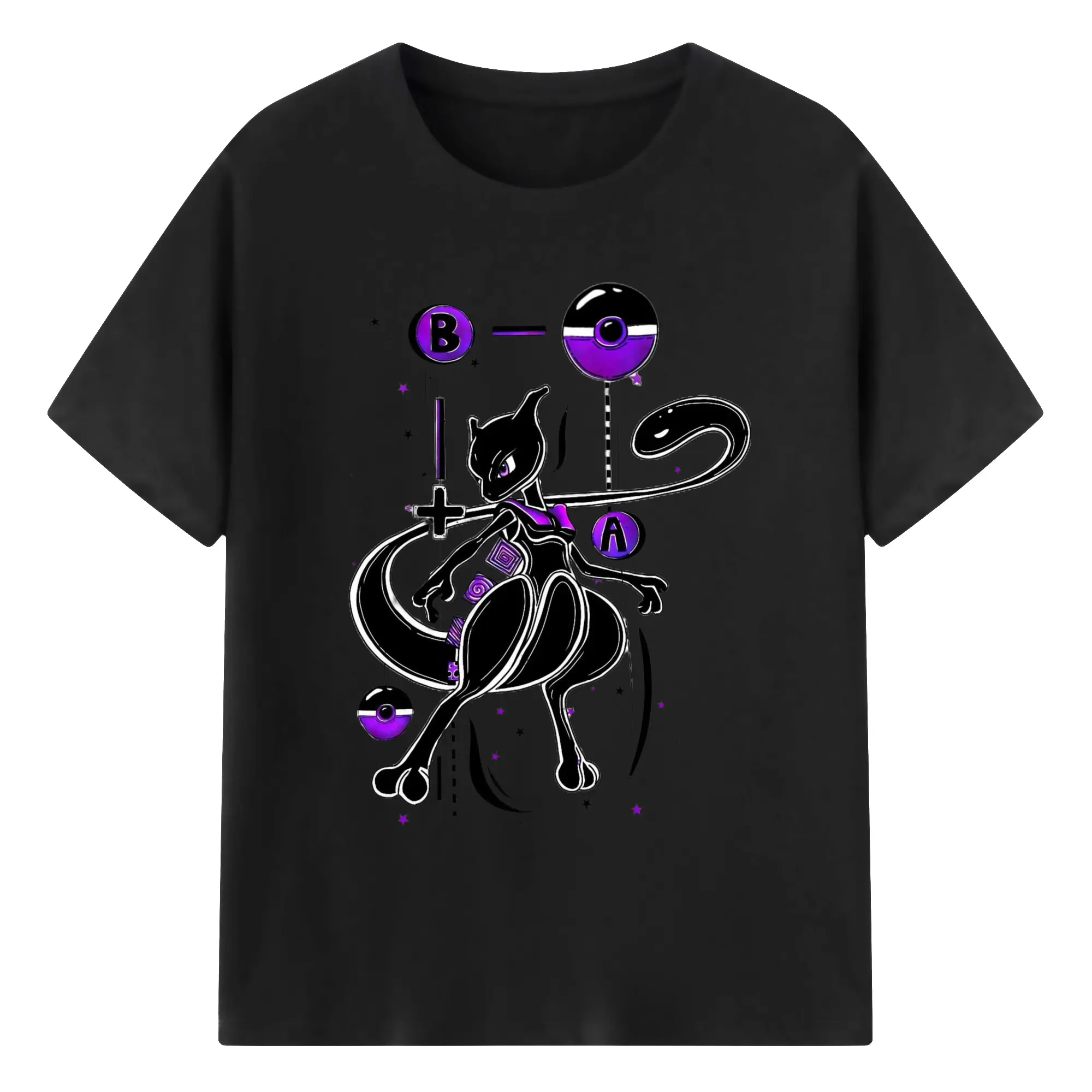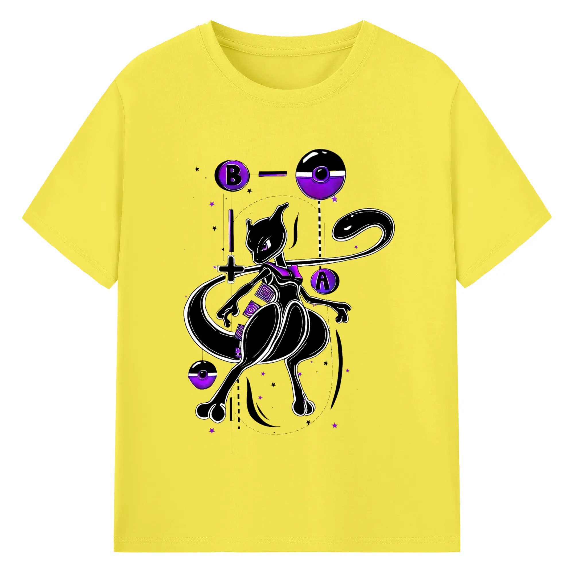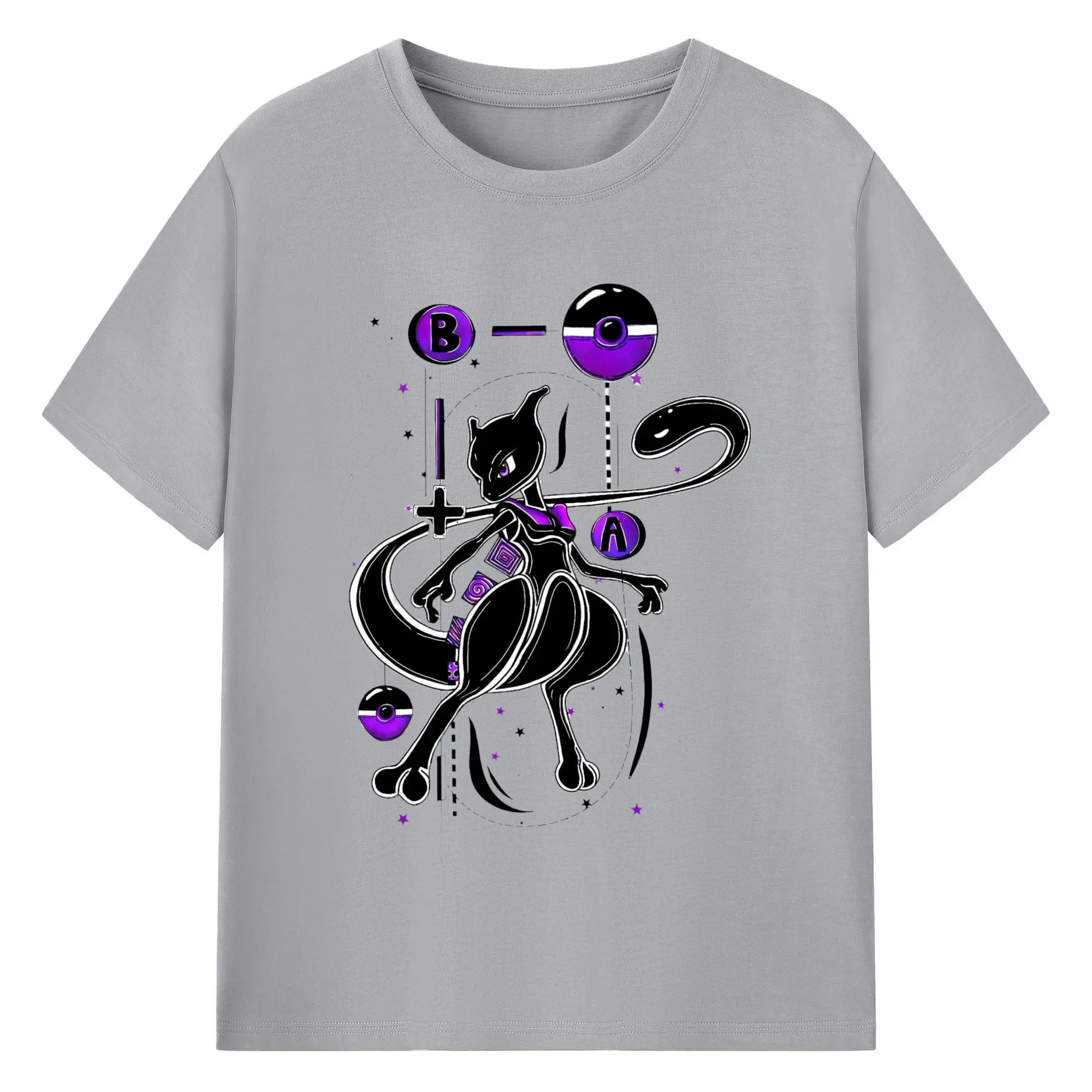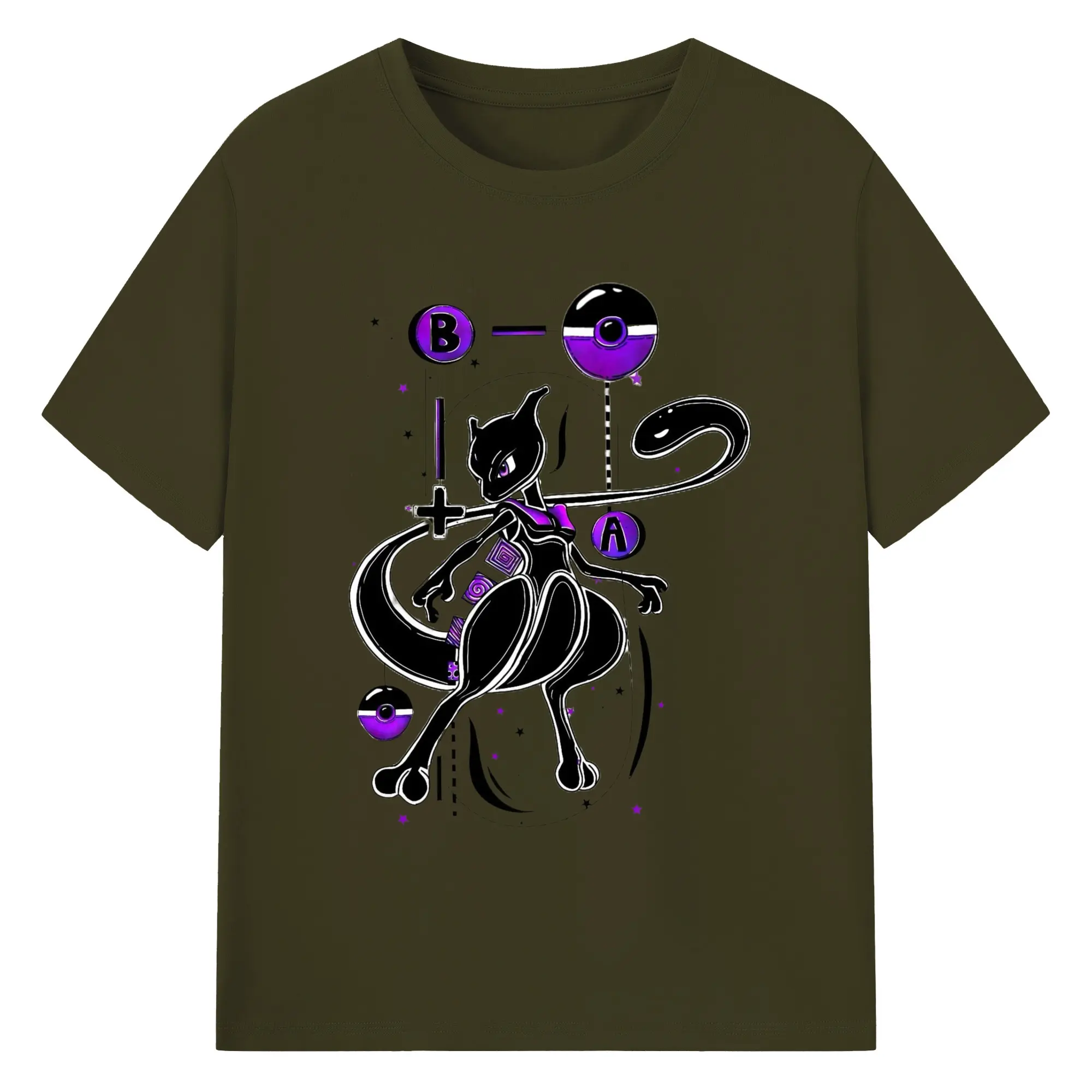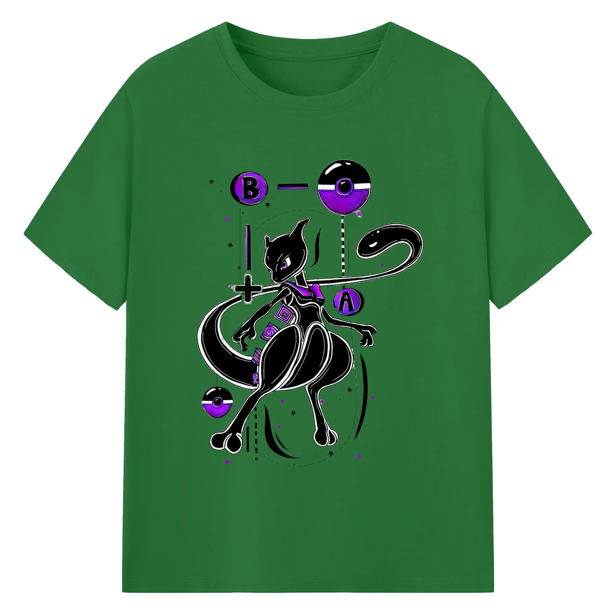 Mewtwo art graphic t shirt - 180g Cotton T-Shirt With Front Heat Transfer Print – Soft, Lightweight, Fitted Design – Comfortable Casual Wear For Sports & Everyday Use