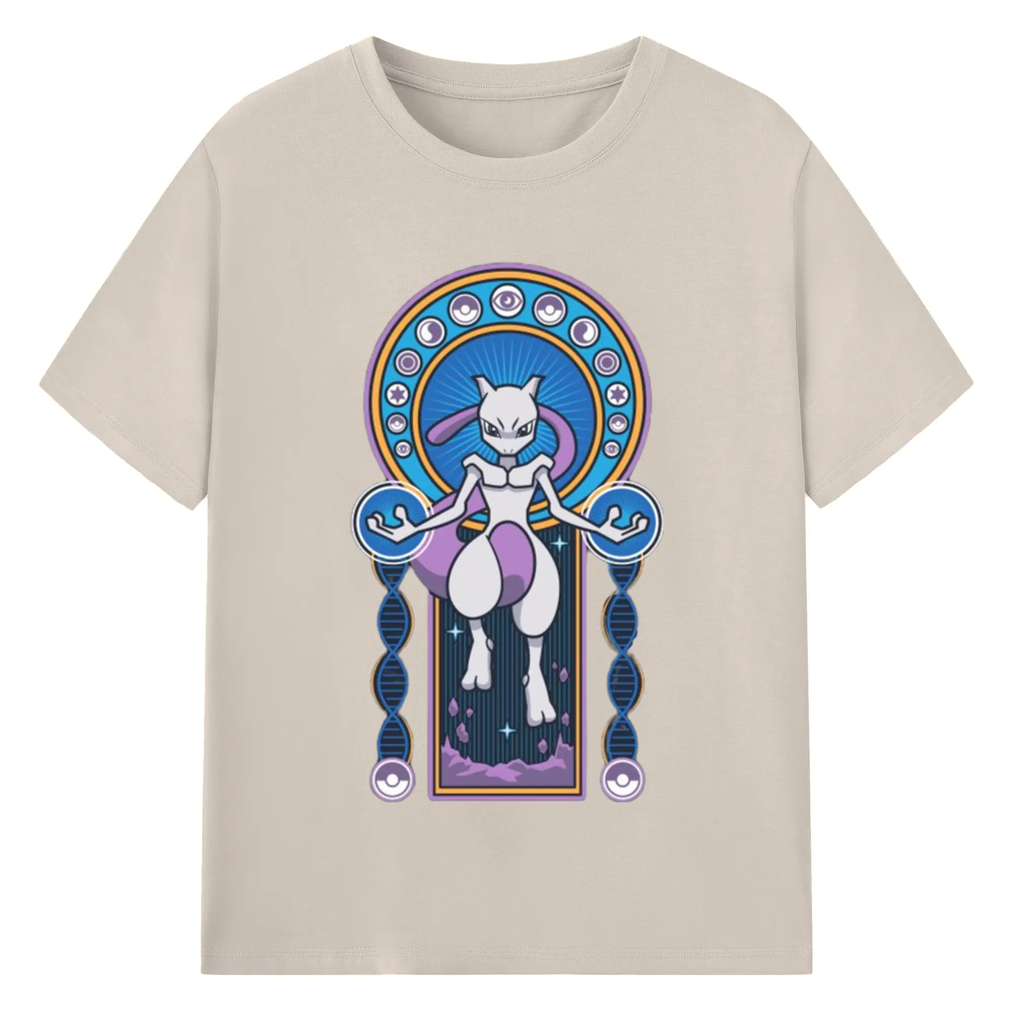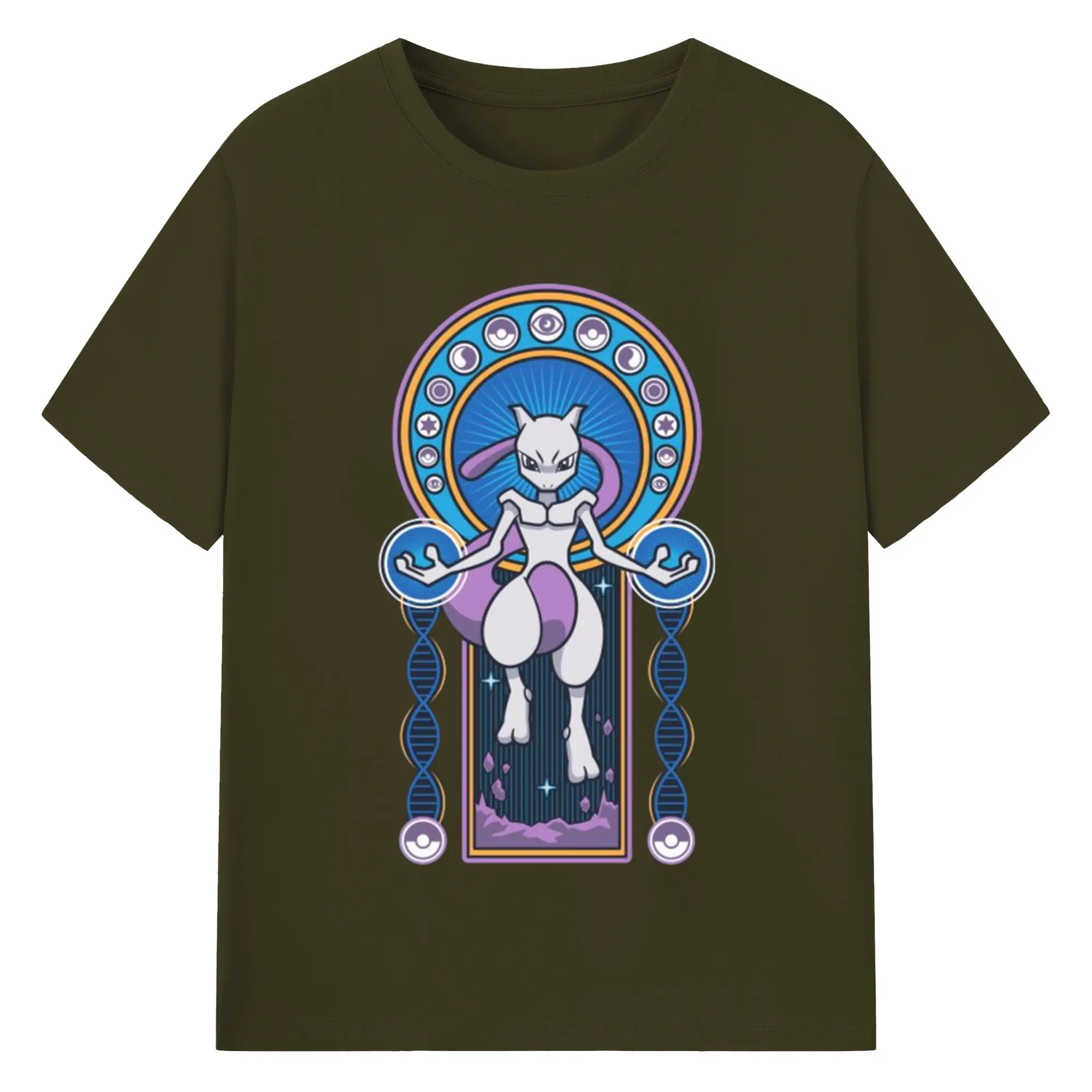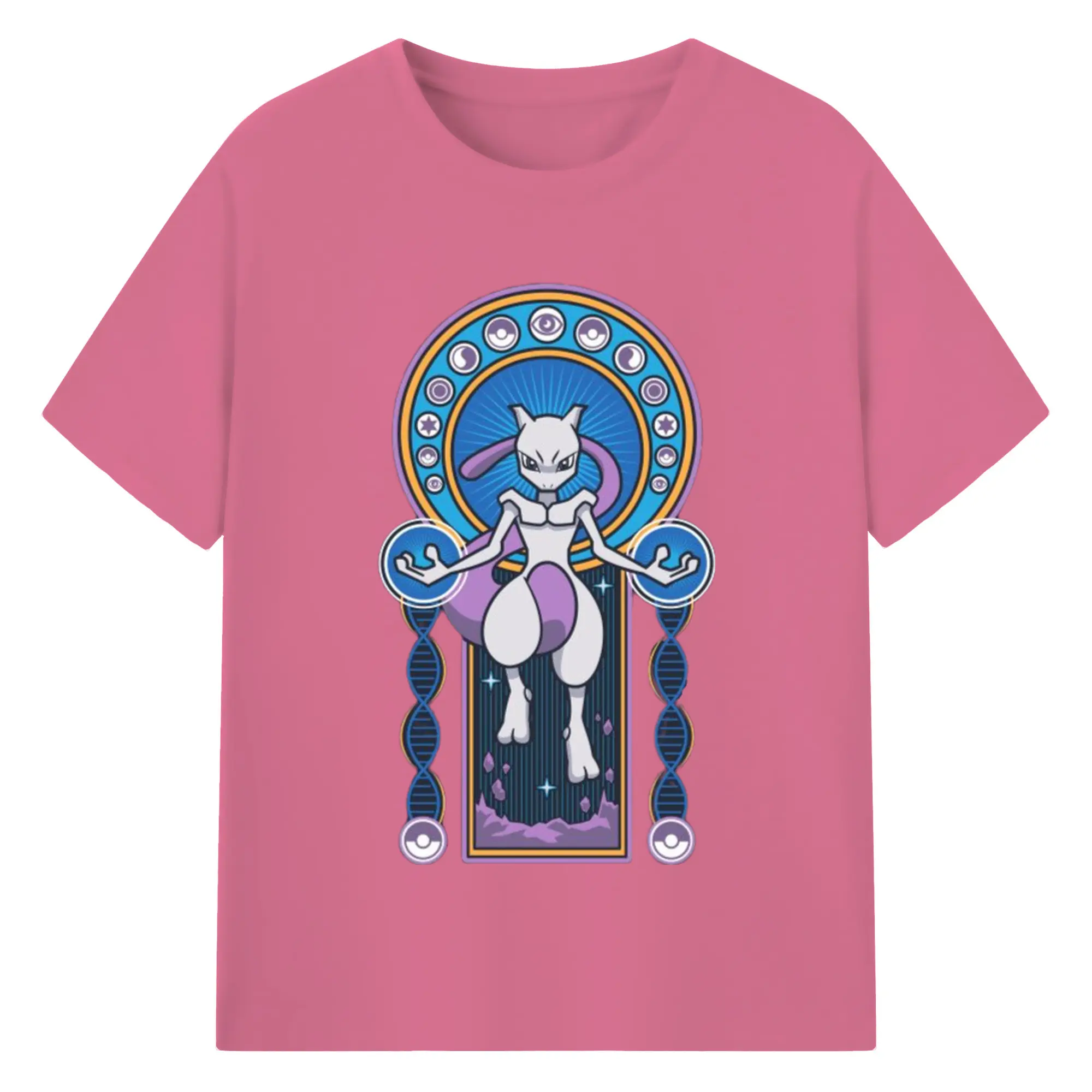 Mewtwo art t shirt - 180g Cotton T-Shirt With Front Heat Transfer Print – Soft, Lightweight, Fitted Design – Comfortable Casual Wear For Sports & Everyday Use