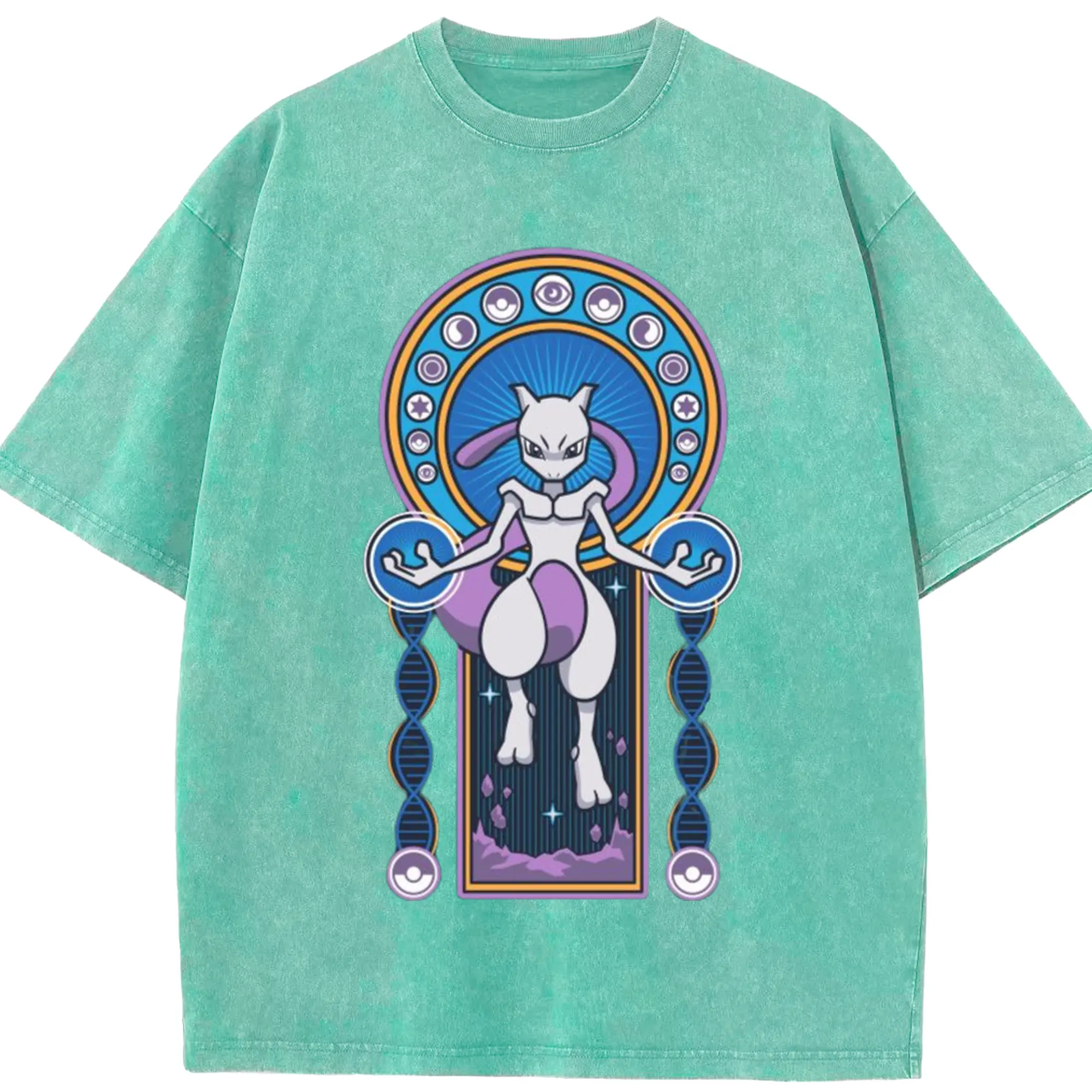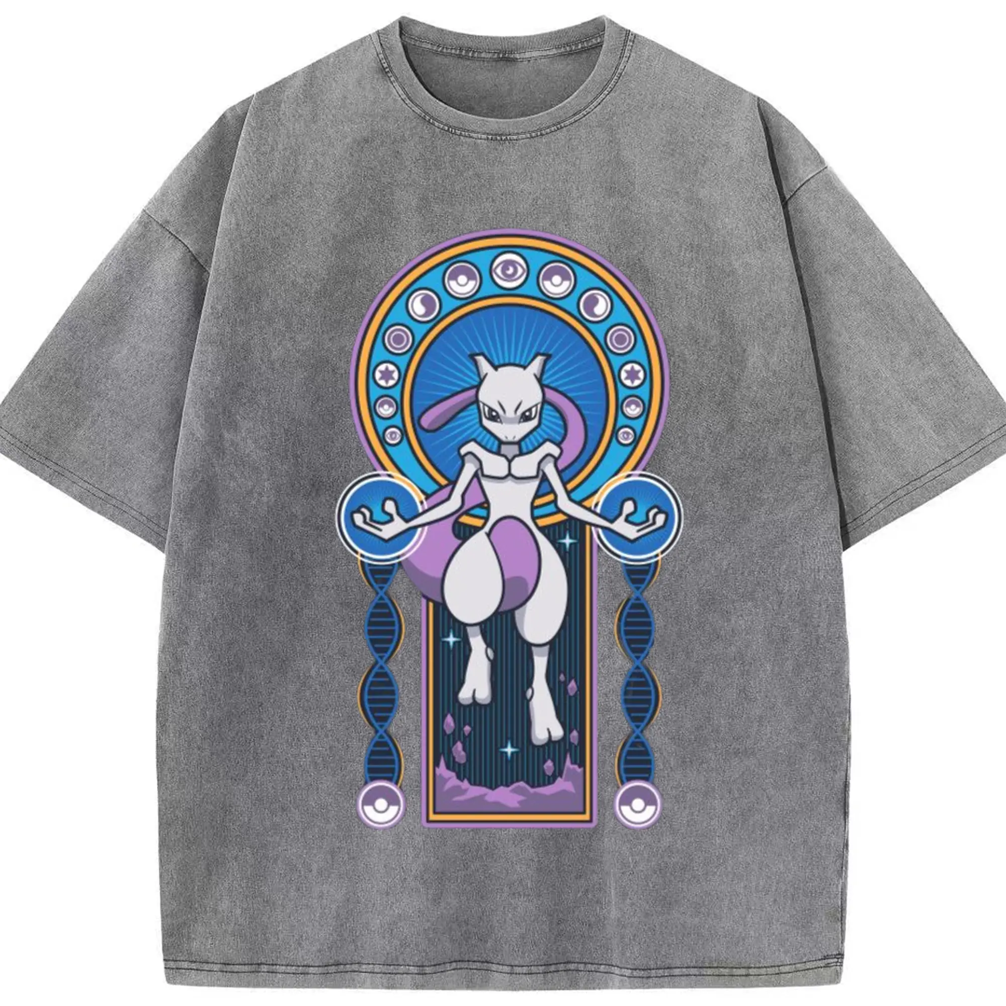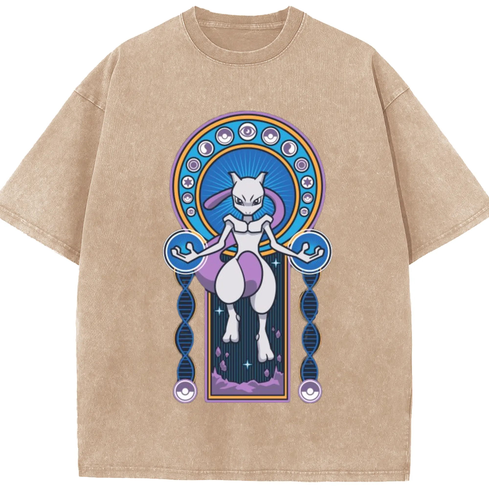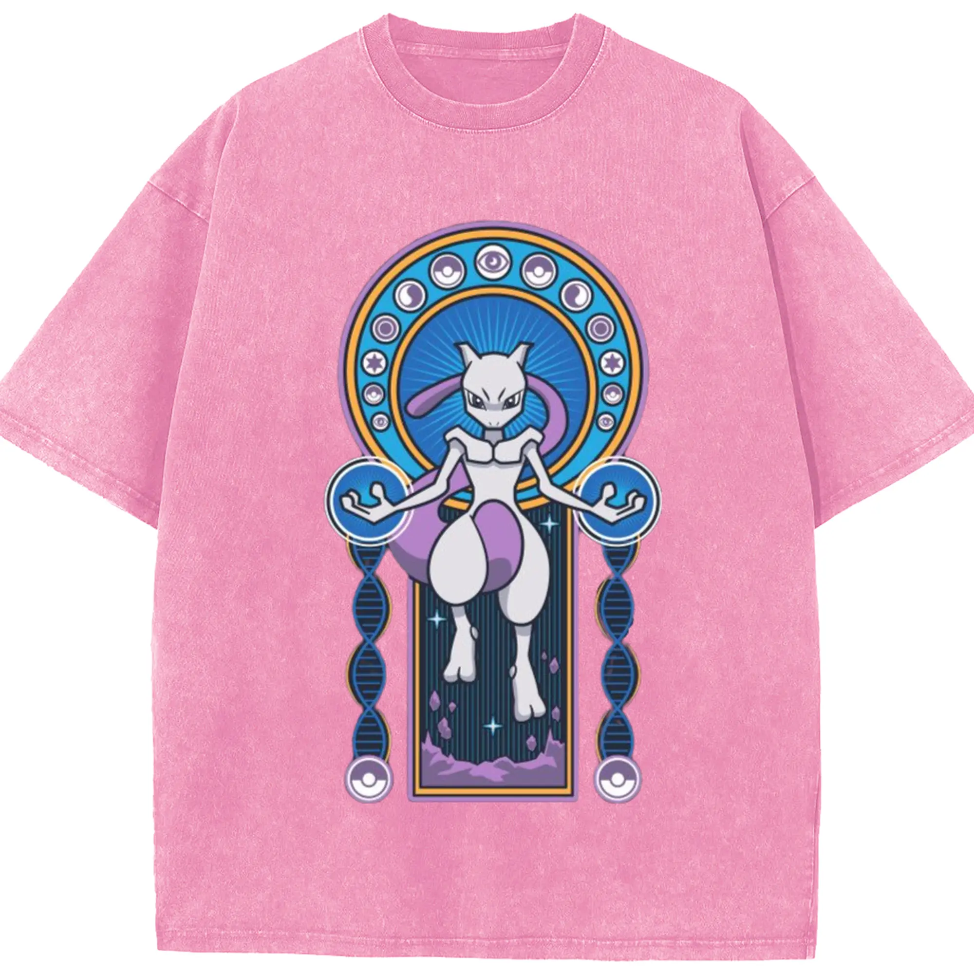 Mewtwo art t shirt - Washed Vintage Look 230g Cotton Oversized T-Shirt With Front Heat Transfer Print – Soft, Lightweight, Stylish Fit – Comfortable Casual Wear For Sports & Everyday Use