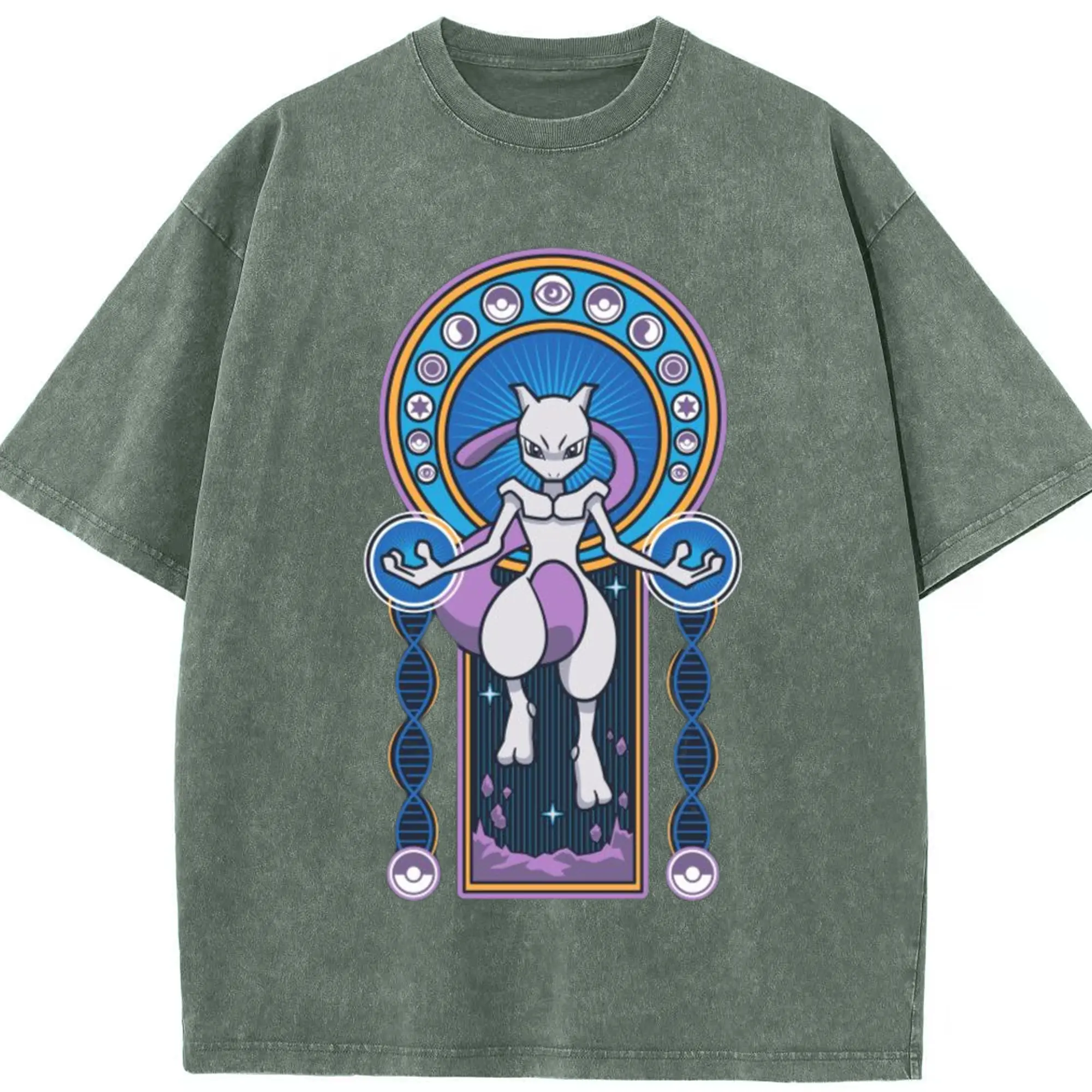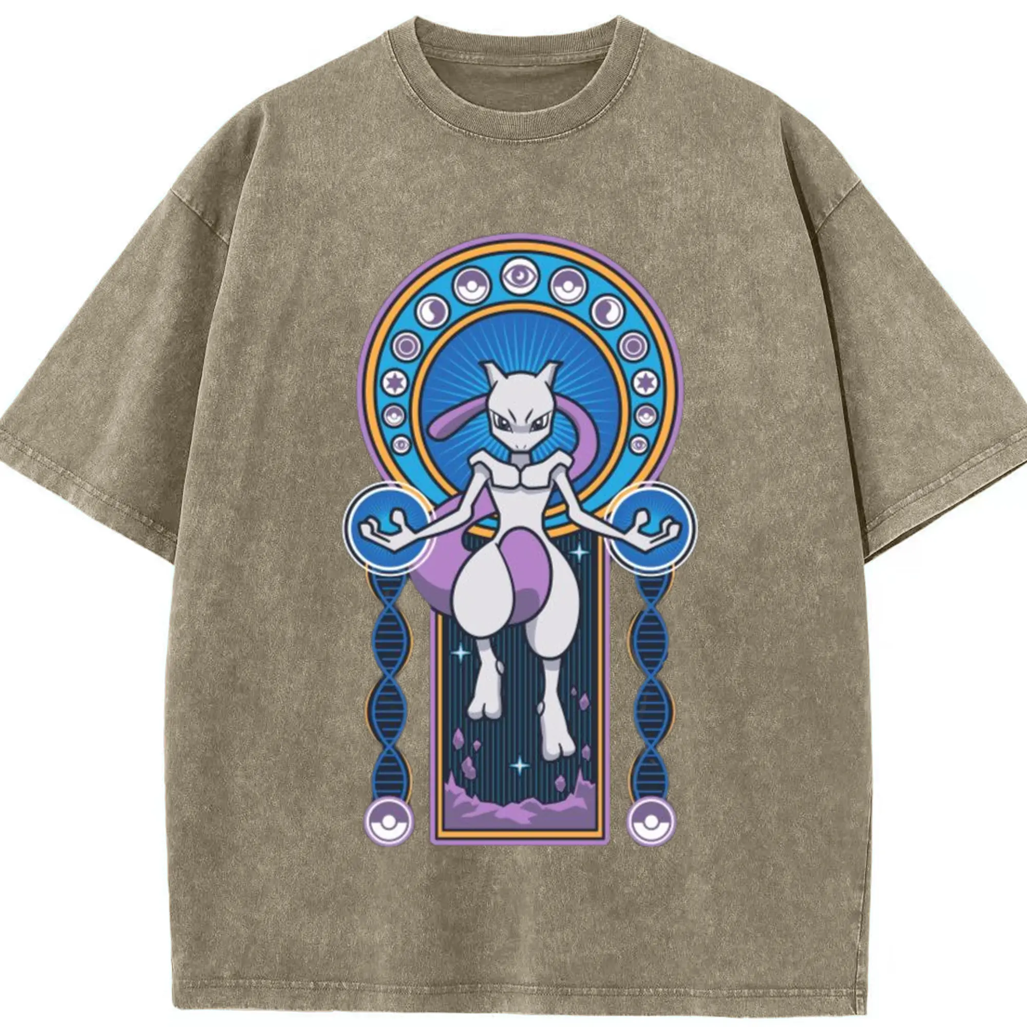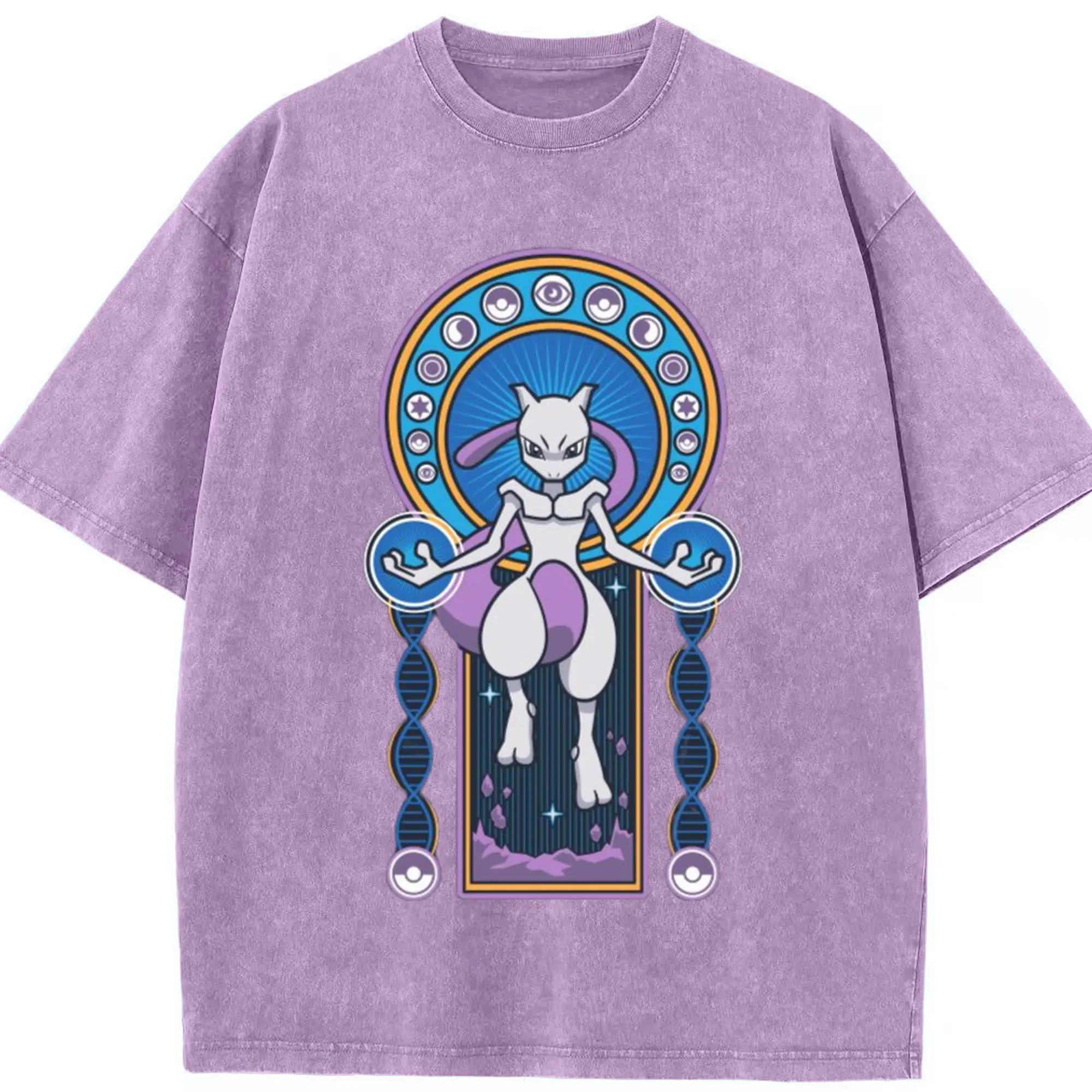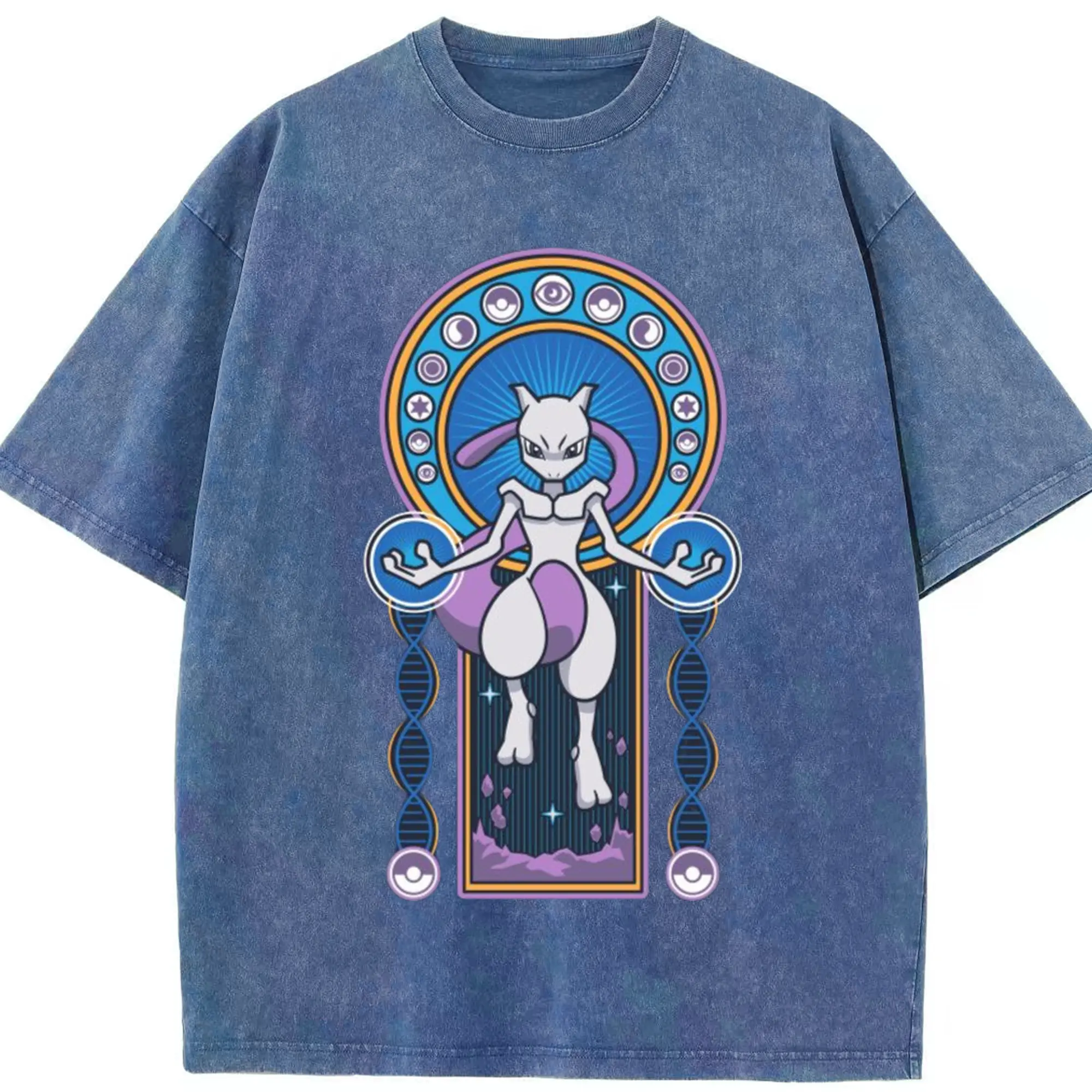 Mewtwo art t shirt - Washed Vintage Look 230g Cotton Oversized T-Shirt With Front Heat Transfer Print – Soft, Lightweight, Stylish Fit – Comfortable Casual Wear For Sports & Everyday Use