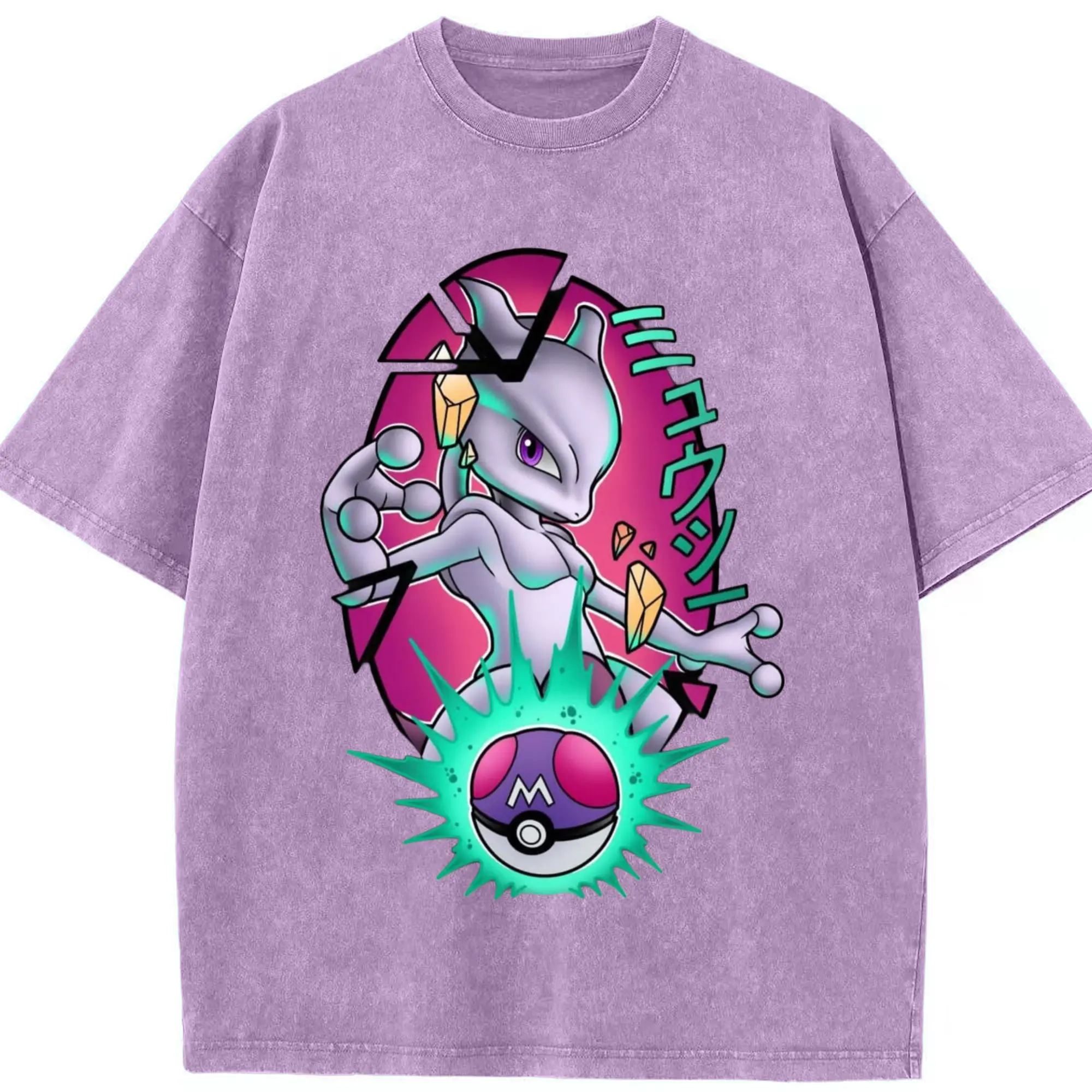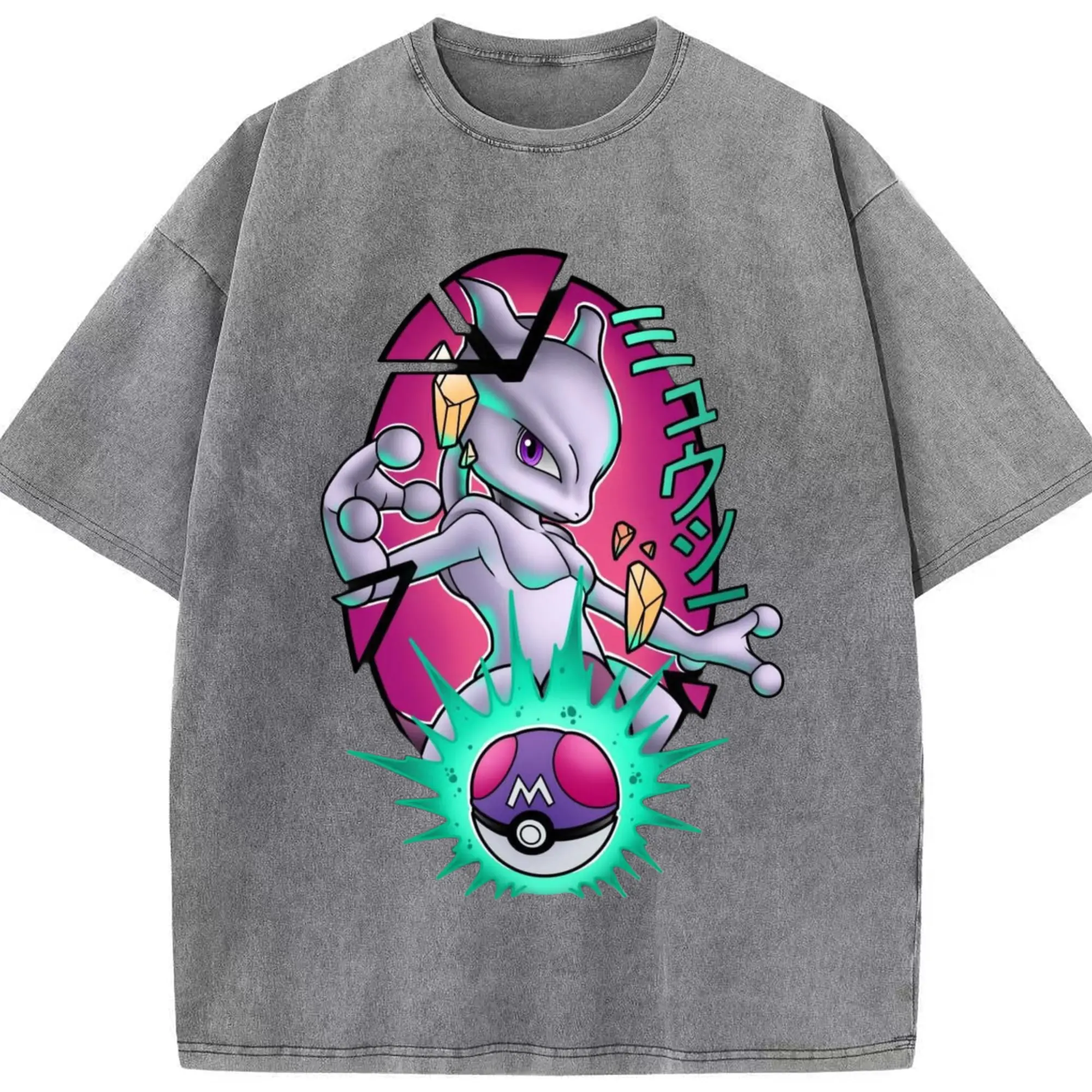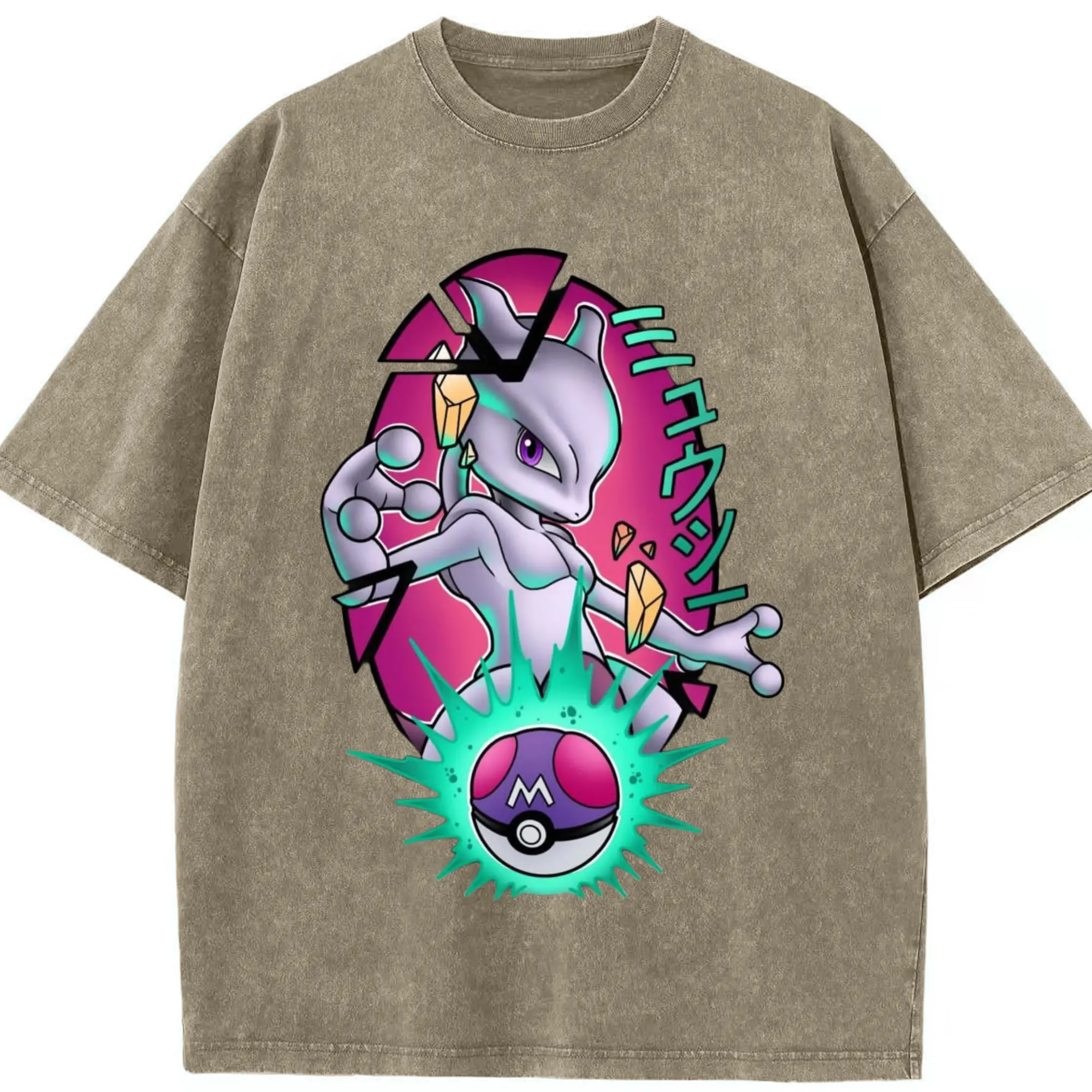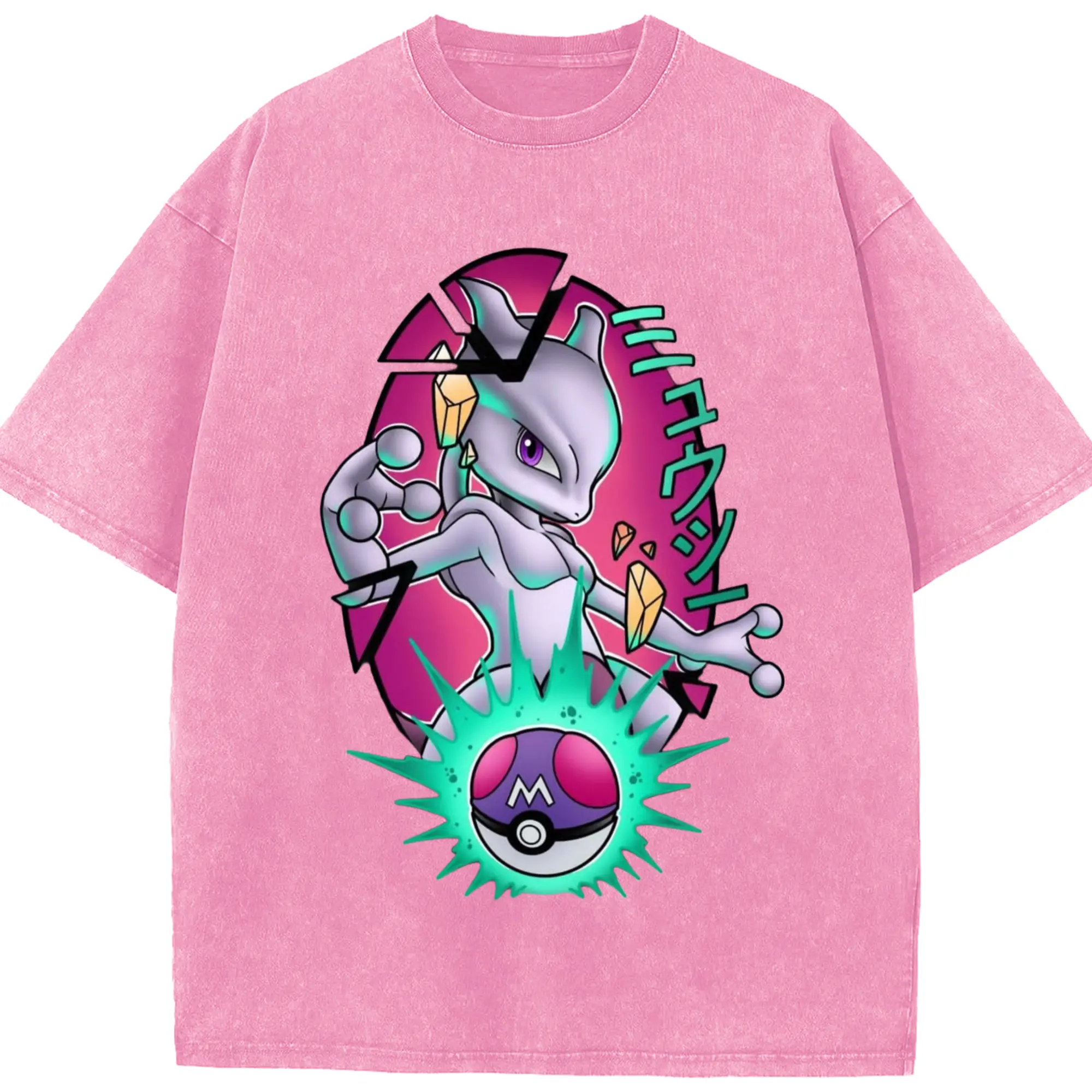 Mewtwo fusion tee - Washed Vintage Look 230g Cotton Oversized T-Shirt With Front Heat Transfer Print – Soft, Lightweight, Stylish Fit – Comfortable Casual Wear For Sports & Everyday Use