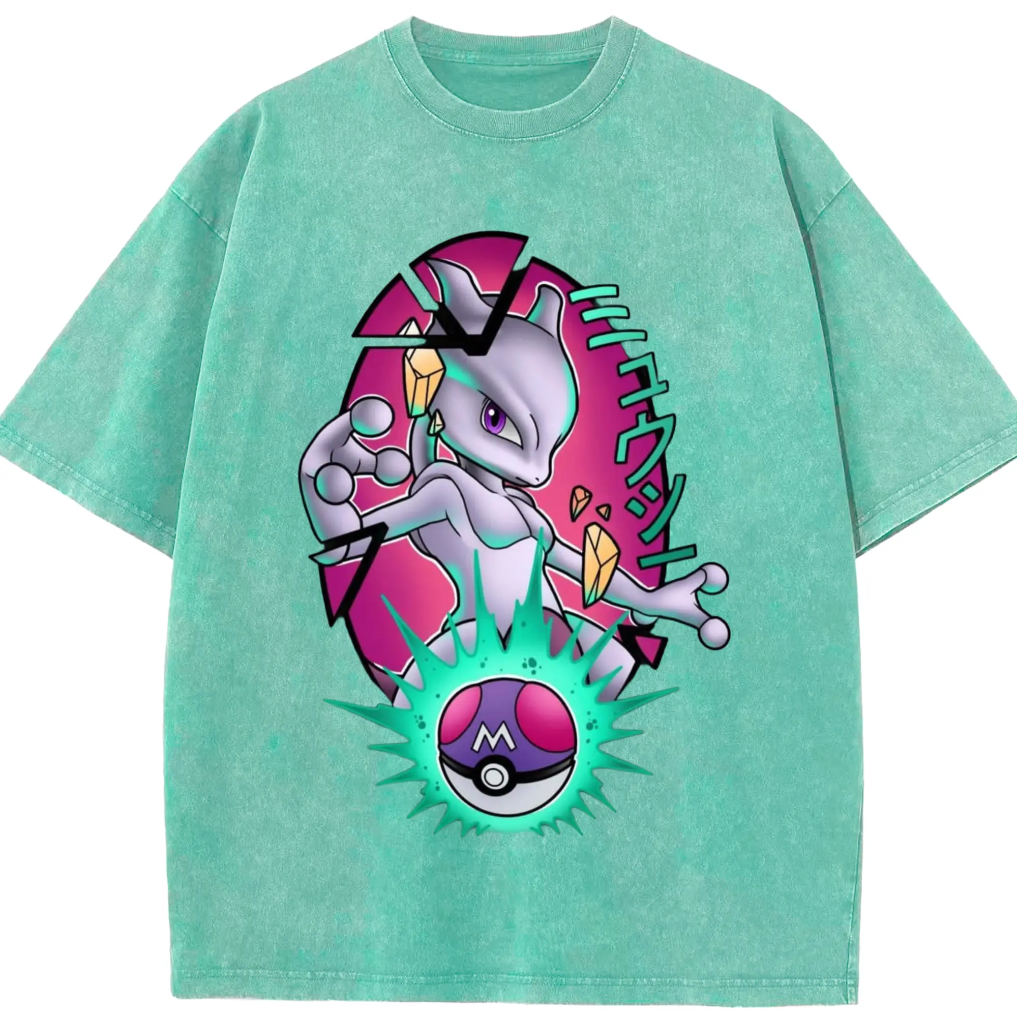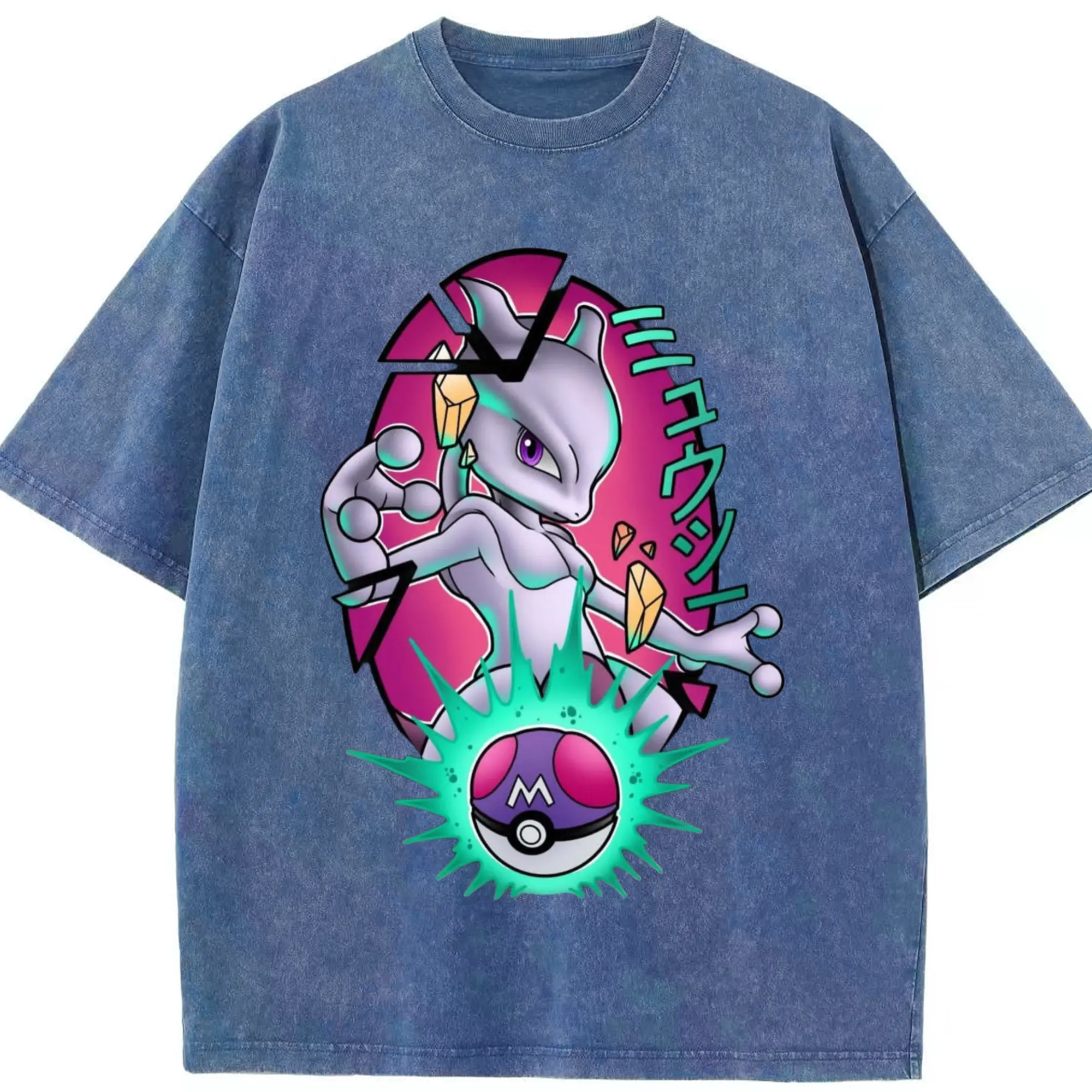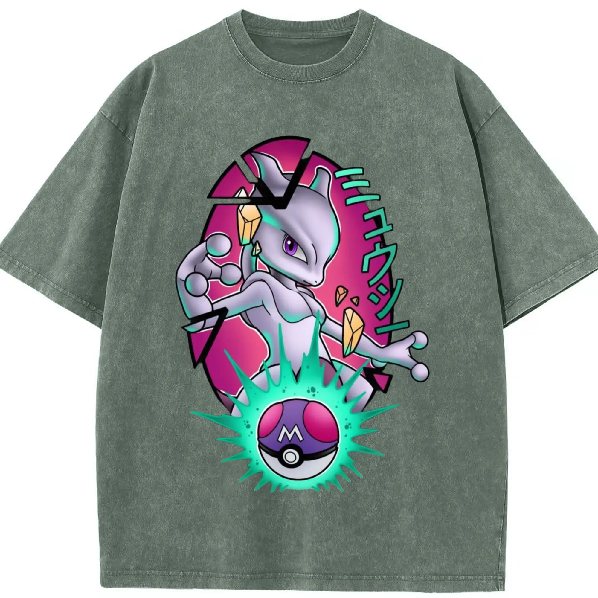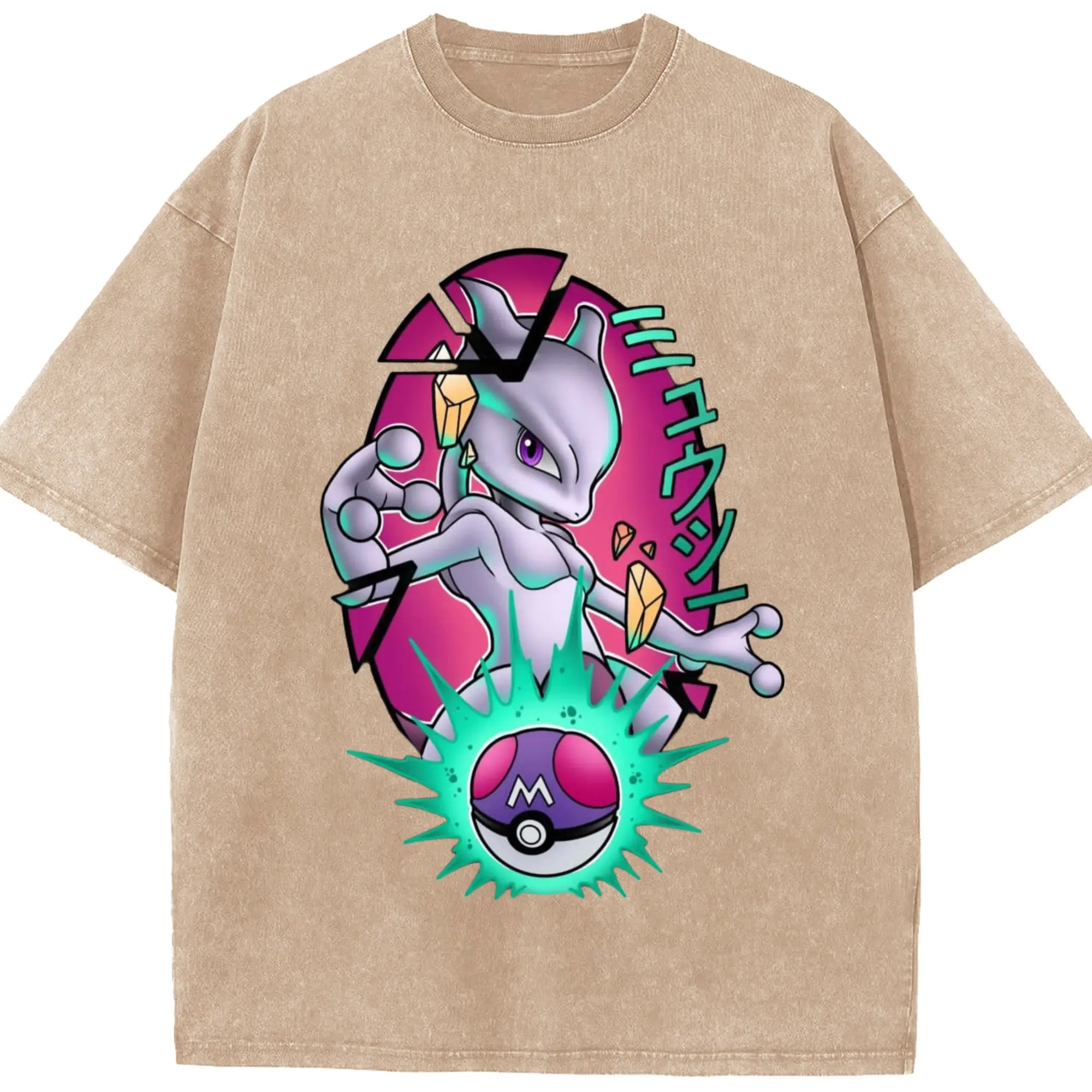 Mewtwo fusion tee - Washed Vintage Look 230g Cotton Oversized T-Shirt With Front Heat Transfer Print – Soft, Lightweight, Stylish Fit – Comfortable Casual Wear For Sports & Everyday Use