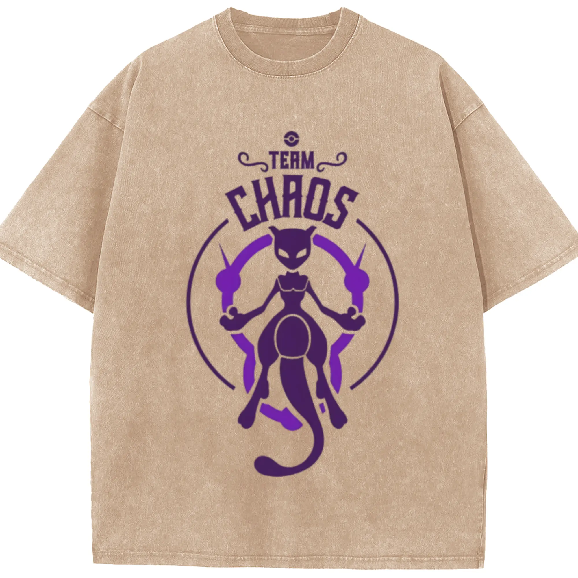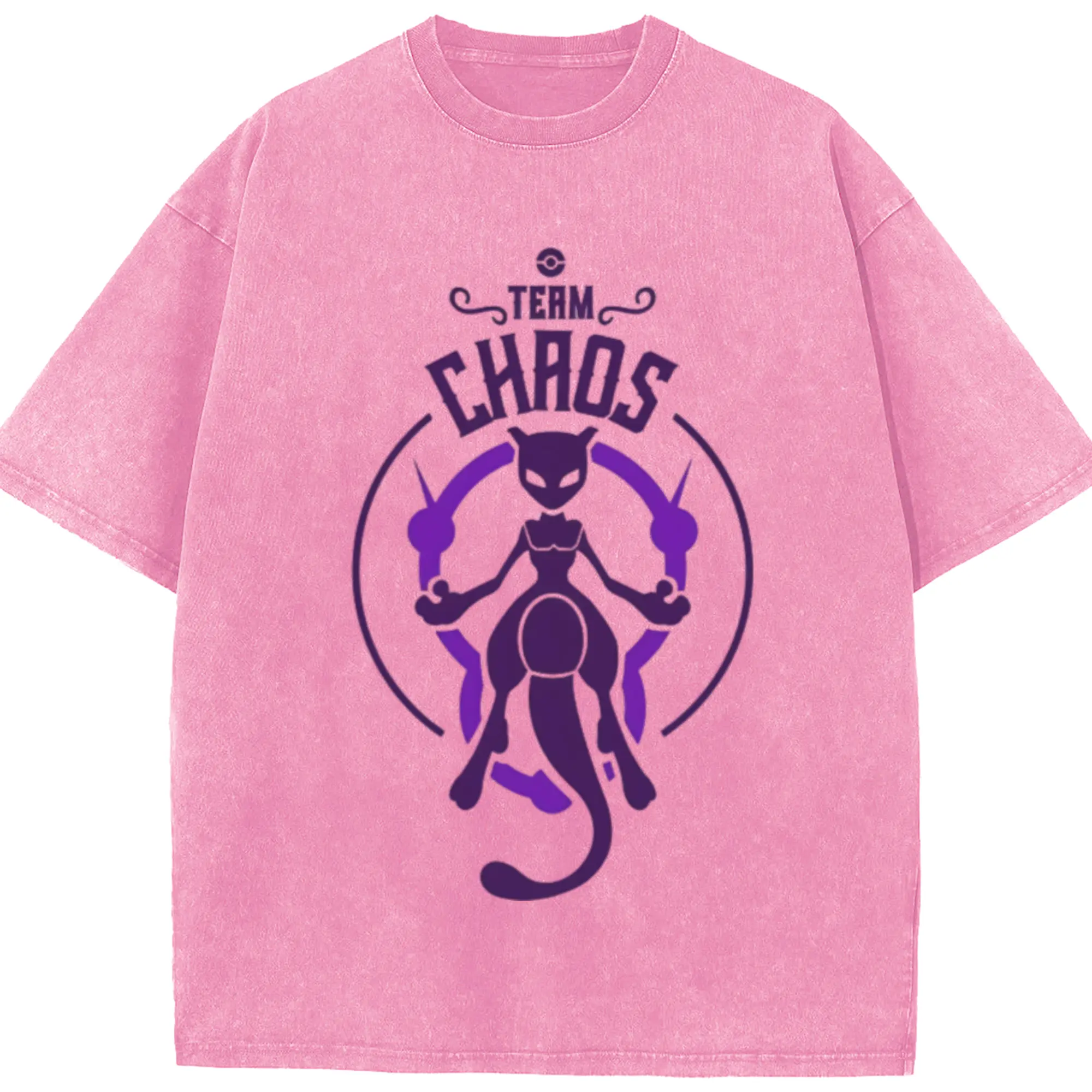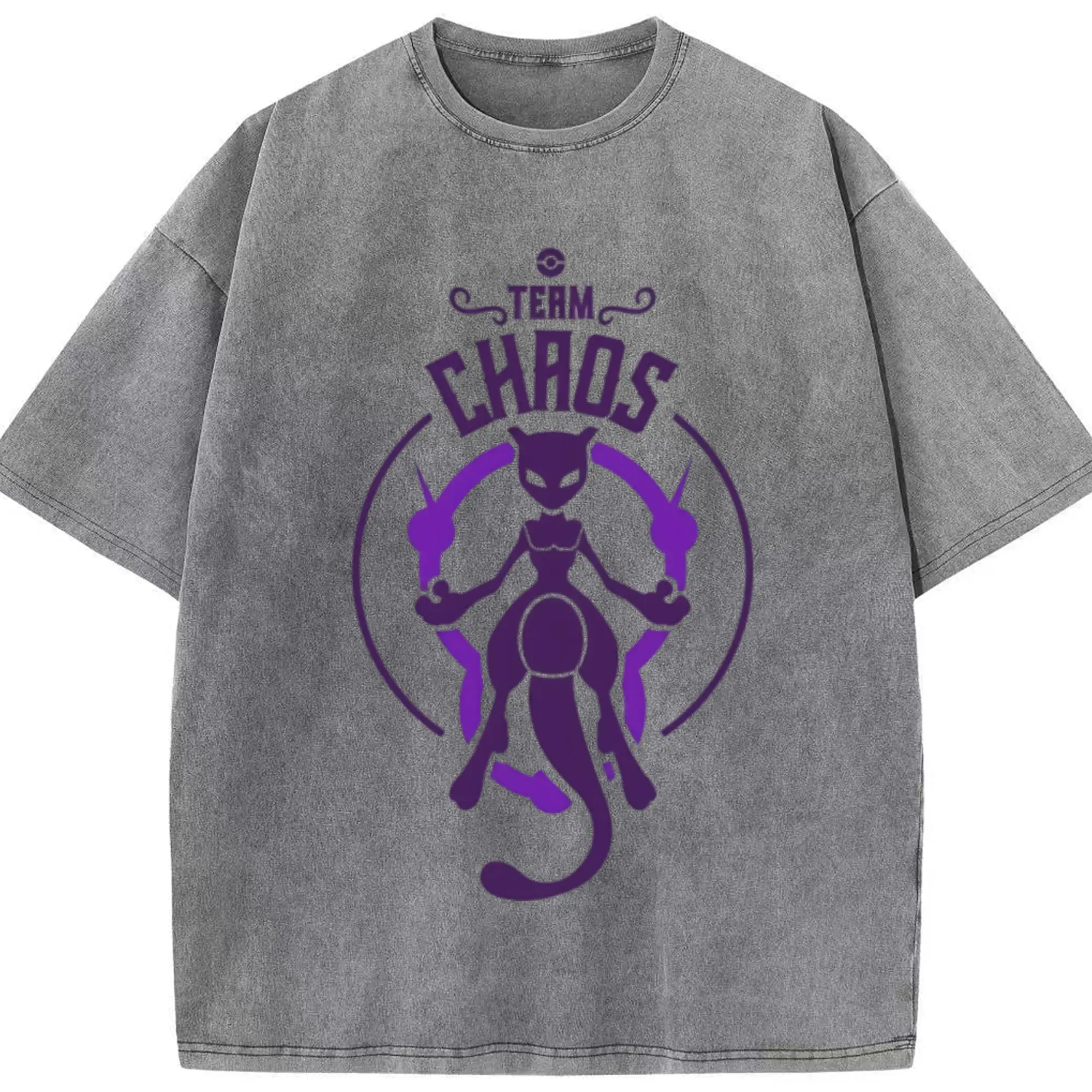 Mewtwo icon t shirt - Washed Vintage Look 230g Cotton Oversized T-Shirt With Front Heat Transfer Print – Soft, Lightweight, Stylish Fit – Comfortable Casual Wear For Sports & Everyday Use