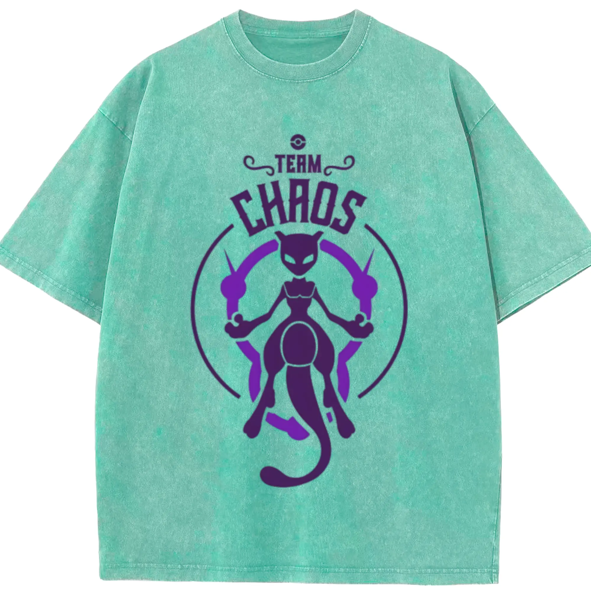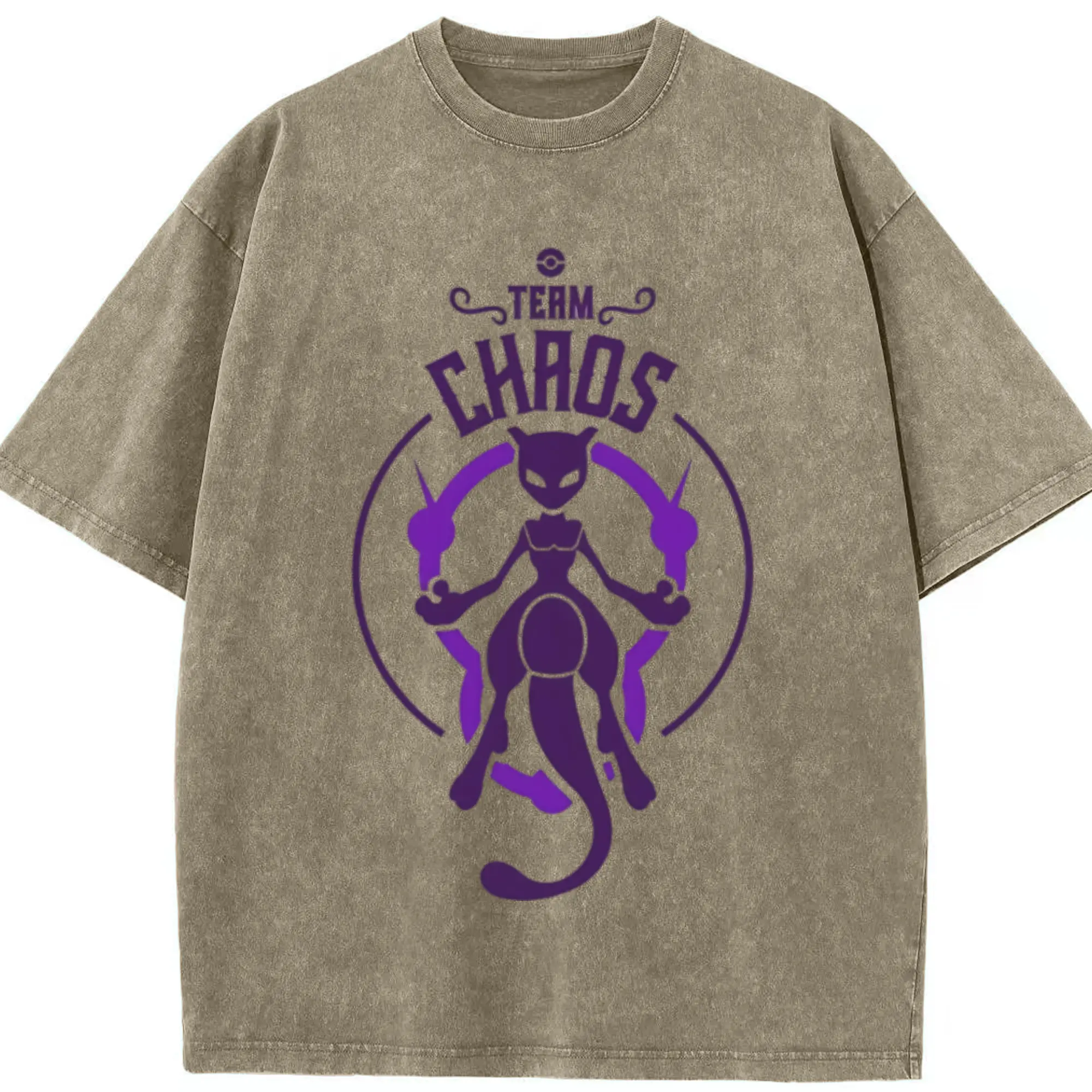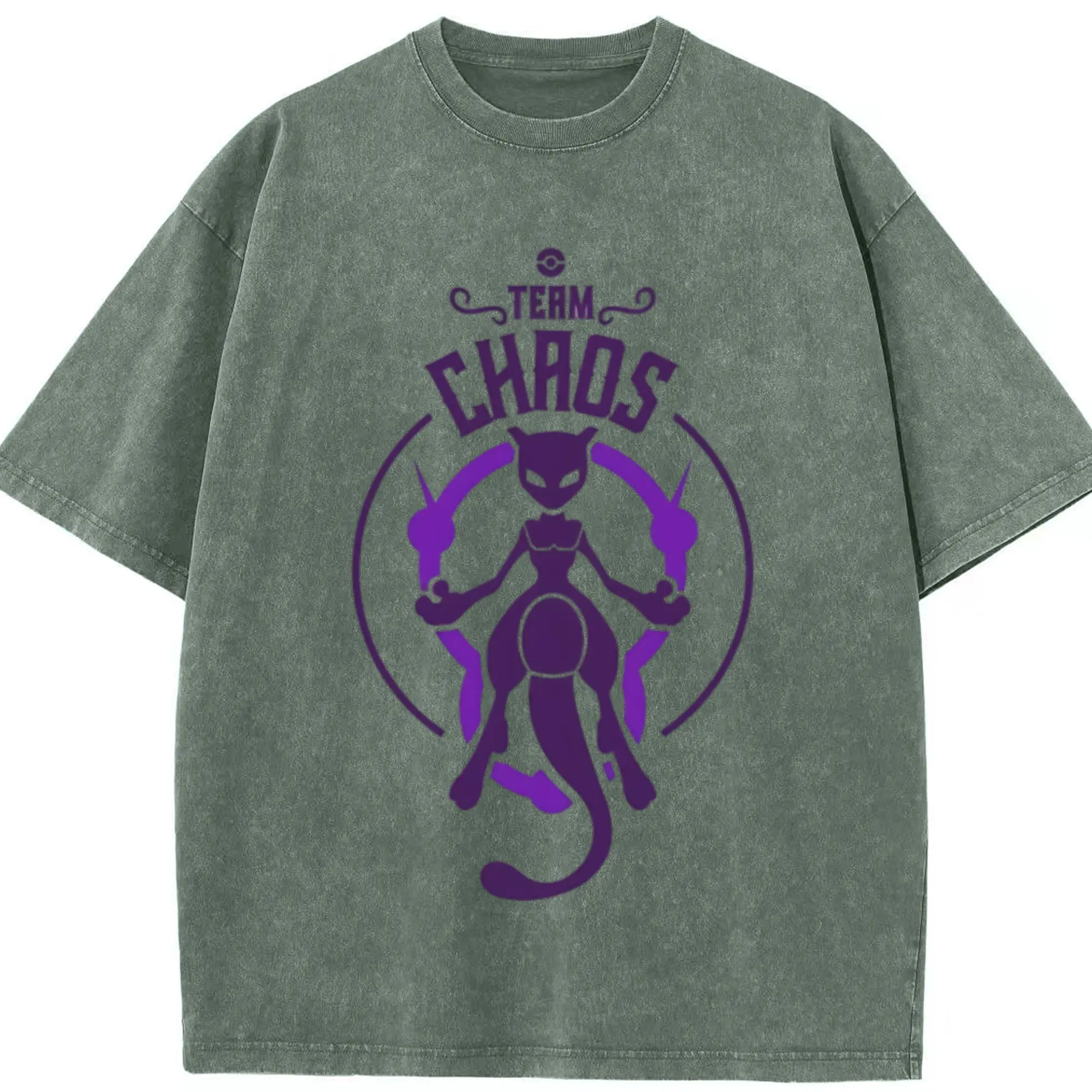 Mewtwo icon t shirt - Washed Vintage Look 230g Cotton Oversized T-Shirt With Front Heat Transfer Print – Soft, Lightweight, Stylish Fit – Comfortable Casual Wear For Sports & Everyday Use