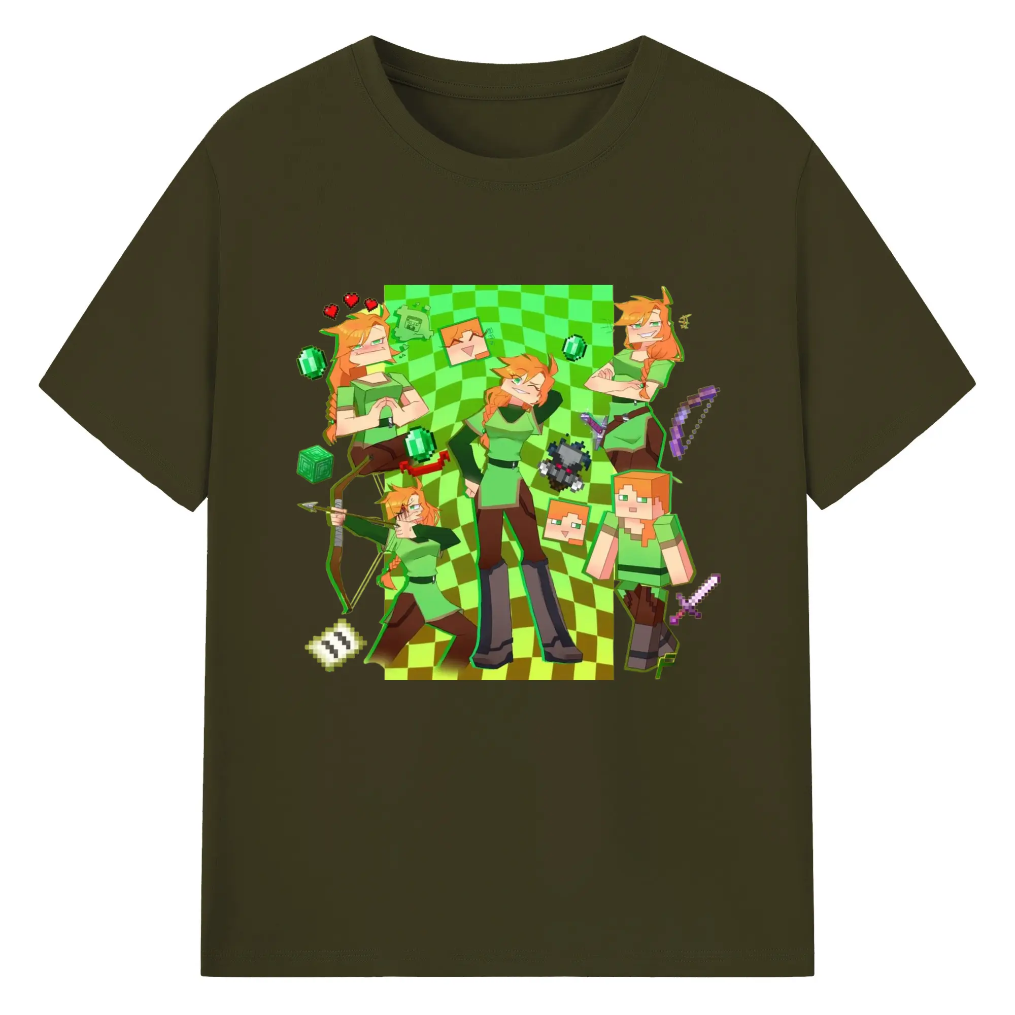 Minecraft alex graphic art shirt - 180g Cotton T-Shirt With Front Heat Transfer Print – Soft, Lightweight, Fitted Design – Comfortable Casual Wear For Sports & Everyday Use