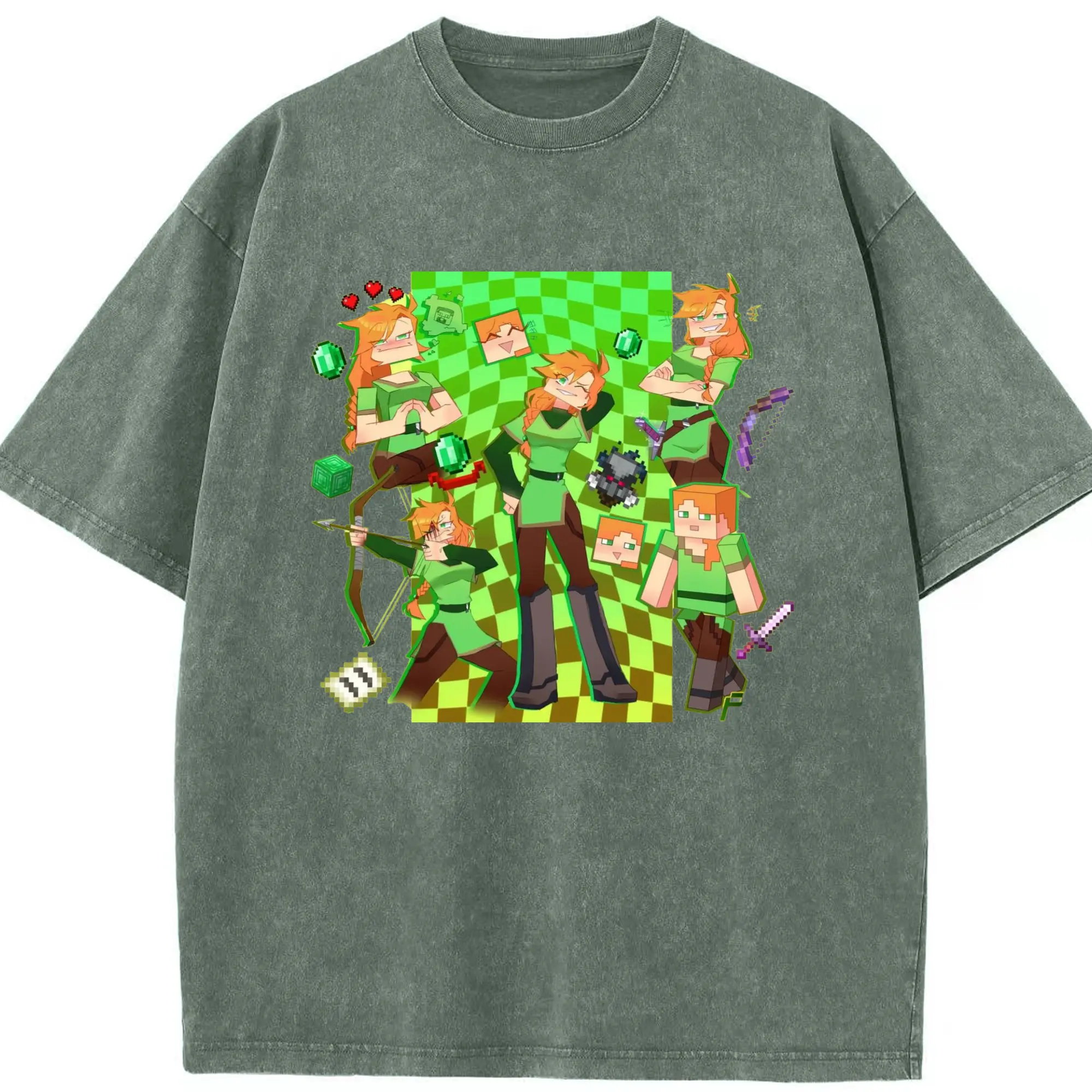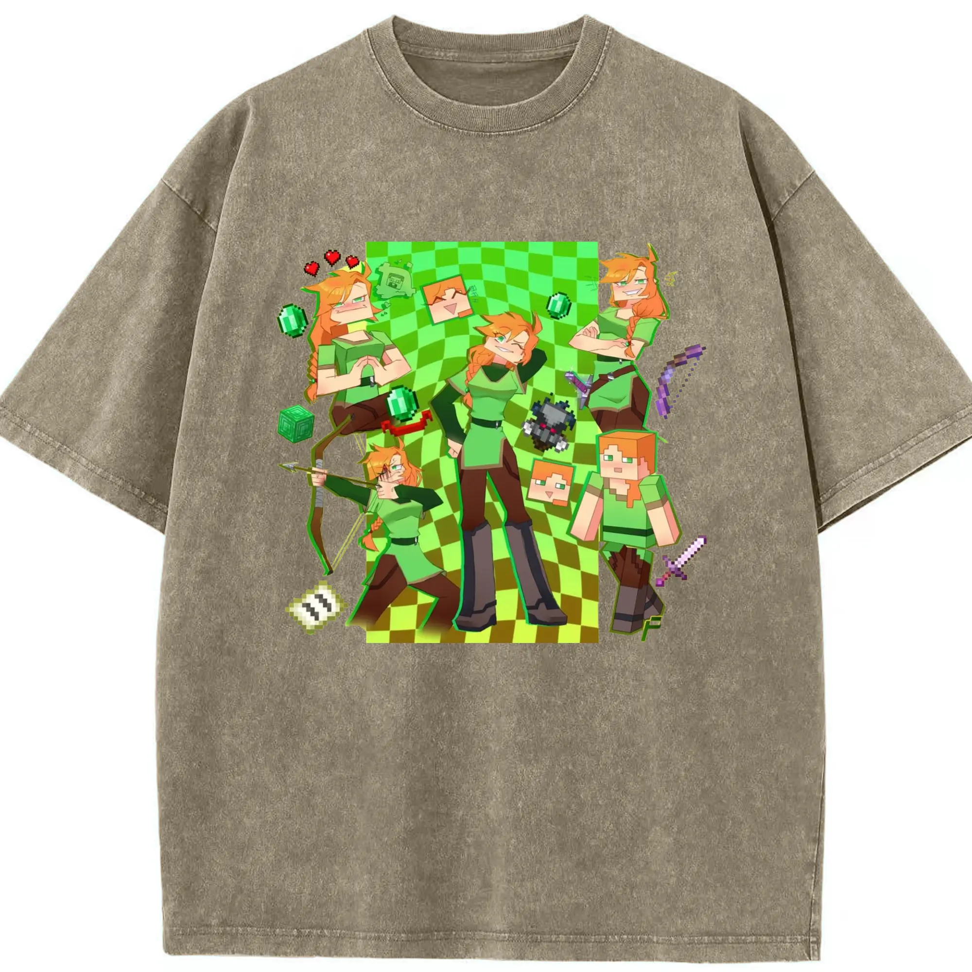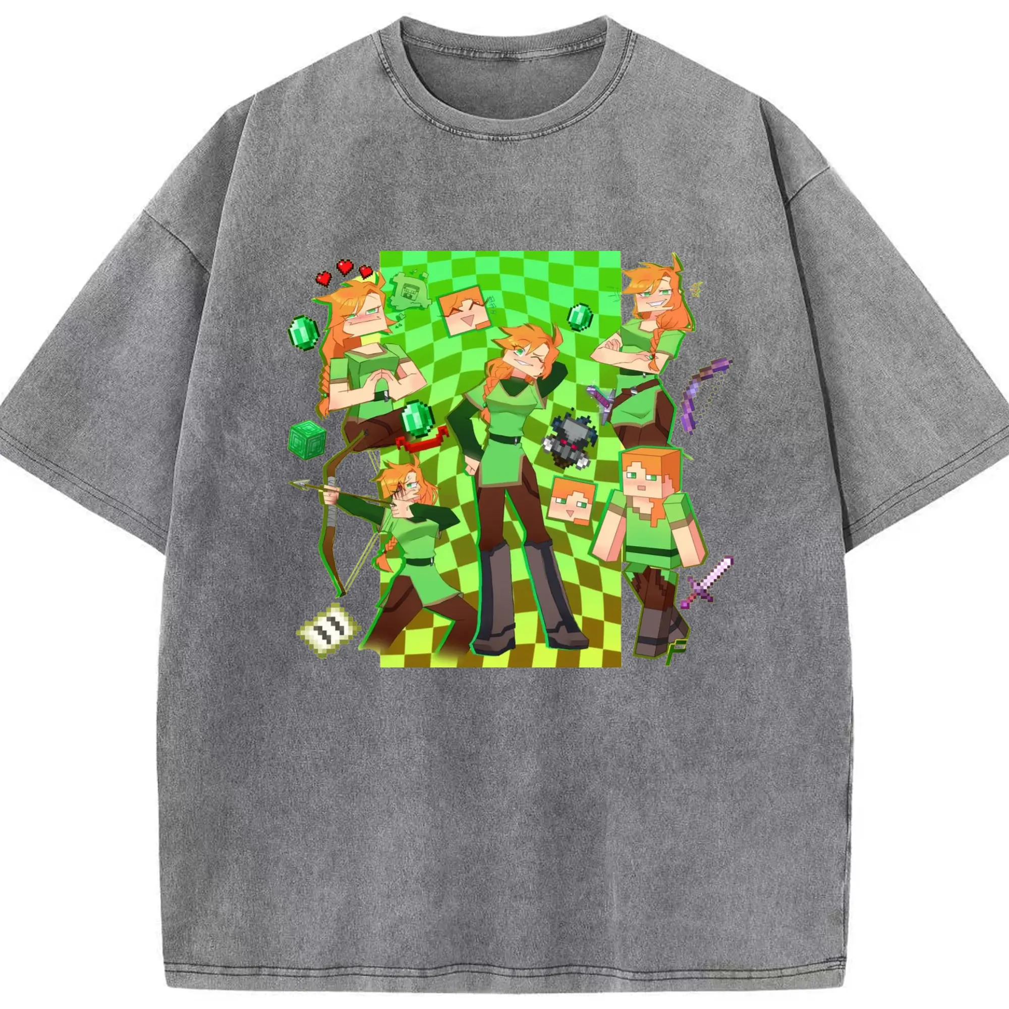Minecraft alex graphic art shirt - Washed Vintage Look 230g Cotton Oversized T-Shirt With Front Heat Transfer Print – Soft, Lightweight, Stylish Fit – Comfortable Casual Wear For Sports & Everyday Use