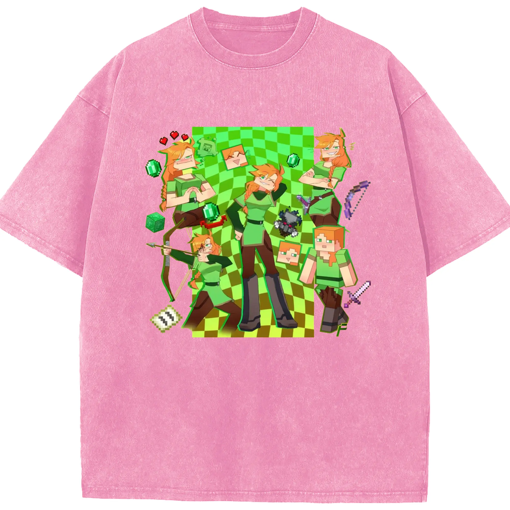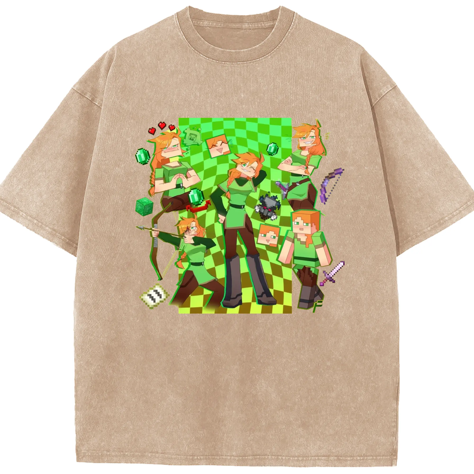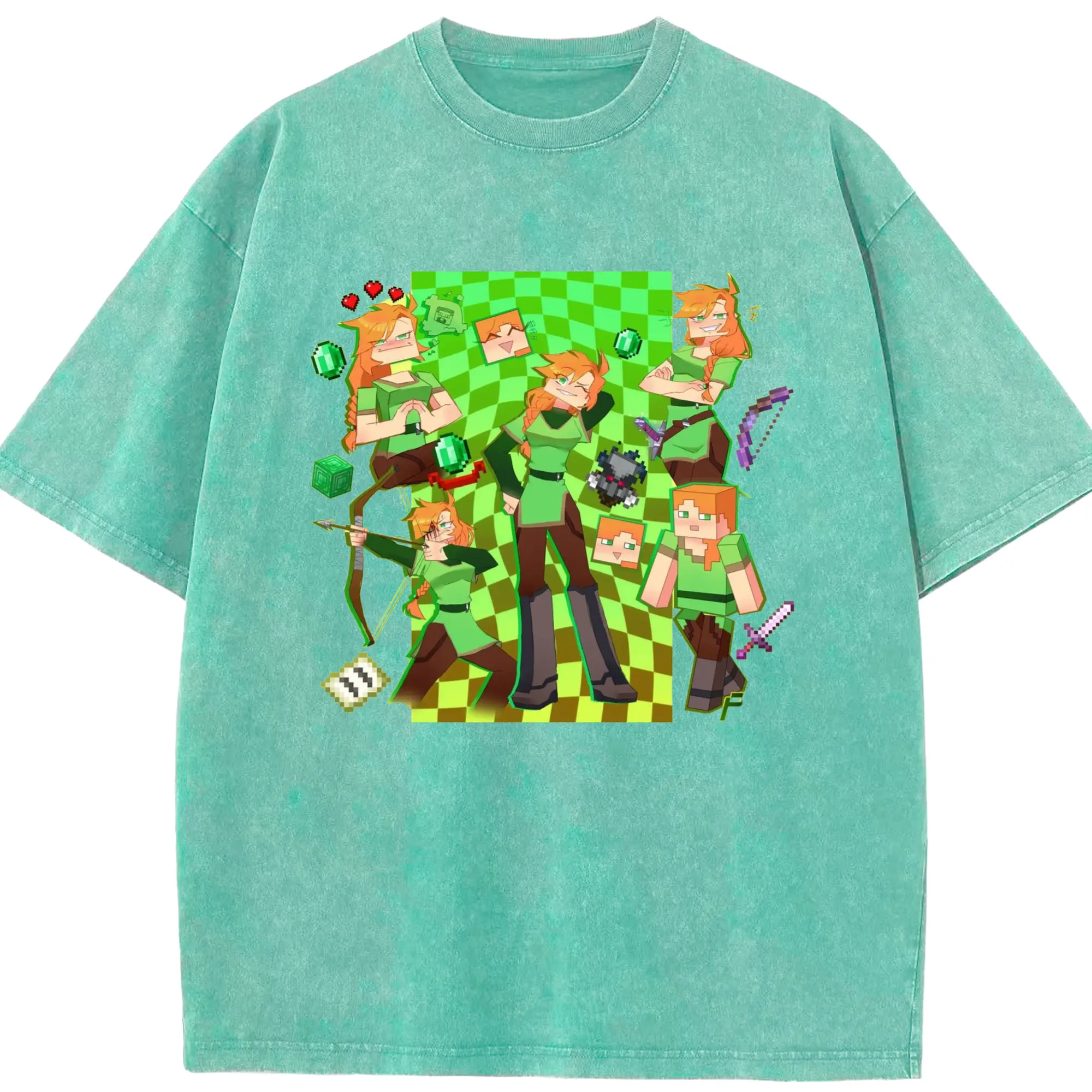 Minecraft alex graphic art shirt - Washed Vintage Look 230g Cotton Oversized T-Shirt With Front Heat Transfer Print – Soft, Lightweight, Stylish Fit – Comfortable Casual Wear For Sports & Everyday Use