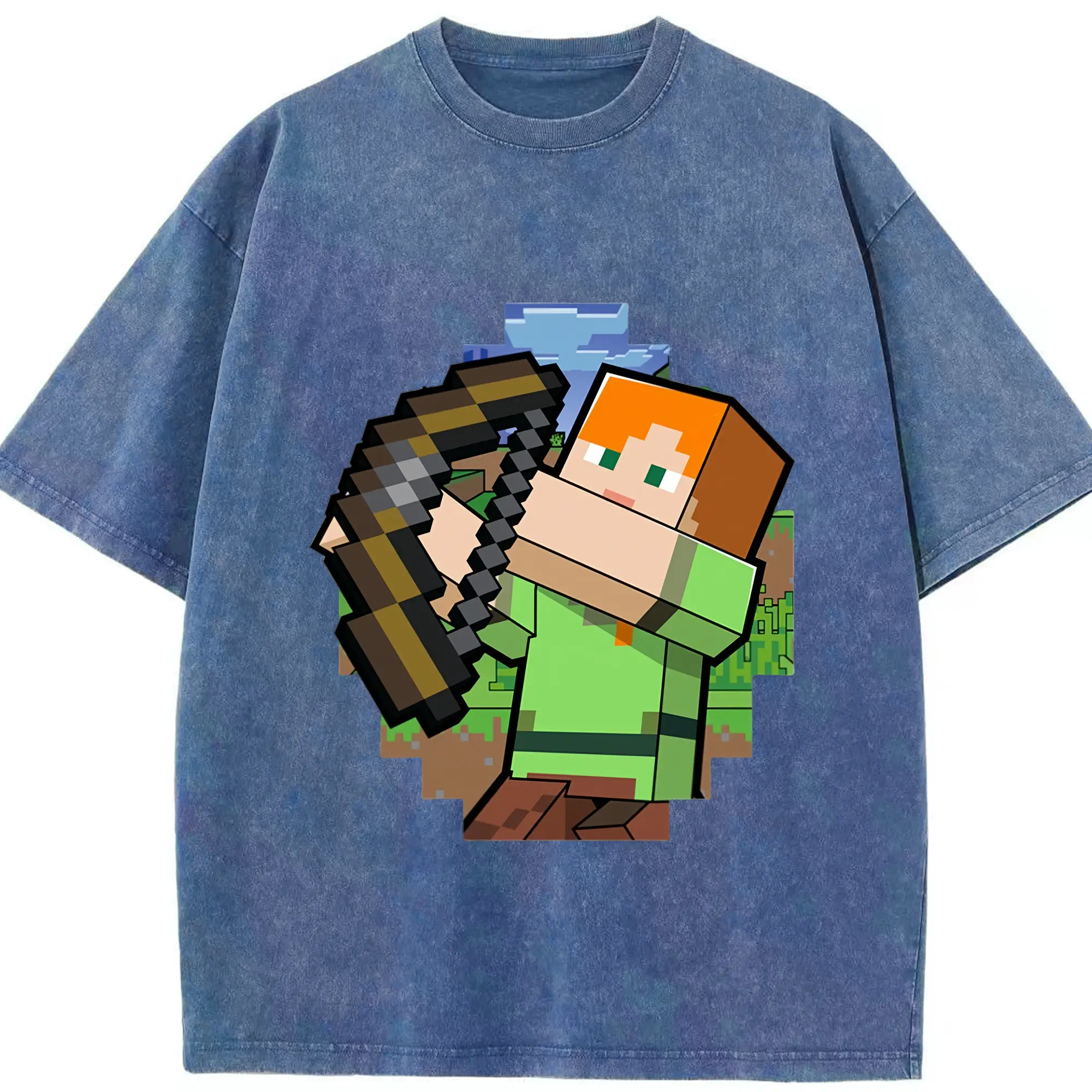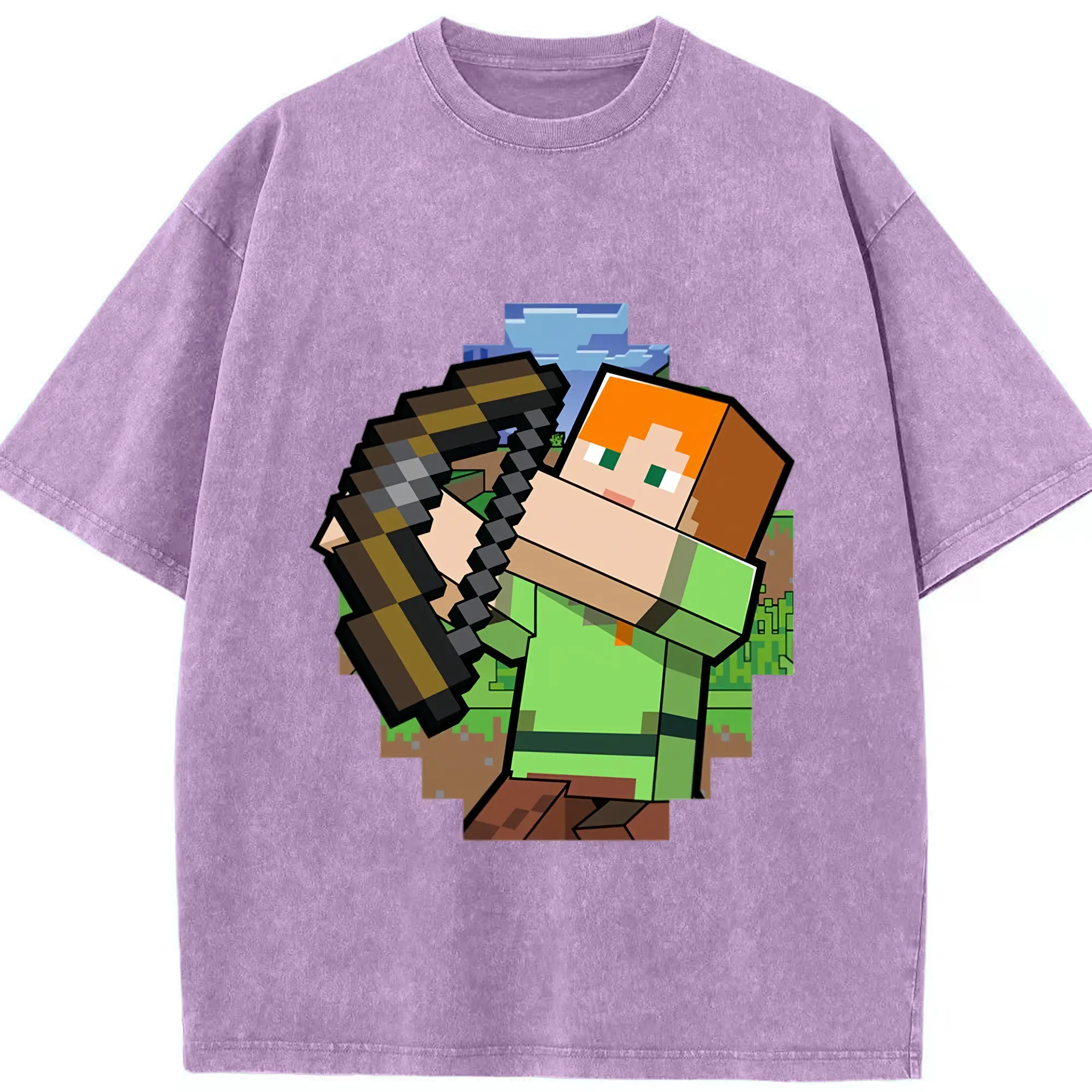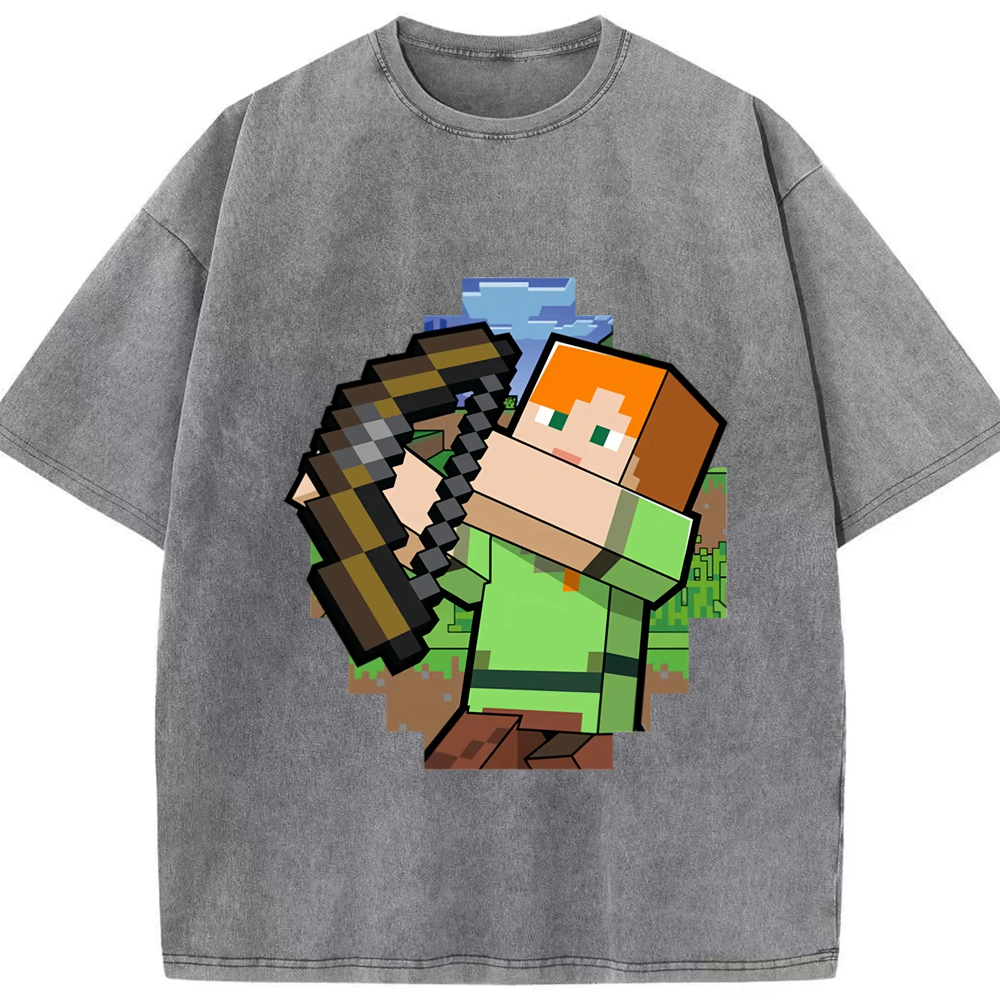Minecraft alex graphic classic t shirt - Washed Vintage Look 230g Cotton Oversized T-Shirt With Front Heat Transfer Print – Soft, Lightweight, Stylish Fit – Comfortable Casual Wear For Sports & Everyday Use