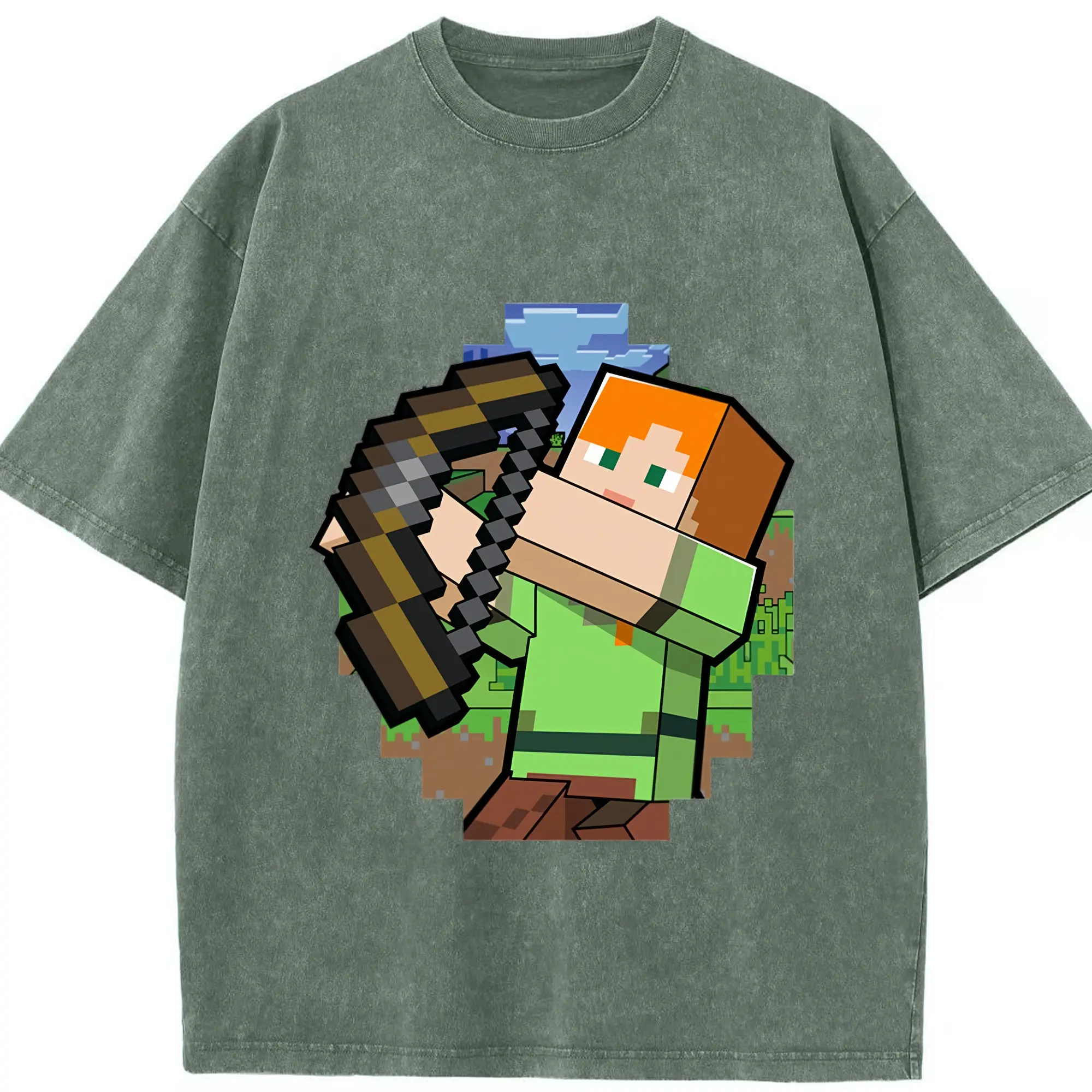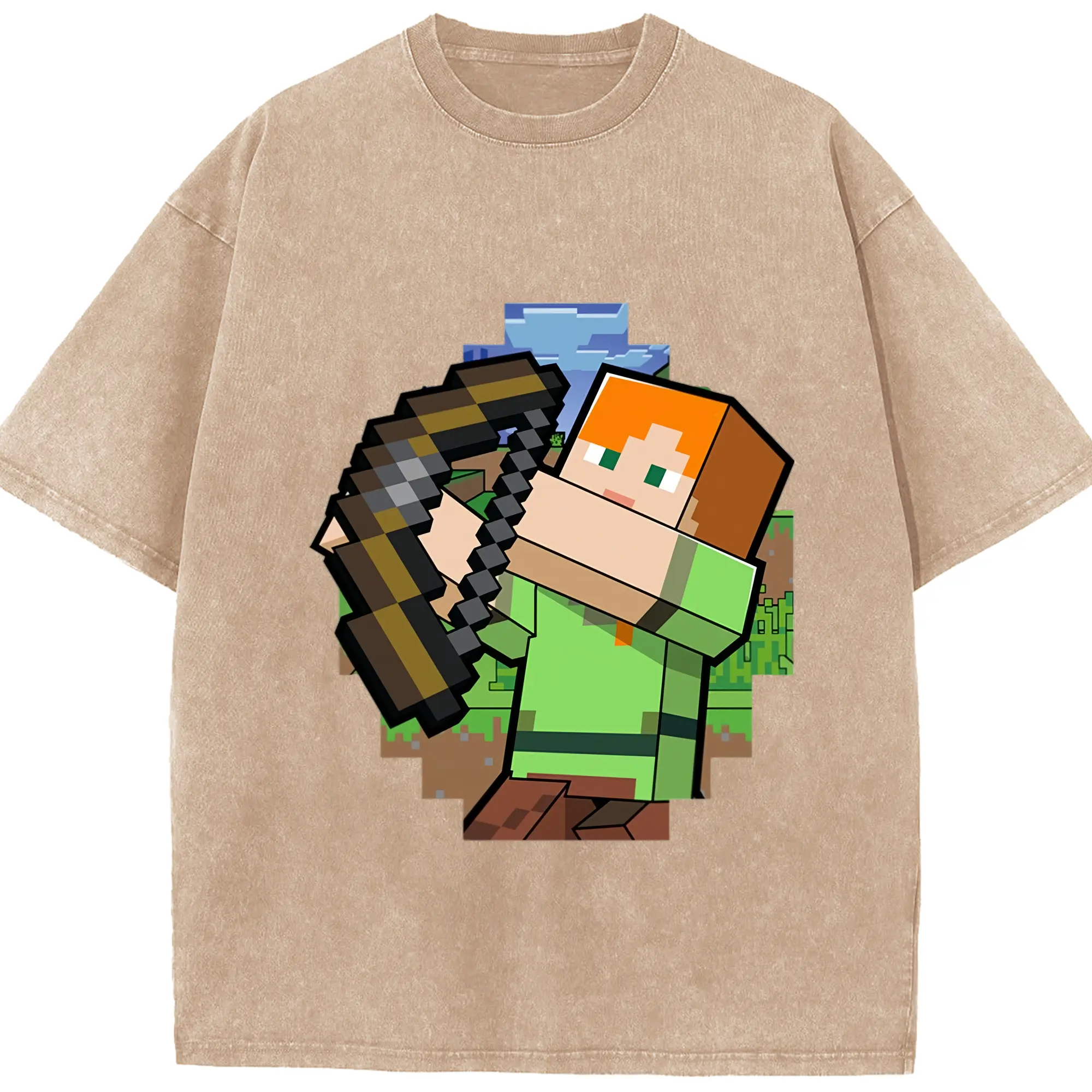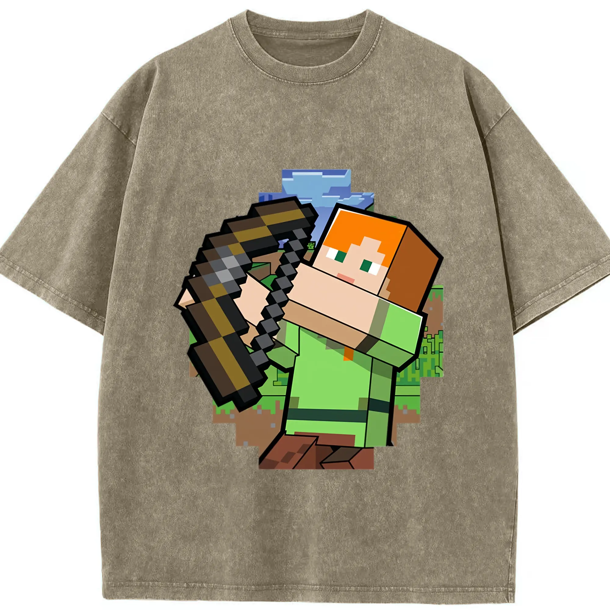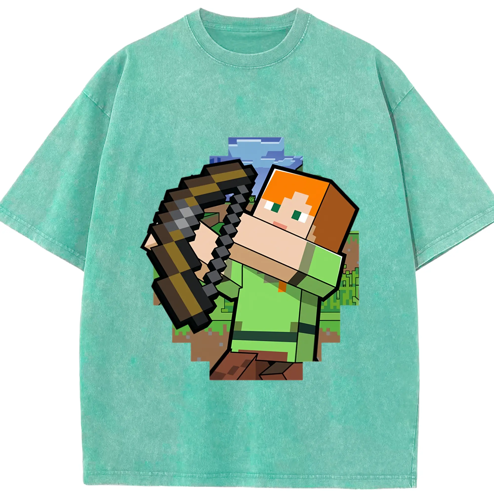 Minecraft alex graphic classic t shirt - Washed Vintage Look 230g Cotton Oversized T-Shirt With Front Heat Transfer Print – Soft, Lightweight, Stylish Fit – Comfortable Casual Wear For Sports & Everyday Use