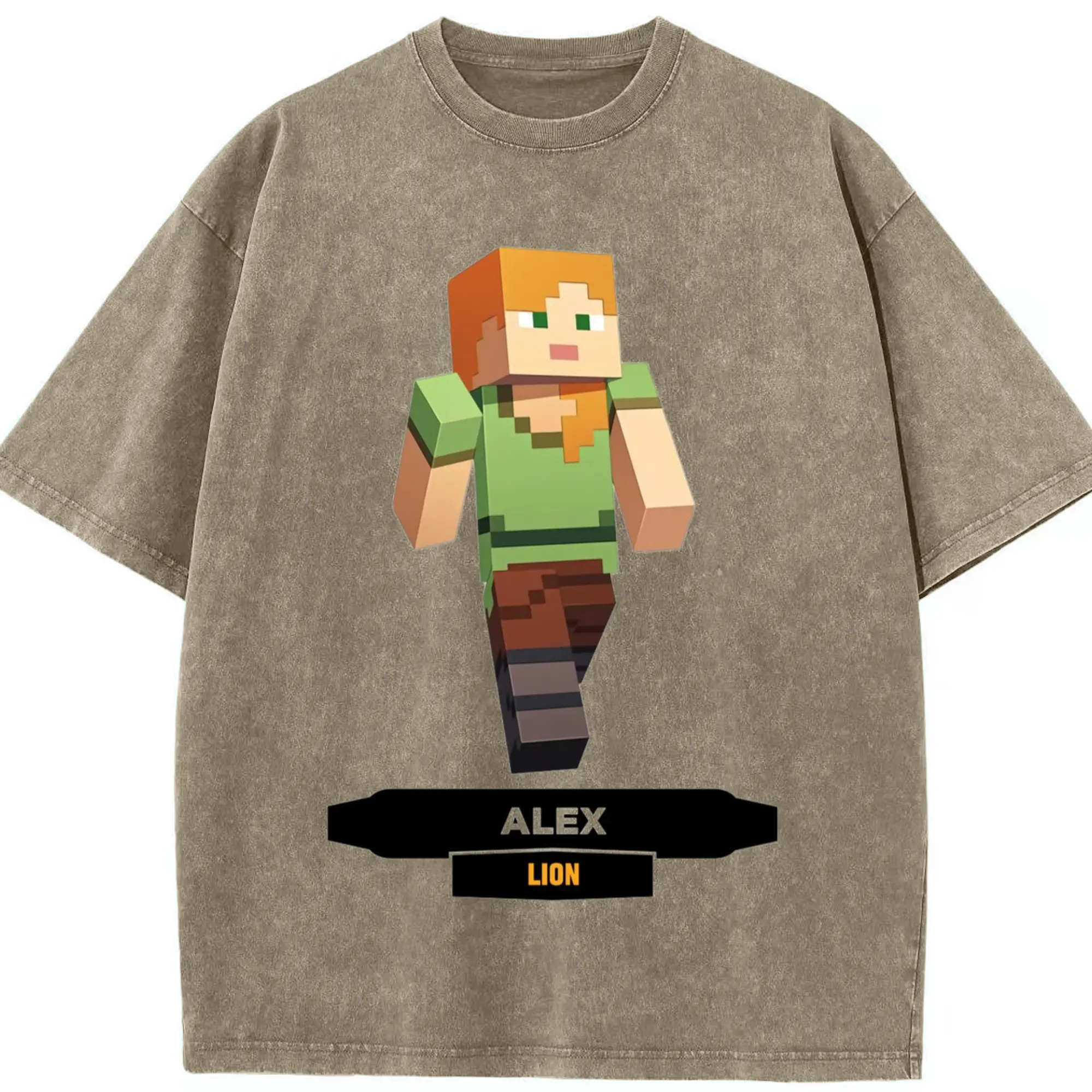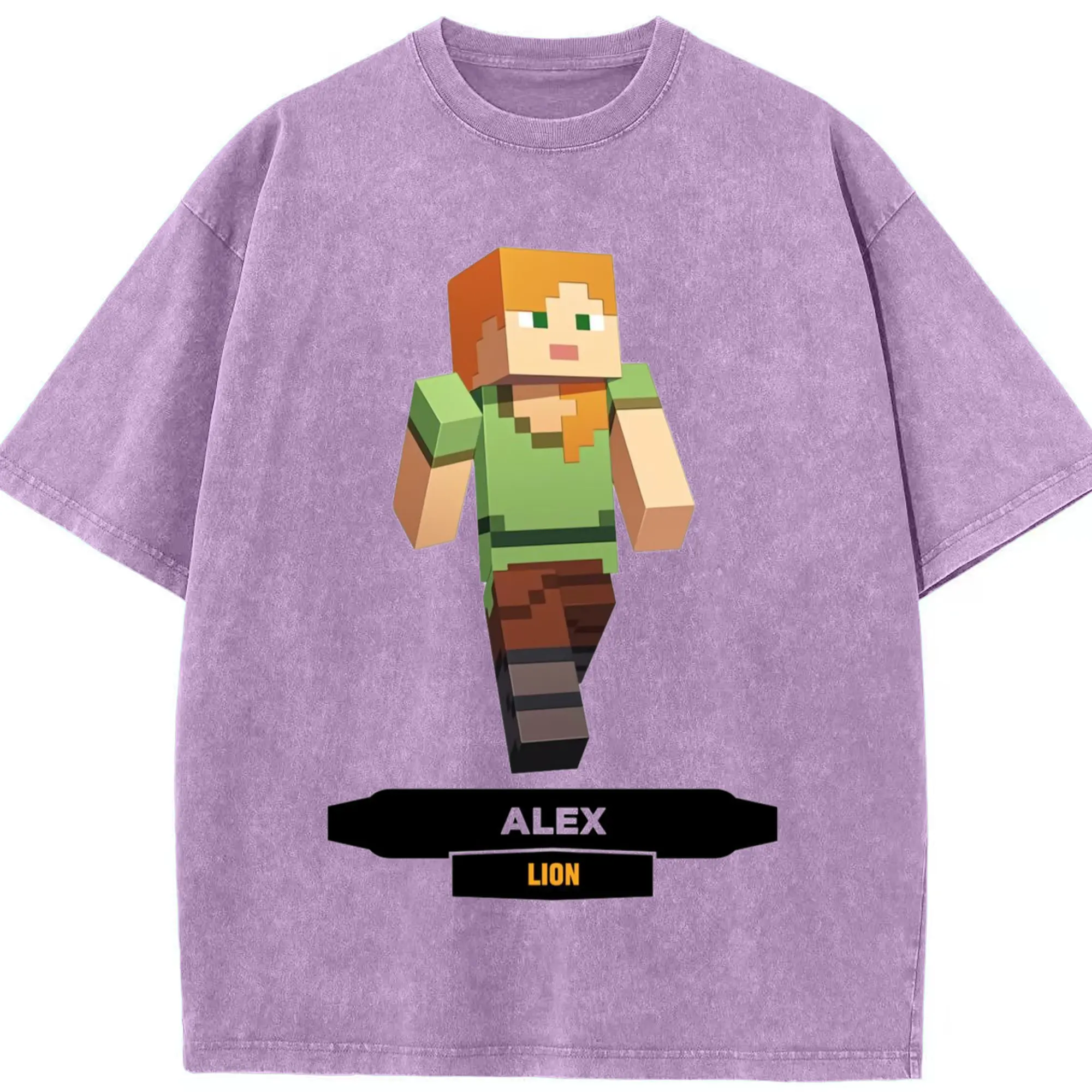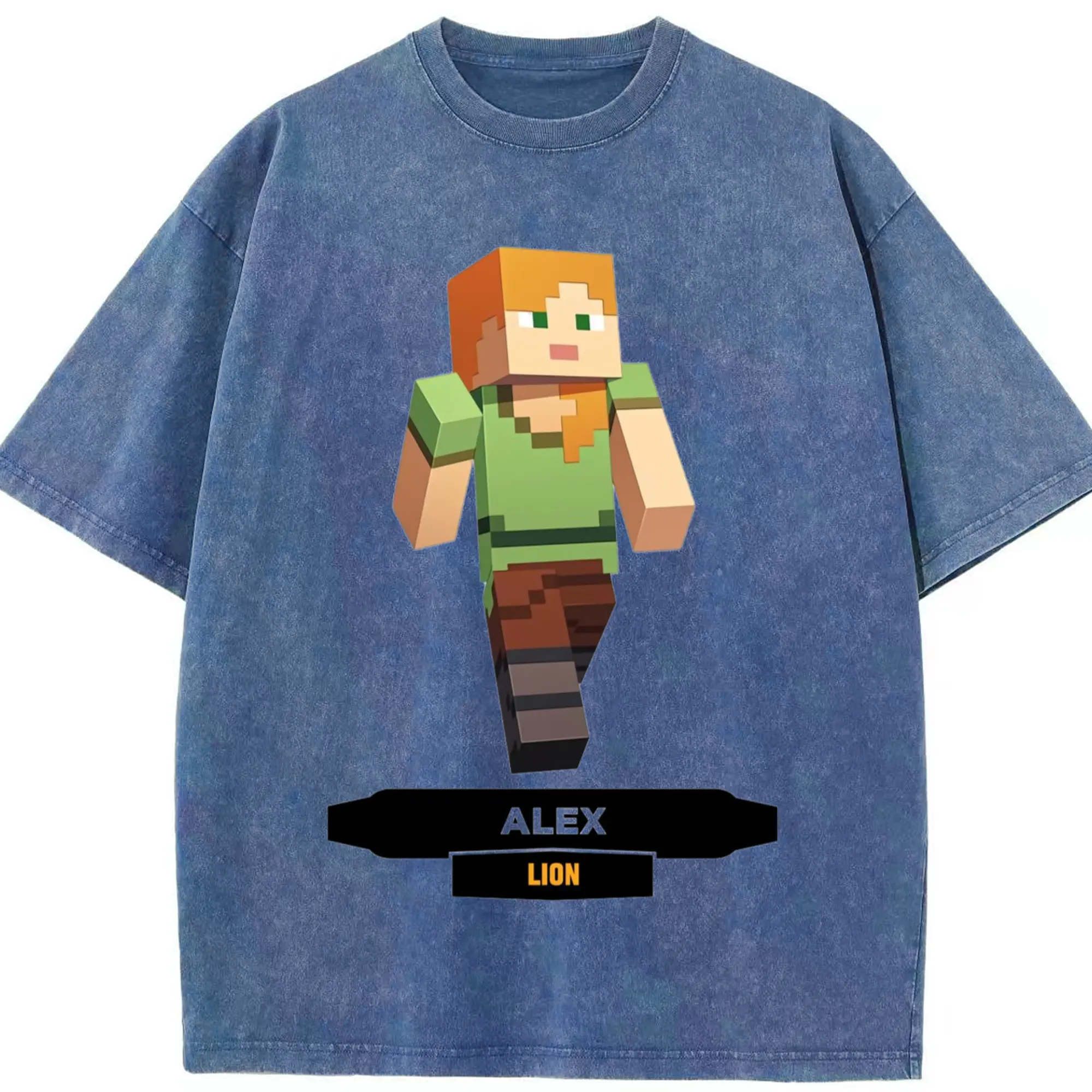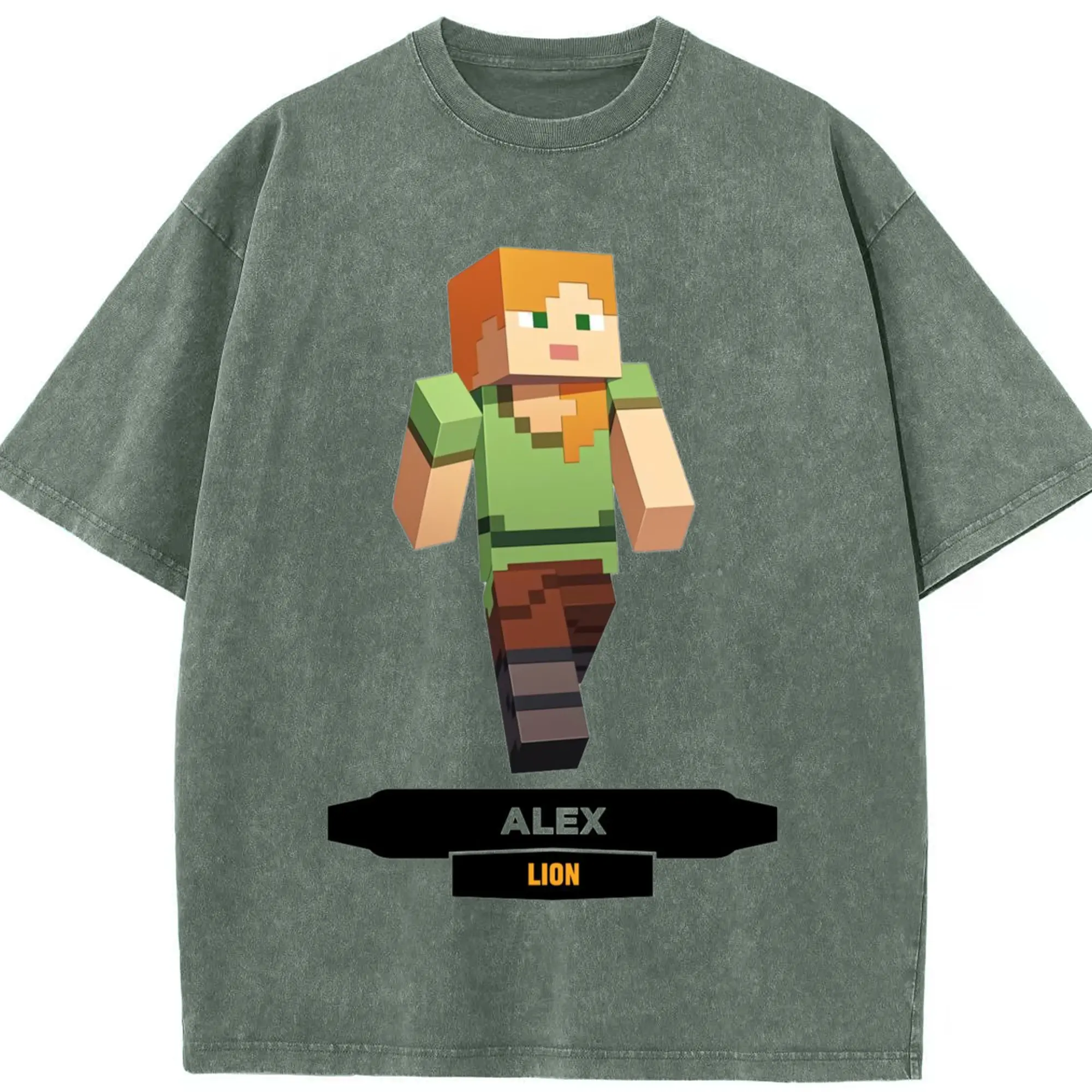 Minecraft alex t shirt - Washed Vintage Look 230g Cotton Oversized T-Shirt With Front Heat Transfer Print – Soft, Lightweight, Stylish Fit – Comfortable Casual Wear For Sports & Everyday Use