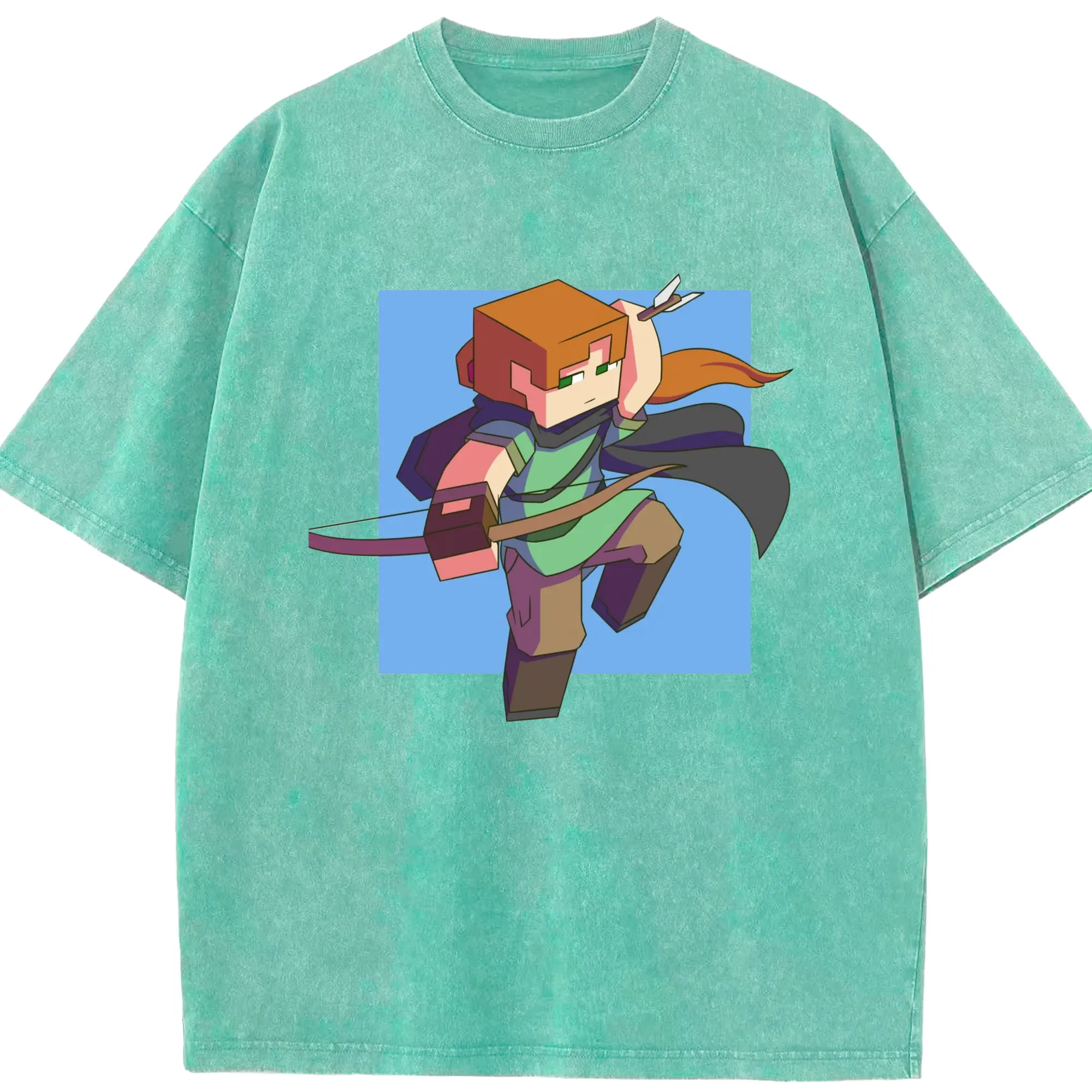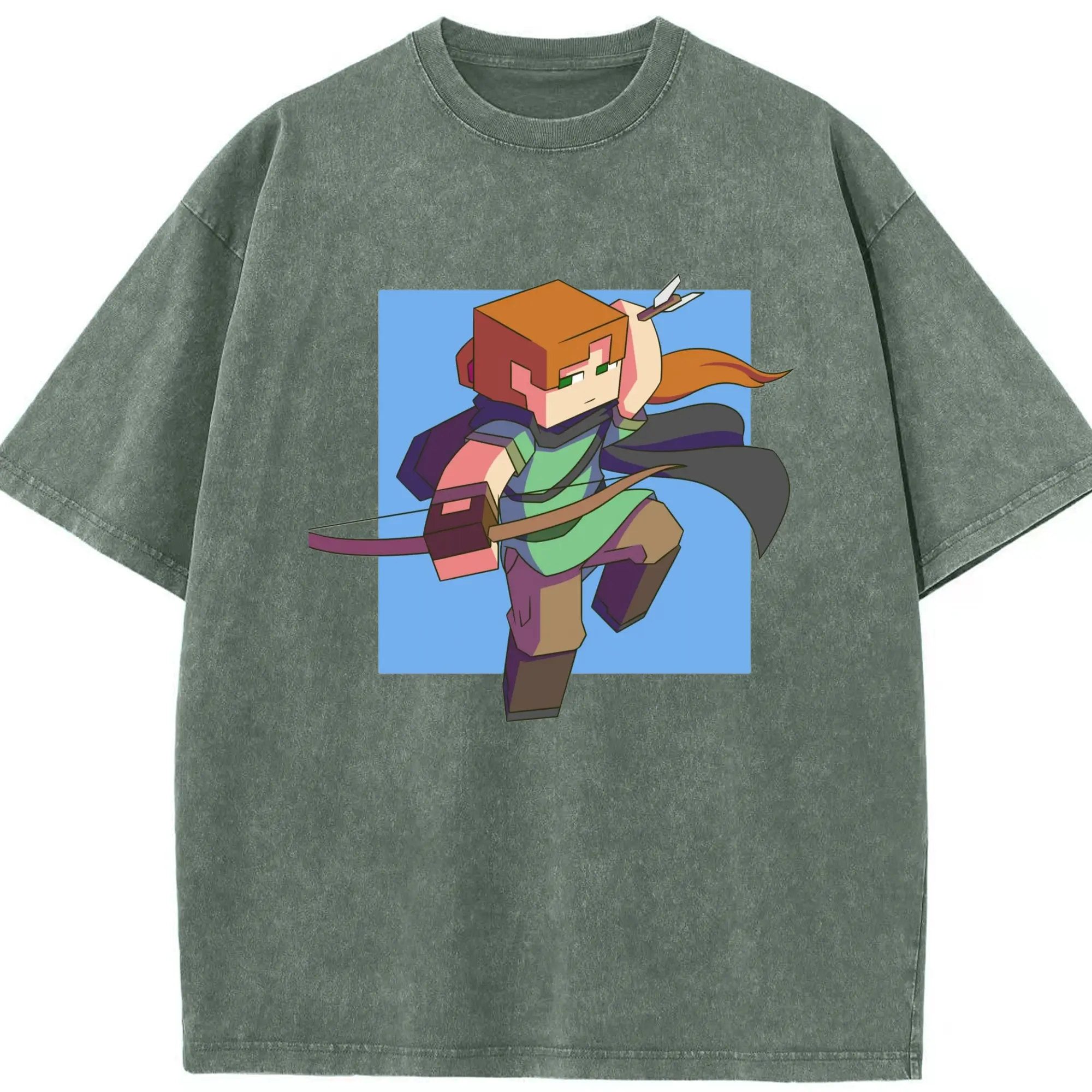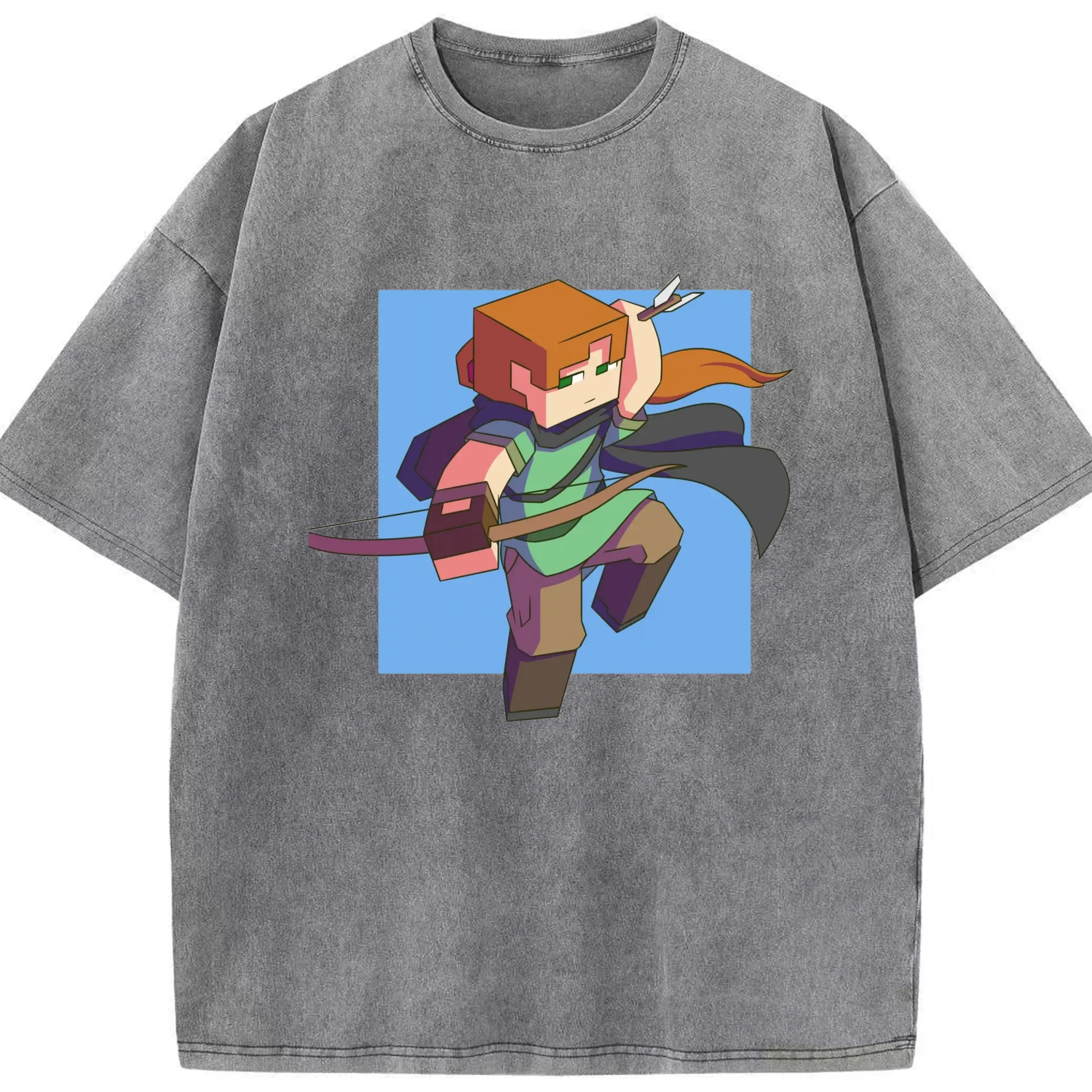 Minecraft alex tee - Washed Vintage Look 230g Cotton Oversized T-Shirt With Front Heat Transfer Print – Soft, Lightweight, Stylish Fit – Comfortable Casual Wear For Sports & Everyday Use